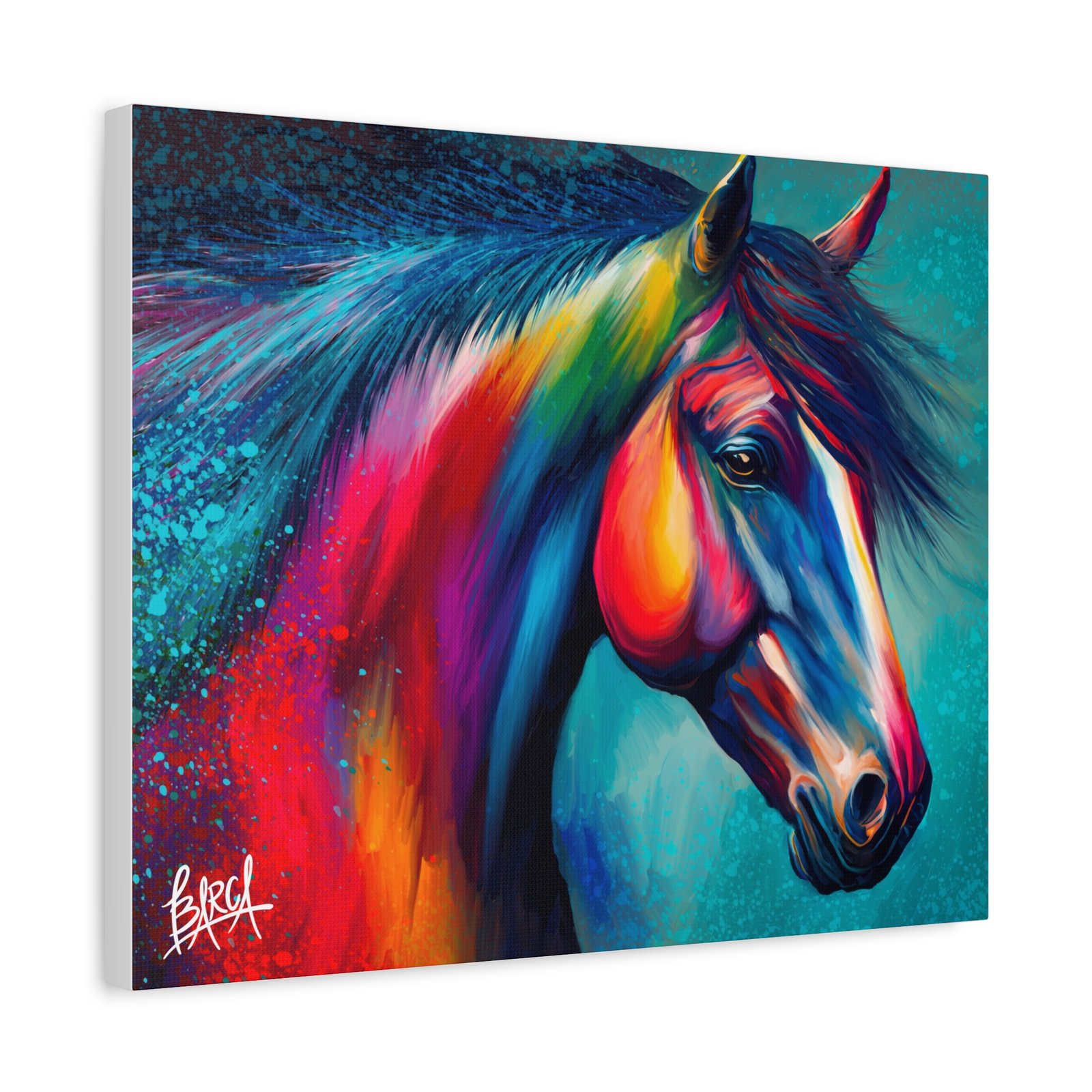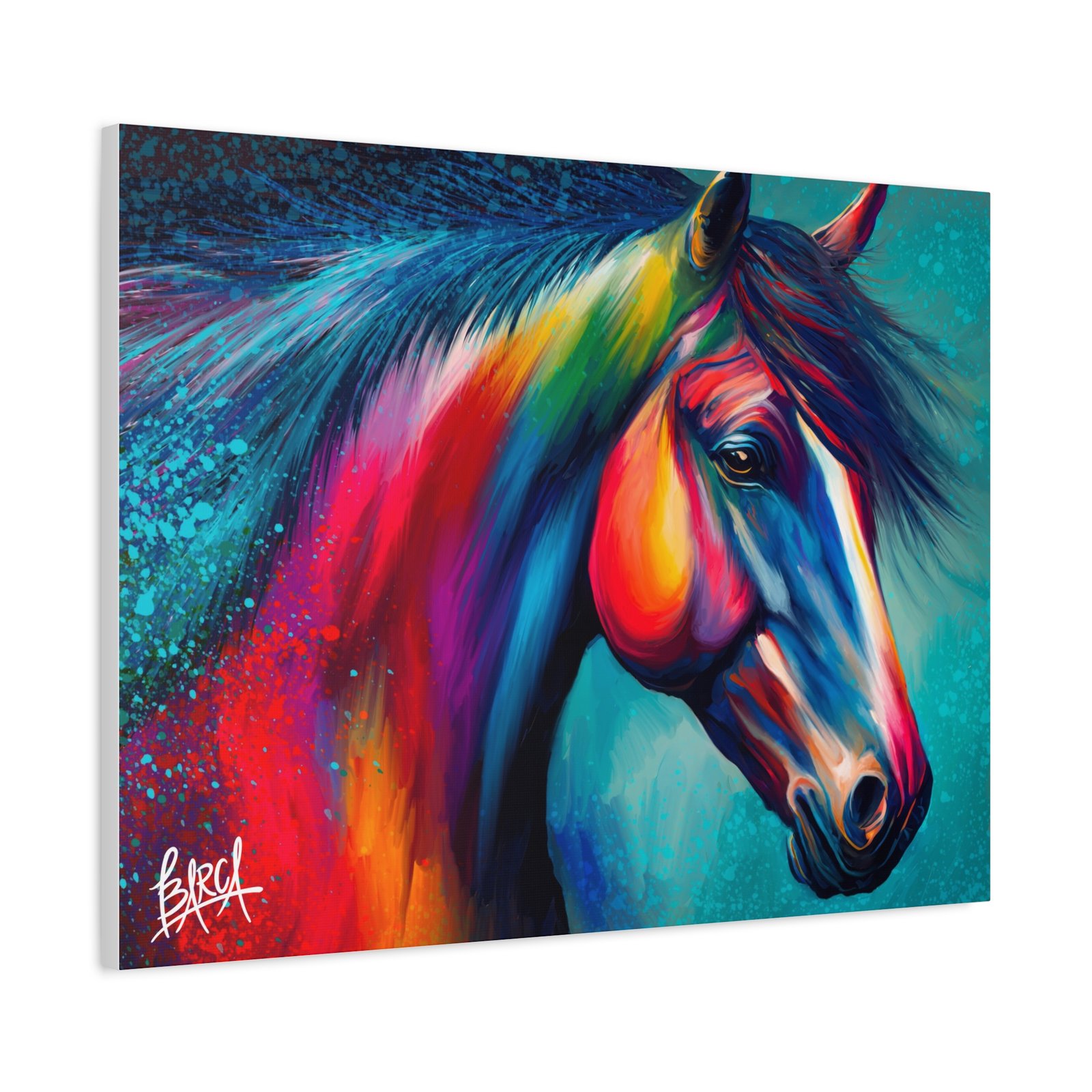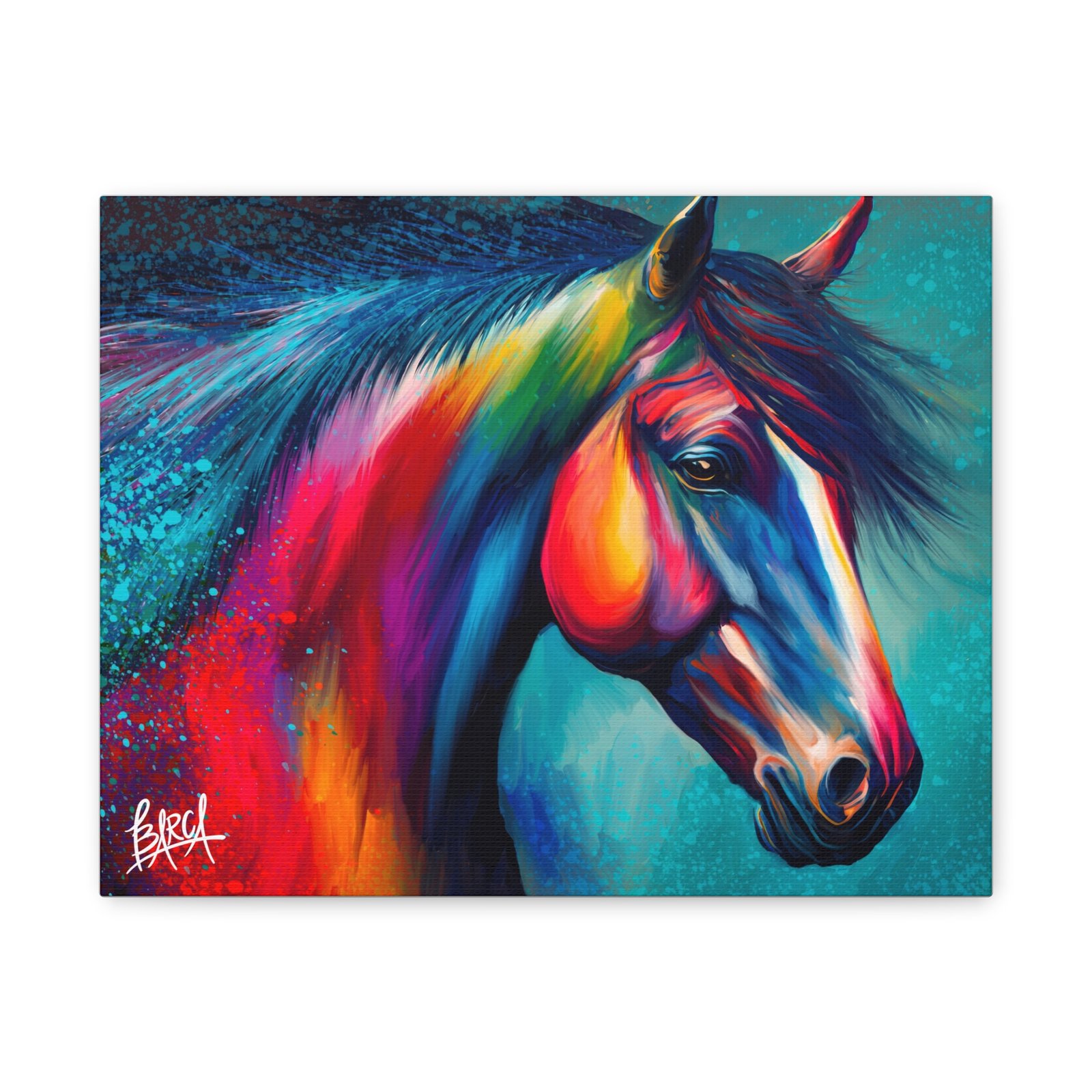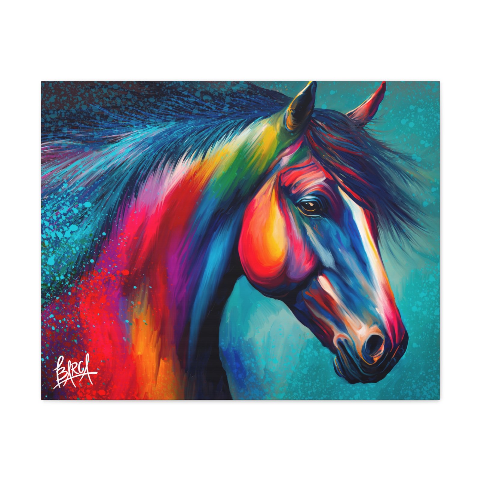 Transform your living space with this vibrant stretched canvas featuring a stunning colorful horse design. The artwork infuses energy and creativity into any room, making it a perfect focal point for your home or office. Ideal for horse lovers, art enthusiasts, or anyone looking to add a splash of color, this canvas is perfect for birthdays, housewarming gifts, or simply as a treat for yourself. Celebrate your passion for art and nature with a piece that inspires joy and imagination in your everyday life.