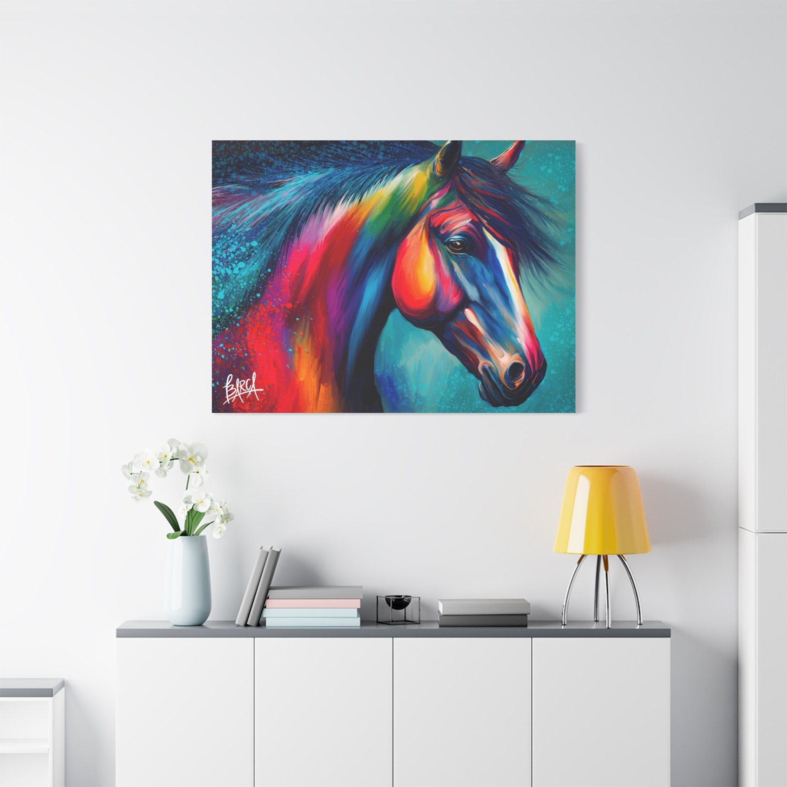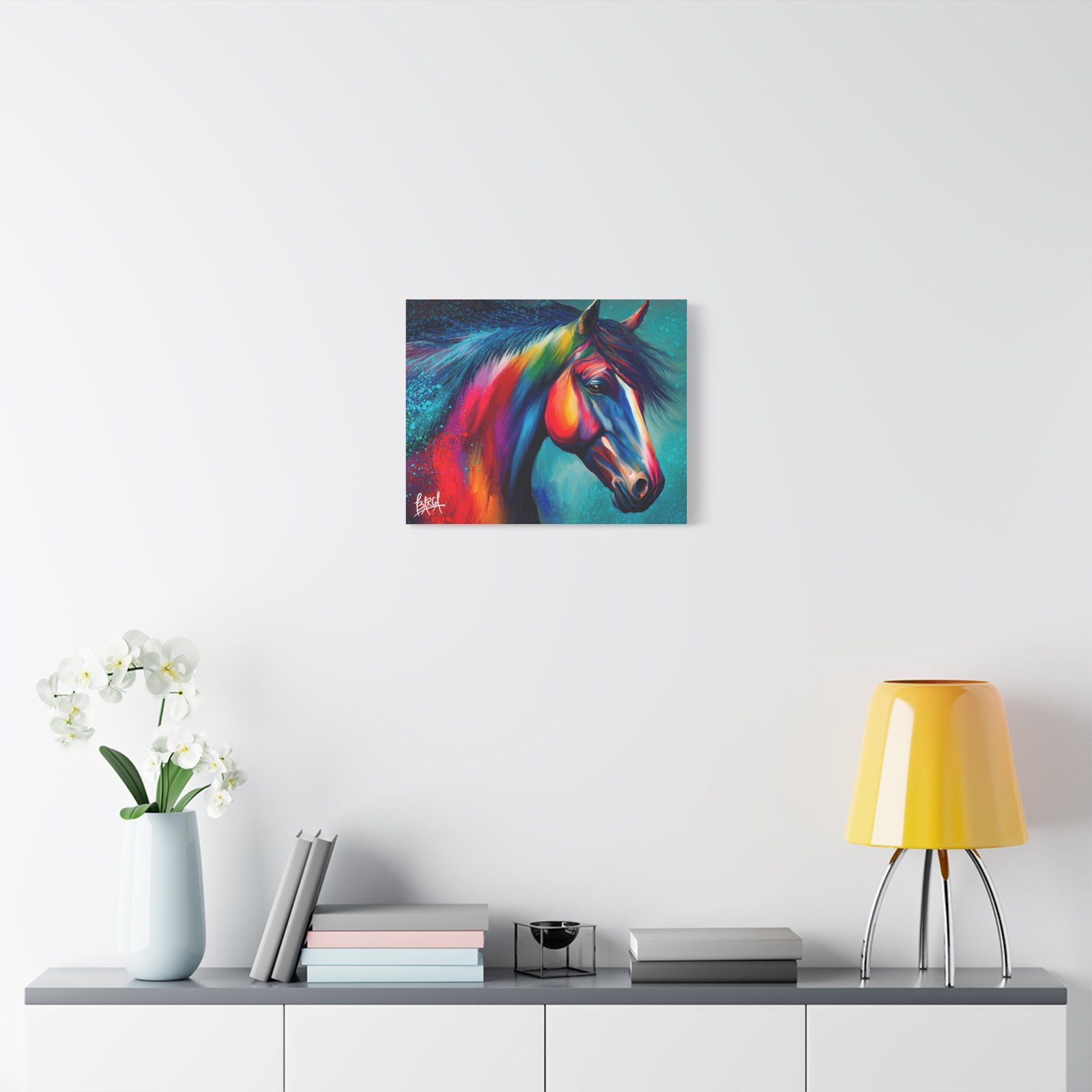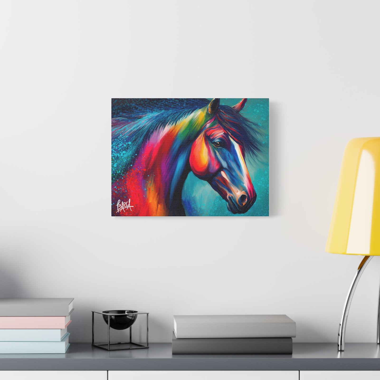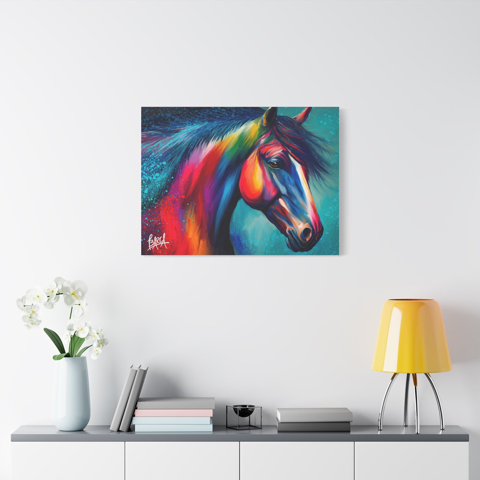 Transform your living space with this vibrant stretched canvas featuring a stunning colorful horse design. The artwork infuses energy and creativity into any room, making it a perfect focal point for your home or office. Ideal for horse lovers, art enthusiasts, or anyone looking to add a splash of color, this canvas is perfect for birthdays, housewarming gifts, or simply as a treat for yourself. Celebrate your passion for art and nature with a piece that inspires joy and imagination in your everyday life.