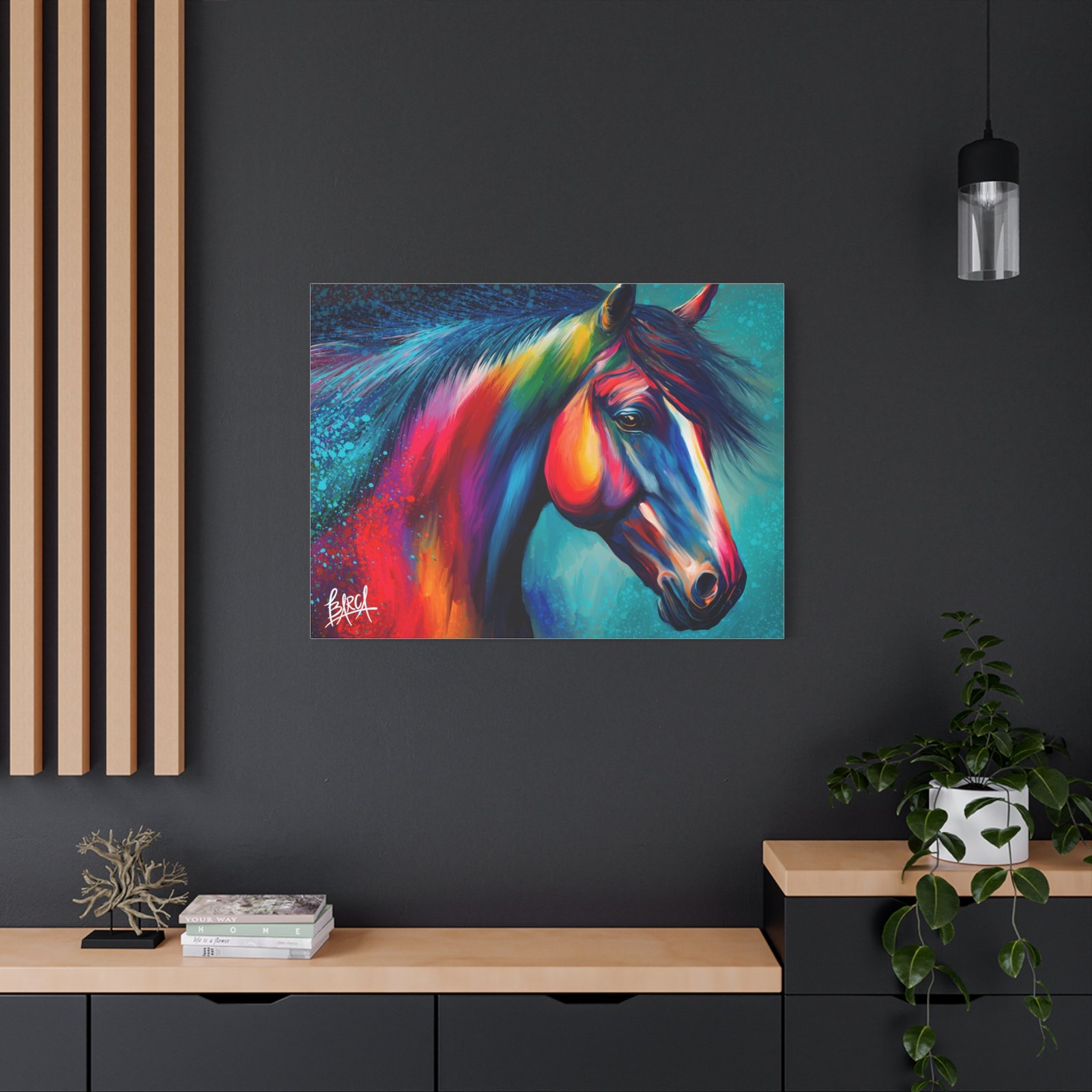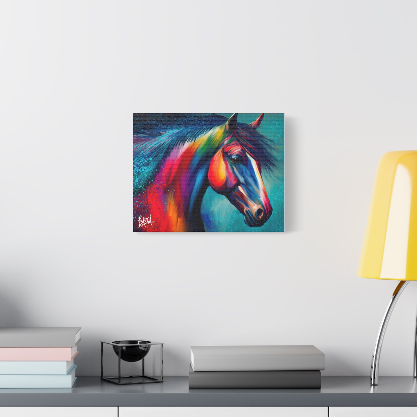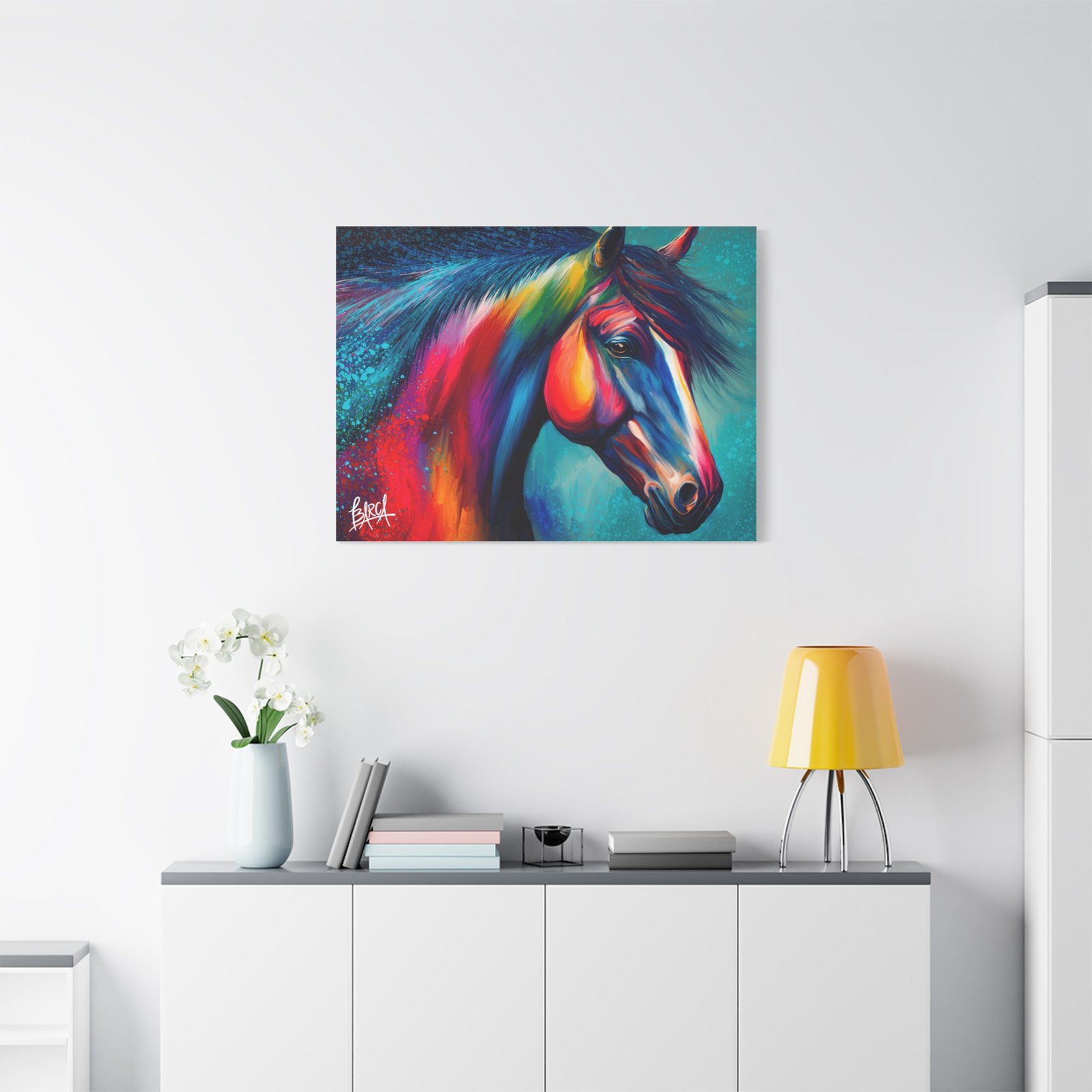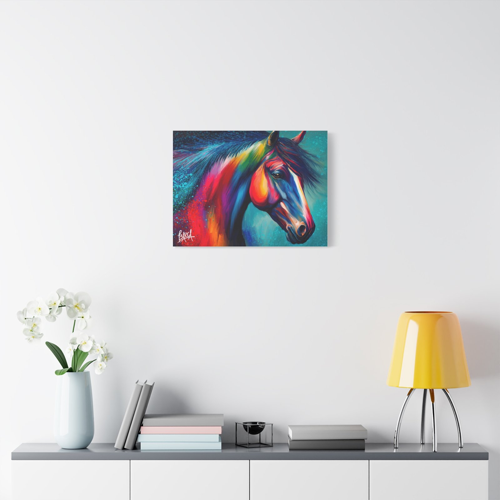 Transform your living space with this vibrant stretched canvas featuring a stunning colorful horse design. The artwork infuses energy and creativity into any room, making it a perfect focal point for your home or office. Ideal for horse lovers, art enthusiasts, or anyone looking to add a splash of color, this canvas is perfect for birthdays, housewarming gifts, or simply as a treat for yourself. Celebrate your passion for art and nature with a piece that inspires joy and imagination in your everyday life.