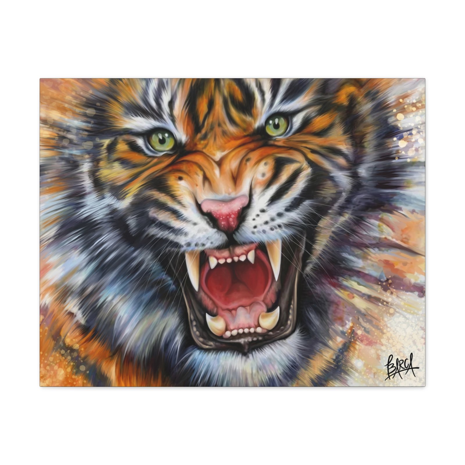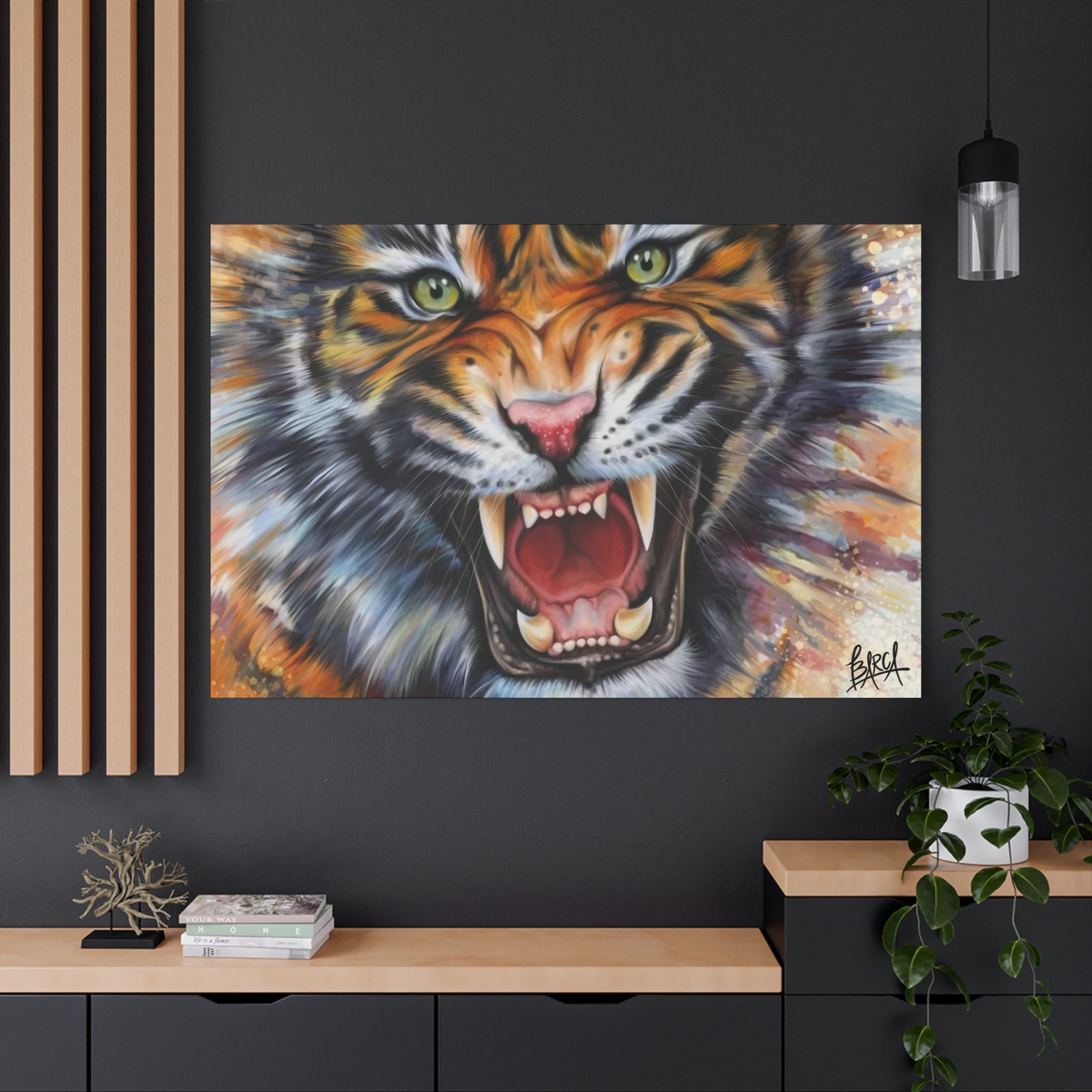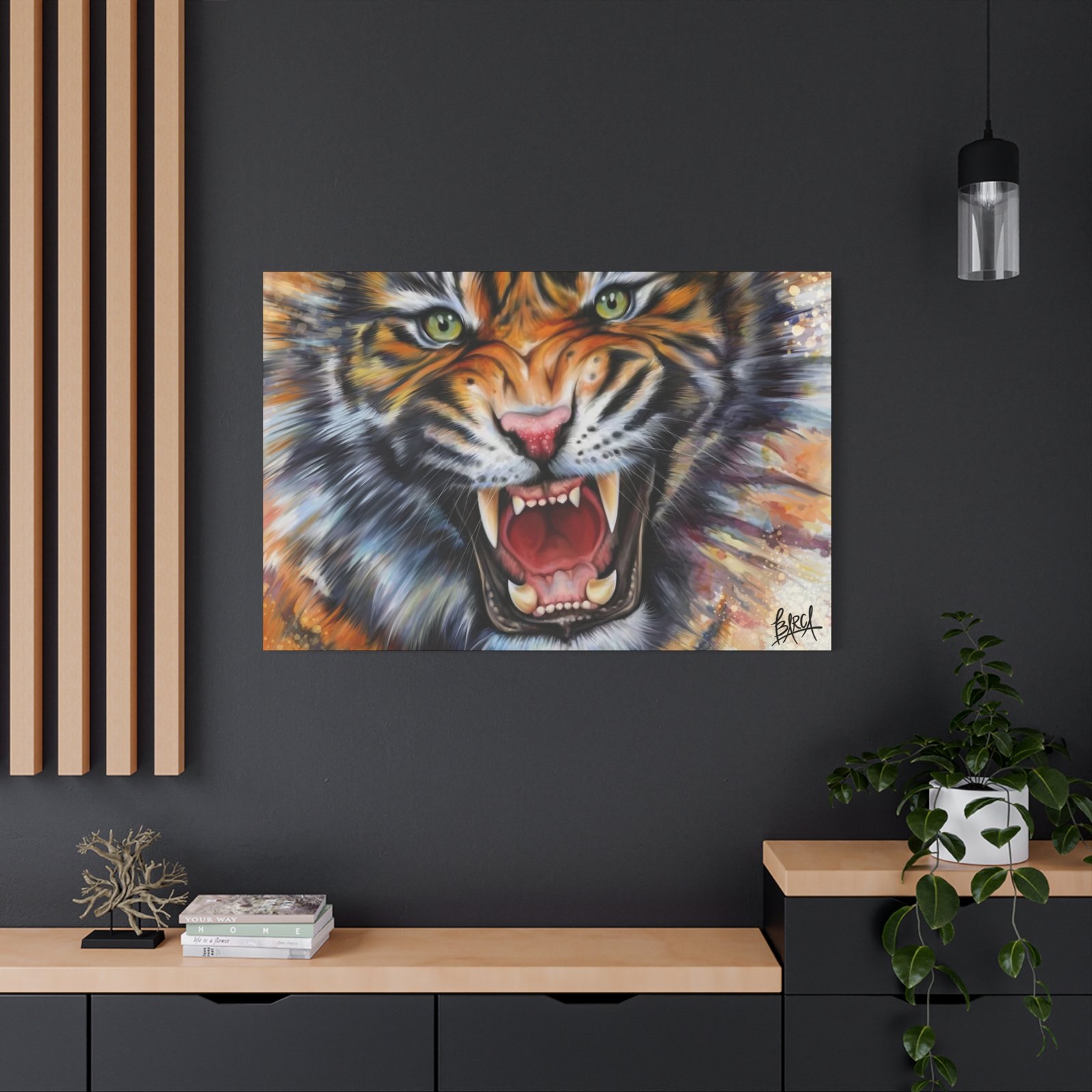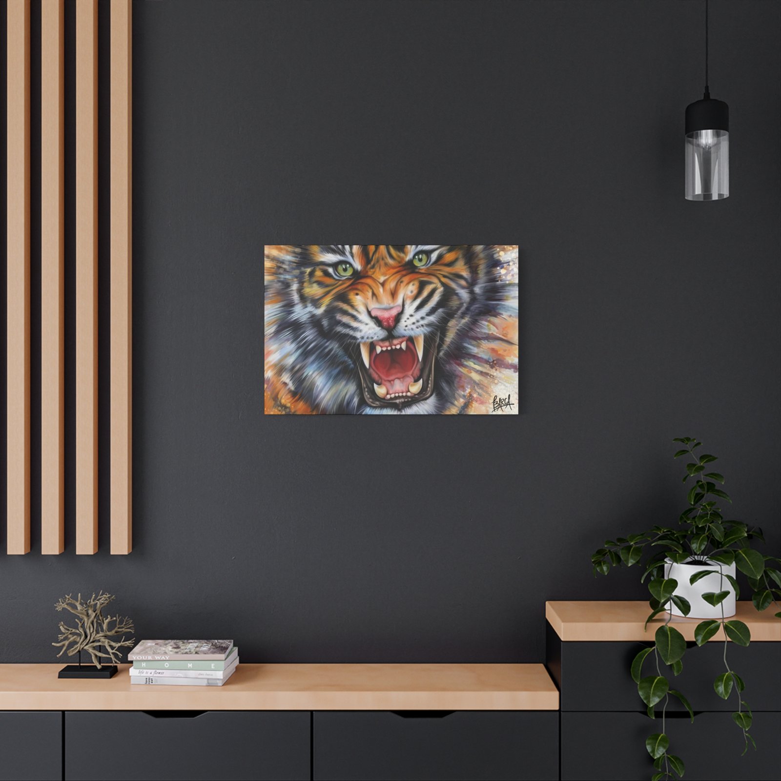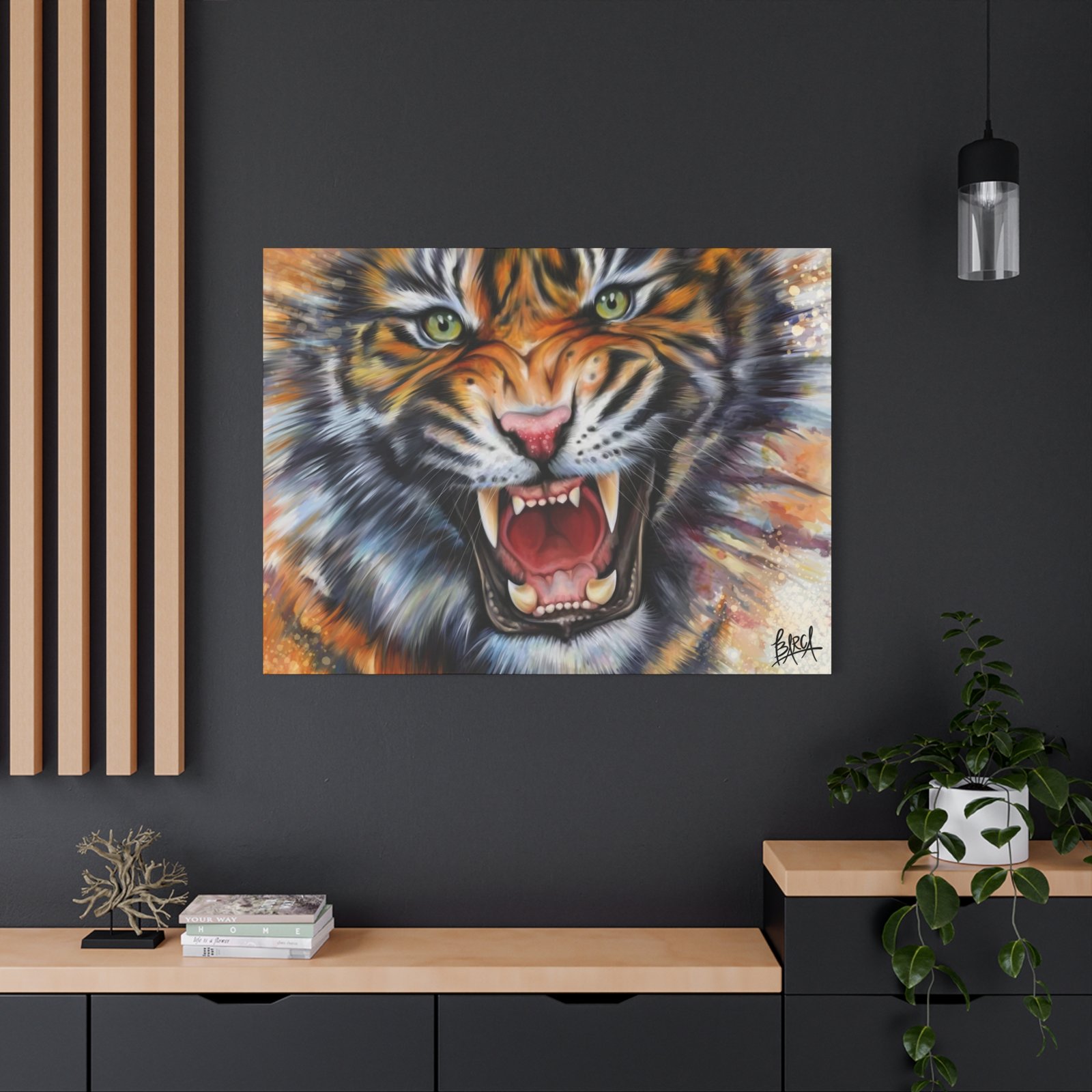 Animal Art Canvas – Fierce Tiger Canvas Art, Wall Decor for Animal Lovers, Unique Home Decor, Gift for Wildlife Enthusiasts, Dramatic Tiger Artwork