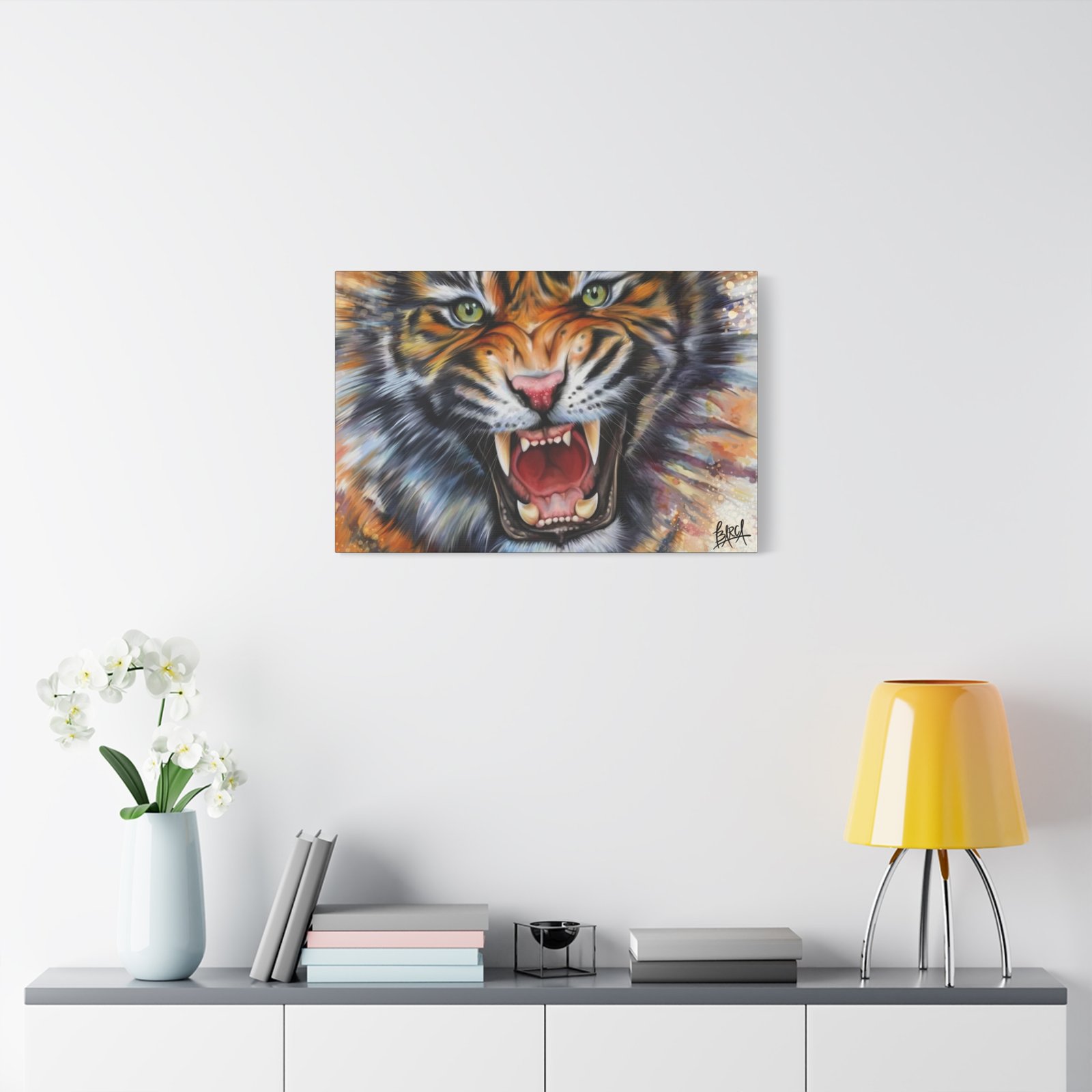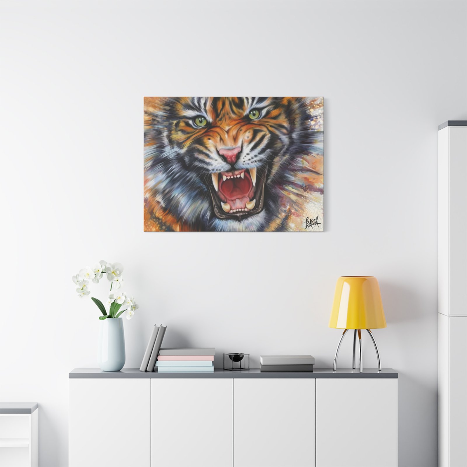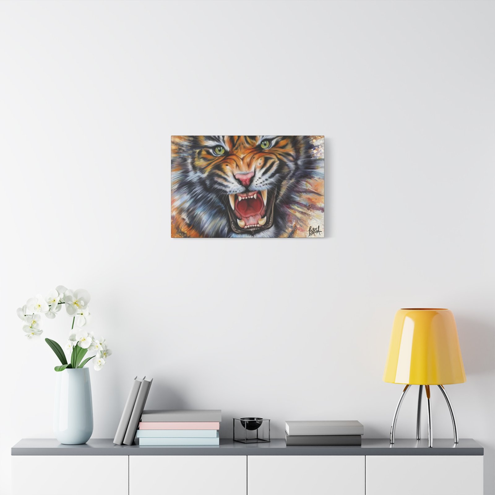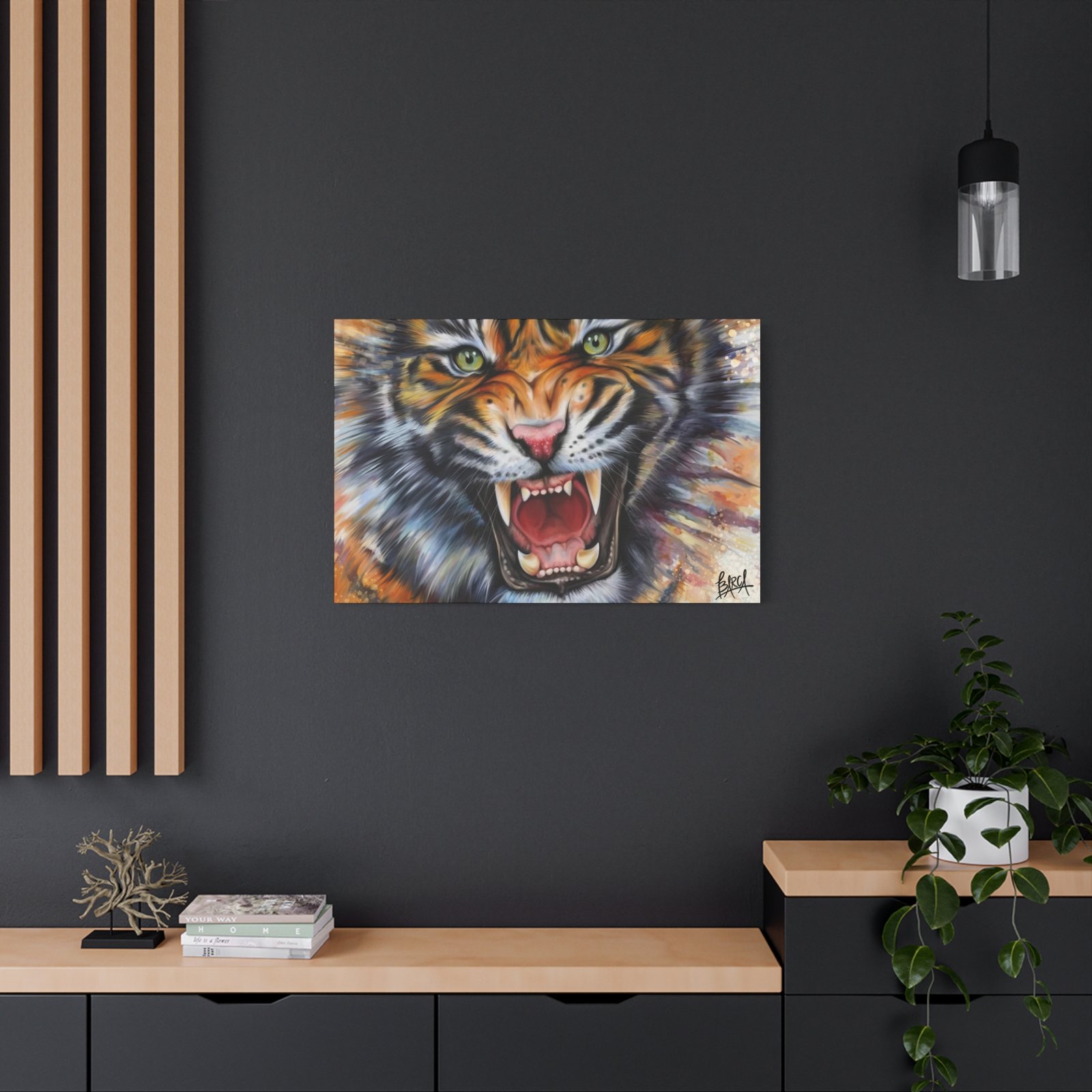 Animal Art Canvas – Fierce Tiger Canvas Art, Wall Decor for Animal Lovers, Unique Home Decor, Gift for Wildlife Enthusiasts, Dramatic Tiger Artwork