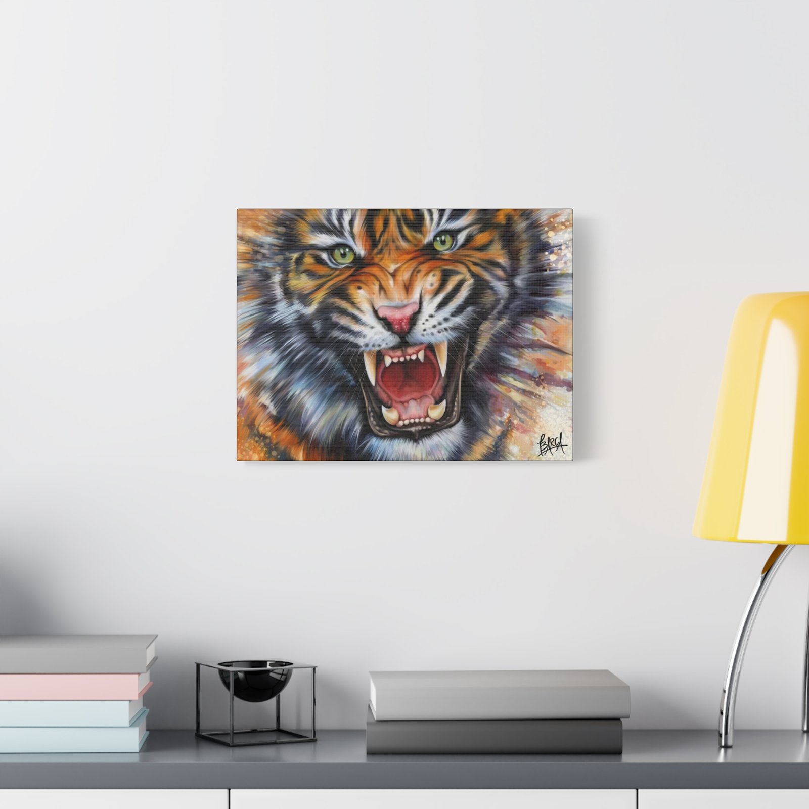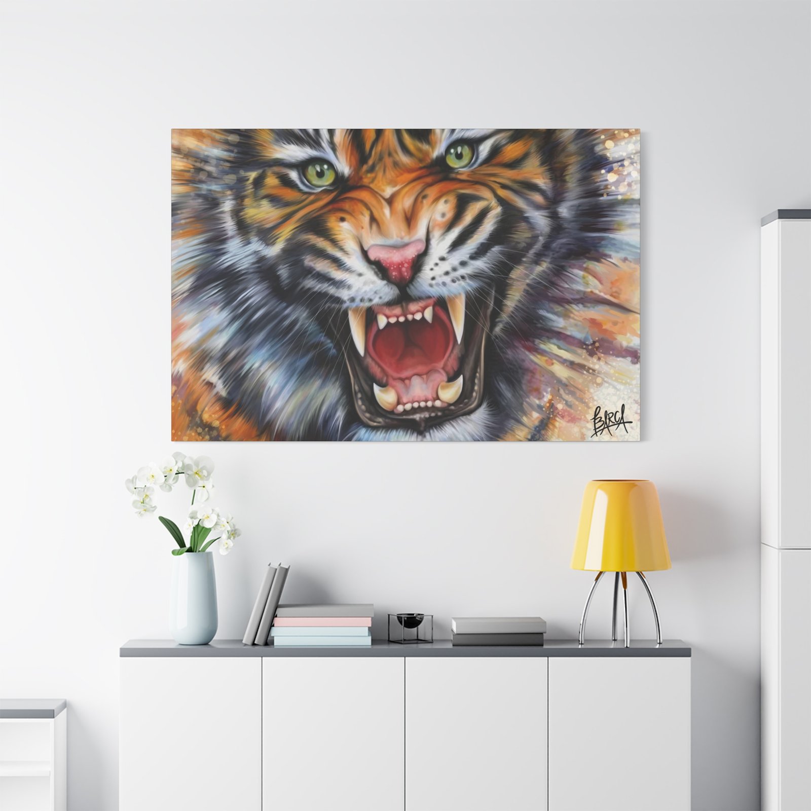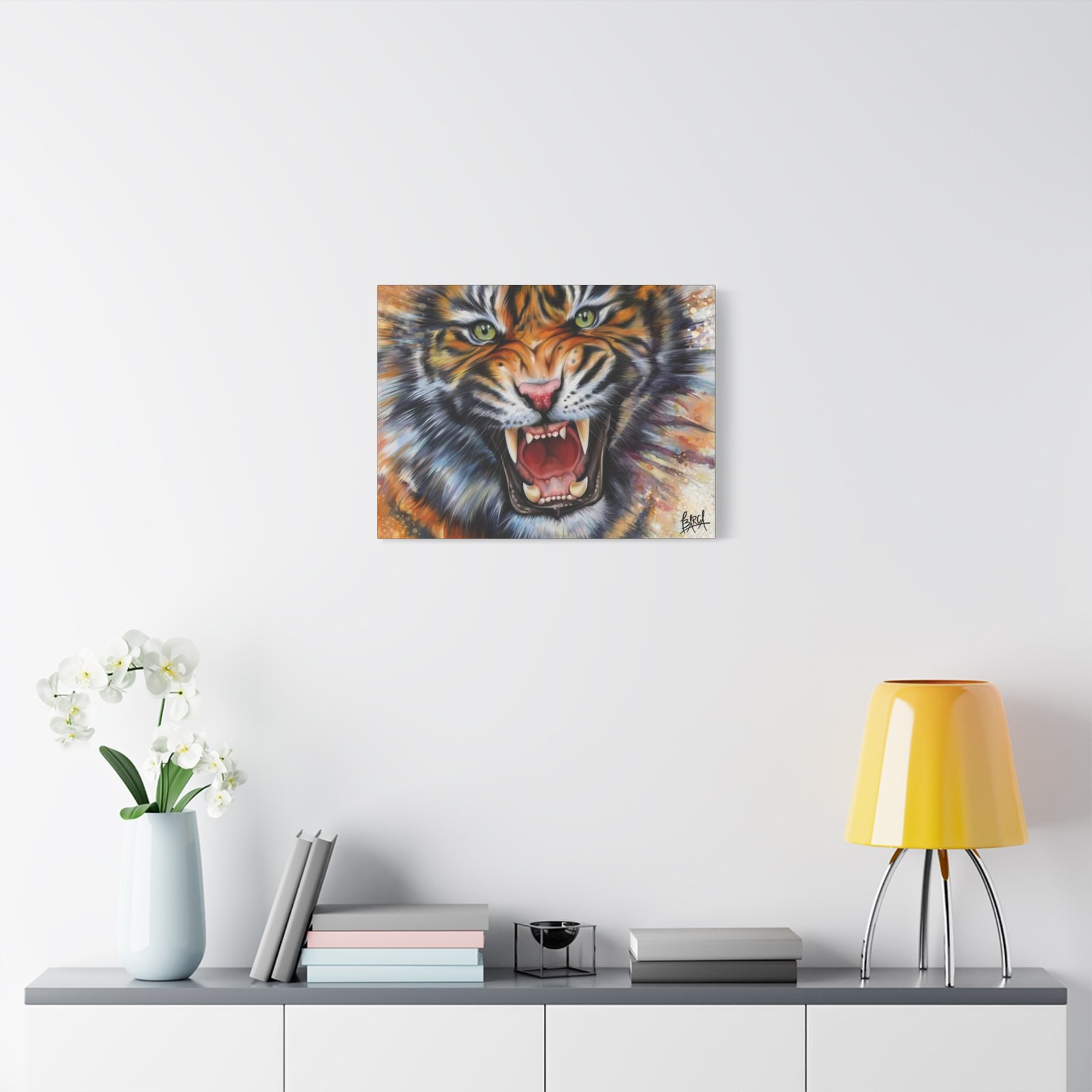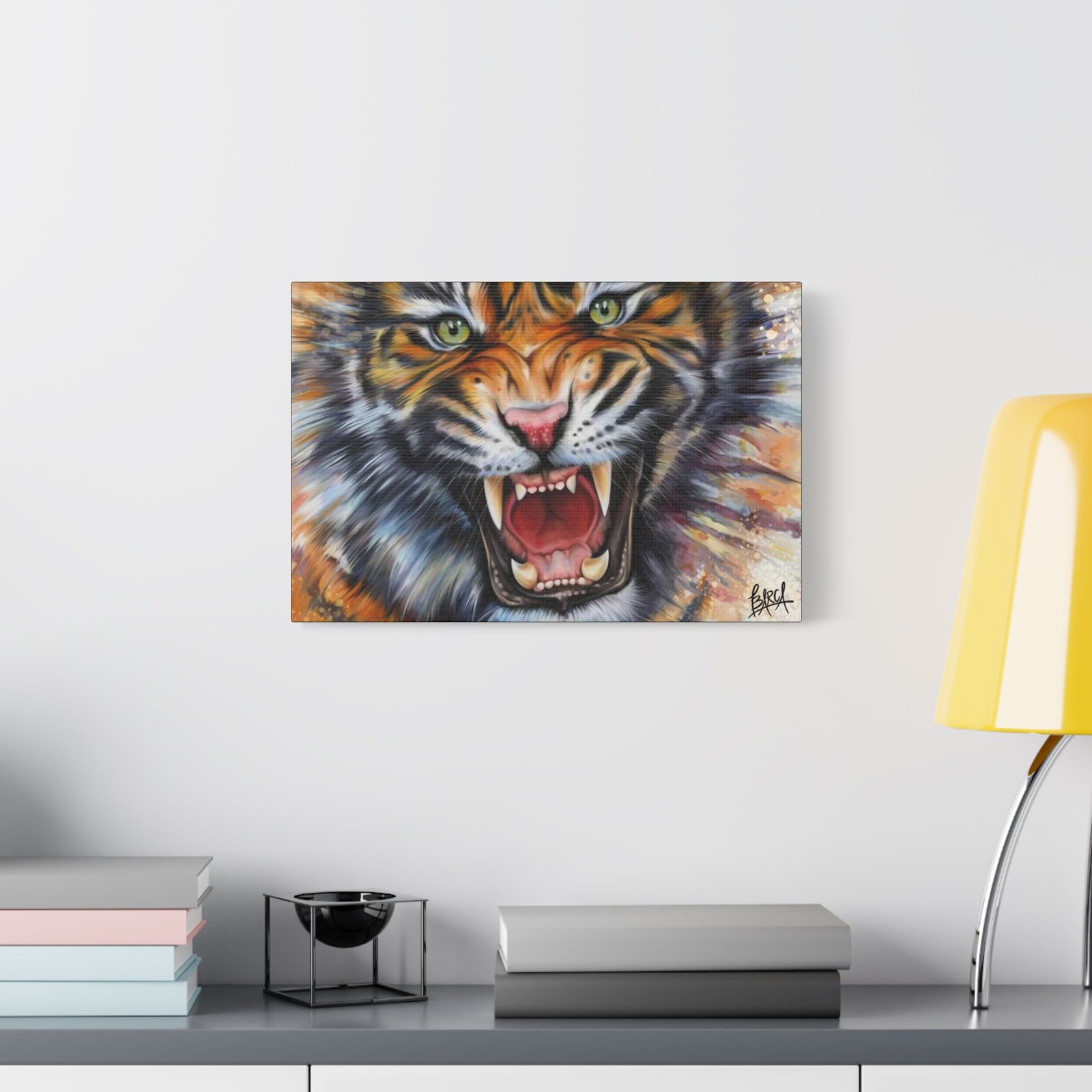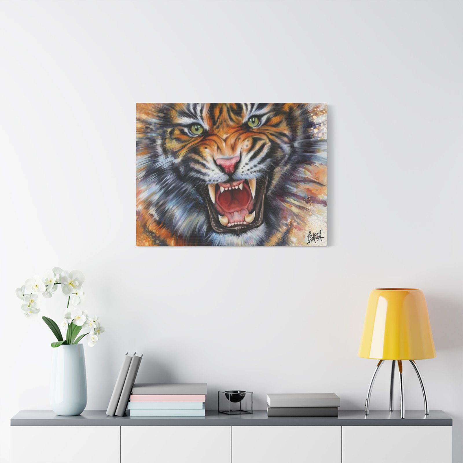 Animal Art Canvas – Fierce Tiger Canvas Art, Wall Decor for Animal Lovers, Unique Home Decor, Gift for Wildlife Enthusiasts, Dramatic Tiger Artwork