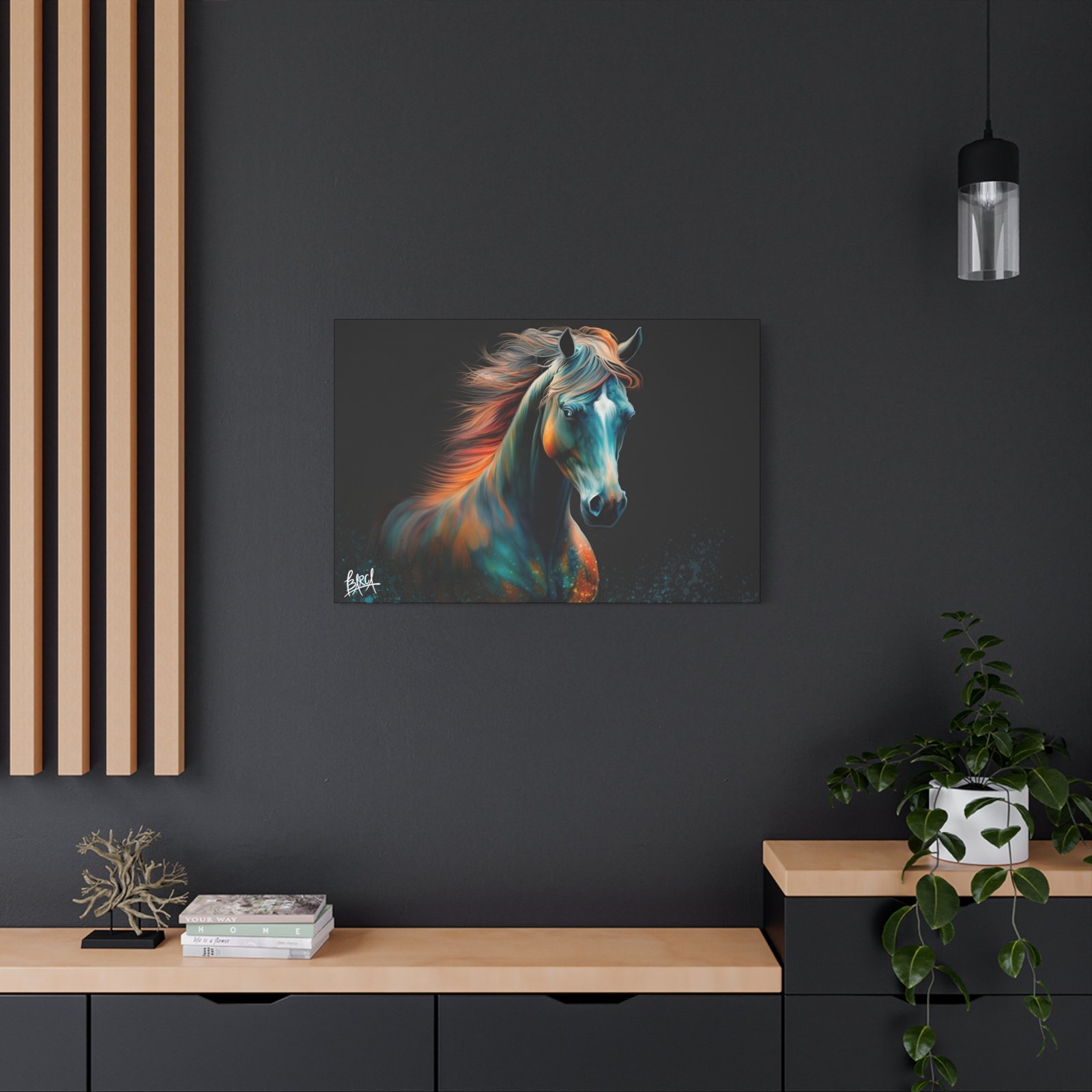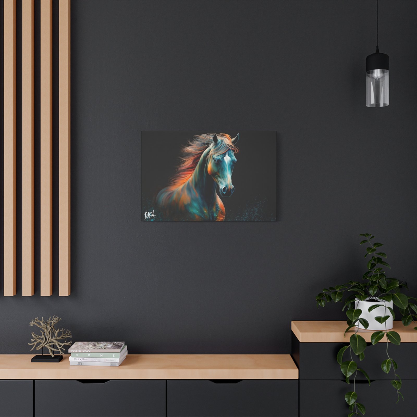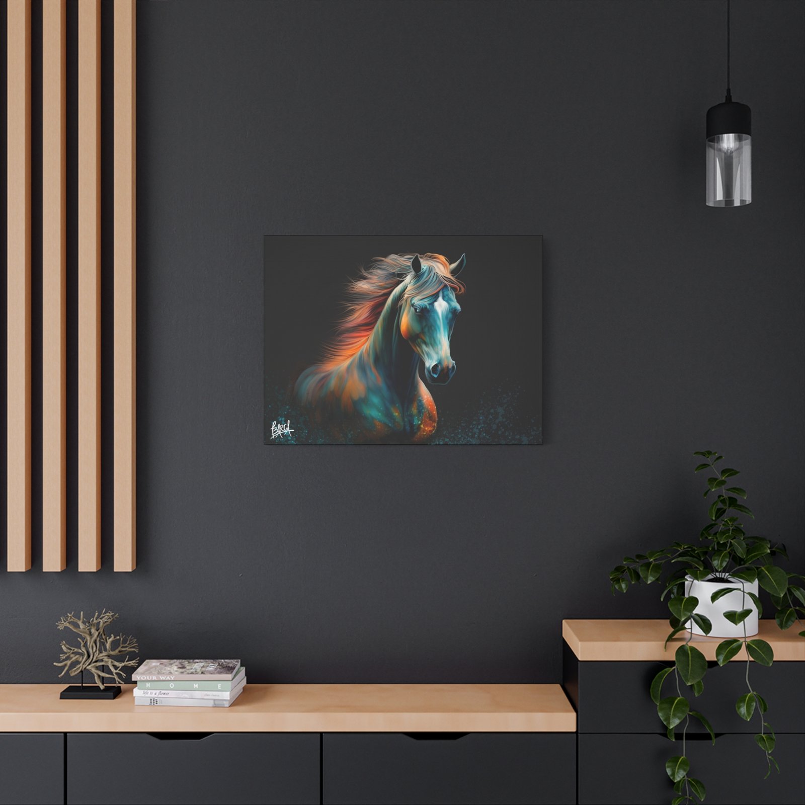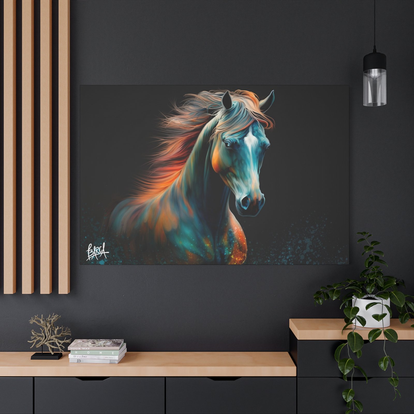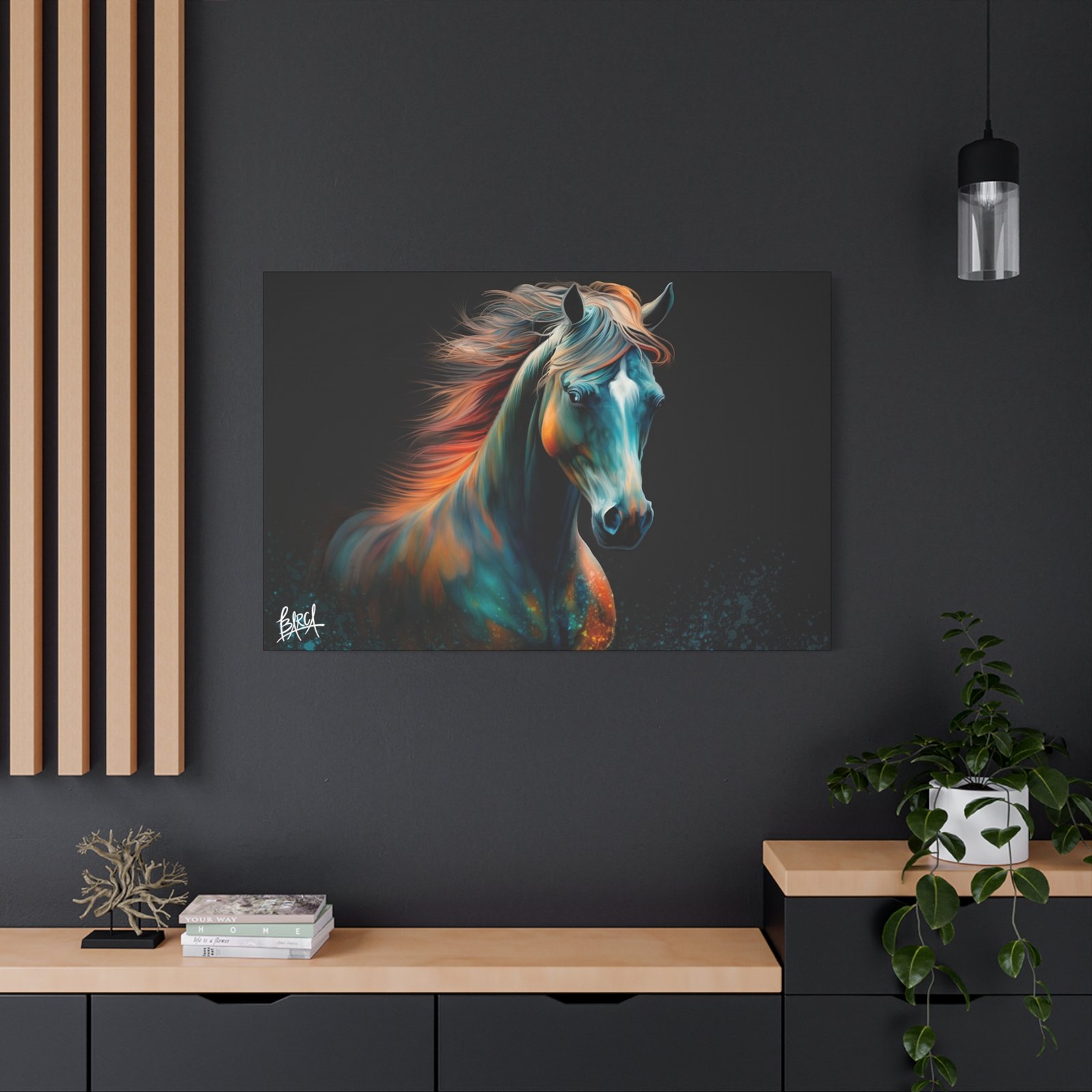 Transform your living space with this stunning Canvas Wall Art. Featuring a vibrant depiction of a majestic horse, this piece radiates energy and emotion, perfect for animal lovers and home décor enthusiasts alike. The rich colors and dynamic design create an inviting atmosphere that enhances any room. This artwork fits beautifully in modern and traditional interiors, making it an ideal gift for birthdays, anniversaries, or housewarmings. Celebrate occasions like holidays with a touch of elegance and express your passion for nature and art. Suitable for art collectors, horse lovers, or anyone looking to add a captivating focal point to their home.