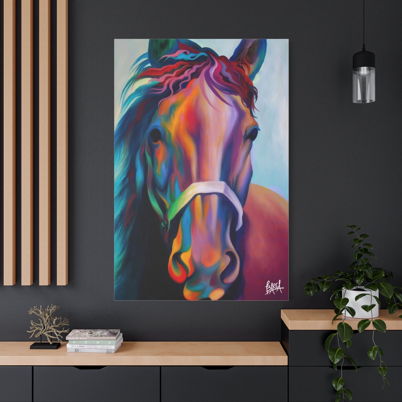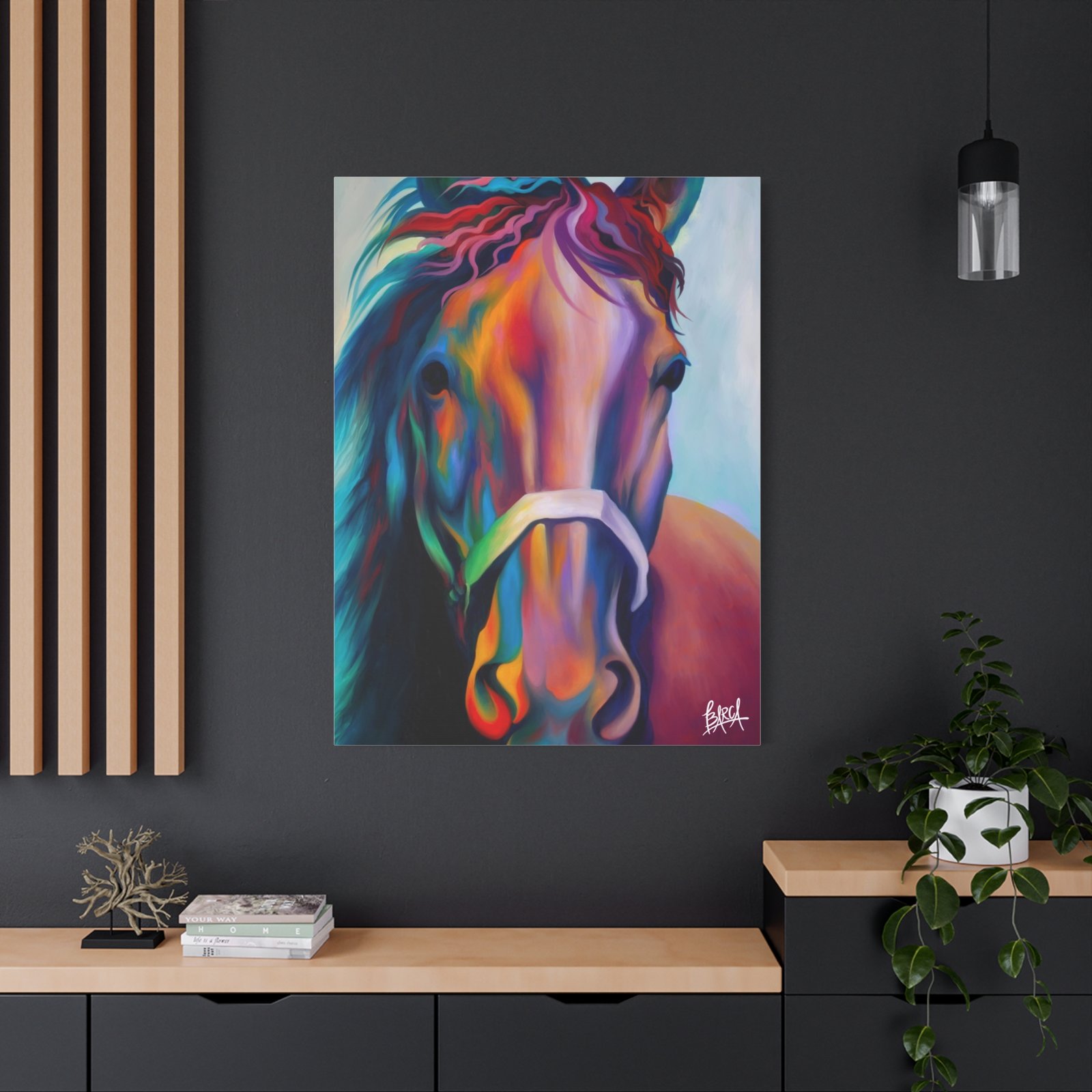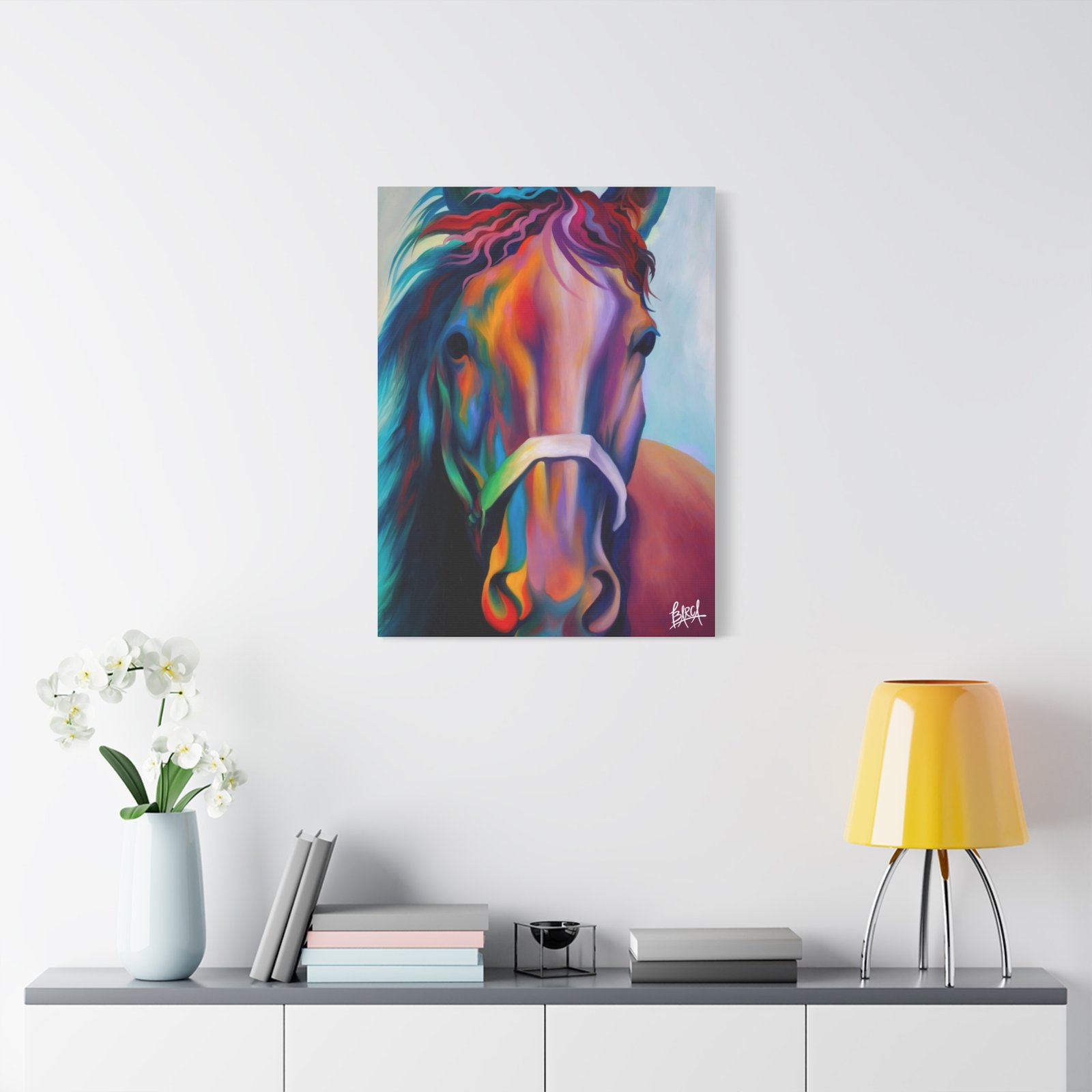 Elevate your space with this stunning canvas print that perfectly captures vibrant artistry. The energetic colors and intricate details of the design infuse any room with a lively atmosphere. It’s perfect for horse enthusiasts, art lovers, or anyone looking to add a splash of creativity to their decor. Ideal for home, office, or as an eye-catching statement piece for your gallery wall. Celebrate special occasions like birthdays, housewarmings, or holidays with this unique gift that will surely delight friends and family. Embrace your passion for art and nature with this lovely addition that enhances the ambiance of your living space.