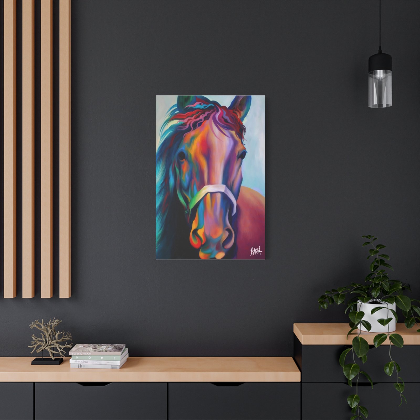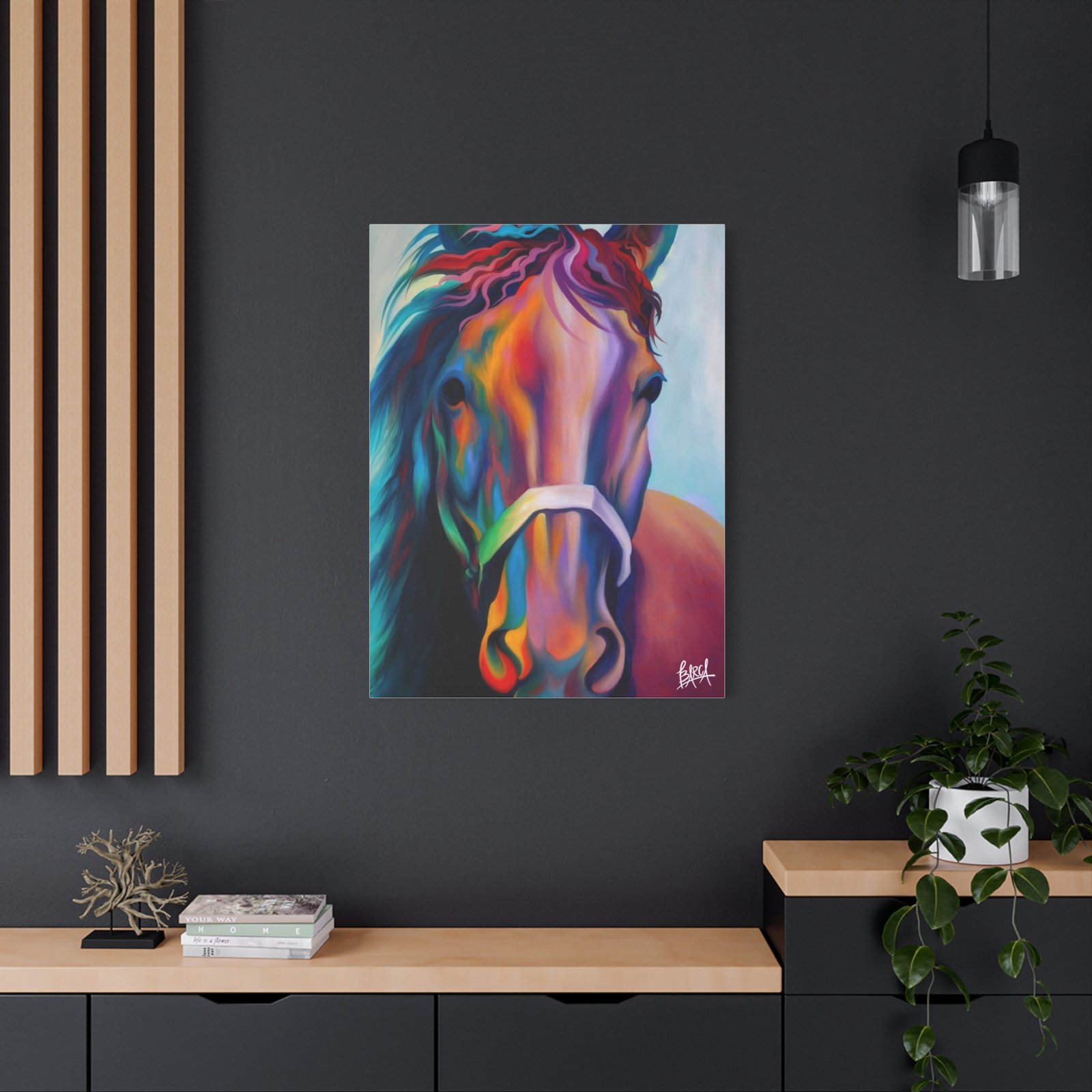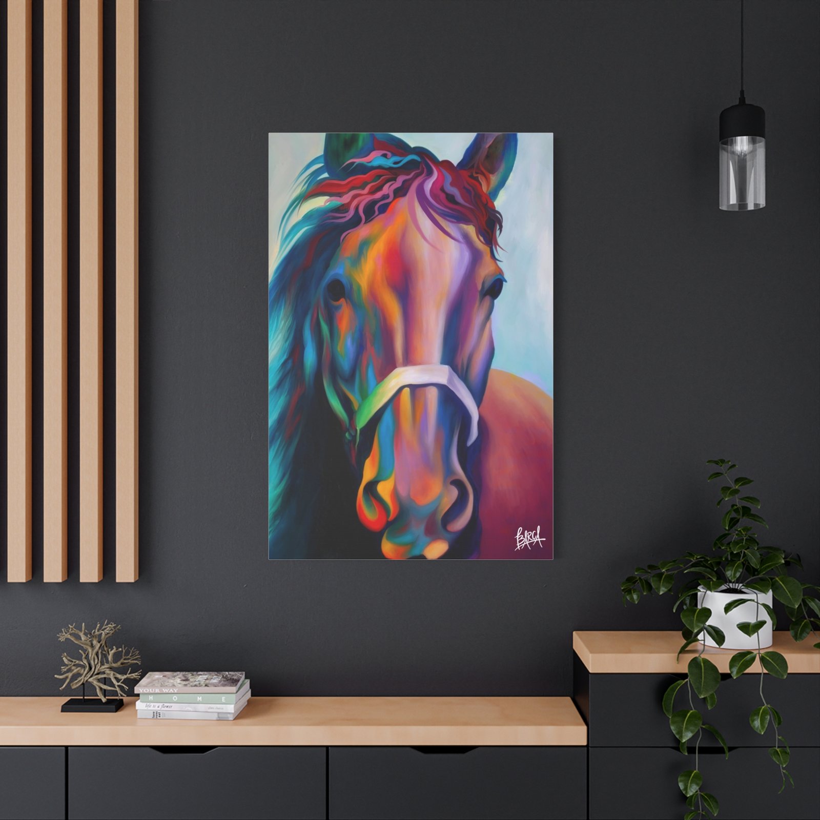 Elevate your space with this stunning canvas print that perfectly captures vibrant artistry. The energetic colors and intricate details of the design infuse any room with a lively atmosphere. It’s perfect for horse enthusiasts, art lovers, or anyone looking to add a splash of creativity to their decor. Ideal for home, office, or as an eye-catching statement piece for your gallery wall. Celebrate special occasions like birthdays, housewarmings, or holidays with this unique gift that will surely delight friends and family. Embrace your passion for art and nature with this lovely addition that enhances the ambiance of your living space.