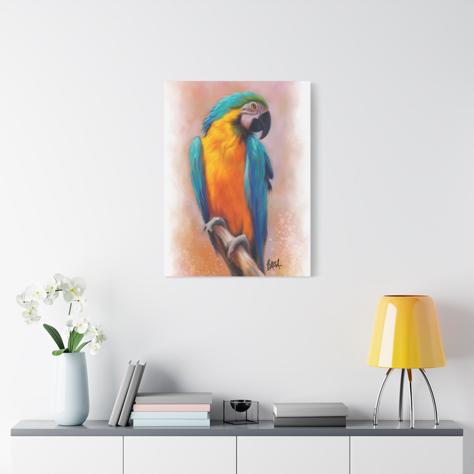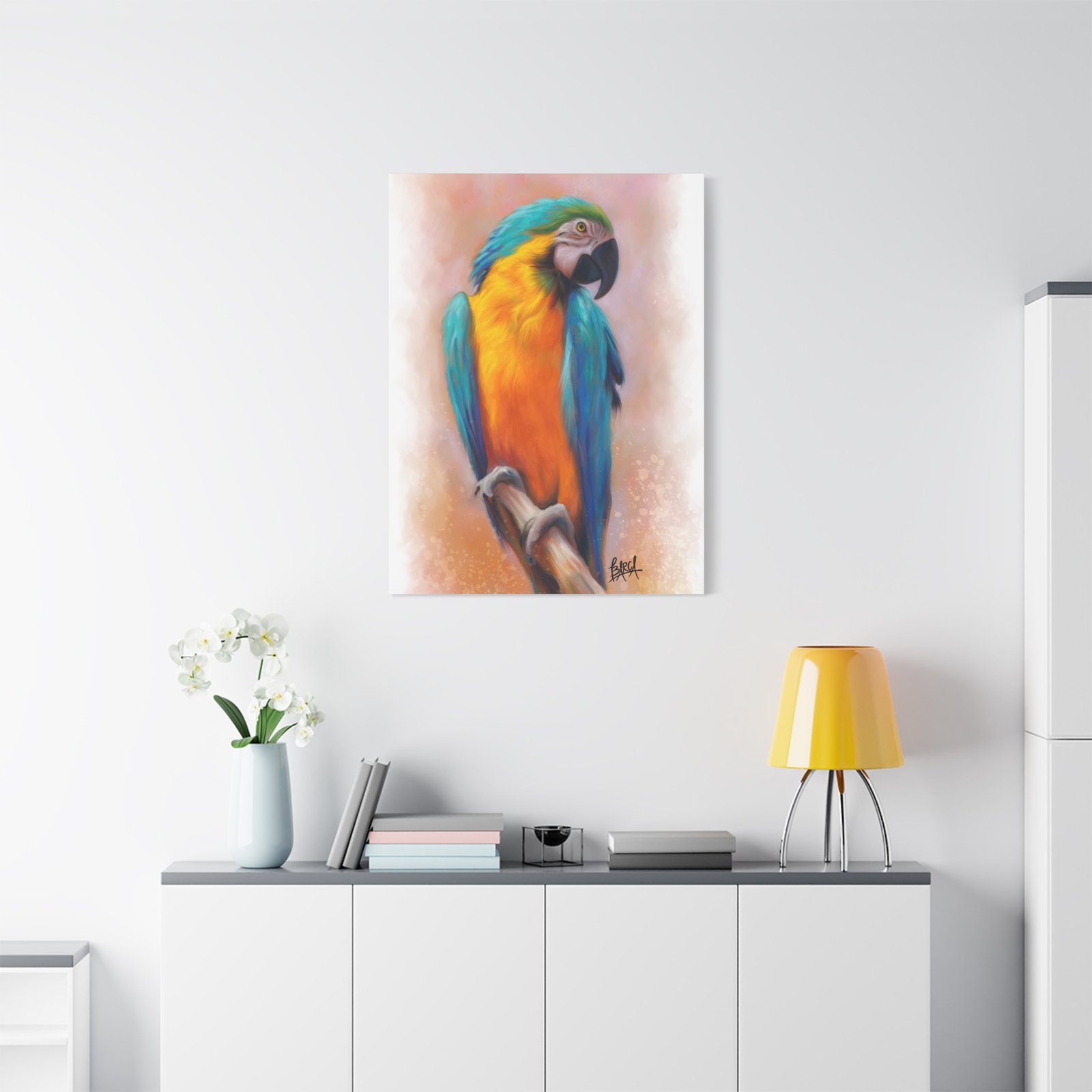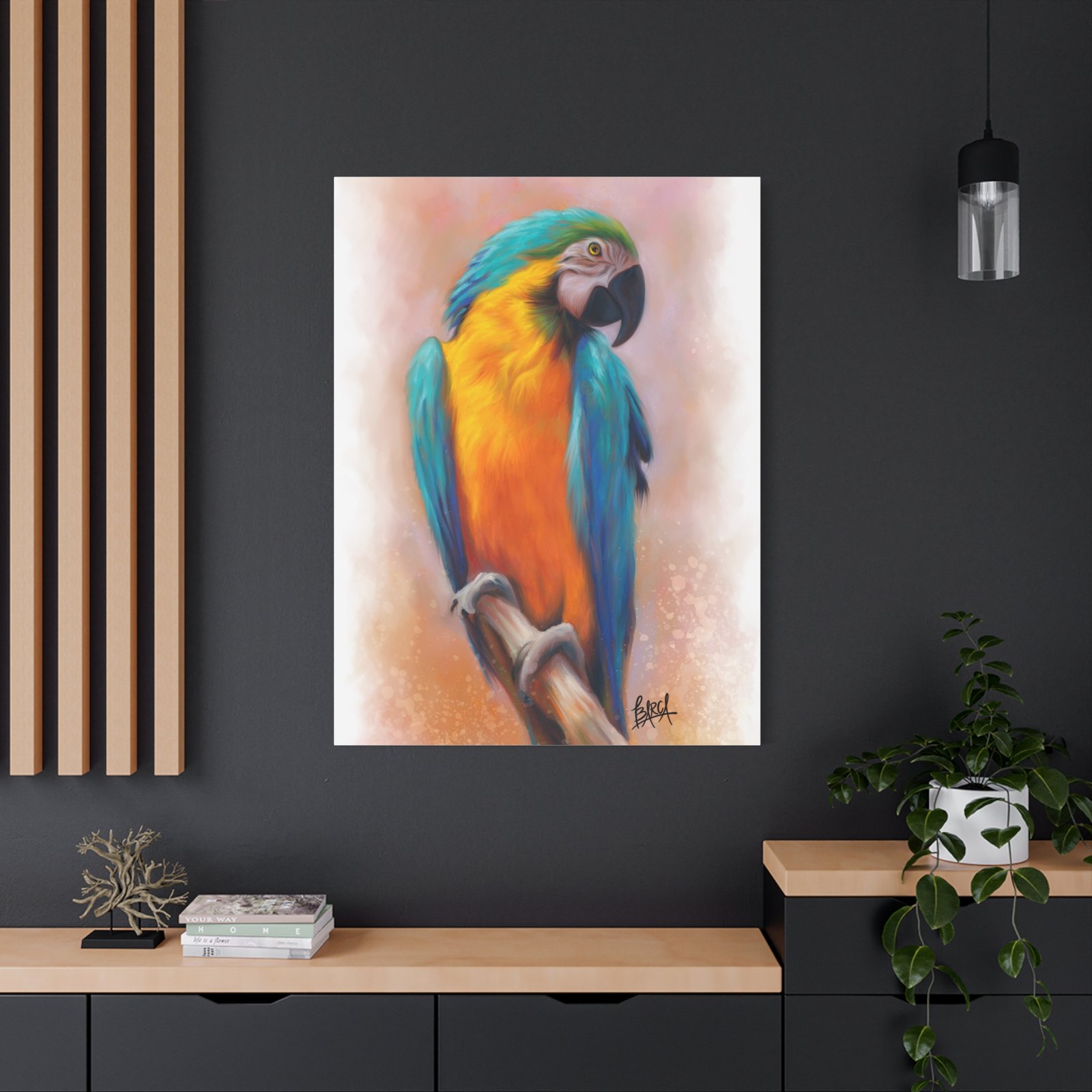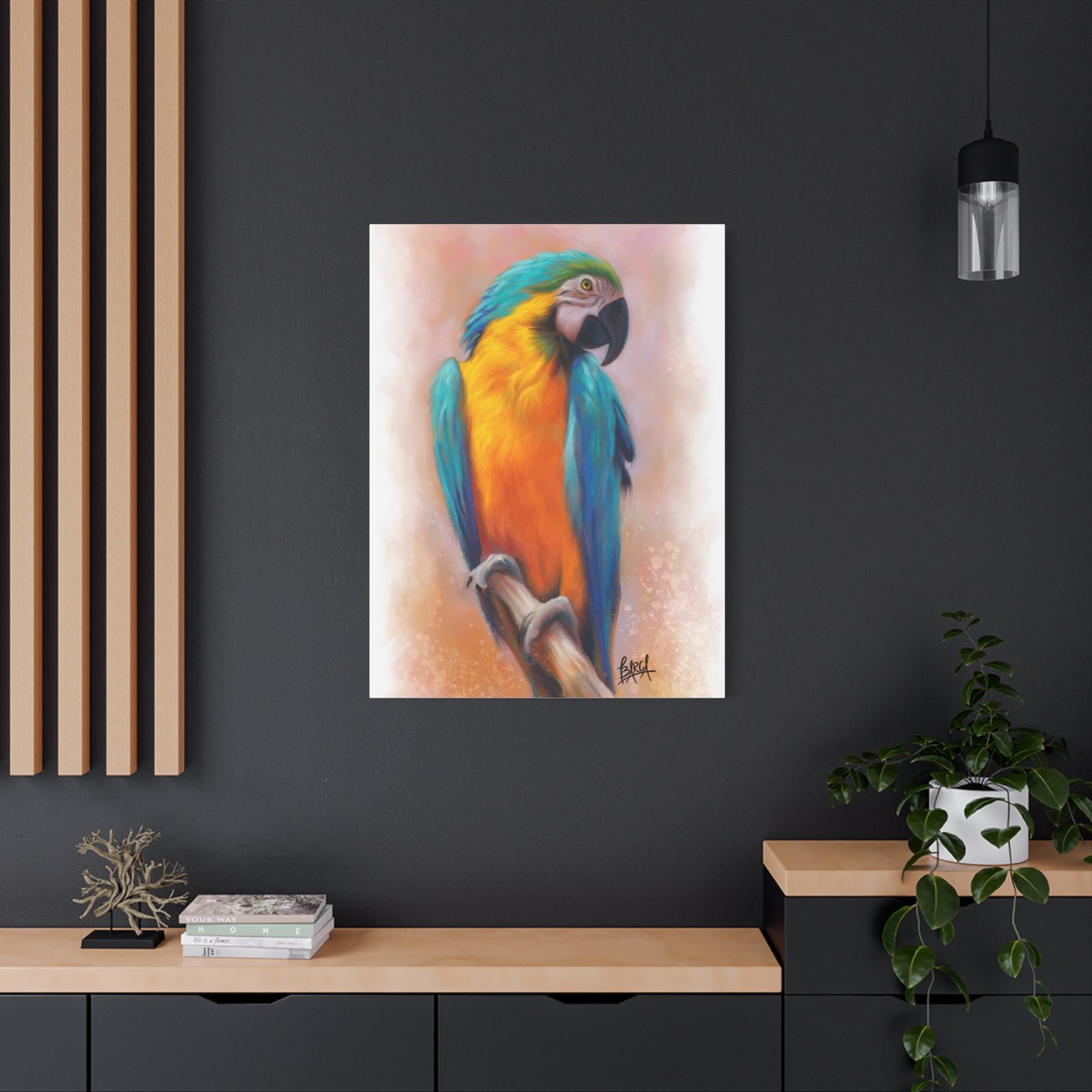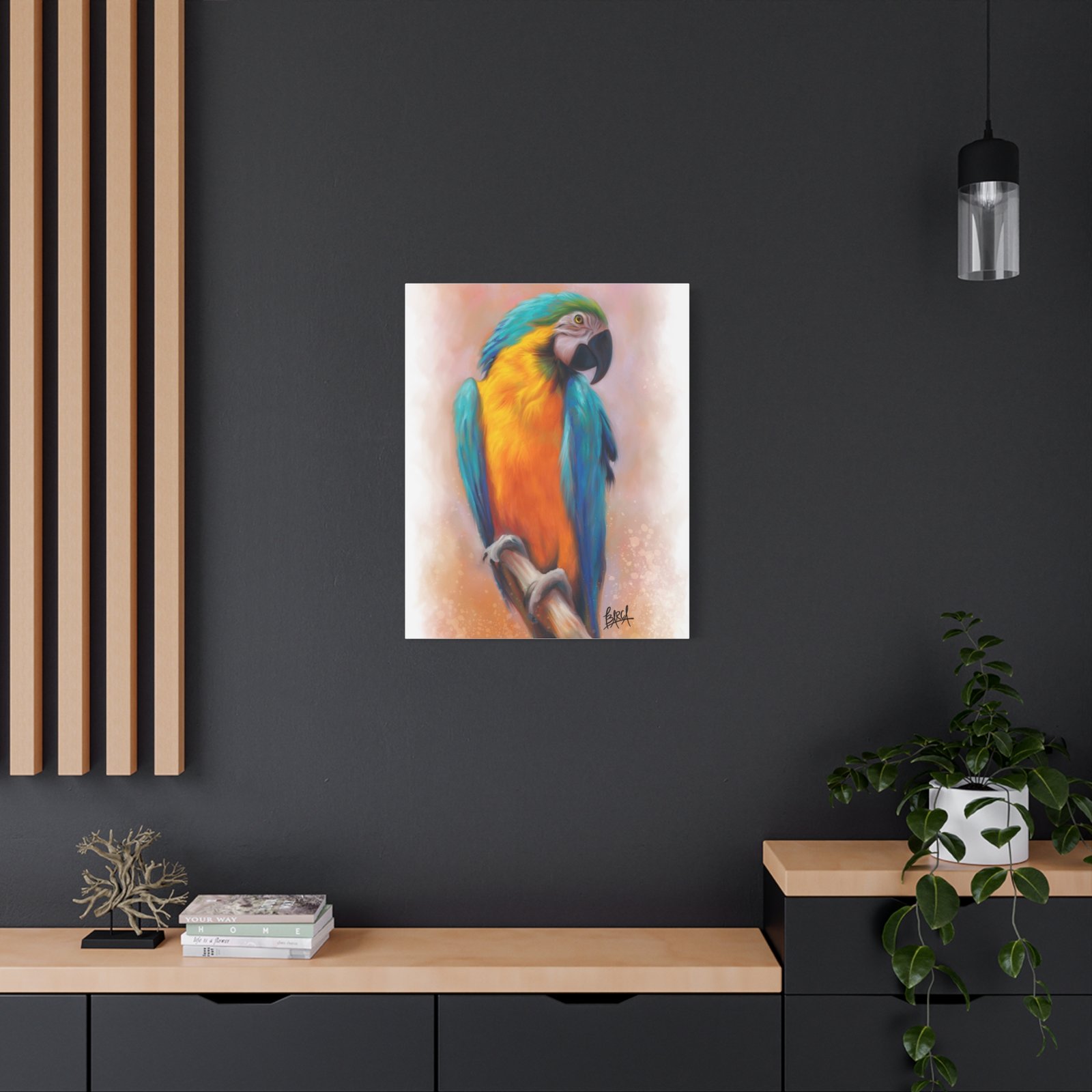 This stunning Stretched Canvas brings vibrant color and life to any space. The detailed imagery featuring a beautifully rendered parrot creates a tropical vibe, perfect for those who appreciate nature and artistry. Ideal for brightening up your home, office, or studio, this canvas print makes an excellent gift for art lovers and bird enthusiasts alike. It’s perfect for occasions such as housewarmings, birthdays, or as a unique piece to celebrate an anniversary. Transform your surroundings into a serene oasis, evoking a sense of relaxation and inspiration with every glance at this exquisite artwork.