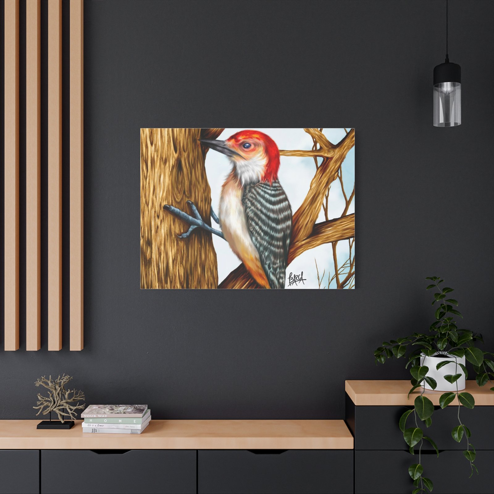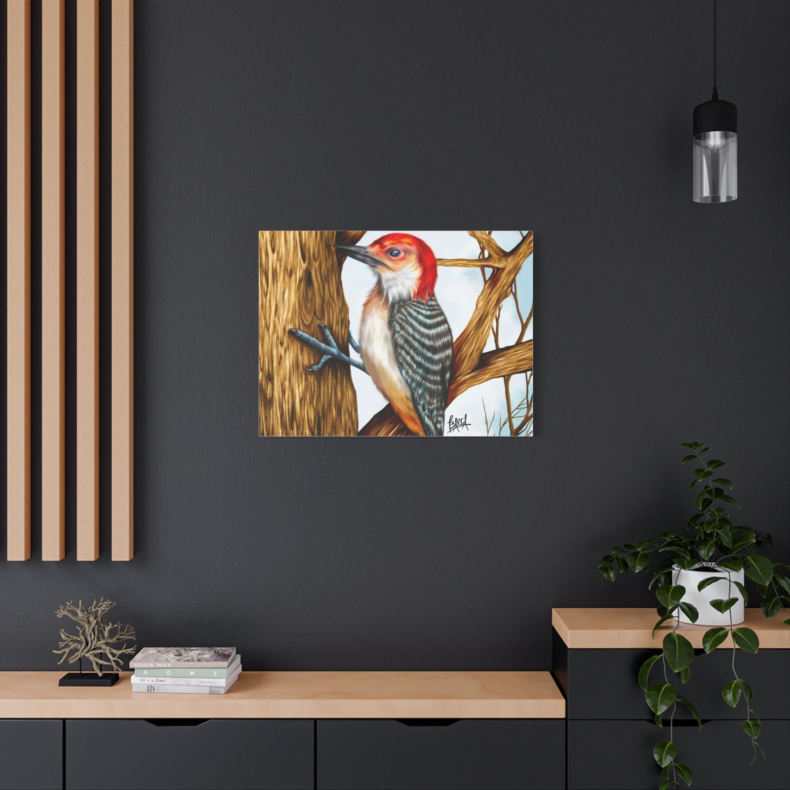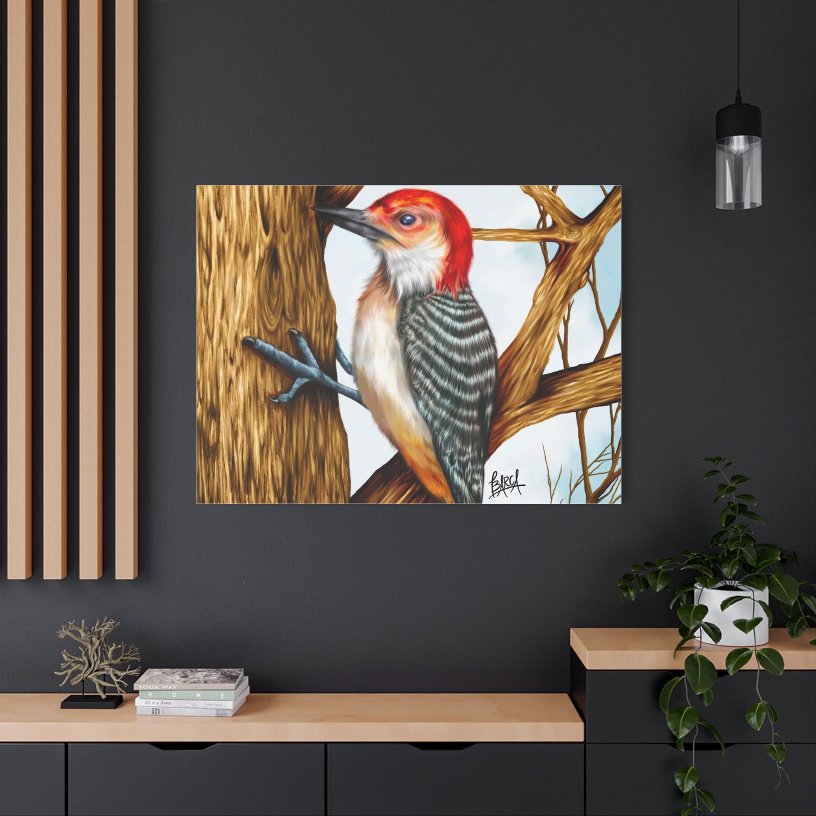 Animal Art Canvas – Stretched Canvas Artwork – Vibrant Woodpecker Design, Wall Decor, Nature-Inspired Art, Bird Lovers Gift, Home & Office Decoration