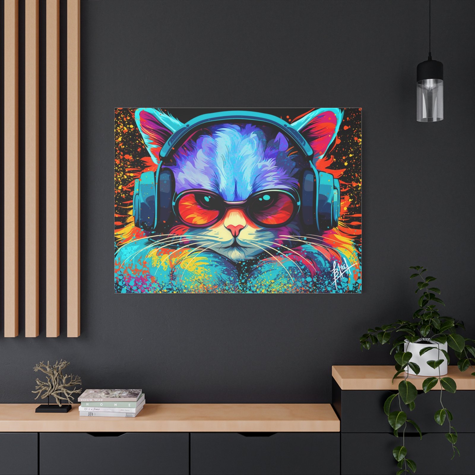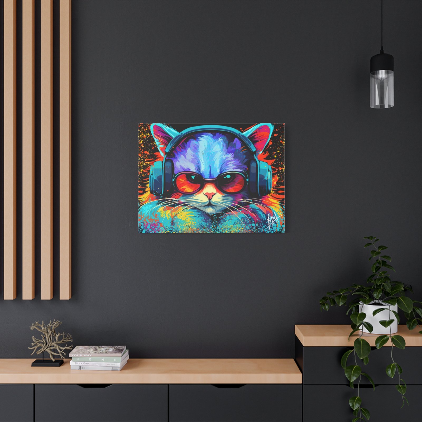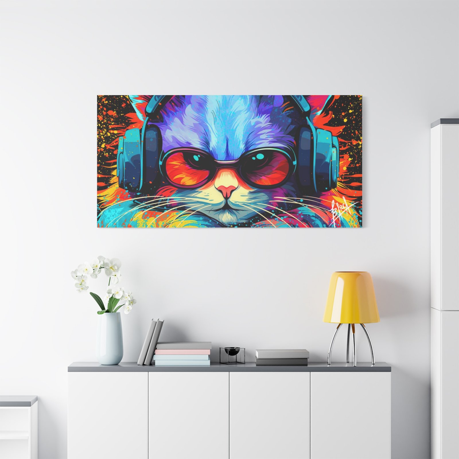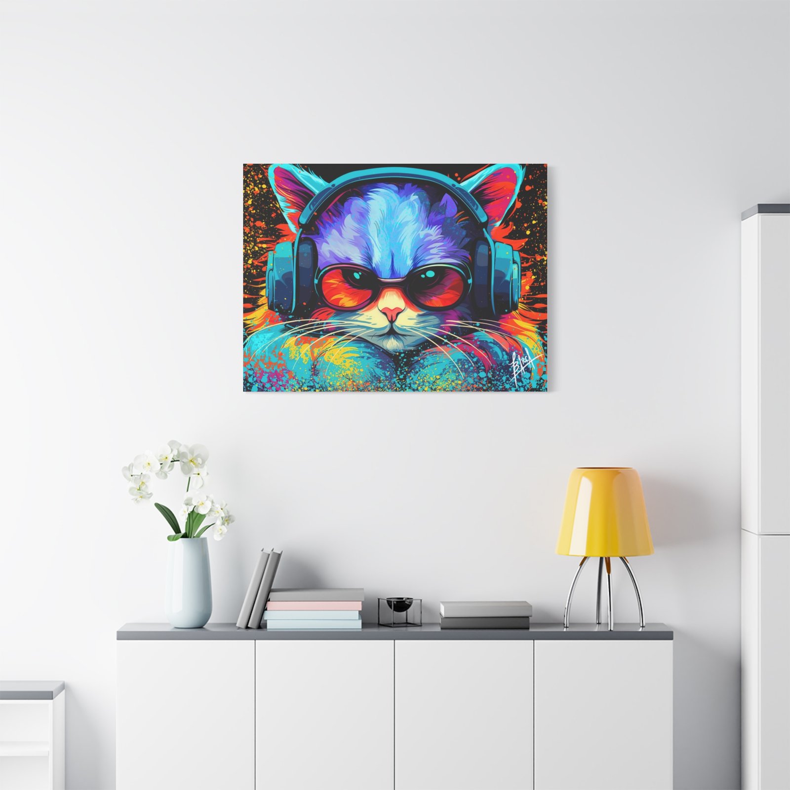 Elevate your space with this stunning matte canvas, perfect for cat lovers and art enthusiasts alike. The vibrant colors and unique design bring a lively and energetic vibe, making it an eye-catching focal point in any room. Ideal for decorating your home office, living room, or bedroom, this canvas adds a touch of personality and fun to your decor. It’s perfect for gifting on occasions such as birthdays, holidays, or housewarming celebrations. This product resonates with those who appreciate art that brightens their space and showcases their unique style.
