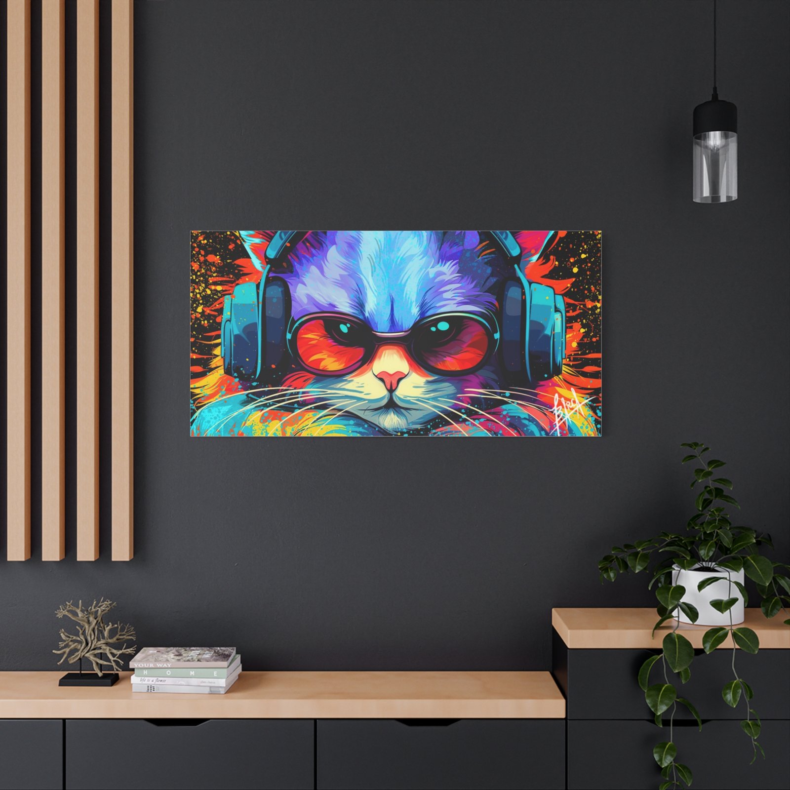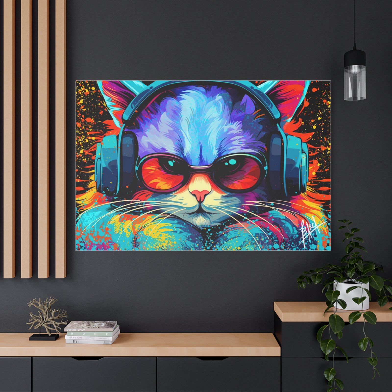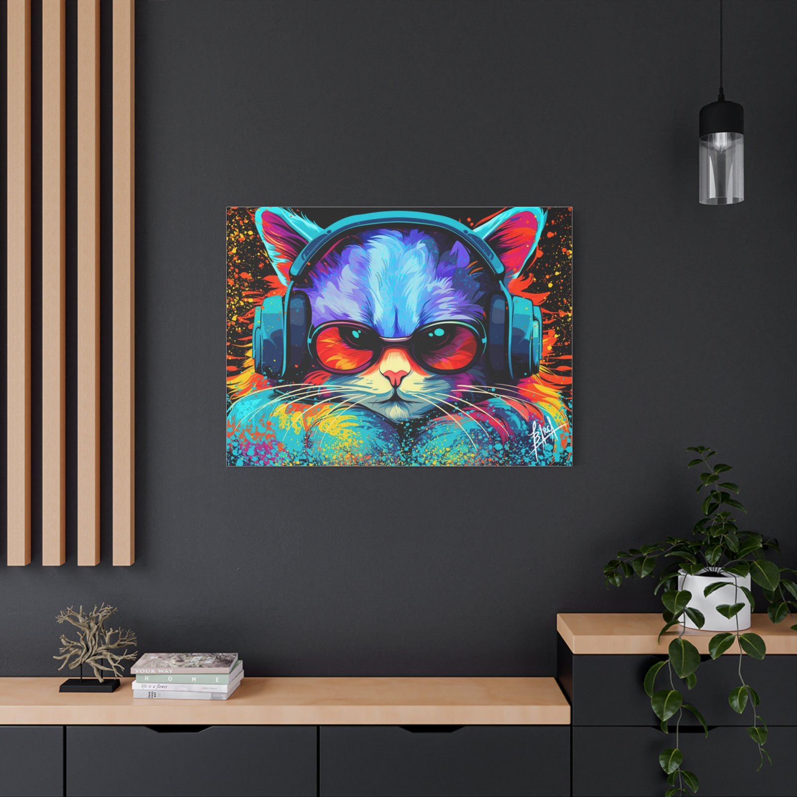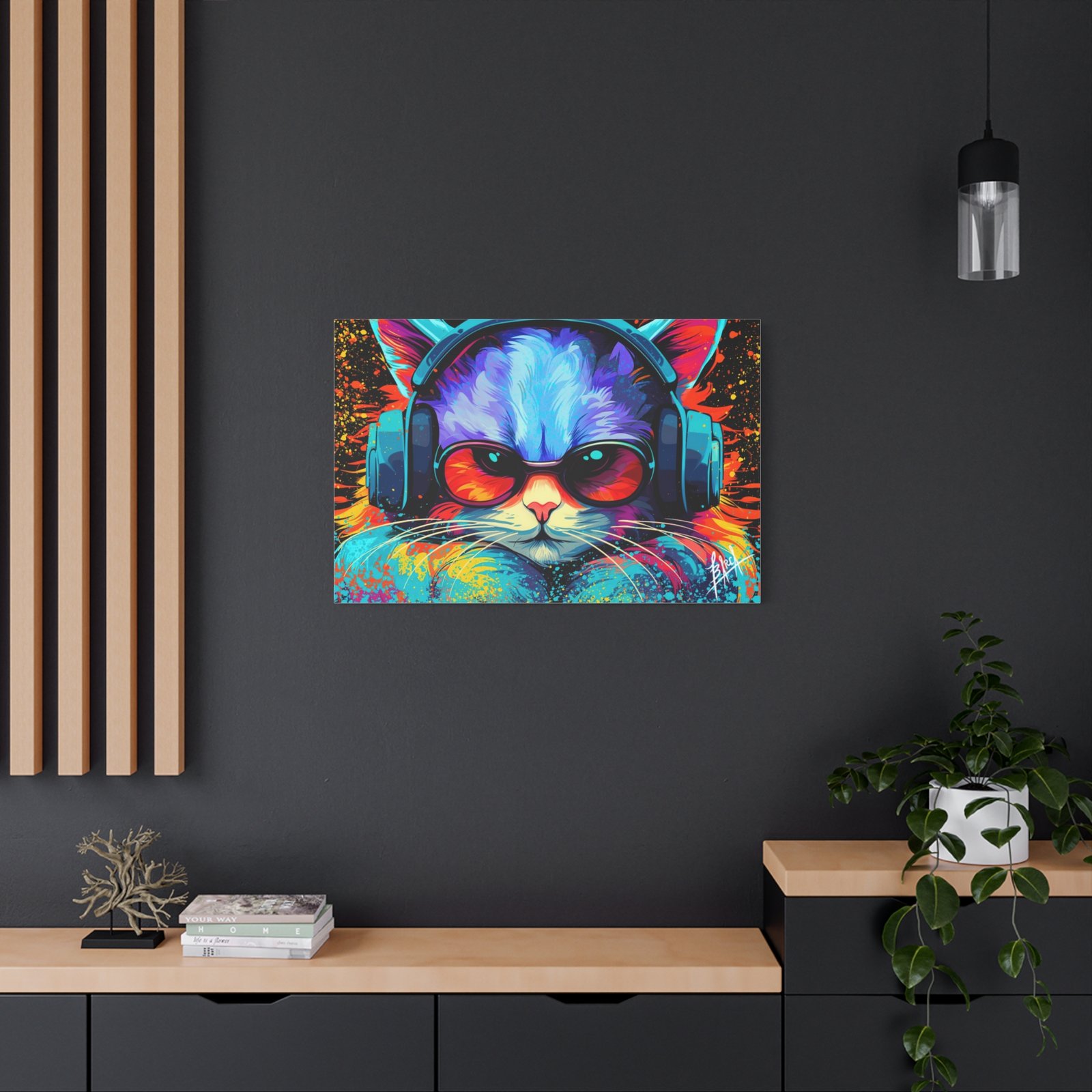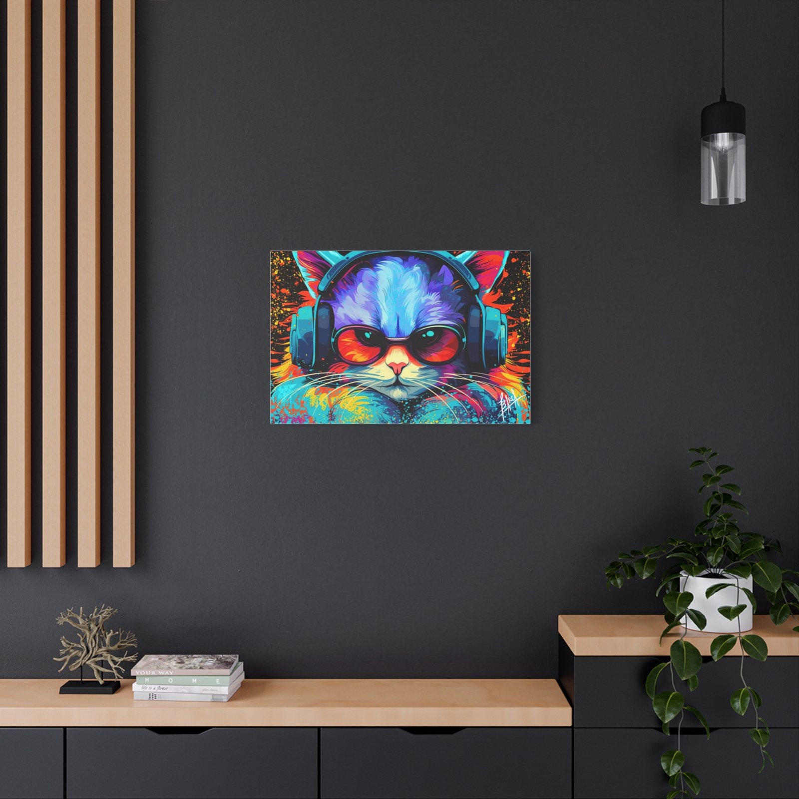 Elevate your space with this stunning matte canvas, perfect for cat lovers and art enthusiasts alike. The vibrant colors and unique design bring a lively and energetic vibe, making it an eye-catching focal point in any room. Ideal for decorating your home office, living room, or bedroom, this canvas adds a touch of personality and fun to your decor. It’s perfect for gifting on occasions such as birthdays, holidays, or housewarming celebrations. This product resonates with those who appreciate art that brightens their space and showcases their unique style.