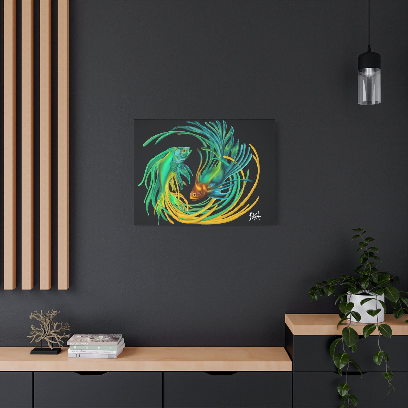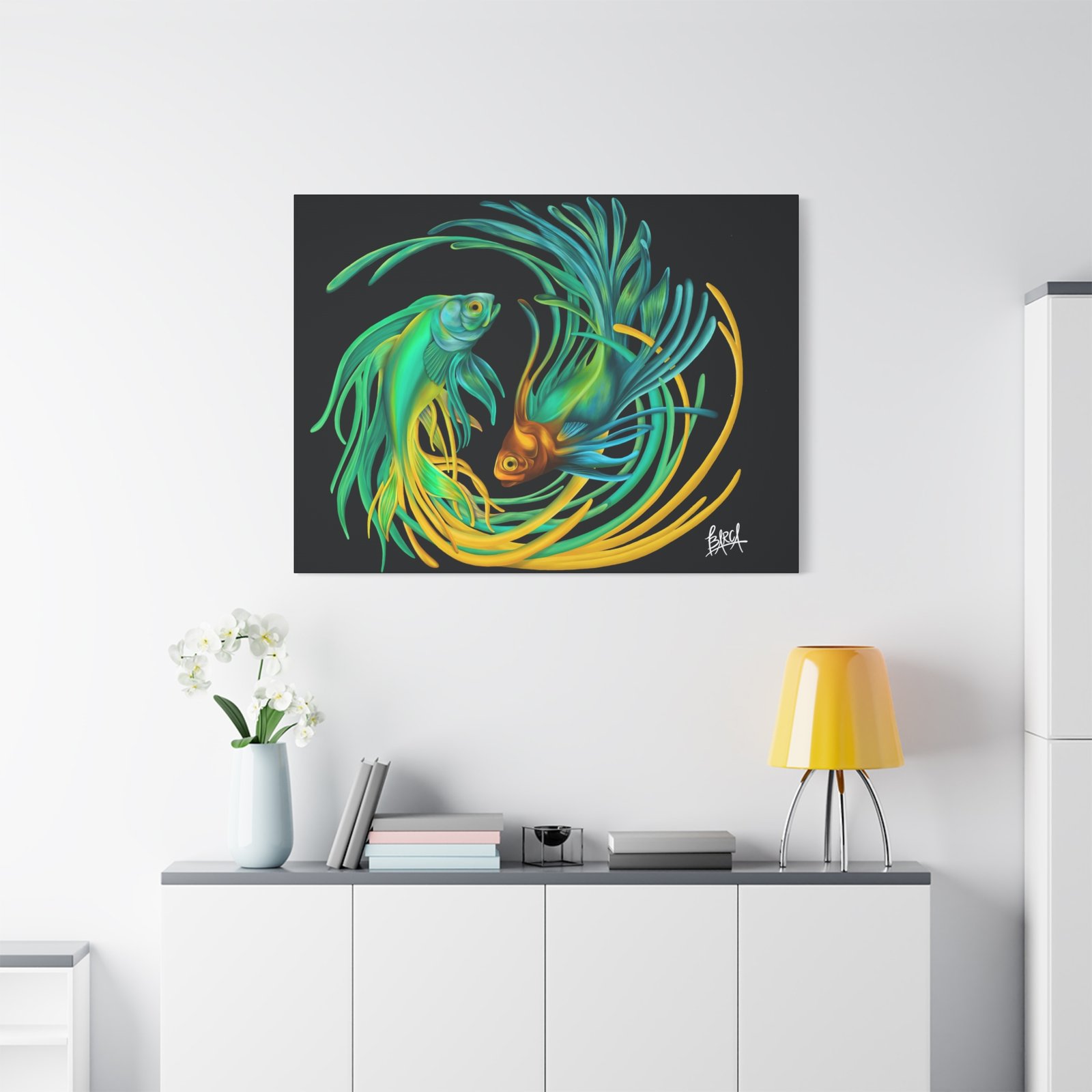 This stunning Matte Canvas artwork features a vibrant design of graceful fish in a swirling motion, perfect for adding a dynamic touch to any room. The canvas provides a sense of tranquility and fluidity, making it an ideal centerpiece for living rooms, bedrooms, or creative spaces. It’s perfect for art lovers and those looking to express their personality through home decor. This piece complements a variety of decor styles, from modern to eclectic, and makes a thoughtful gift for housewarmings, birthdays, or holidays.