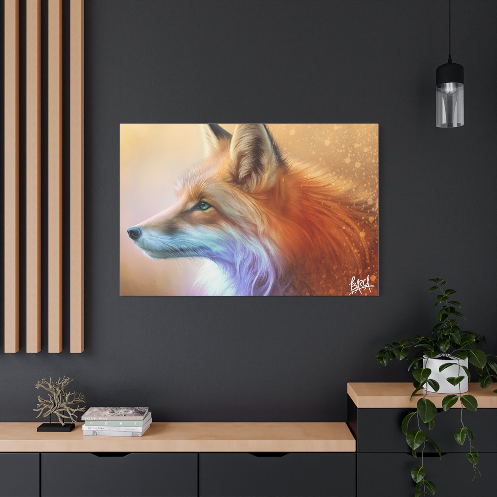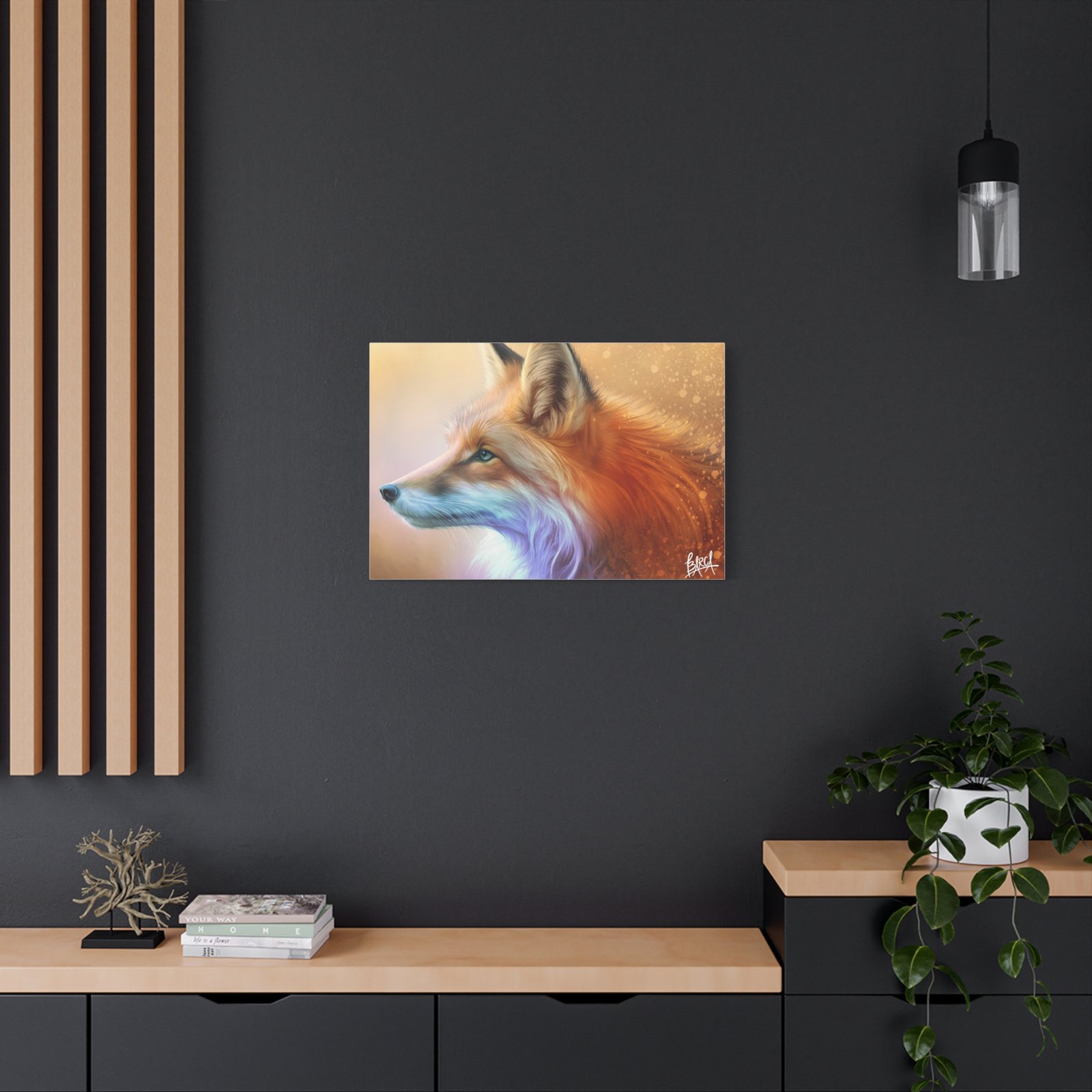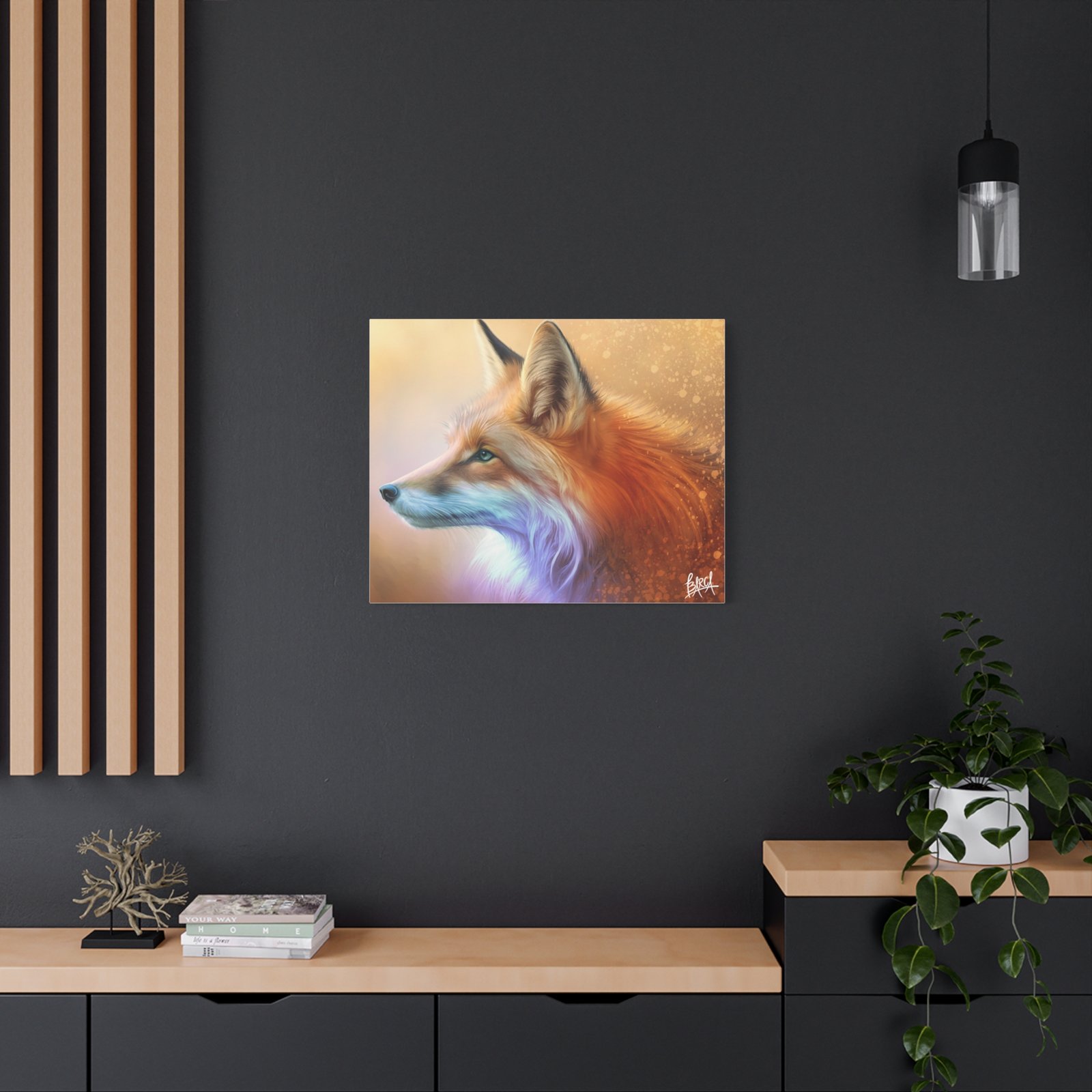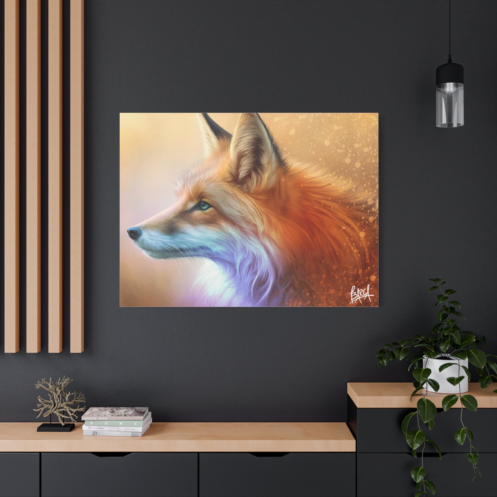 Transform your space with this stunning Matte Canvas print. Featuring a beautifully detailed portrait of a fox, this piece exudes warmth and elegance, perfect for creating a cozy atmosphere in your home or office. The rich colors and lifelike textures make it an eye-catching statement piece that will captivate art lovers and nature enthusiasts alike. Ideal for gifting during the holidays, housewarmings, or birthdays, this canvas print resonates with those who appreciate wildlife and fine art. Whether it be displayed in a living room, bedroom, or gallery wall, this unique artwork brings a touch of serenity and charm to any décor. Perfect for celebrating special occasions or simply enhancing everyday life.