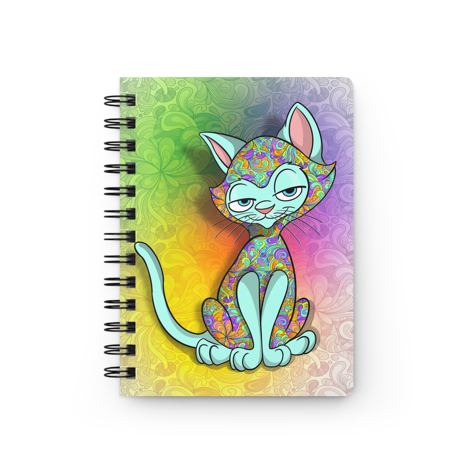 Sassy Cat Art – Colorful Psychedelic Sassy Cat Spiral Bound Journal, Floral Notebook, Gift for Cat Lovers, Artistic Journal for Writing, Cute Diary for Kids