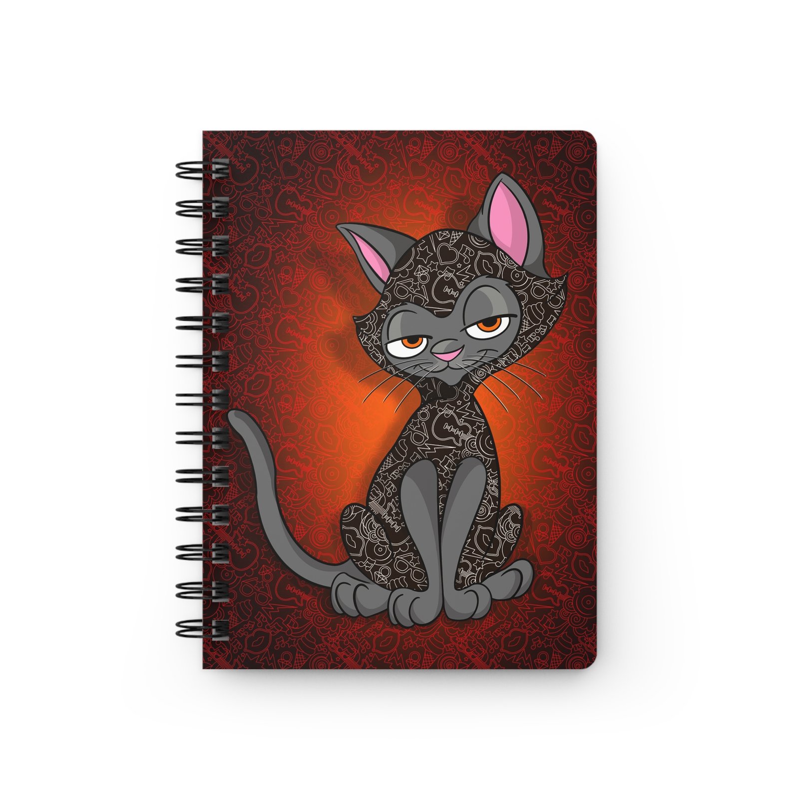 Sassy Cat Art – Cute Music Lover Sassy Cat Character Spiral Bound Journal, Cat Lovers Gift, Writing Notebook, Sketchbook, Gift for Kids, Halloween Journal