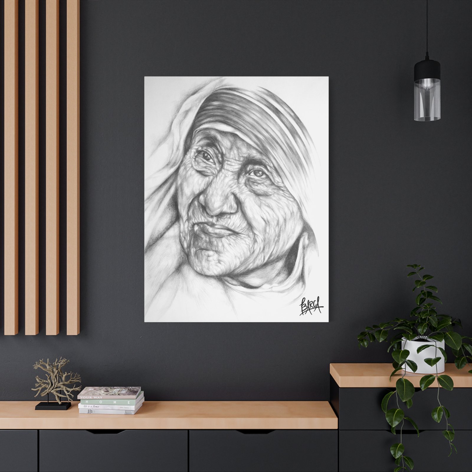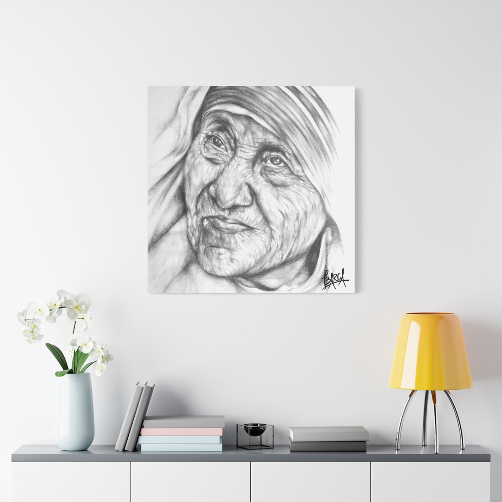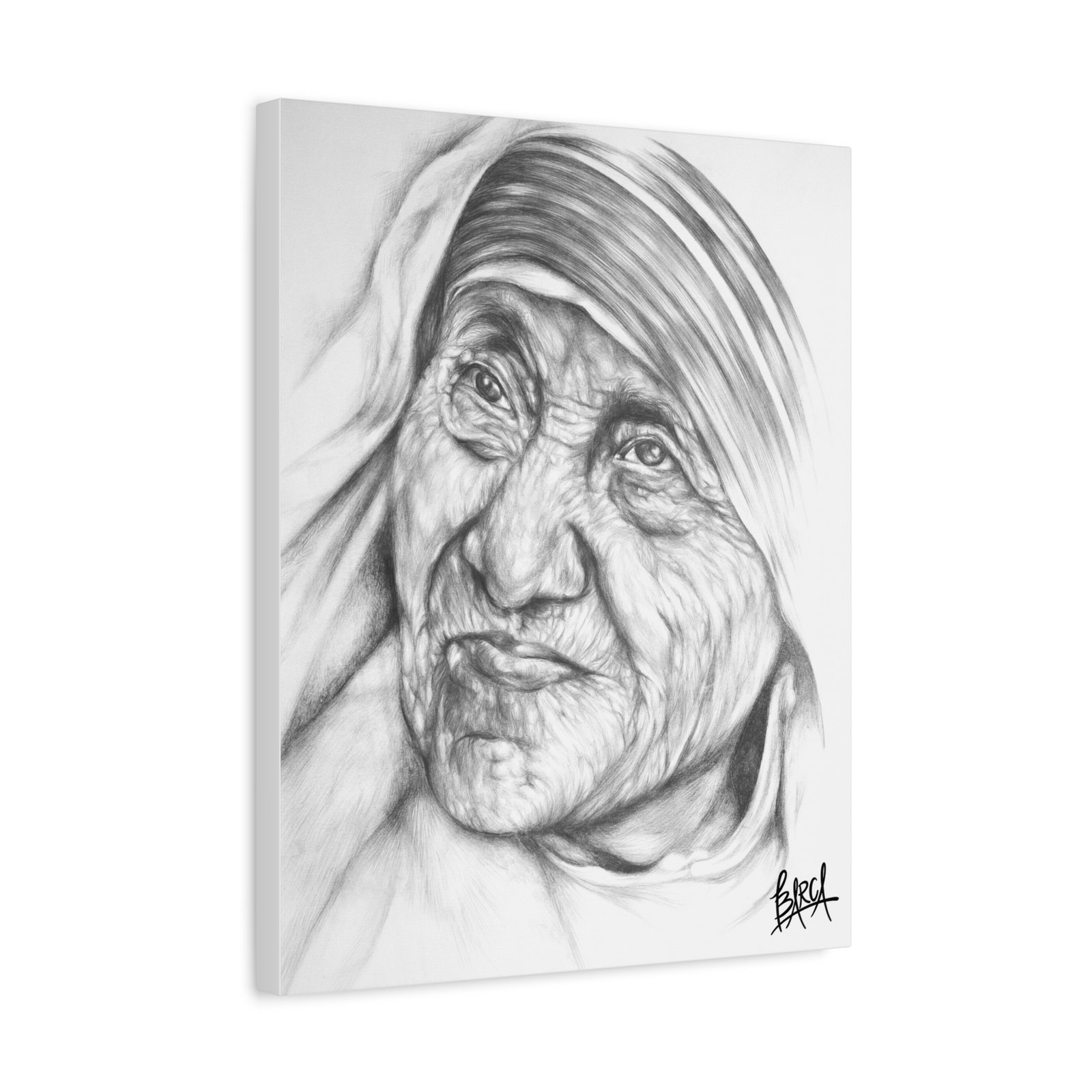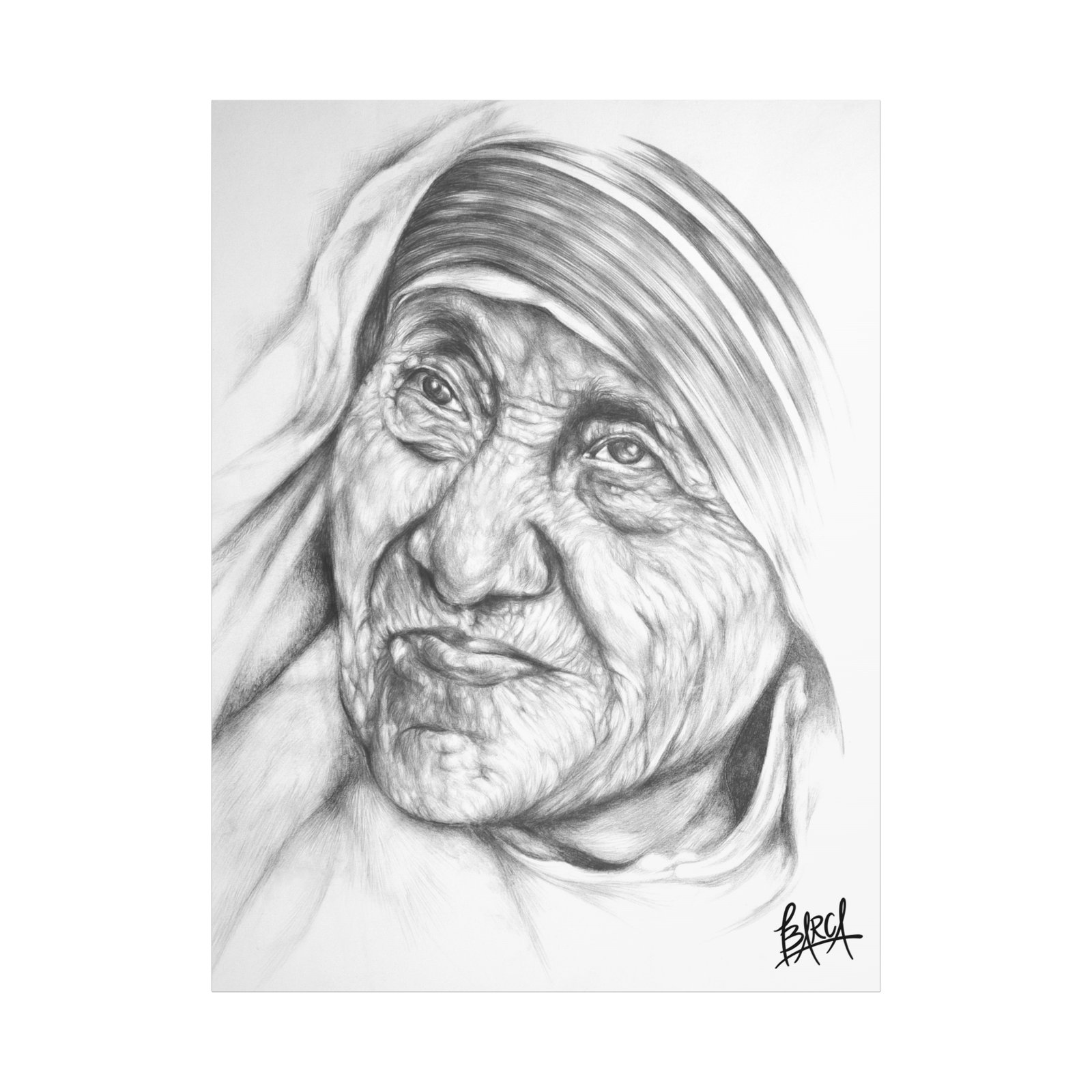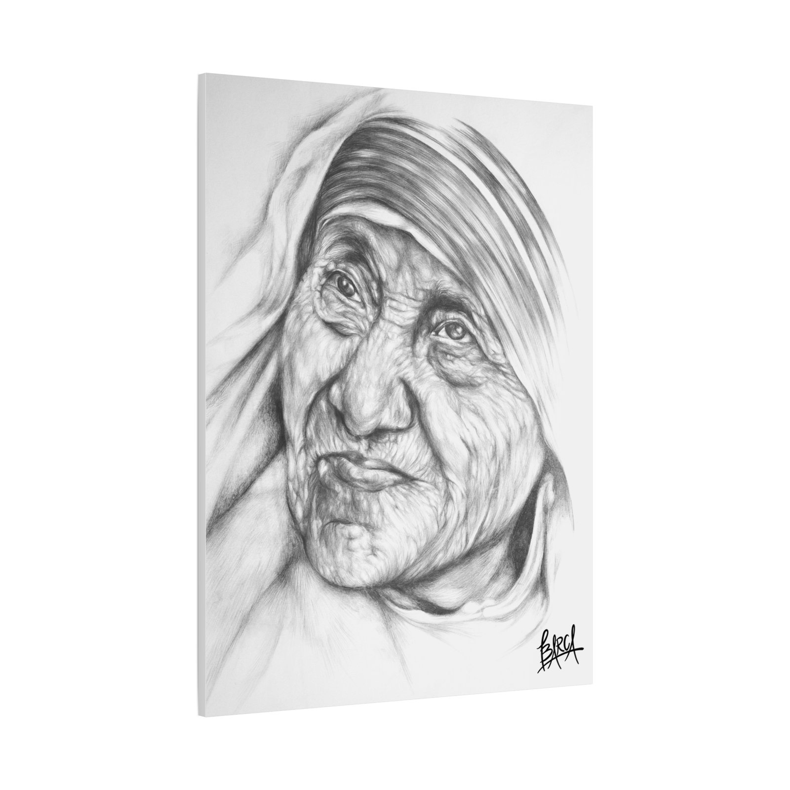 Graphite Pencil Art – Mother Theresa Matte Canvas Wall Art, Inspirational Home Decor, Black and White Artwork, Religious Gift, Motivational Office Decoration