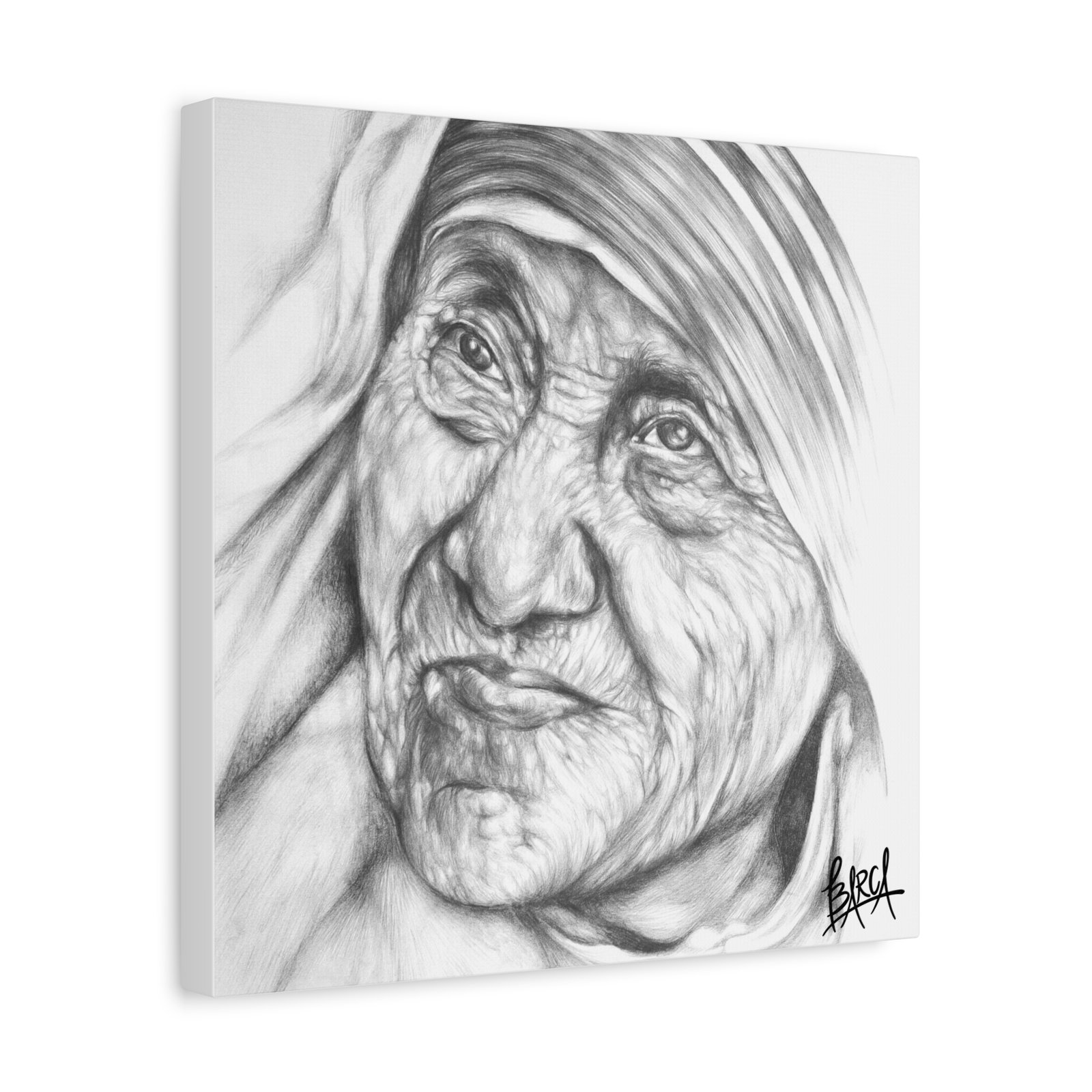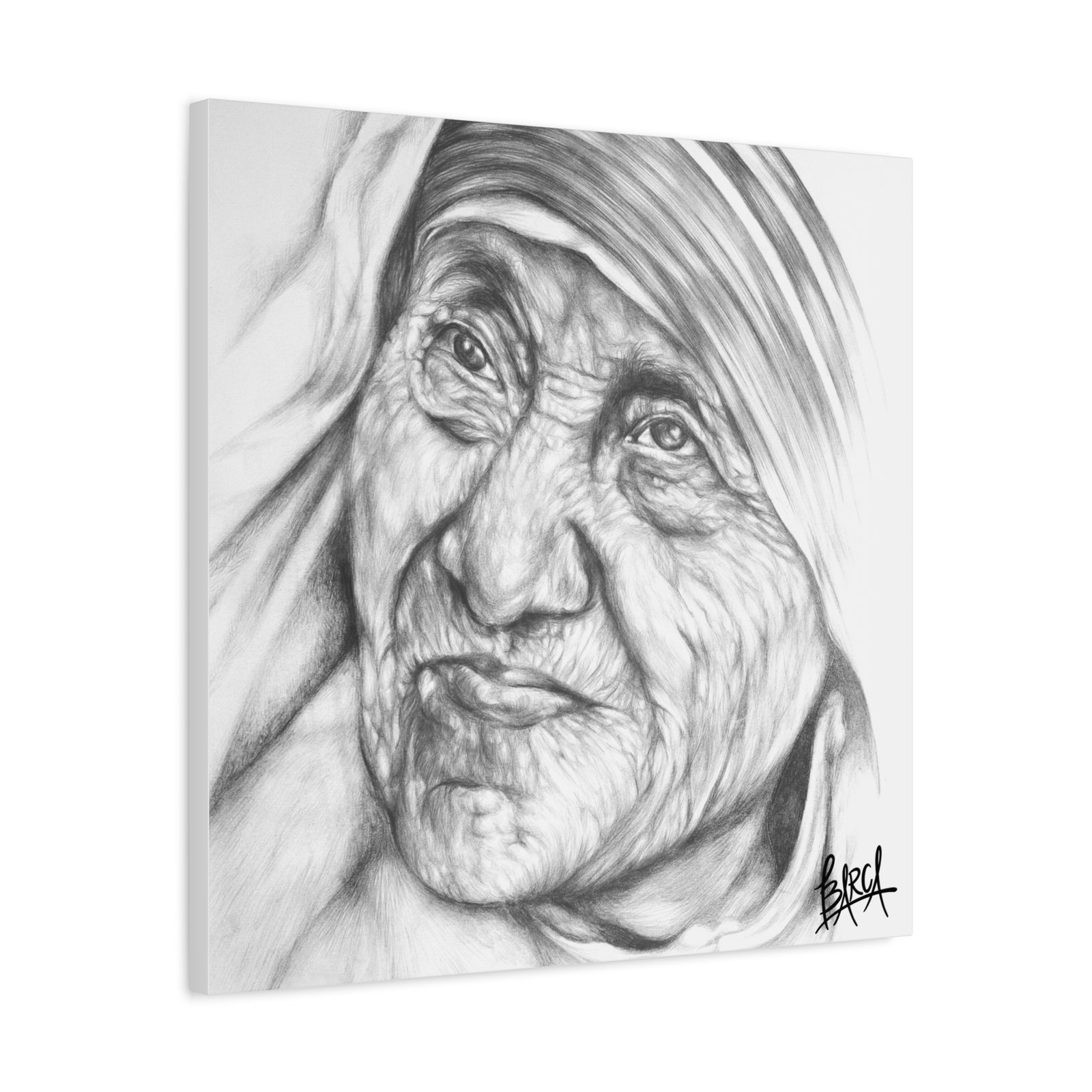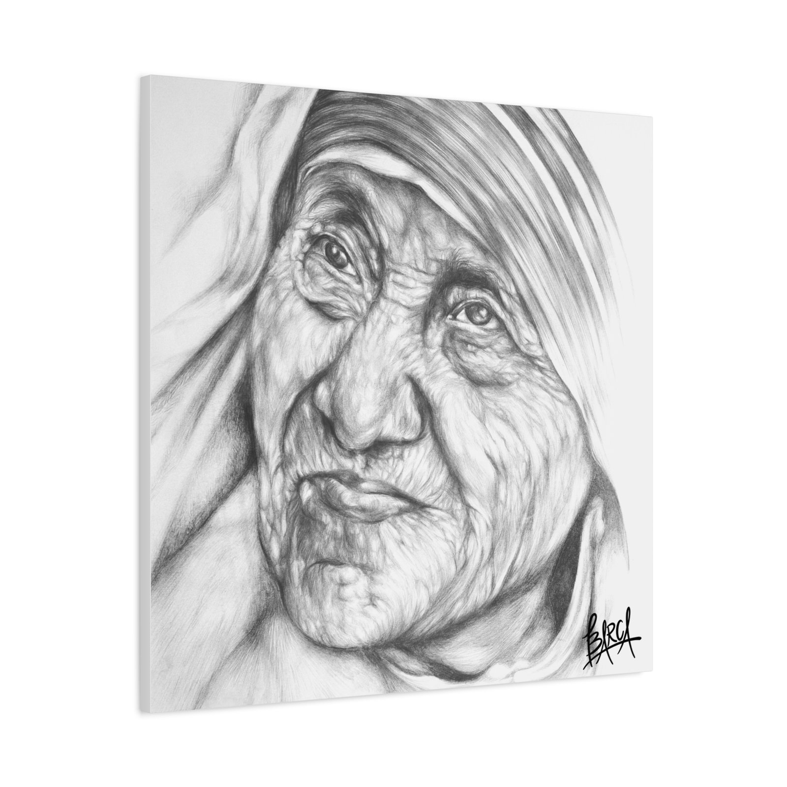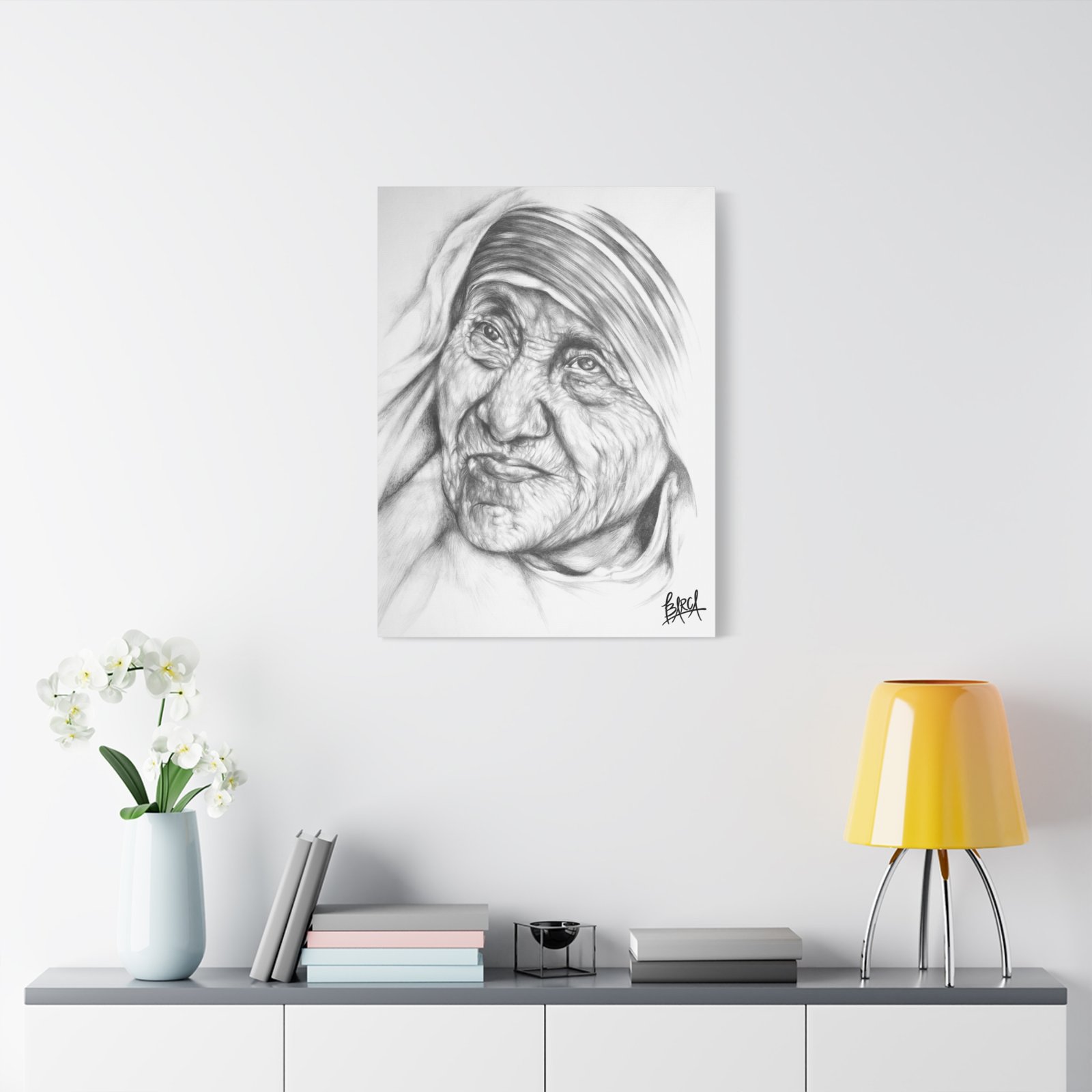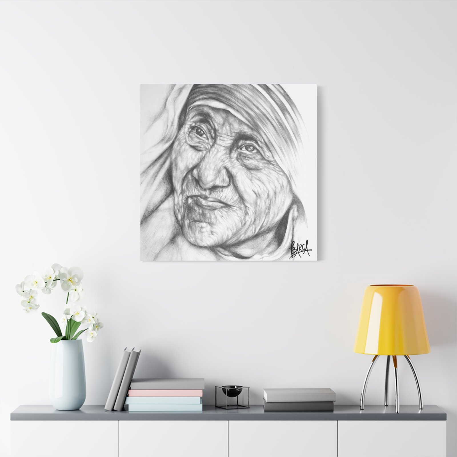 Graphite Pencil Art – Mother Theresa Matte Canvas Wall Art, Inspirational Home Decor, Black and White Artwork, Religious Gift, Motivational Office Decoration
