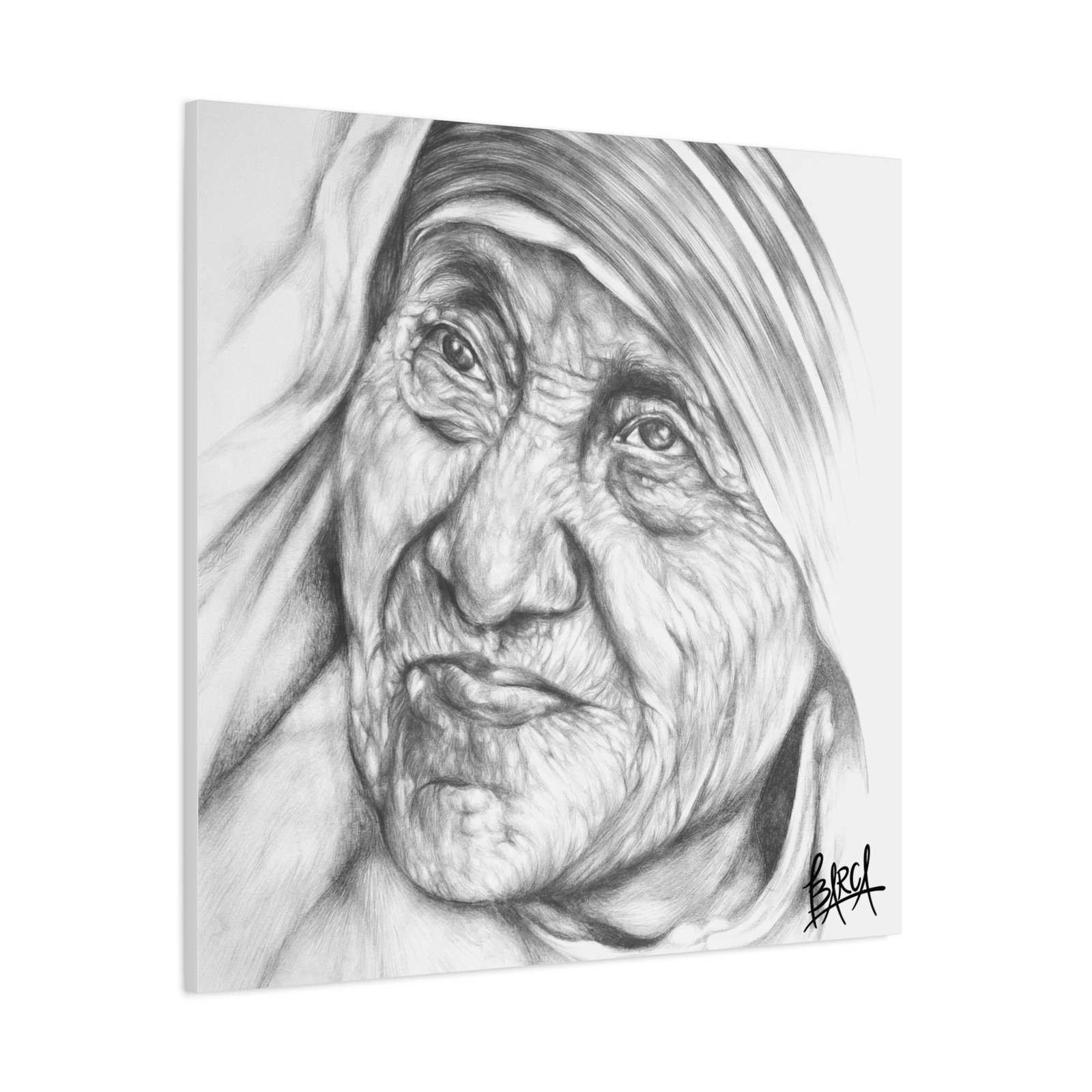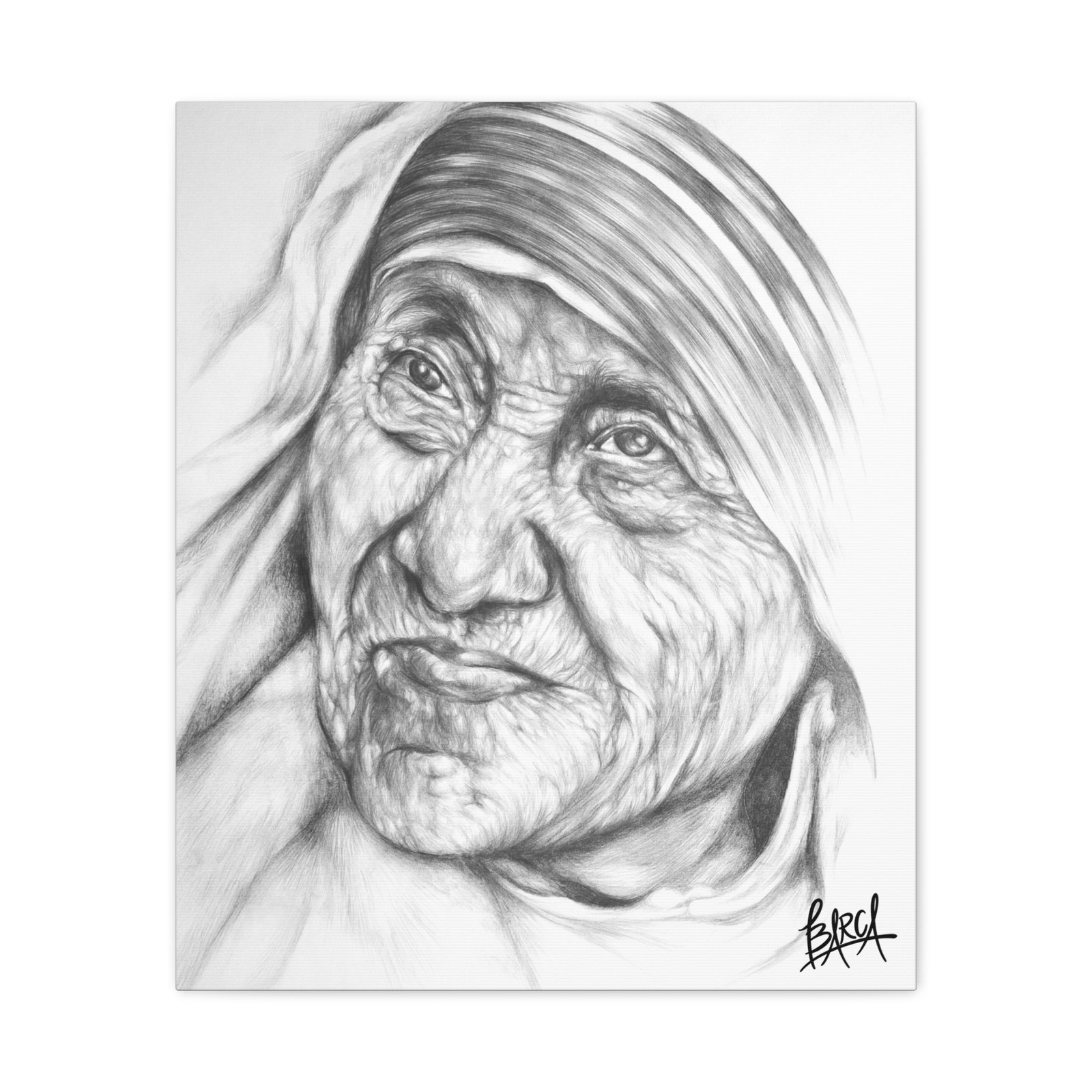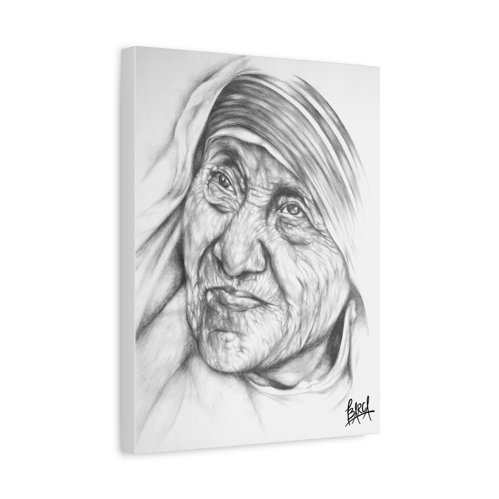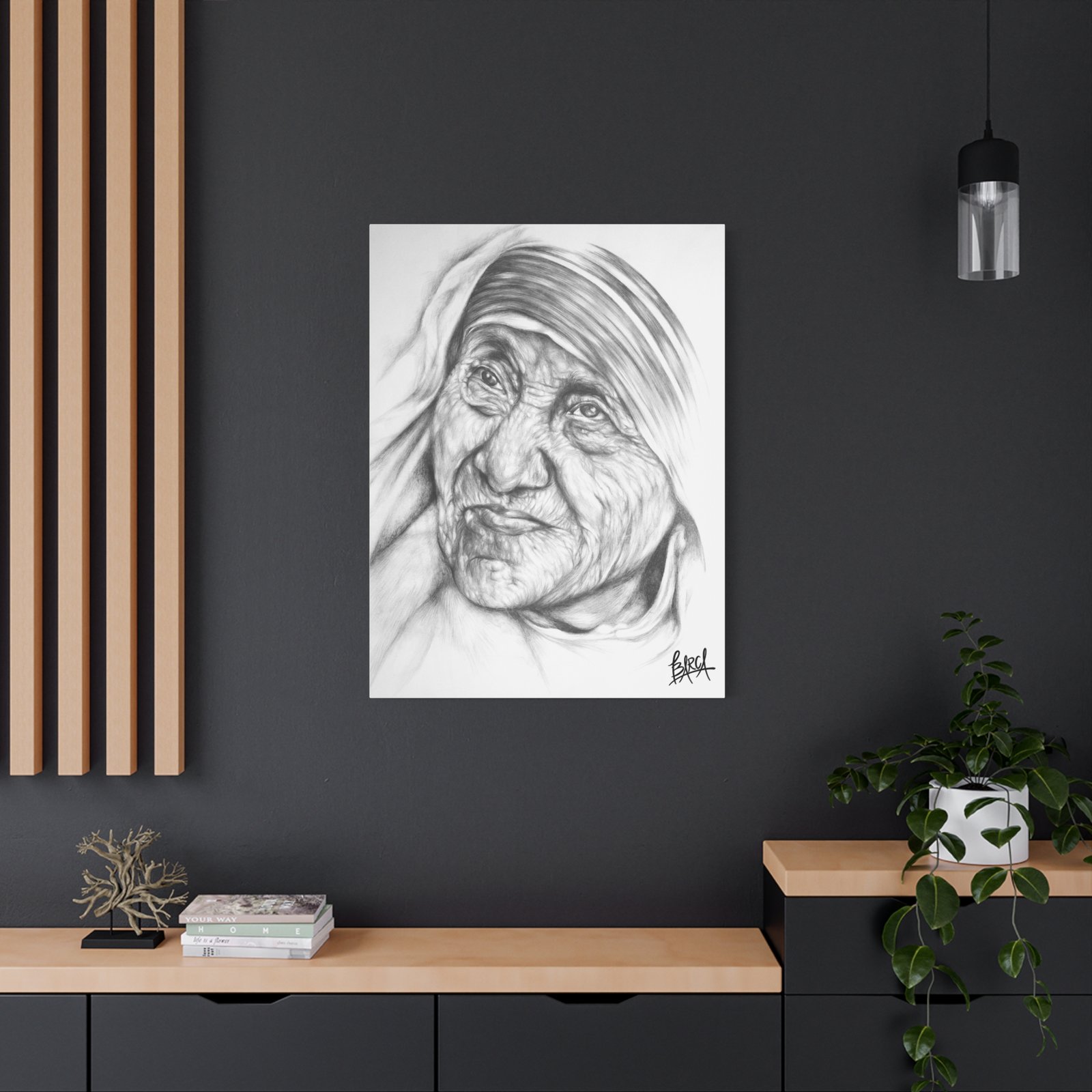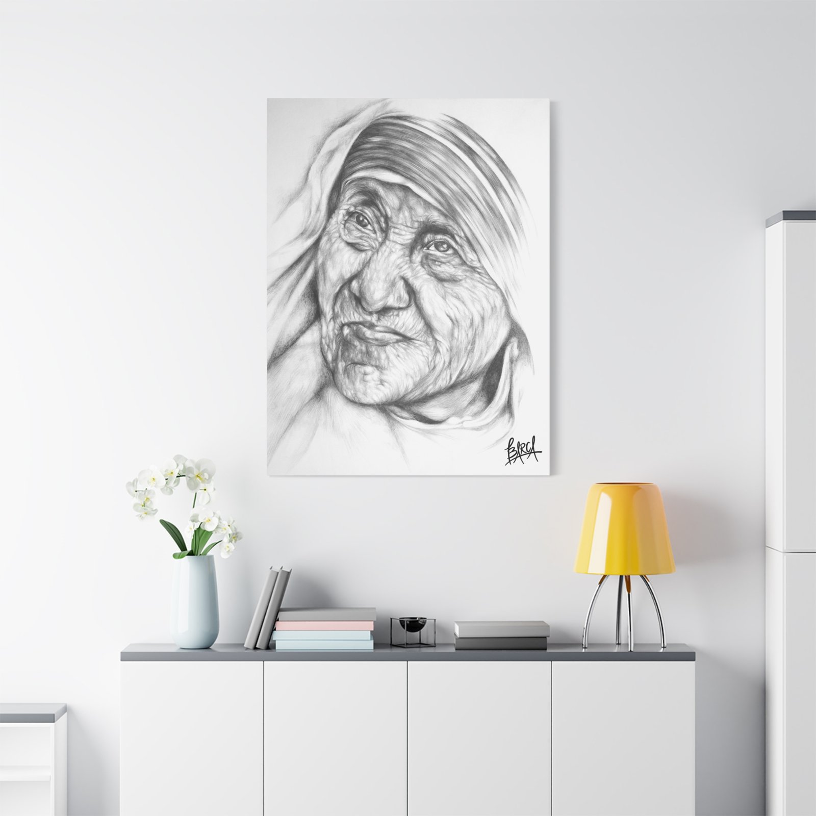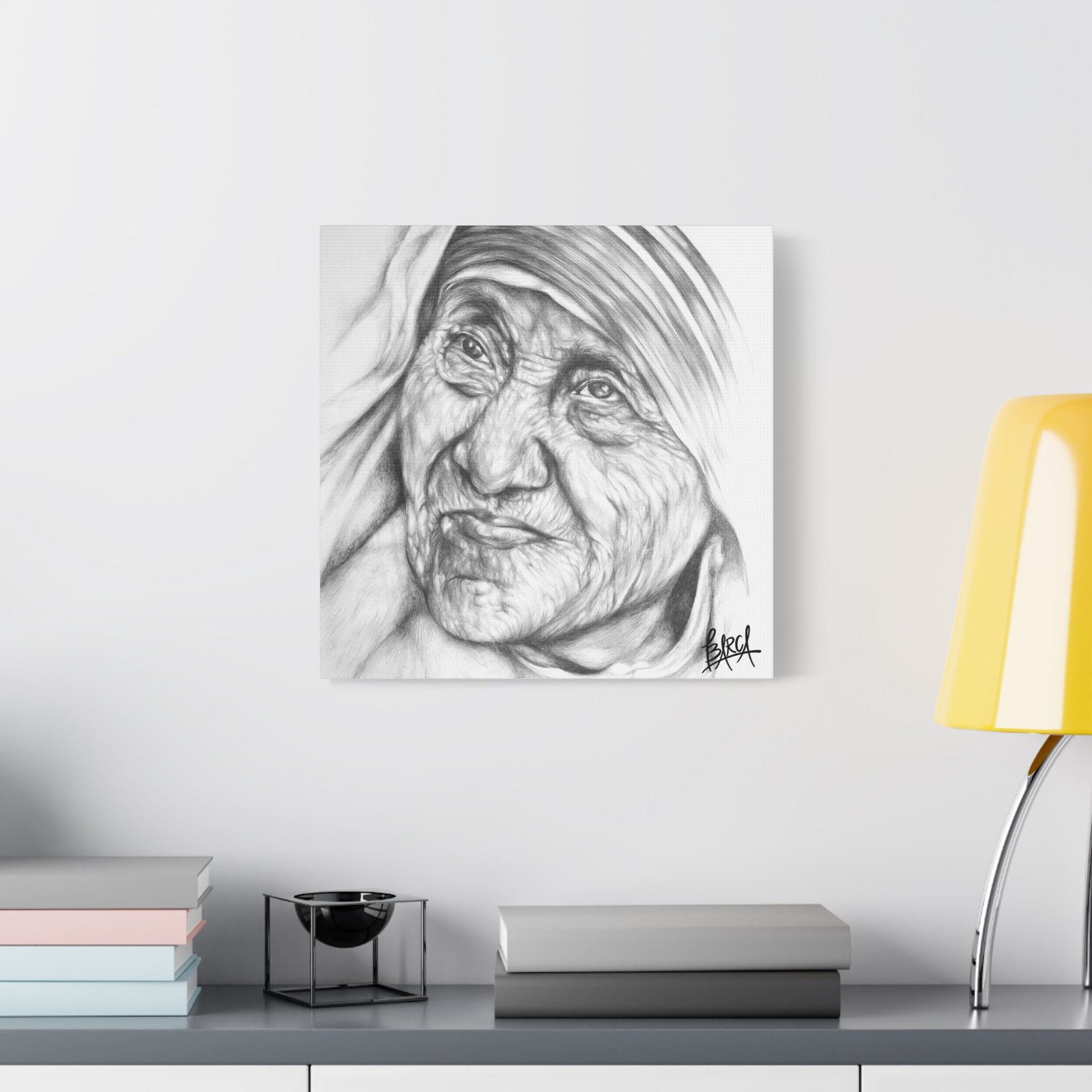 Graphite Pencil Art – Mother Theresa Matte Canvas Wall Art, Inspirational Home Decor, Black and White Artwork, Religious Gift, Motivational Office Decoration