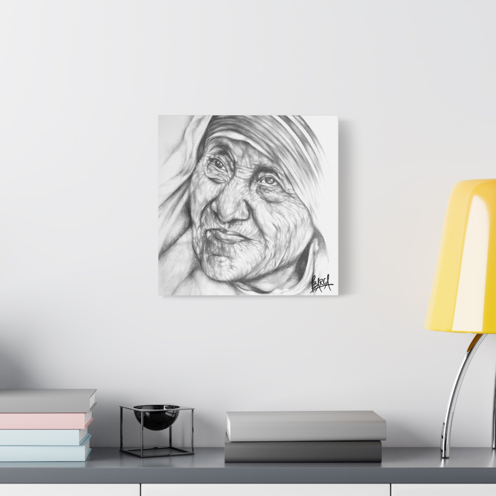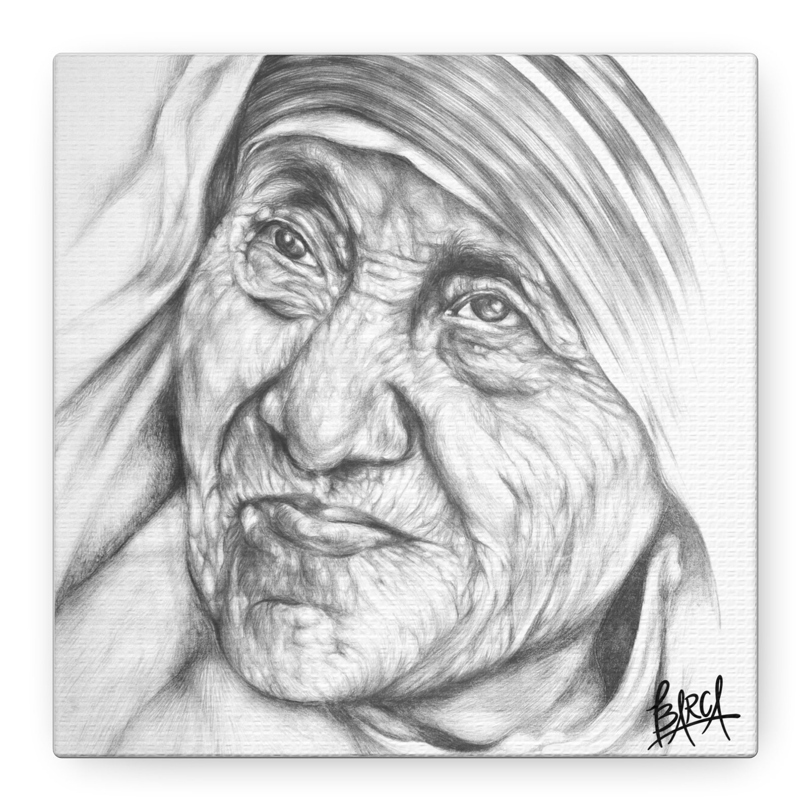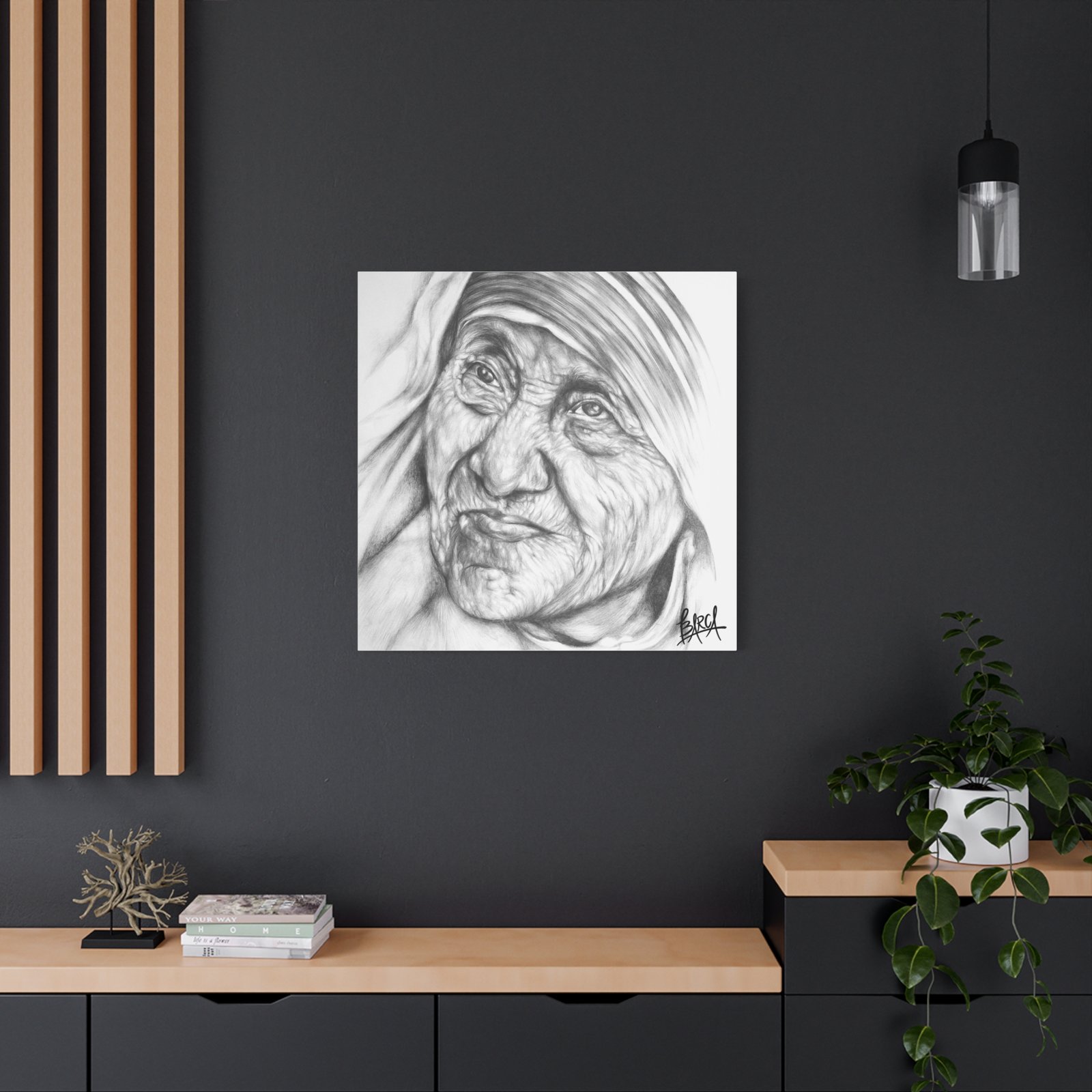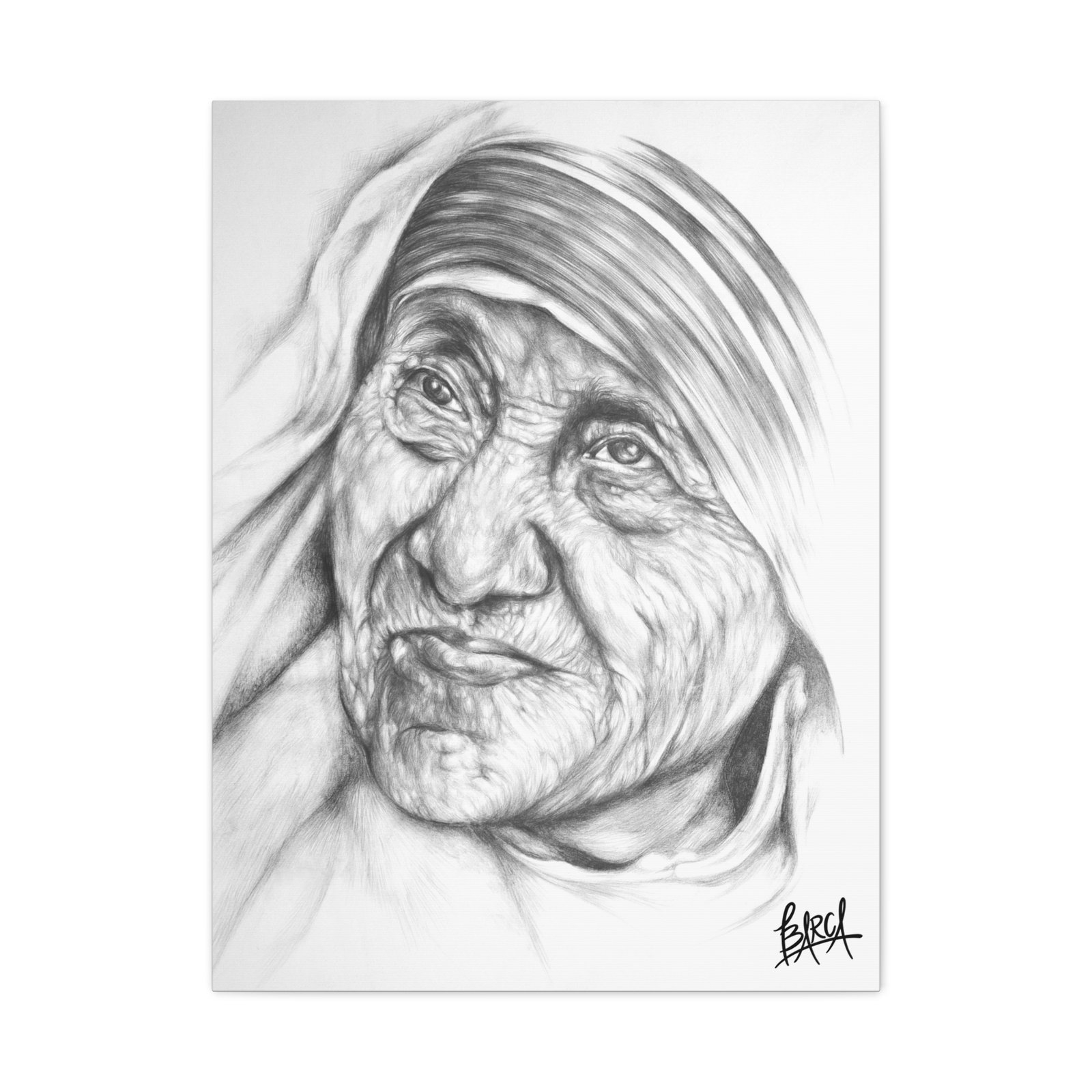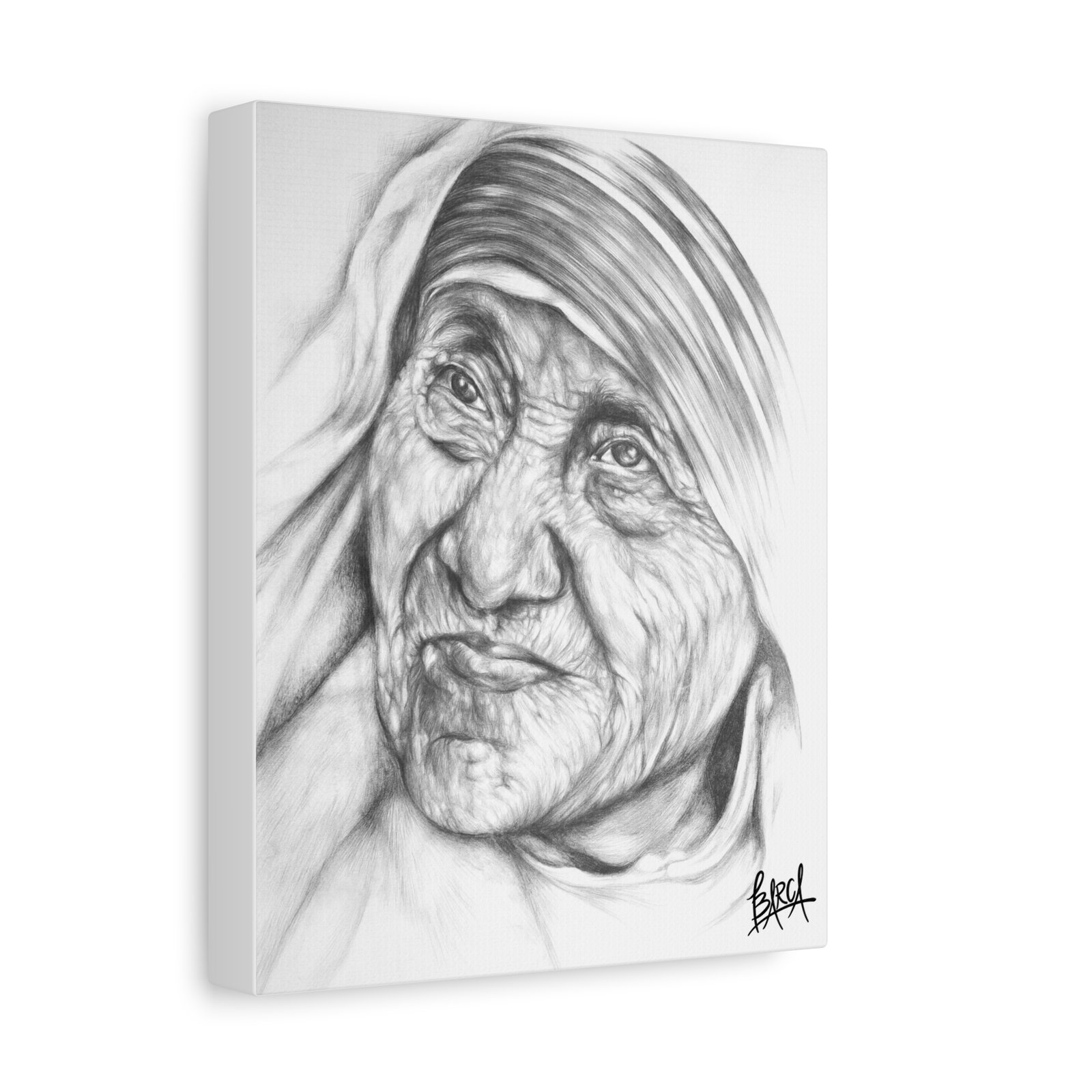 Graphite Pencil Art – Mother Theresa Matte Canvas Wall Art, Inspirational Home Decor, Black and White Artwork, Religious Gift, Motivational Office Decoration