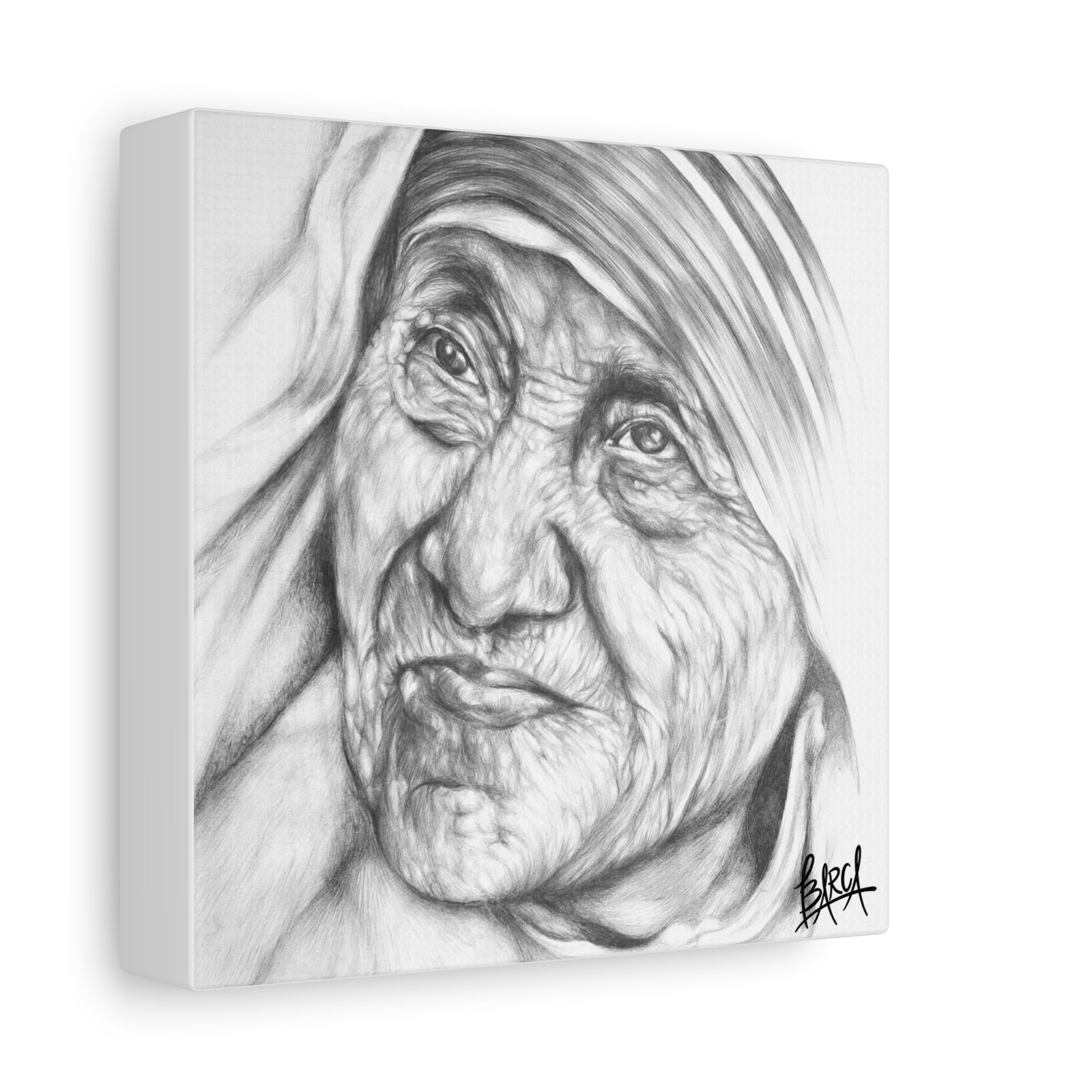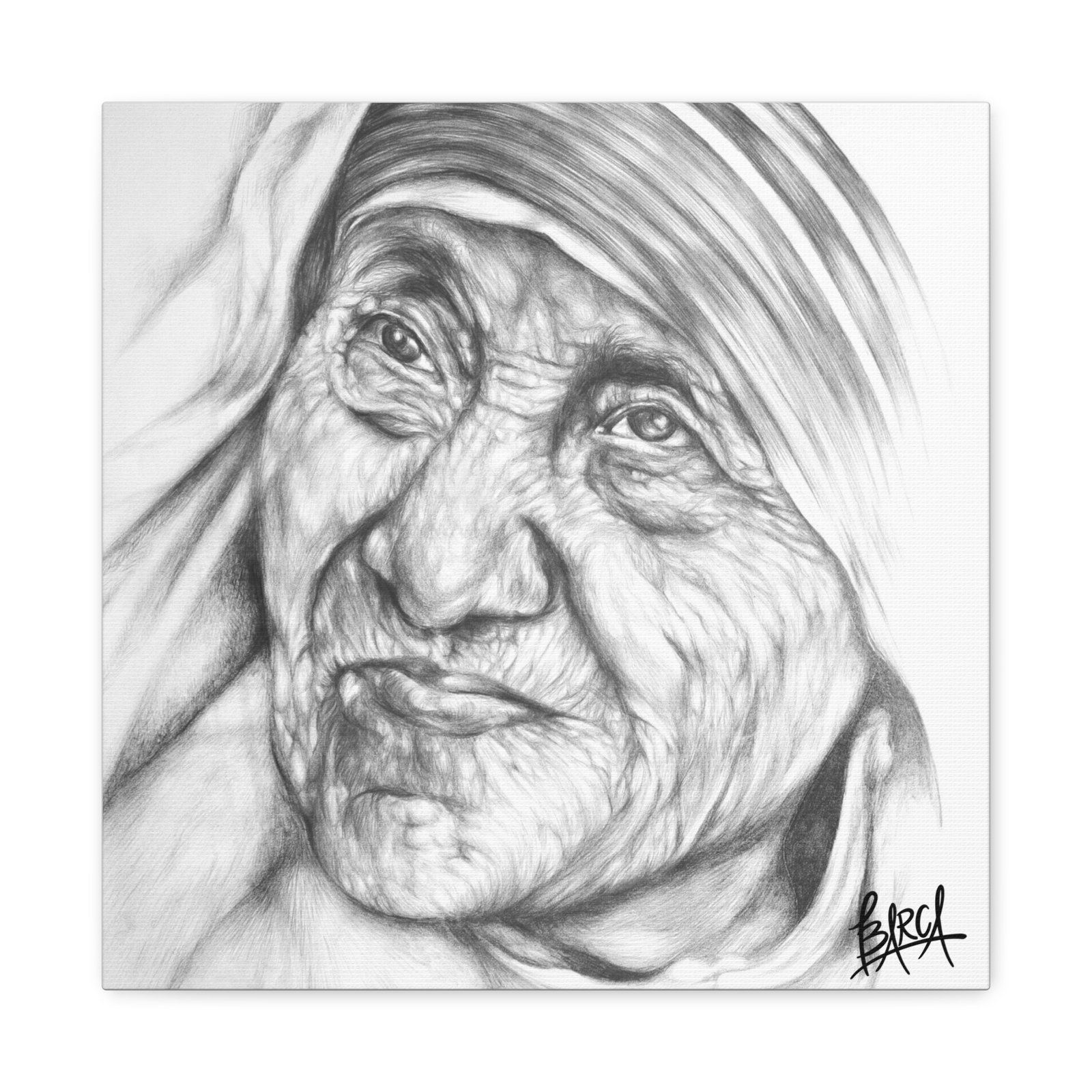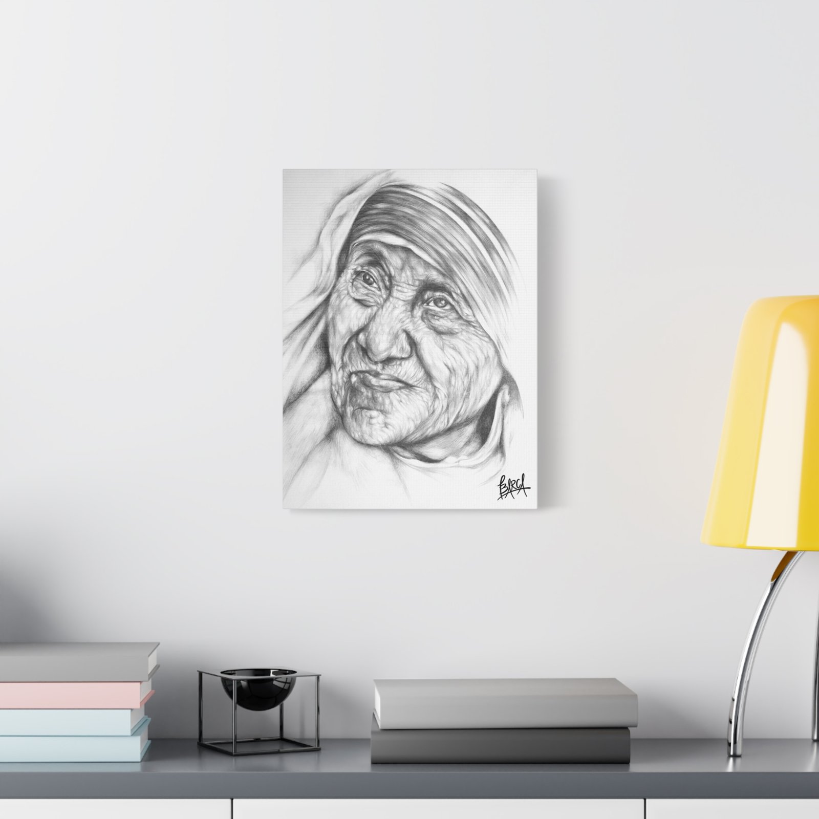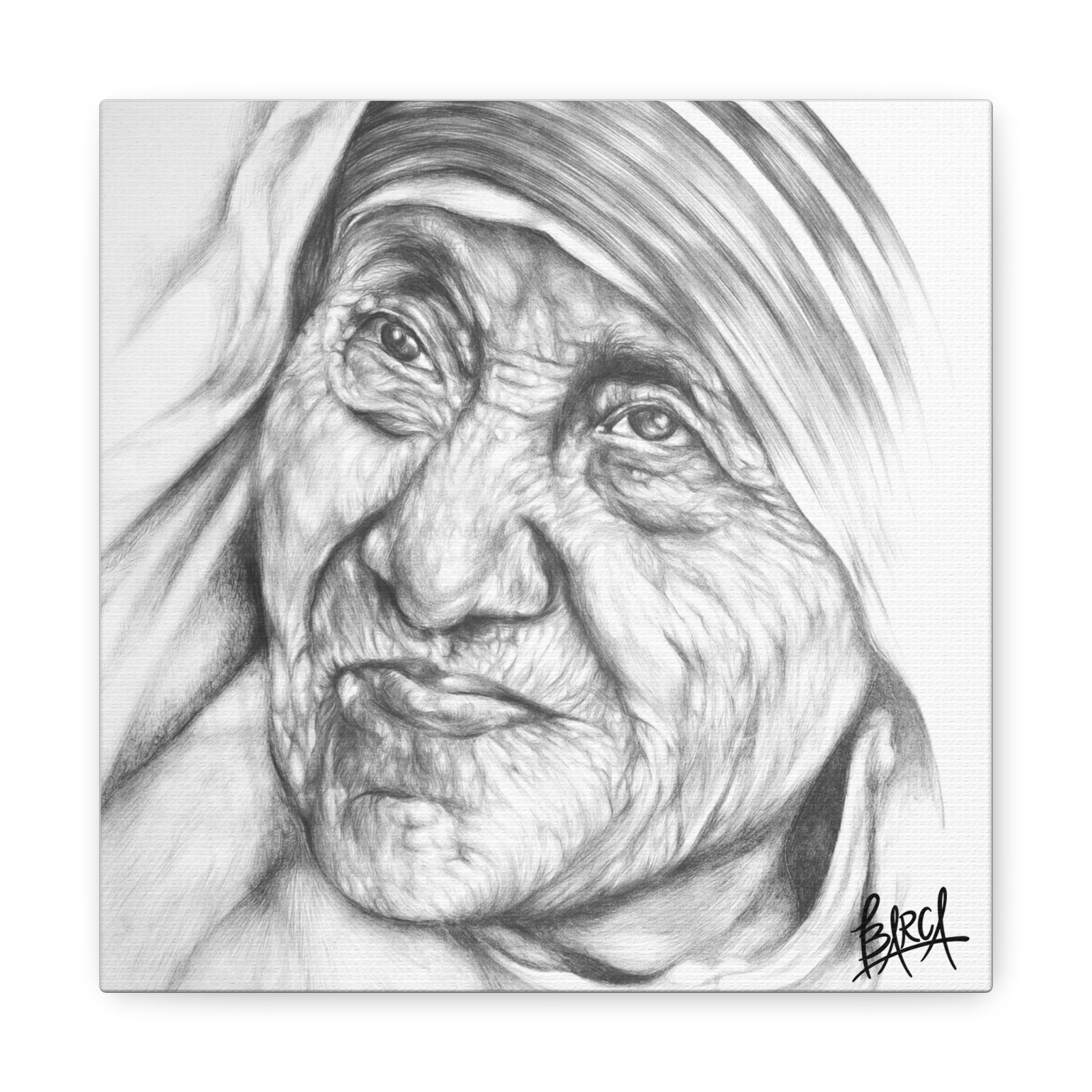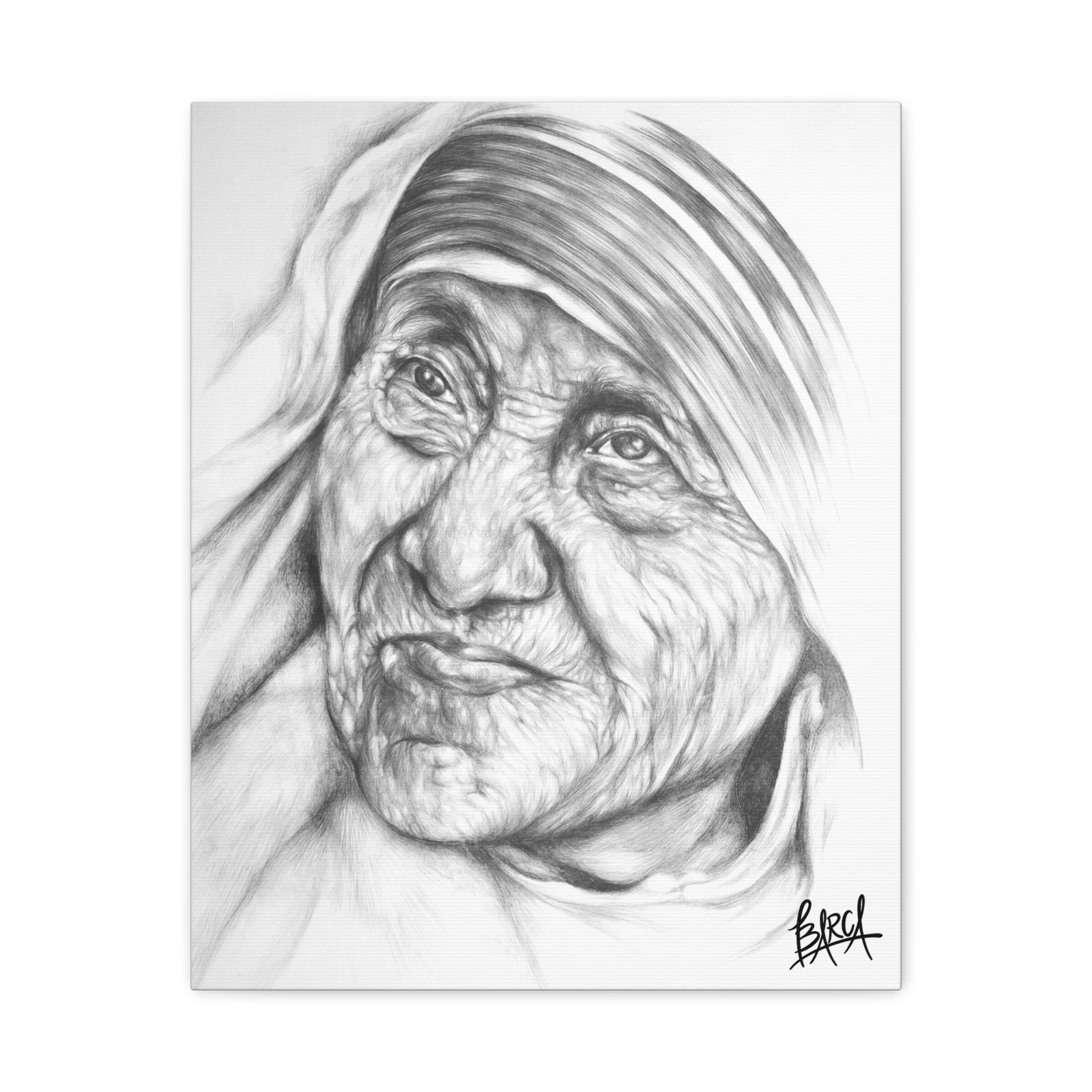 Graphite Pencil Art – Mother Theresa Matte Canvas Wall Art, Inspirational Home Decor, Black and White Artwork, Religious Gift, Motivational Office Decoration