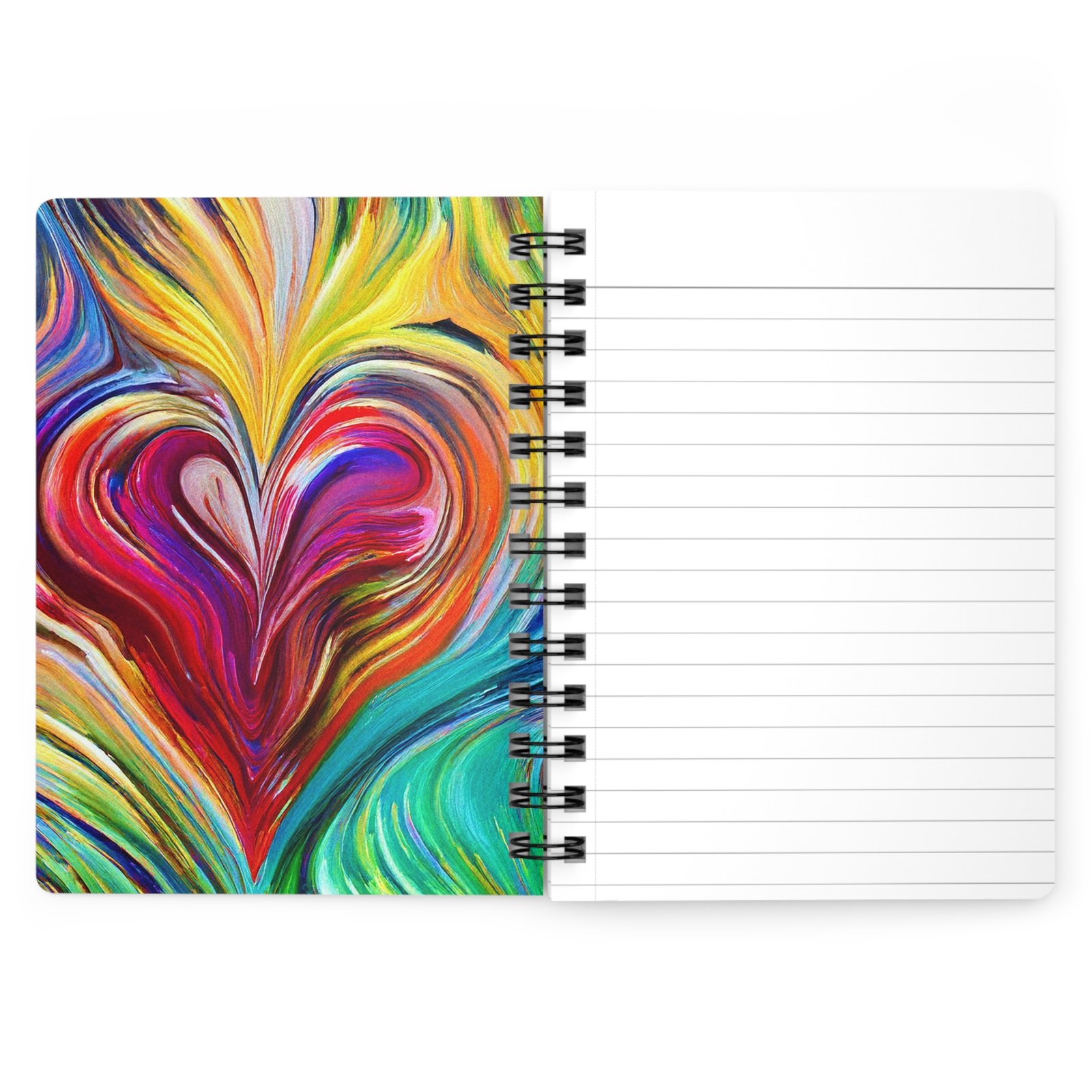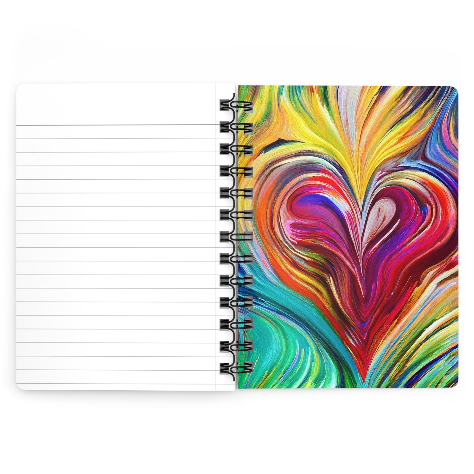This vibrant and eye-catching spiral bound journal is perfect for those who love to express their creativity and document their thoughts in style. With a colorful, glossy laminated cover featuring dynamic heart designs, it sets a cheerful and inspiring tone for writing or sketching. Ideal for artists, students, or anyone who enjoys journaling, this product fits seamlessly into everyday life, whether you’re at home, in a café, or on the go. It makes a thoughtful gift for birthdays, holidays, or just because! Celebrate love and creativity on occasions like Valentine’s Day or Mother’s Day, and inspire someone special to embrace their heart’s voice!