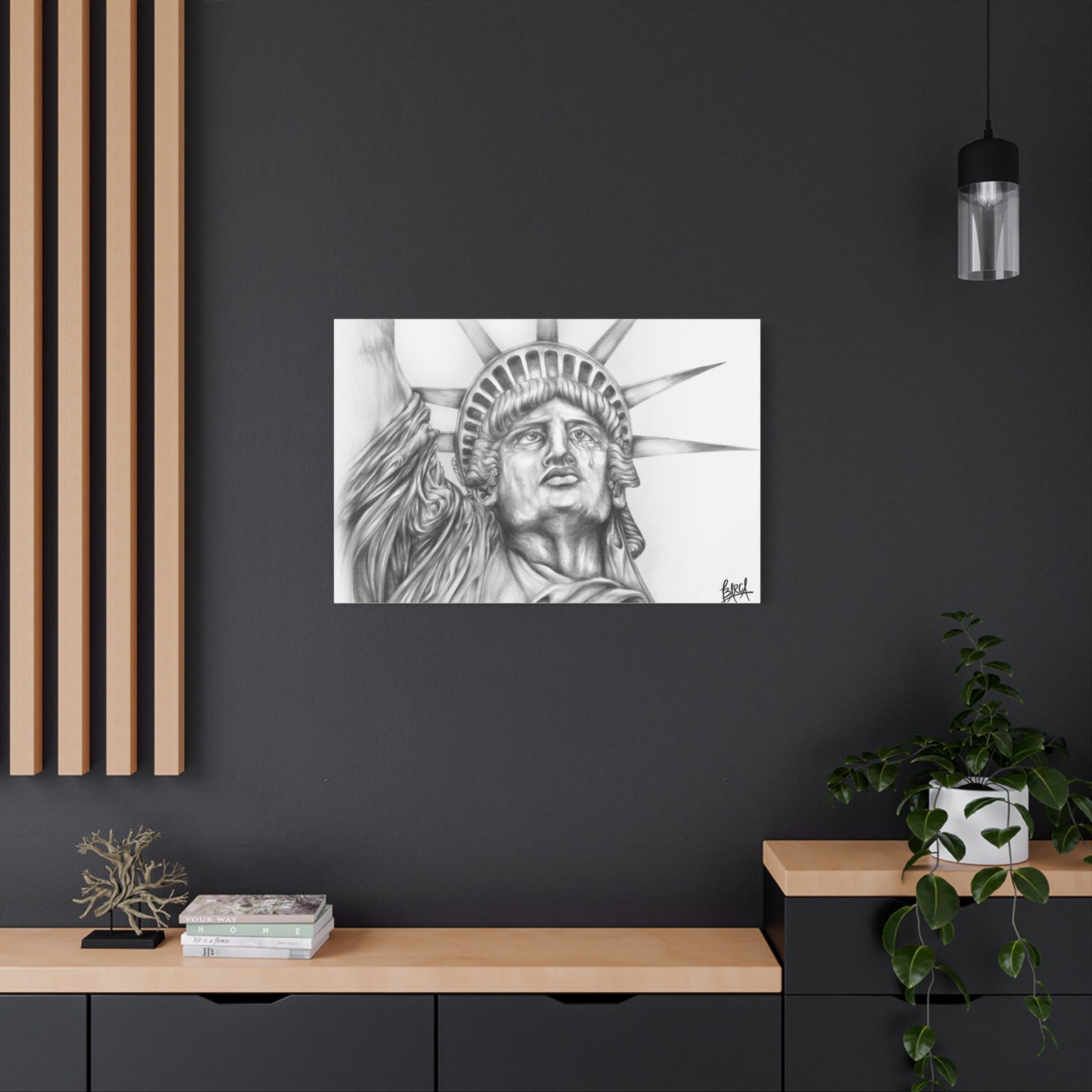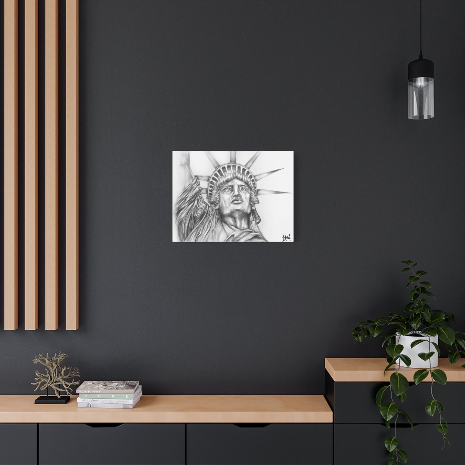 Graphite Pencil Art – Liberty Statue Canvas Art, Inspirational Home Decor, Modern Wall Art, Gift for Patriot, Office Decoration, American Pride