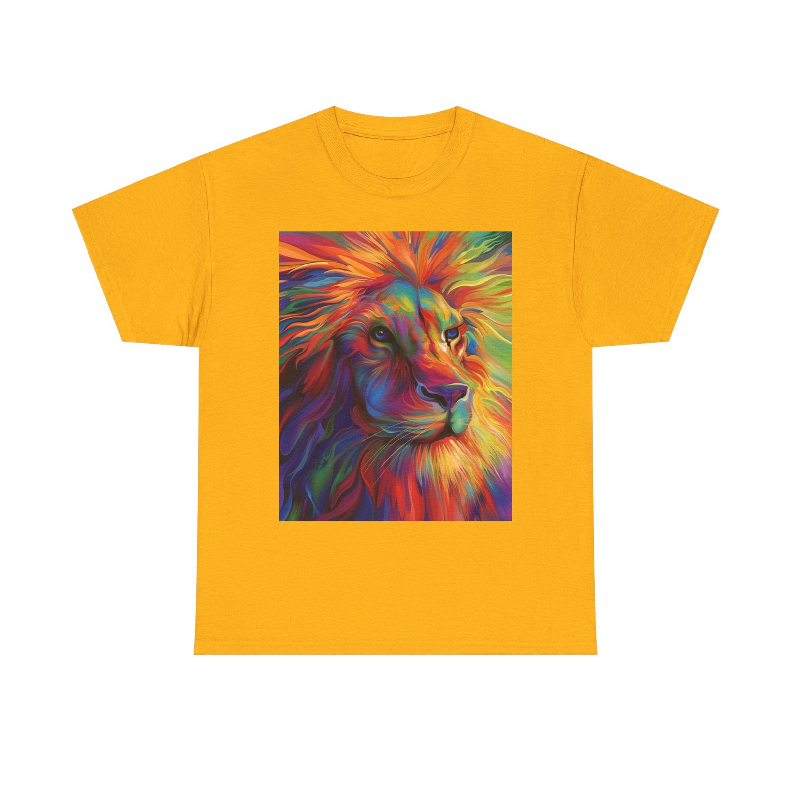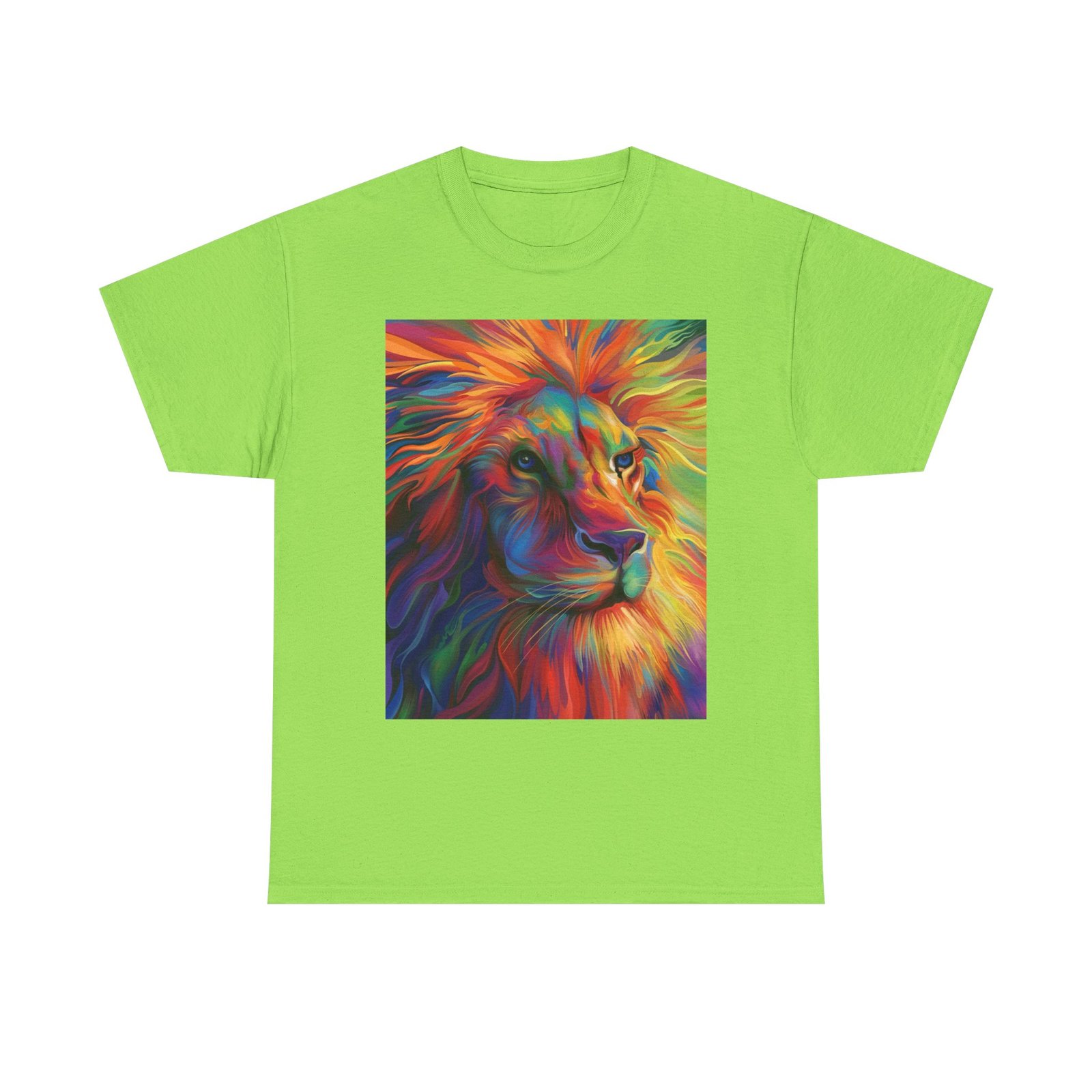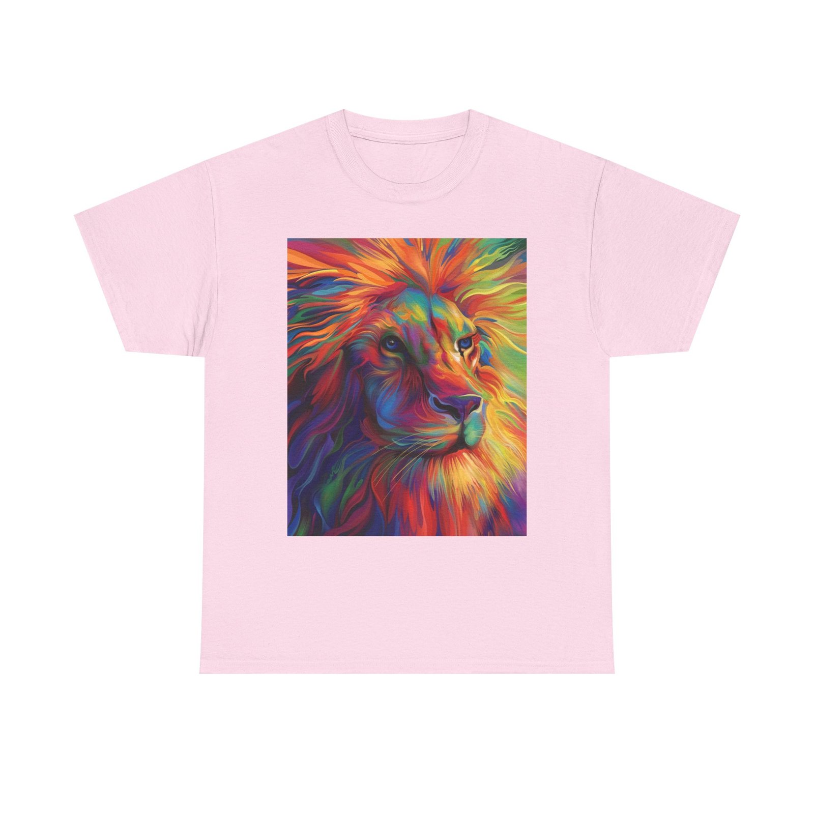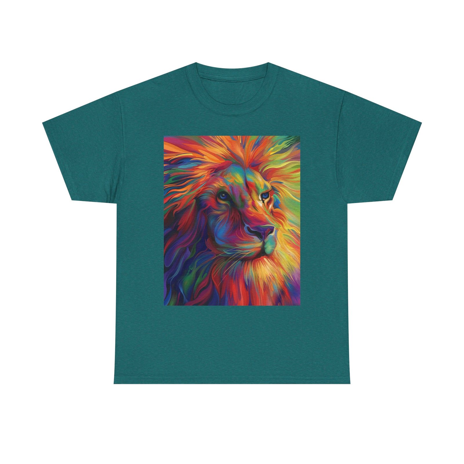 Make a bold statement with this striking tee, showcasing a vibrant and artistic lion design that radiates color and energy. Crafted from premium heavy cotton, it combines lasting comfort with a relaxed, versatile fit—perfect for everyday wear, casual gatherings, or adding a creative edge to your look.