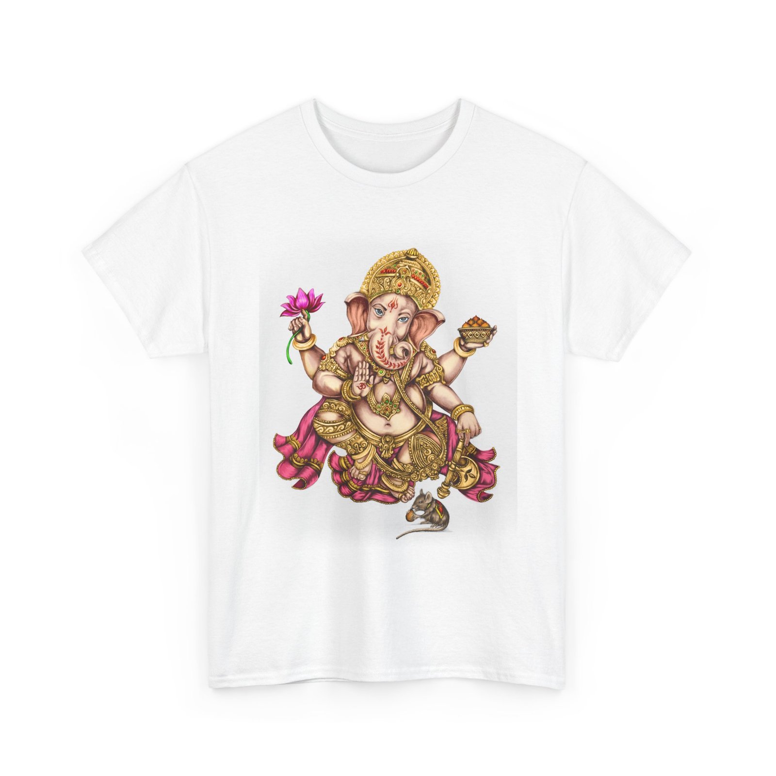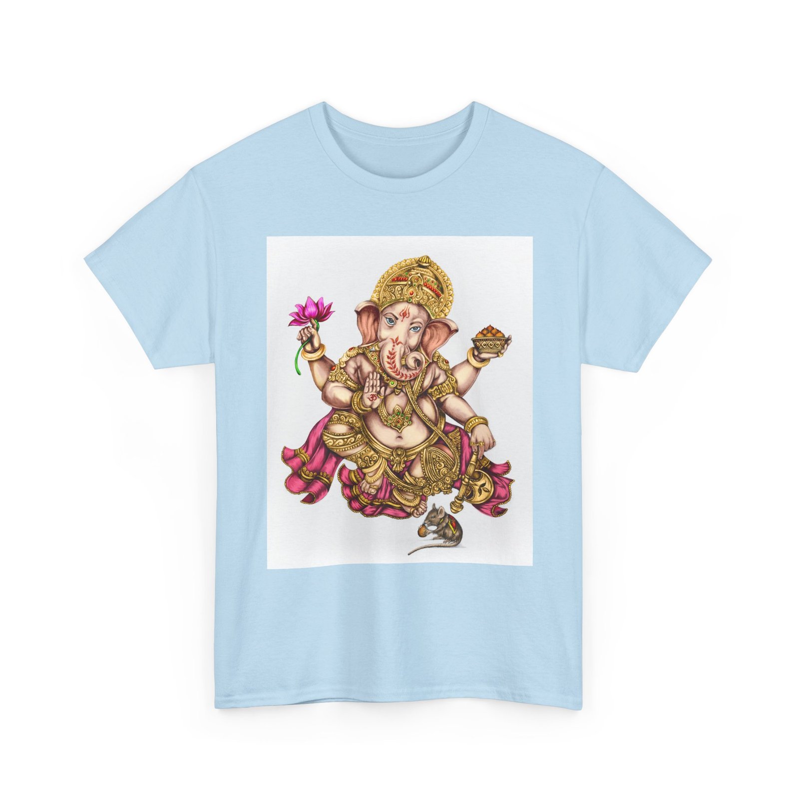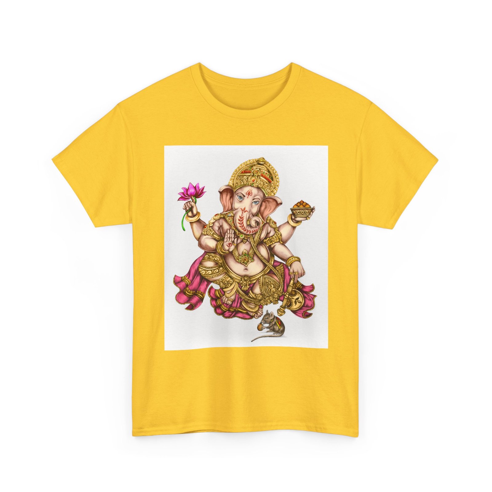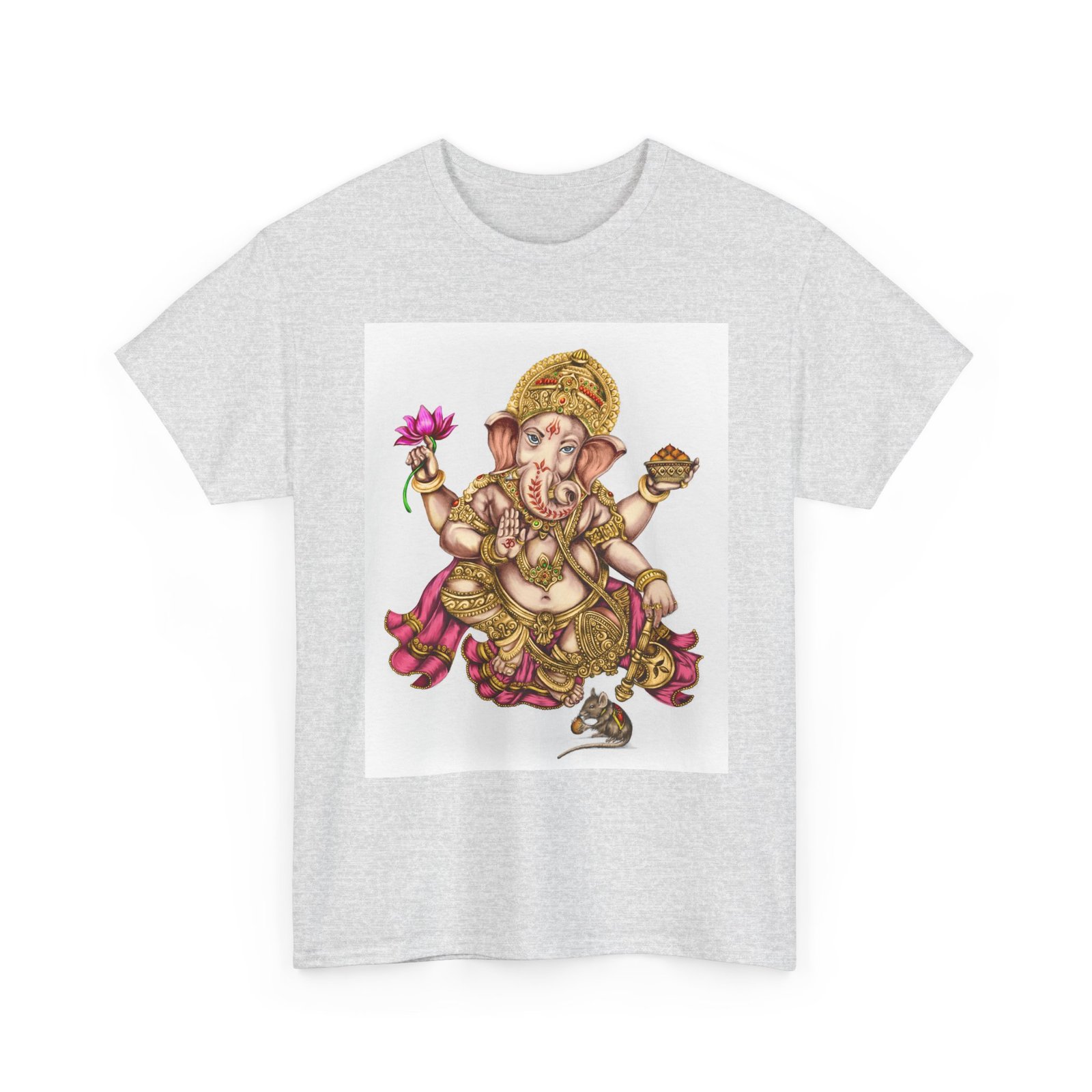 Elevate your wardrobe with this unisex heavy cotton tee, featuring a vibrant design of Lord Ganesha, symbolizing wisdom and prosperity. This shirt celebrates cultural heritage, perfect for adding a unique touch to your everyday style. Ideal for spiritual gatherings, celebrations like Ganesh Chaturthi, or simply as a statement piece on casual outings. Its classic fit and soft fabric make it comfortable for daily wear, whether you’re lounging at home or meeting friends. This tee is perfect for anyone looking to express their individuality while honoring tradition, making it a thoughtful gift for those who appreciate artistry and cultural expression.
