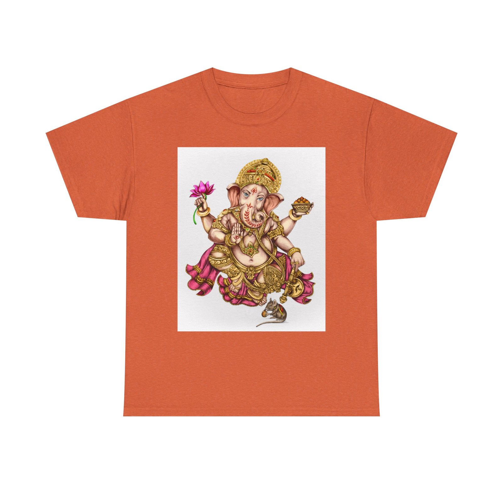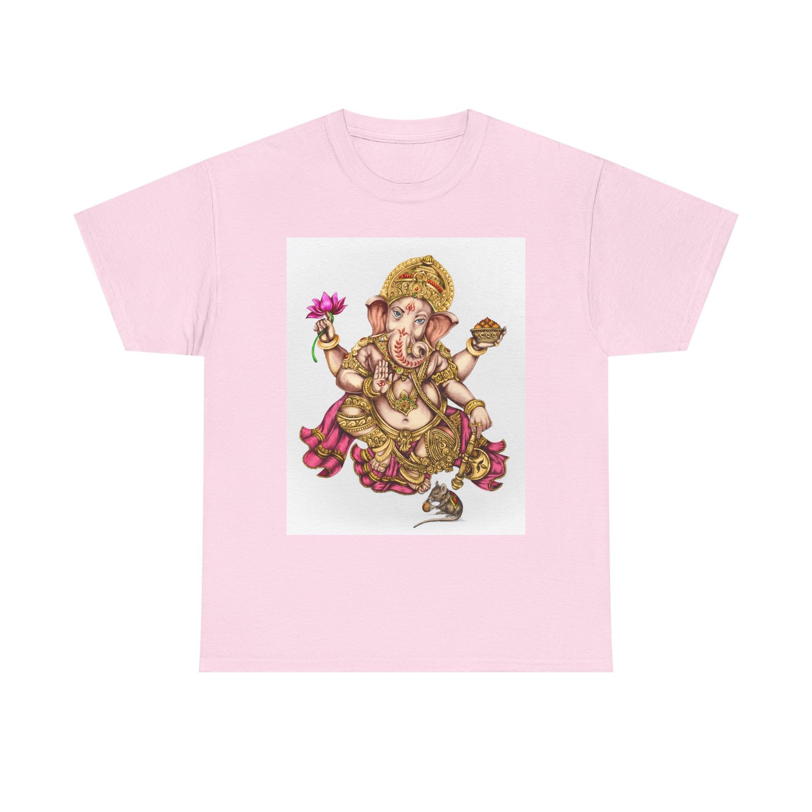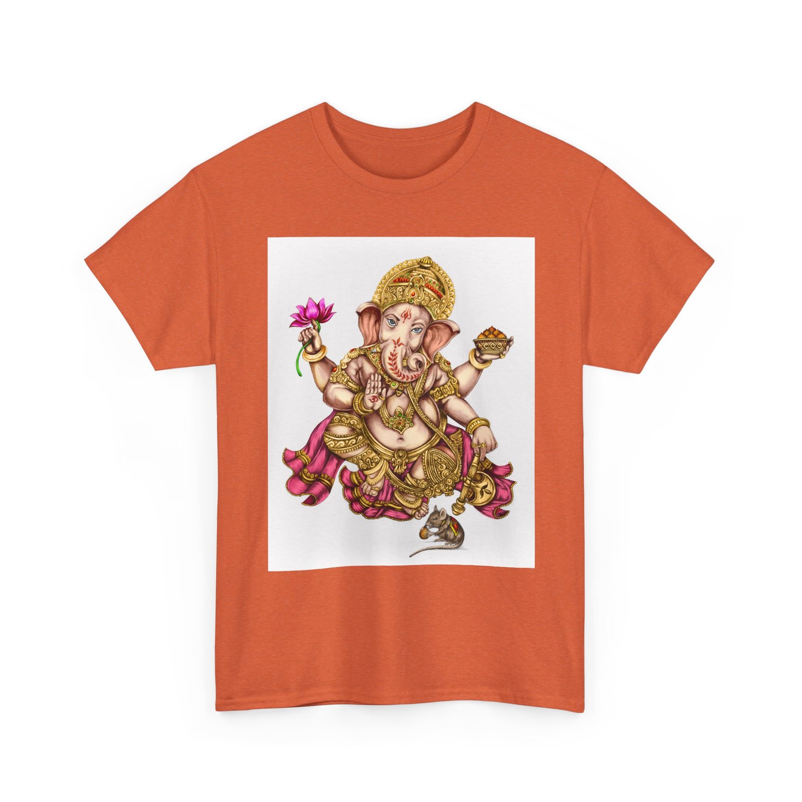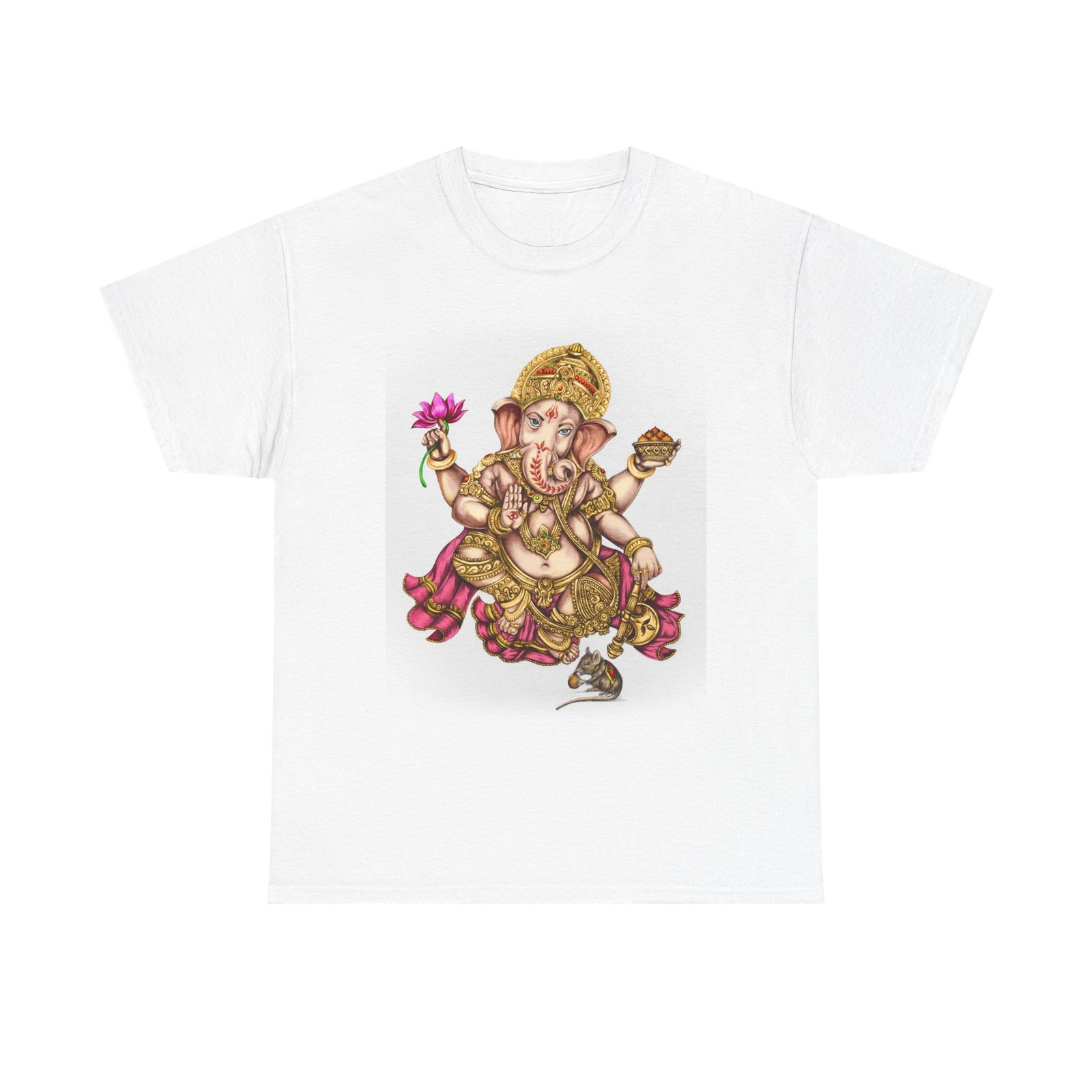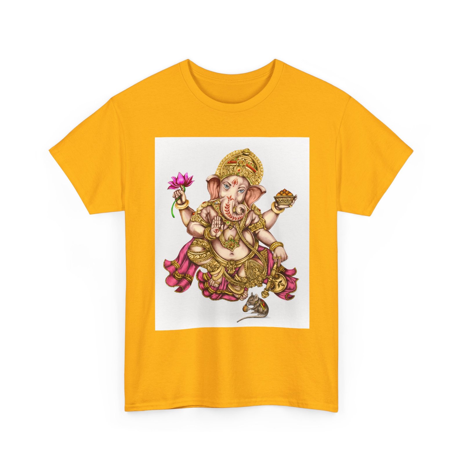 Elevate your wardrobe with this unisex heavy cotton tee, featuring a vibrant design of Lord Ganesha, symbolizing wisdom and prosperity. This shirt celebrates cultural heritage, perfect for adding a unique touch to your everyday style. Ideal for spiritual gatherings, celebrations like Ganesh Chaturthi, or simply as a statement piece on casual outings. Its classic fit and soft fabric make it comfortable for daily wear, whether you’re lounging at home or meeting friends. This tee is perfect for anyone looking to express their individuality while honoring tradition, making it a thoughtful gift for those who appreciate artistry and cultural expression.