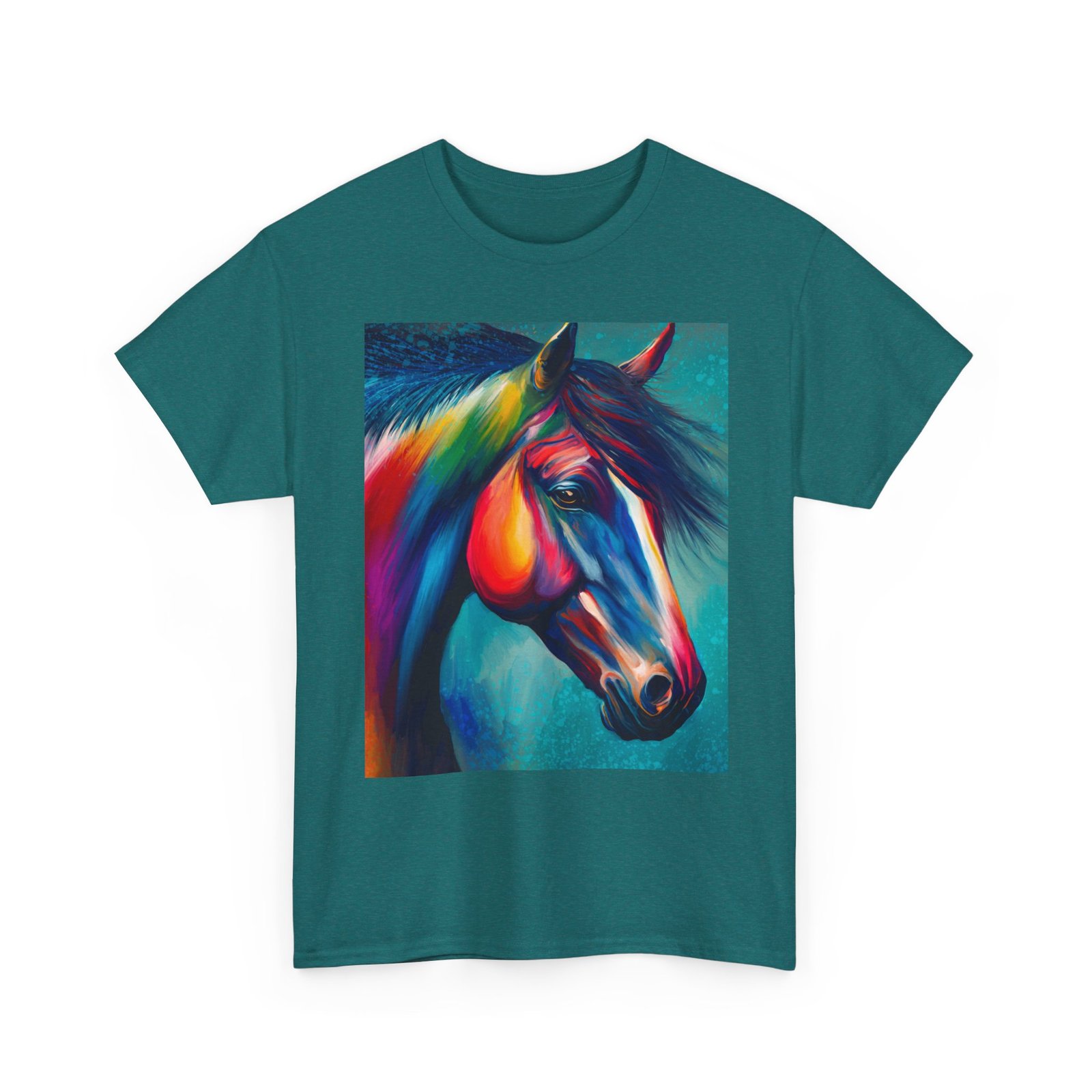Bring energy and creativity to your wardrobe with this striking tee, featuring a bold and colorful horse design that symbolizes freedom and individuality. Made from premium heavy cotton, it delivers lasting comfort with a relaxed fit—perfect for casual outings, social gatherings, or everyday wear.