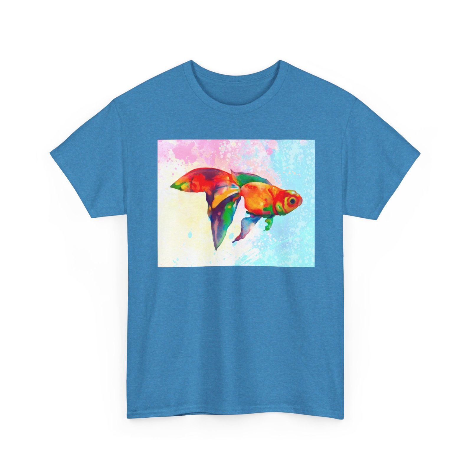 Introducing the perfect addition to your wardrobe: a Unisex Heavy Cotton Tee that combines comfort and style effortlessly. This shirt is not just a piece of clothing; it’s an expression of personality and creativity. With its vibrant, artistic design featuring colorful goldfish against a soft, pastel backdrop, it brings a touch of whimsy and joy to your everyday wear. The breathable fabric ensures year-round comfort, making it ideal for casual outings, family gatherings, or simply lounging at home with friends.