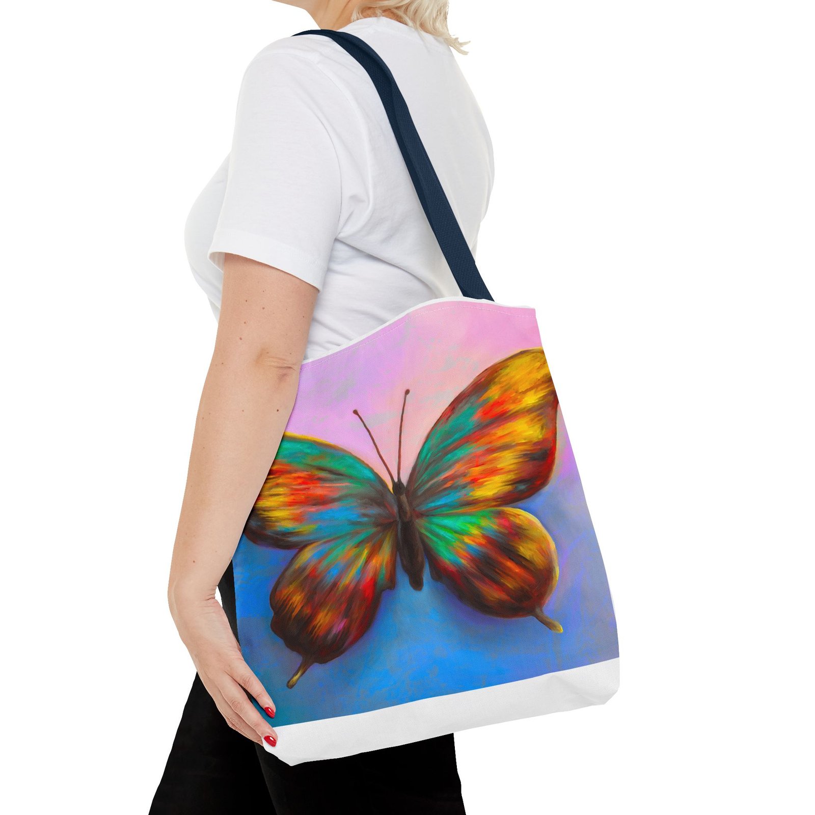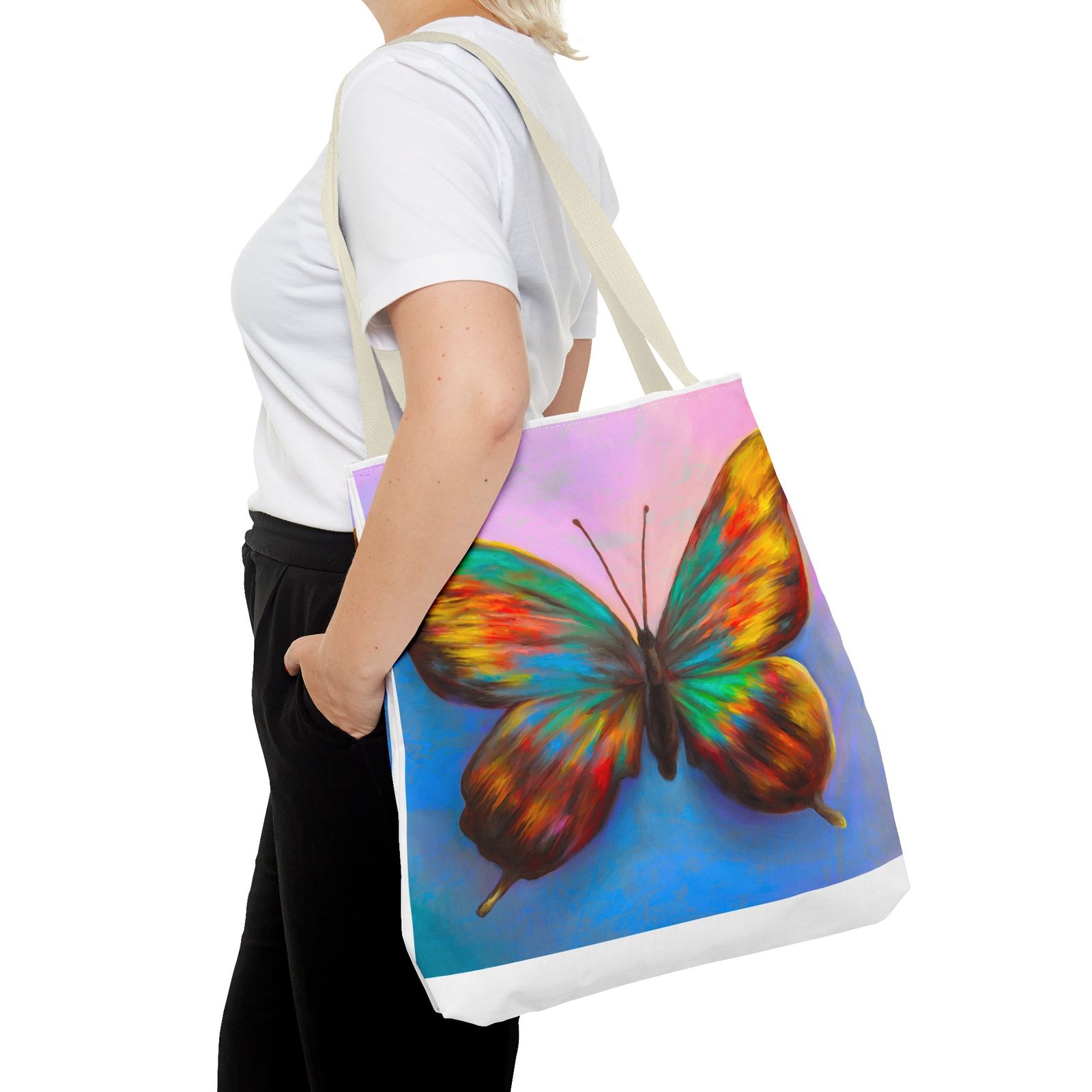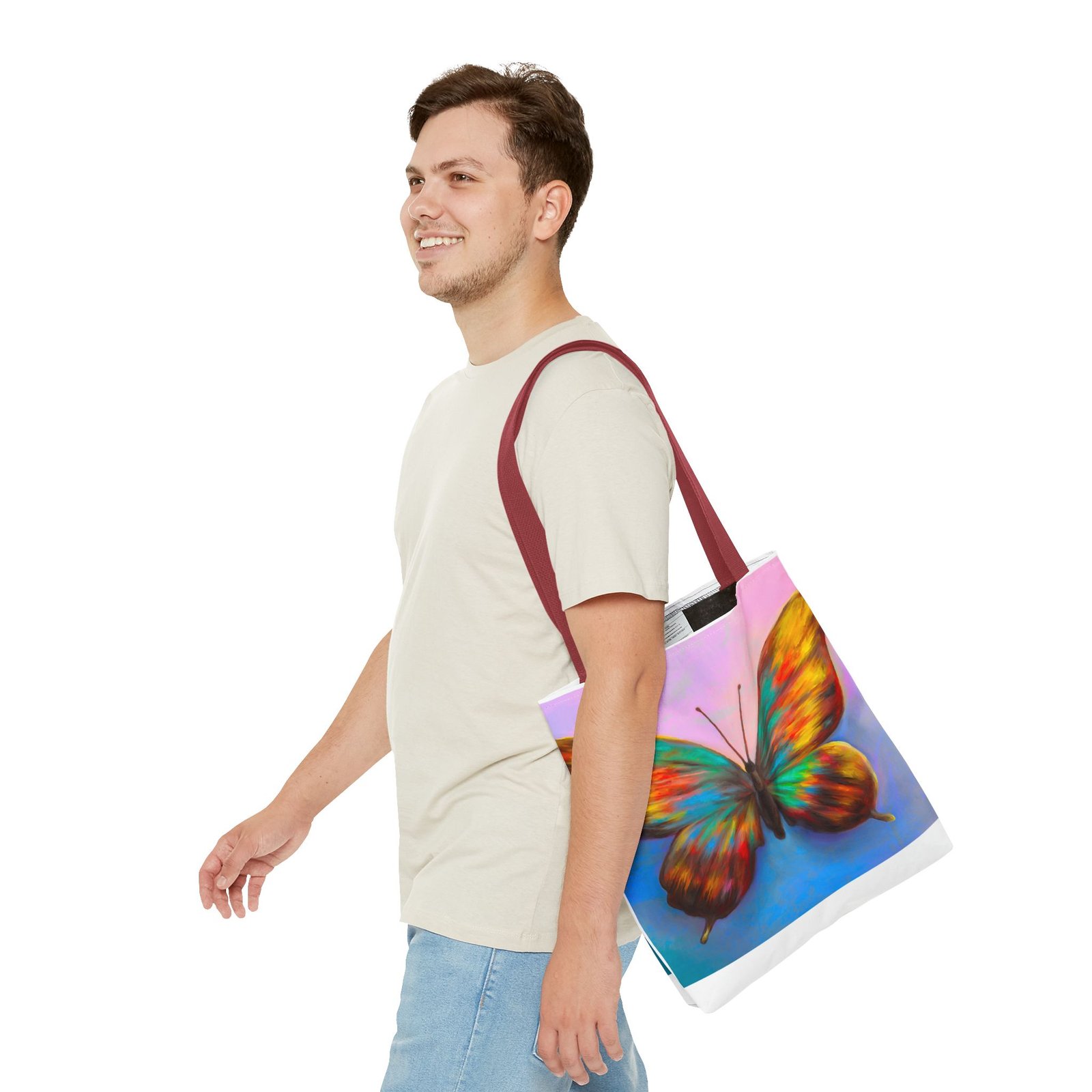 Introducing a vibrant tote bag designed to make a statement. Featuring a stunning butterfly design, this tote is perfect for anyone who loves art and nature. Its eye-catching colors evoke feelings of joy and freedom, making it a wonderful accessory for your everyday adventures. Whether you’re heading to the beach, the farmer’s market, or a coffee shop, this tote bag will complement your style and enhance your experience. Ideal for nature enthusiasts, artists, and anyone who appreciates unique fashion. Perfect for gifts during birthdays, Earth Day, or just as a treat for yourself!