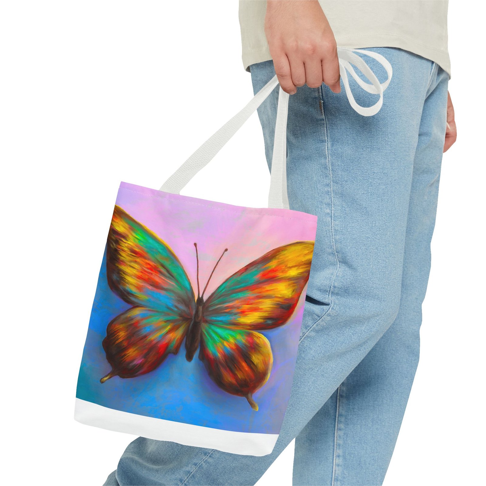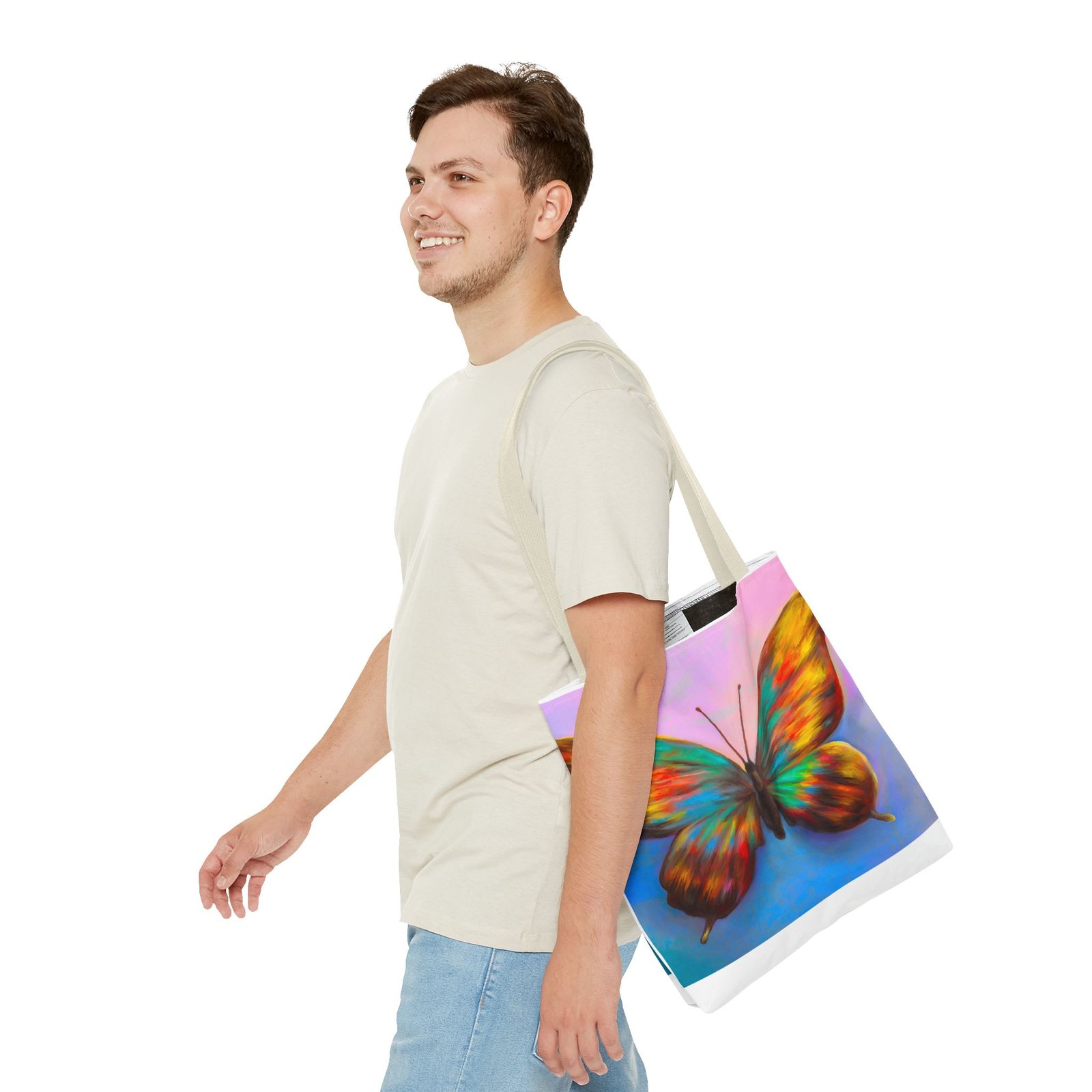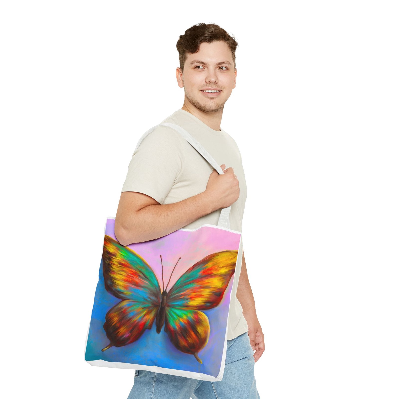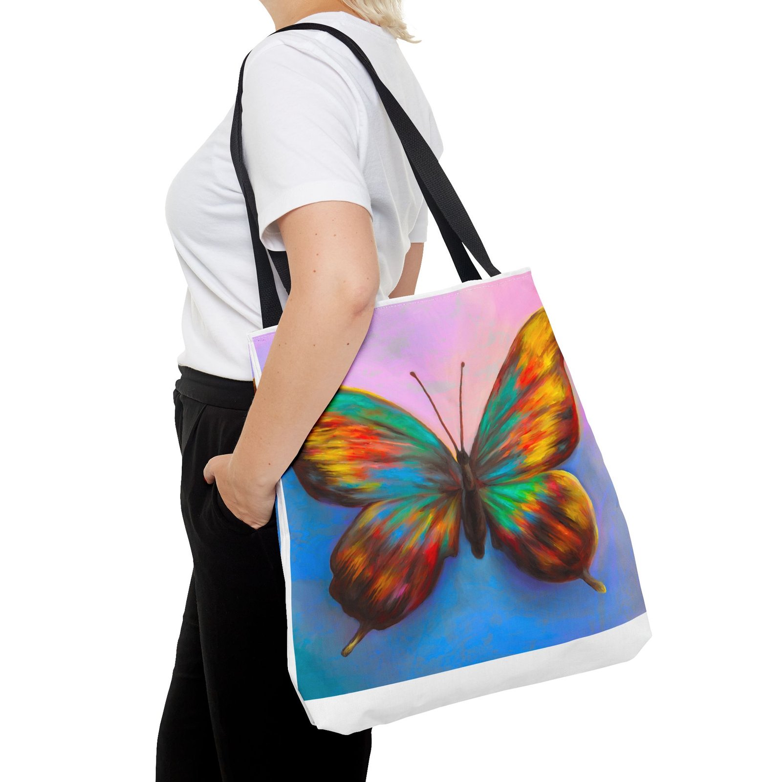 Introducing a vibrant tote bag designed to make a statement. Featuring a stunning butterfly design, this tote is perfect for anyone who loves art and nature. Its eye-catching colors evoke feelings of joy and freedom, making it a wonderful accessory for your everyday adventures. Whether you’re heading to the beach, the farmer’s market, or a coffee shop, this tote bag will complement your style and enhance your experience. Ideal for nature enthusiasts, artists, and anyone who appreciates unique fashion. Perfect for gifts during birthdays, Earth Day, or just as a treat for yourself!