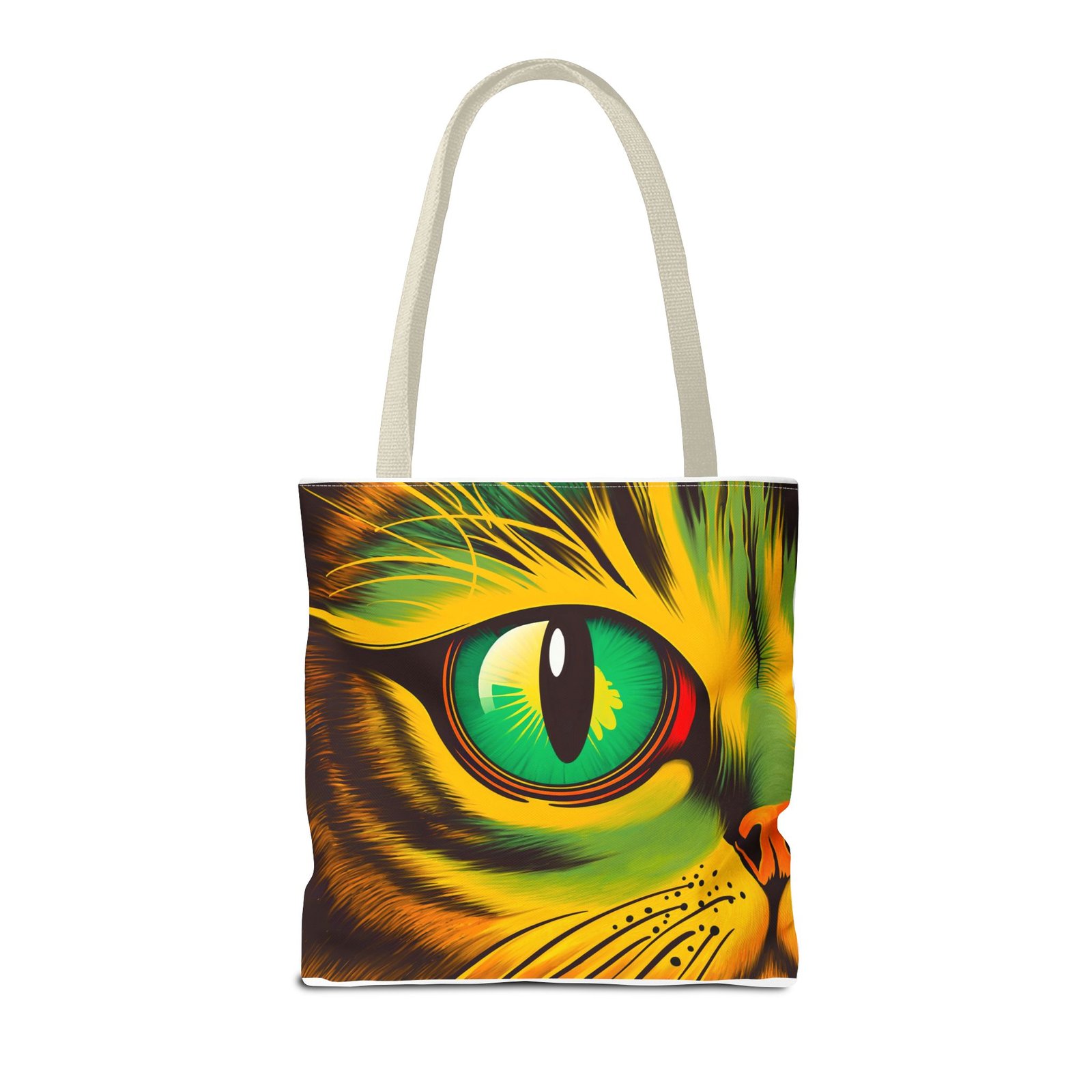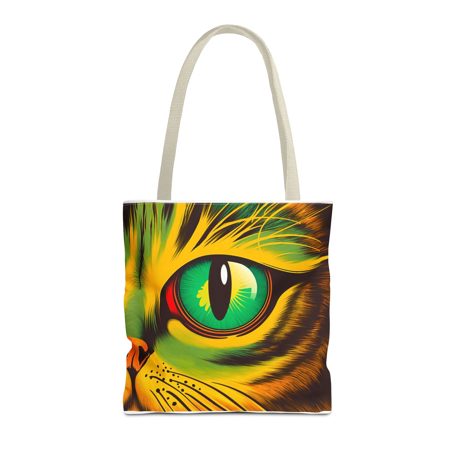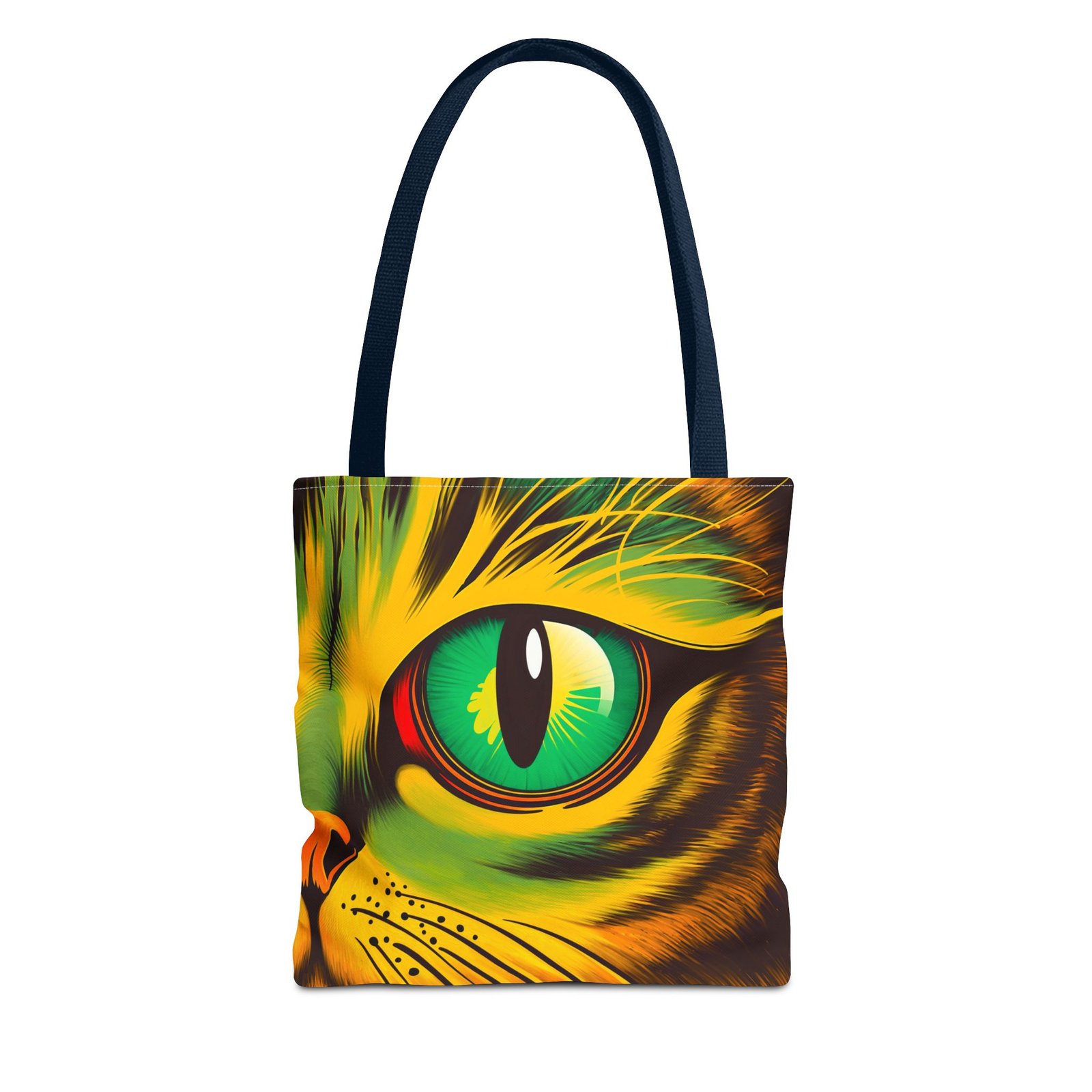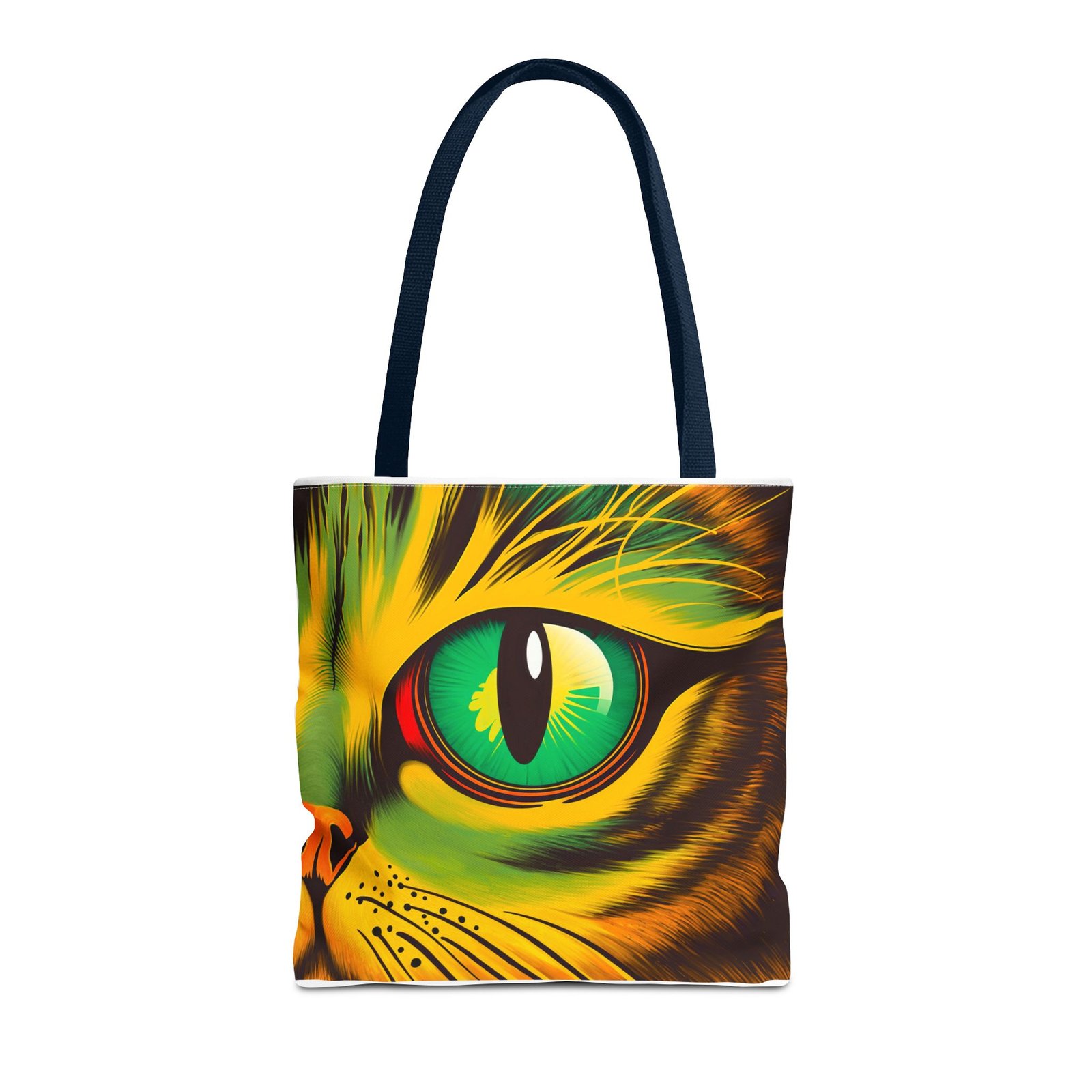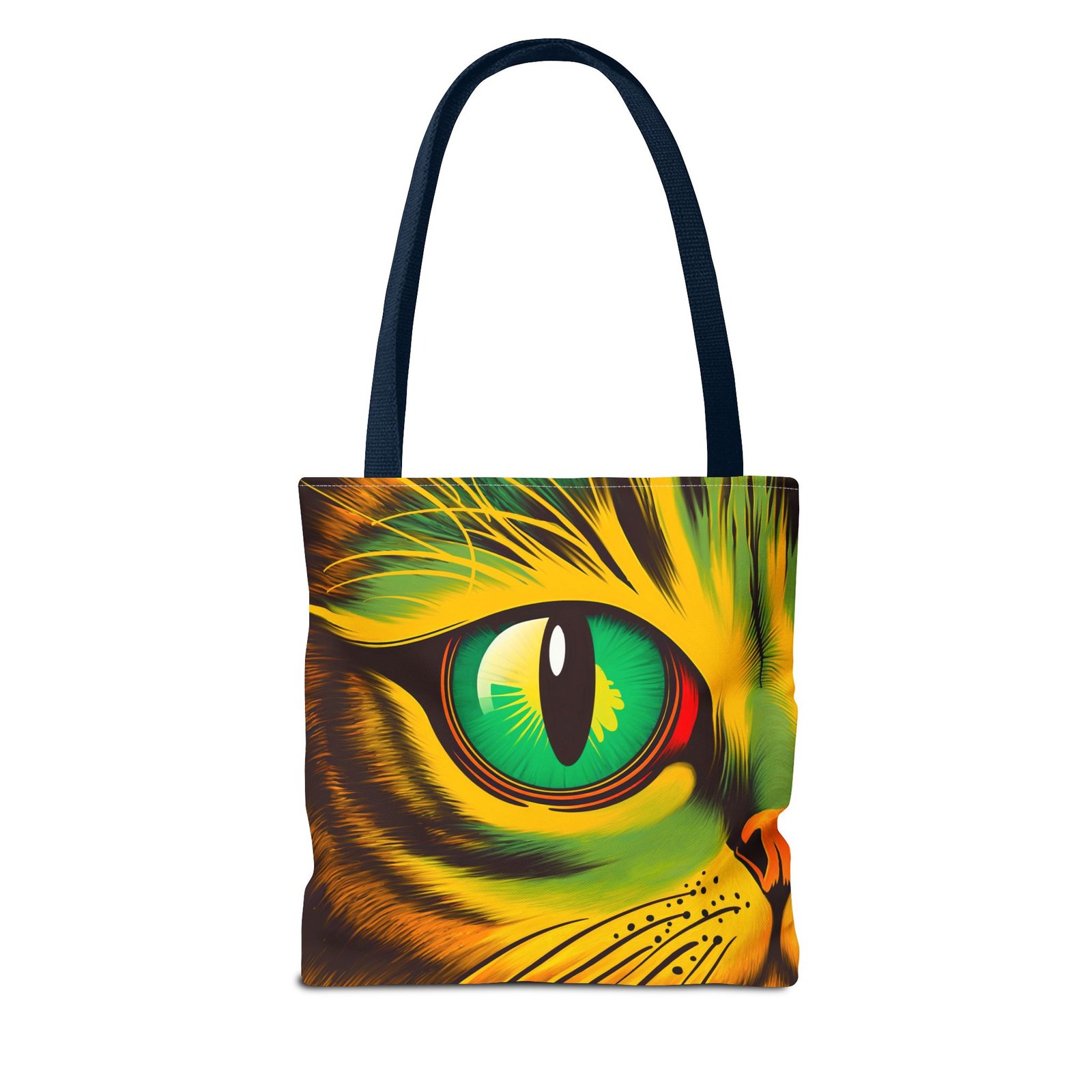 Elevate your style with this vibrant Tote Bag. Adorned with a striking design that showcases a mesmerizing feline gaze, this tote is perfect for cat lovers and anyone who enjoys a pop of color in their accessories. Its durable polyester construction ensures that it withstands everyday use, whether you’re heading to the market, a day at the beach, or just need a reliable bag for on-the-go essentials. With various size options available, it can accommodate everything from books to groceries, making it a versatile addition to any wardrobe. Ideal for birthdays, cat-themed parties, or as a thoughtful gift during the holiday season, this tote bag adds a playful yet sophisticated touch to your daily adventures. Perfect for women and men alike, it’s a functional piece that celebrates a love for pets while offering practicality.