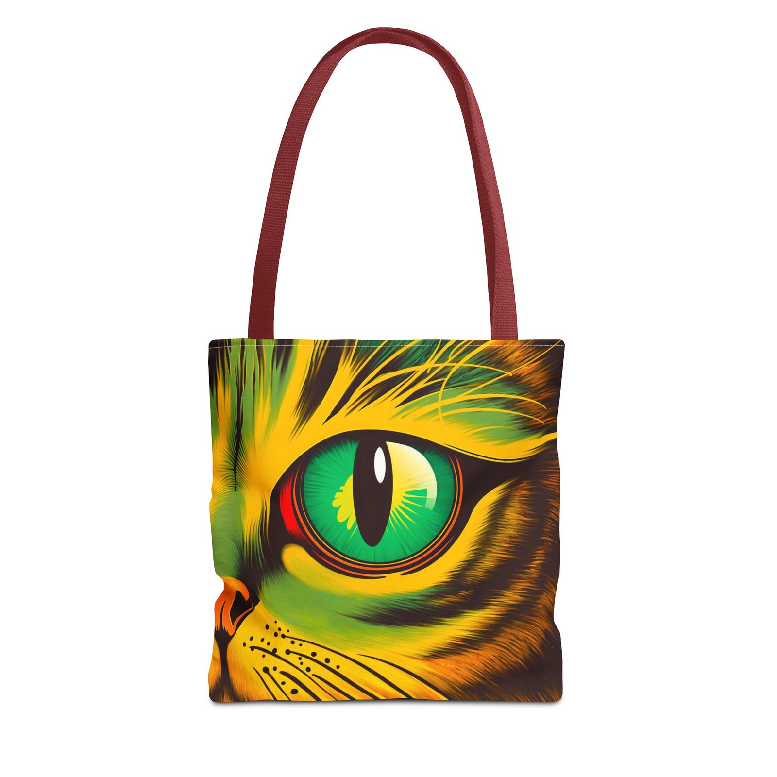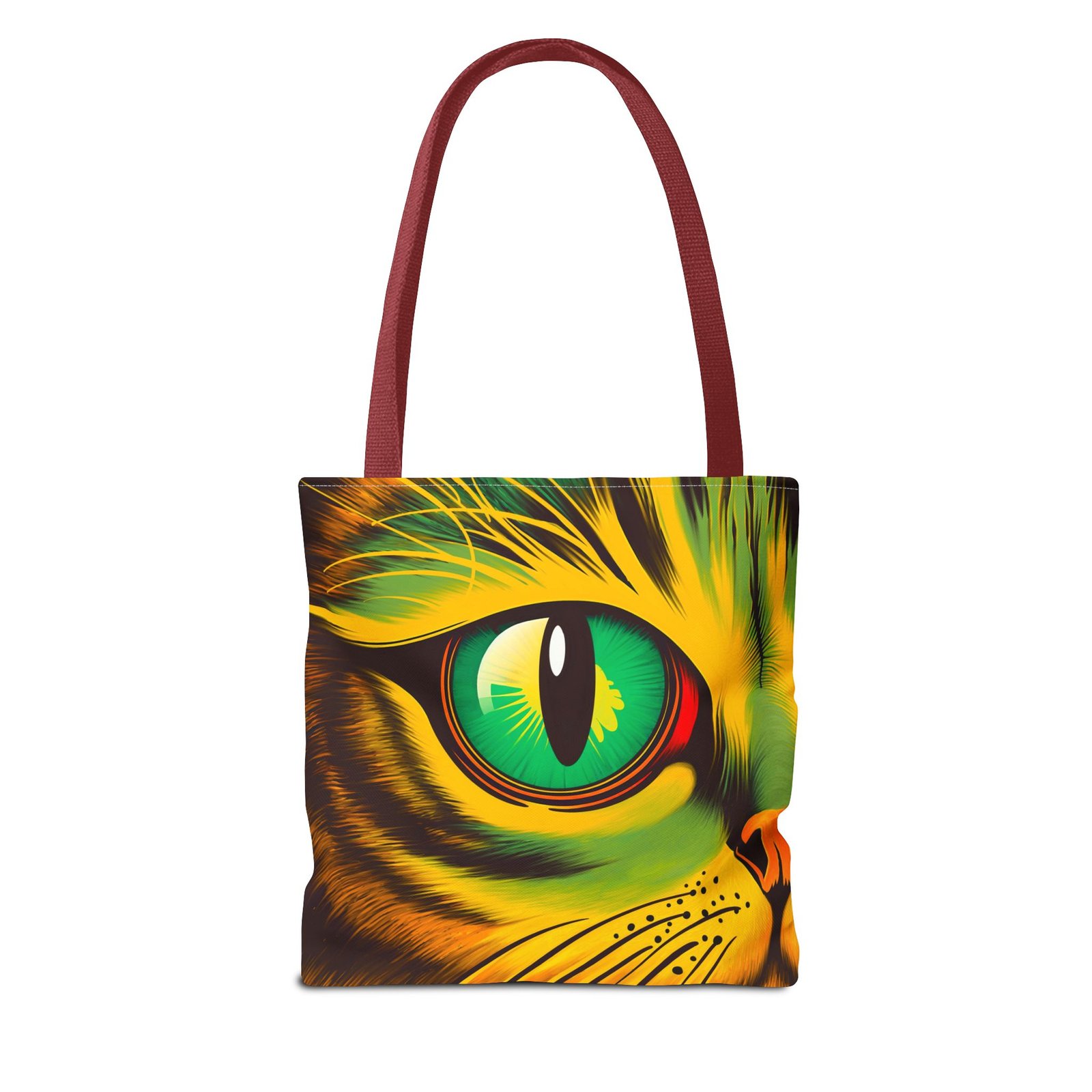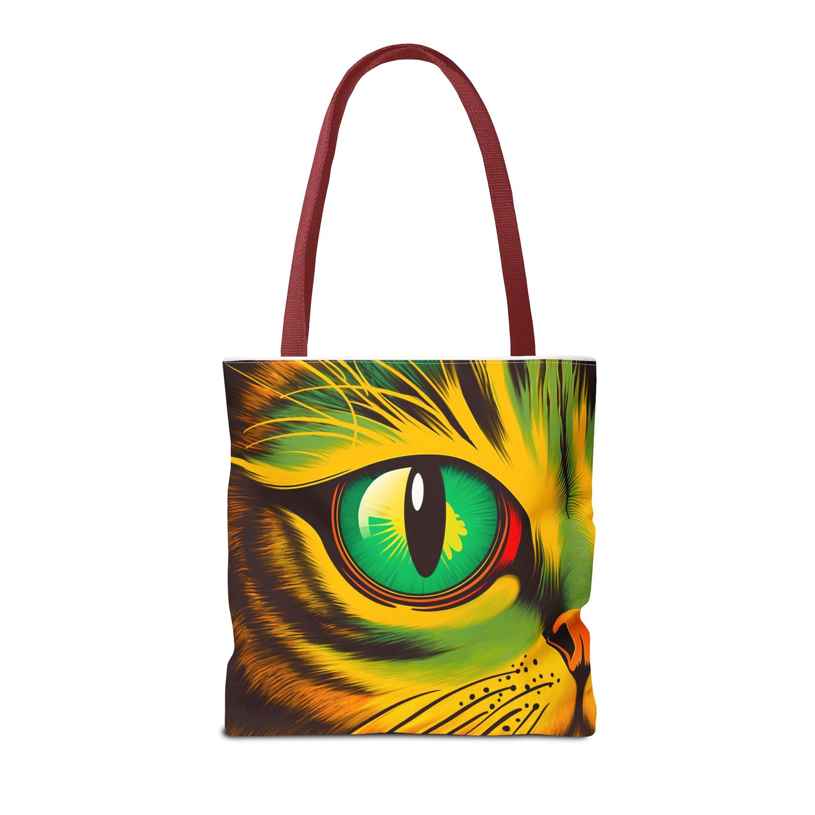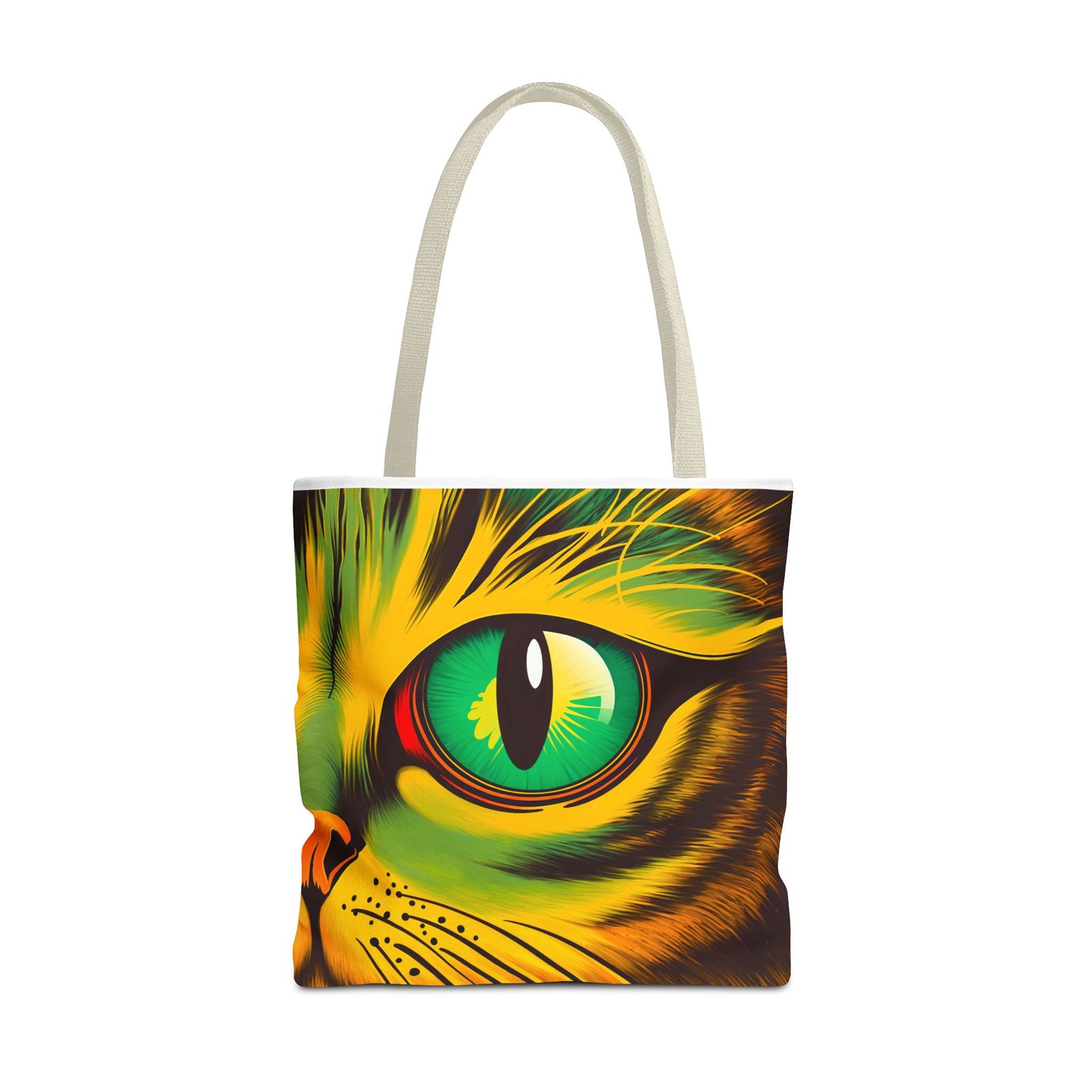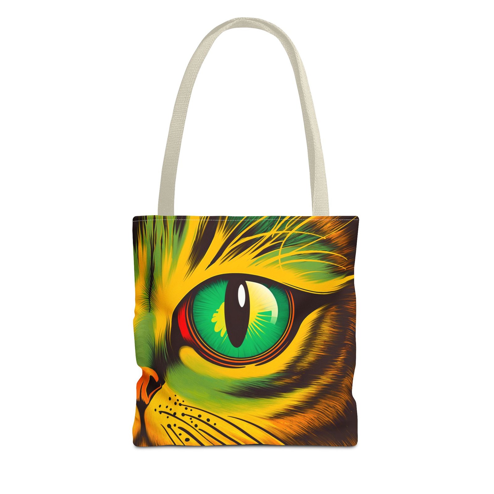 Elevate your style with this vibrant Tote Bag. Adorned with a striking design that showcases a mesmerizing feline gaze, this tote is perfect for cat lovers and anyone who enjoys a pop of color in their accessories. Its durable polyester construction ensures that it withstands everyday use, whether you’re heading to the market, a day at the beach, or just need a reliable bag for on-the-go essentials. With various size options available, it can accommodate everything from books to groceries, making it a versatile addition to any wardrobe. Ideal for birthdays, cat-themed parties, or as a thoughtful gift during the holiday season, this tote bag adds a playful yet sophisticated touch to your daily adventures. Perfect for women and men alike, it’s a functional piece that celebrates a love for pets while offering practicality.