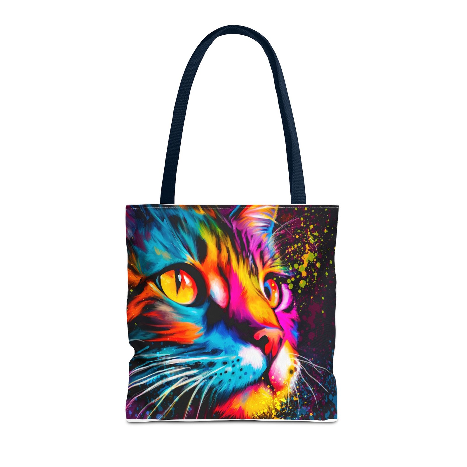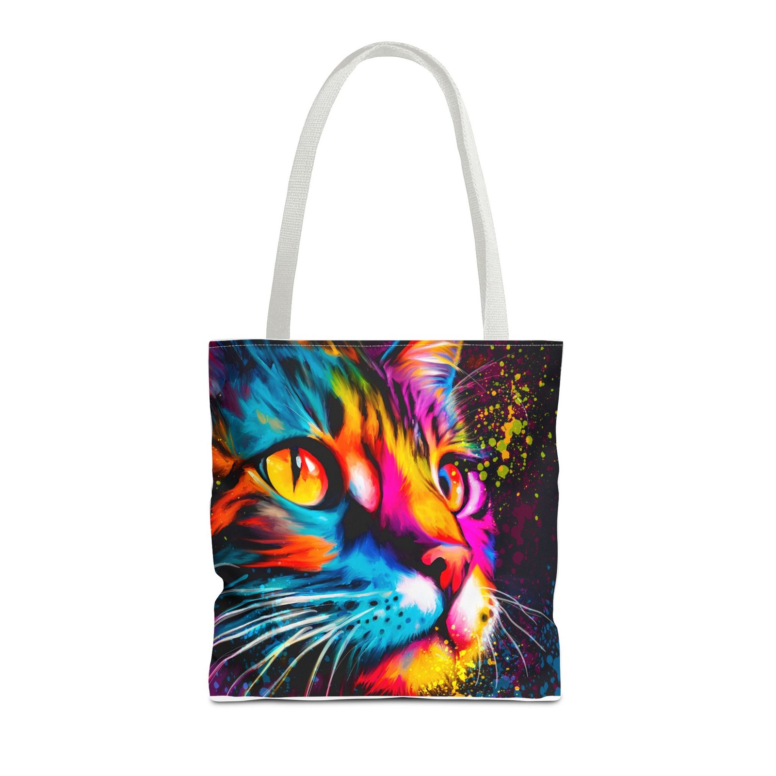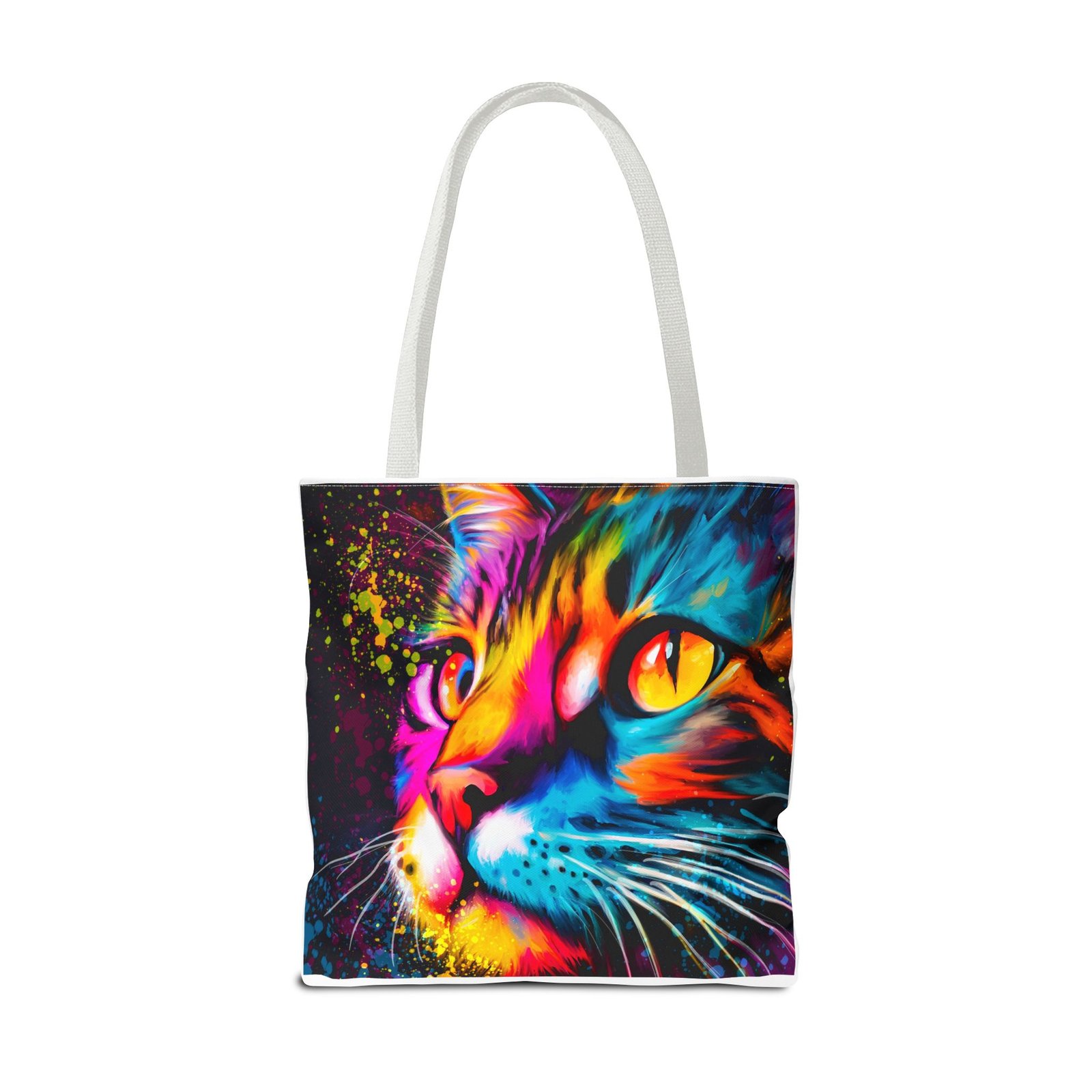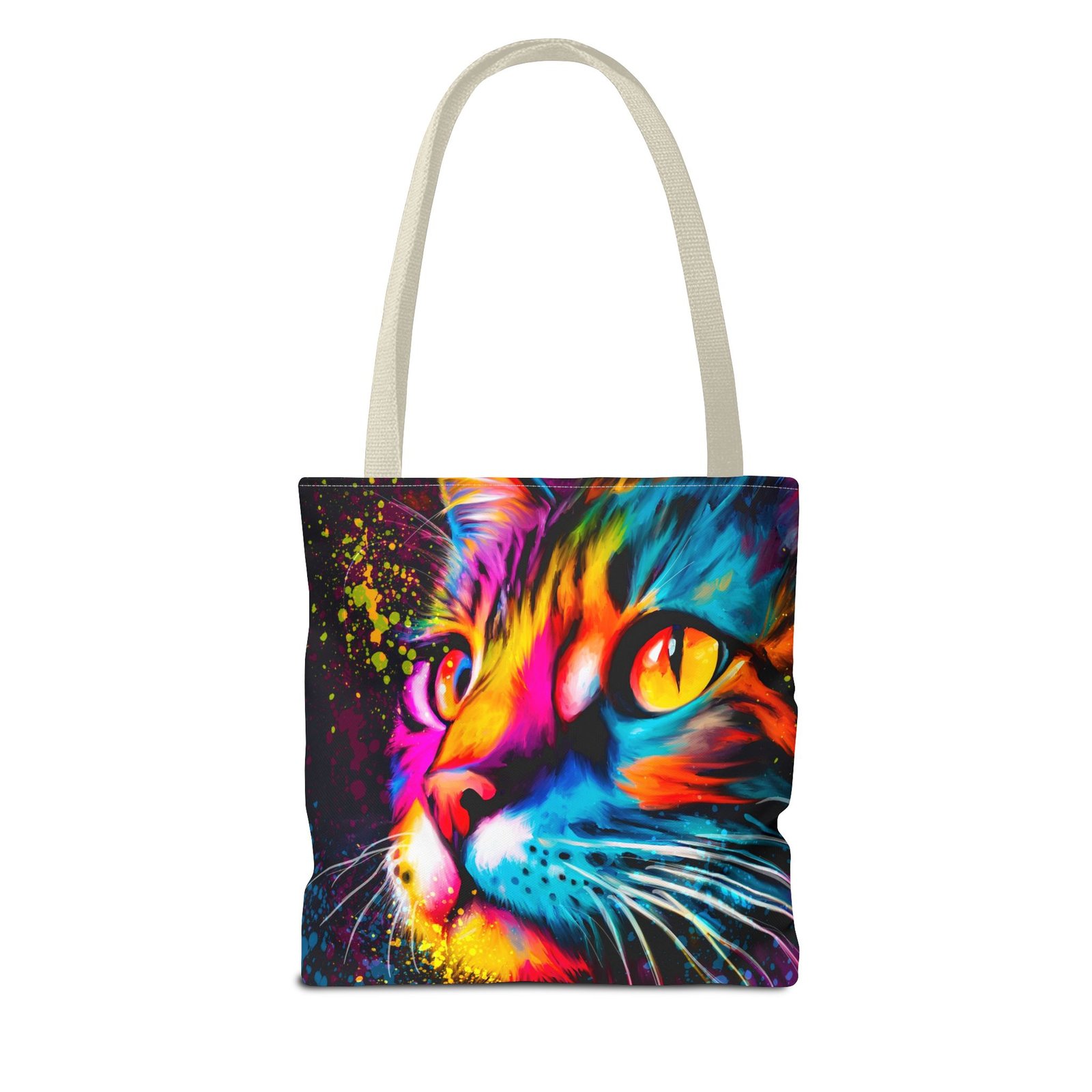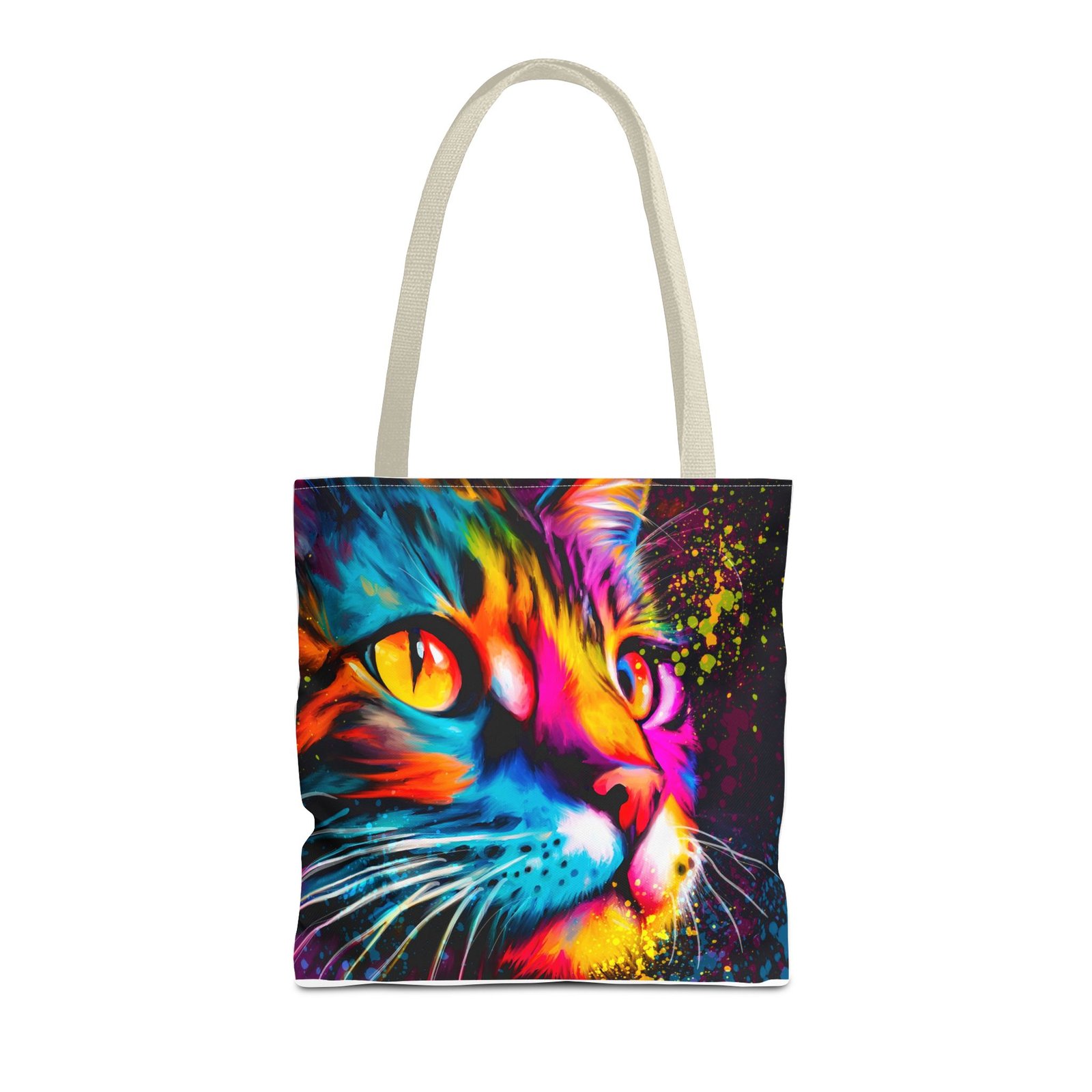 Introducing a vibrant tote bag that bursts with personality! This eye-catching accessory showcases a stunning, colorful cat design that adds a playful touch to any outfit. Perfect for cat lovers and those looking to make a statement, this tote bag is both functional and stylish. Whether you’re heading to the grocery store, a day at the beach, or simply out for coffee, it’s designed to be your daily companion. Its sturdy construction ensures it can handle your everyday essentials while keeping you in the spotlight. Ideal for gifting during holidays, birthdays, or just to brighten someone’s day!