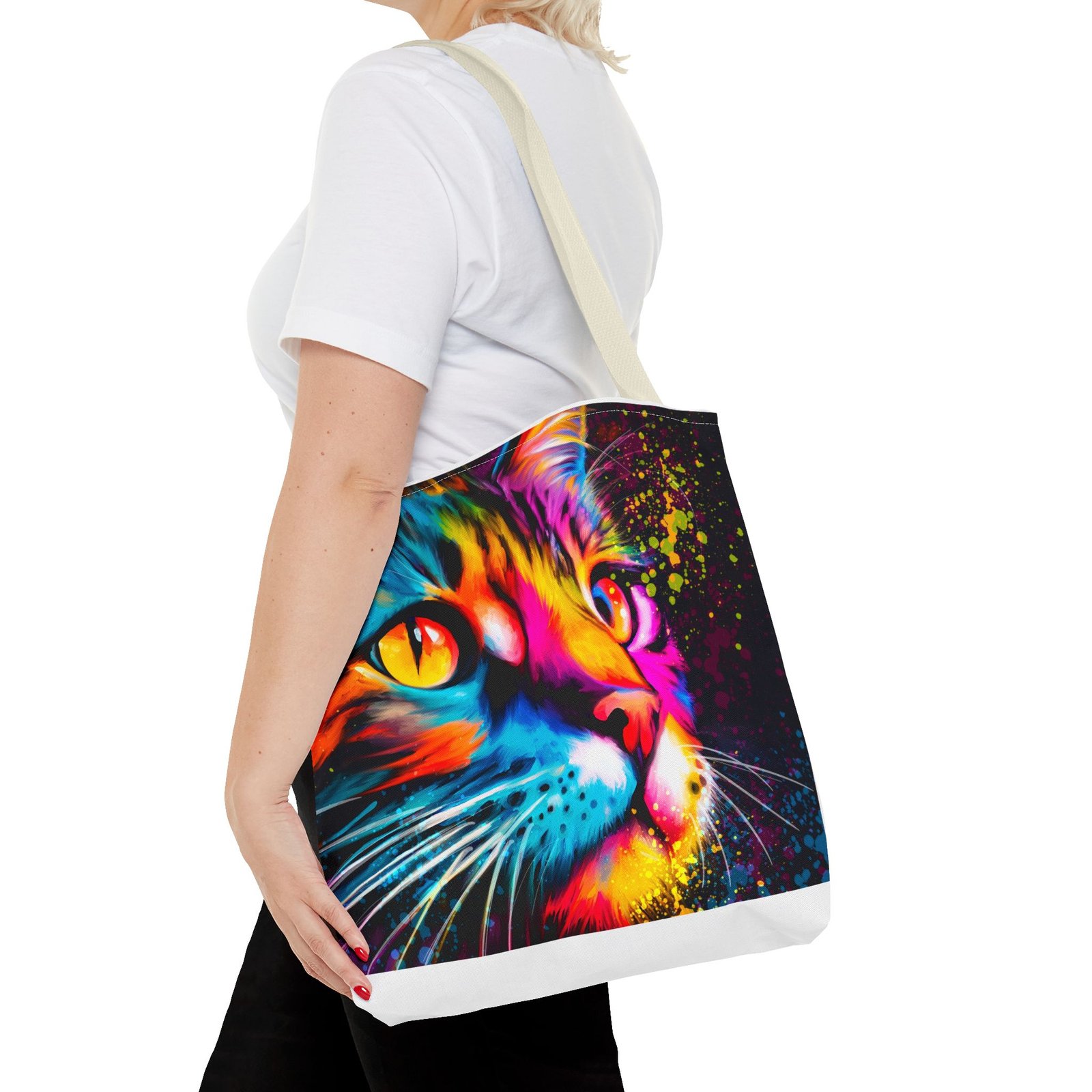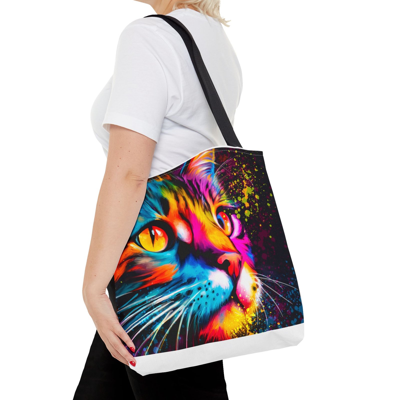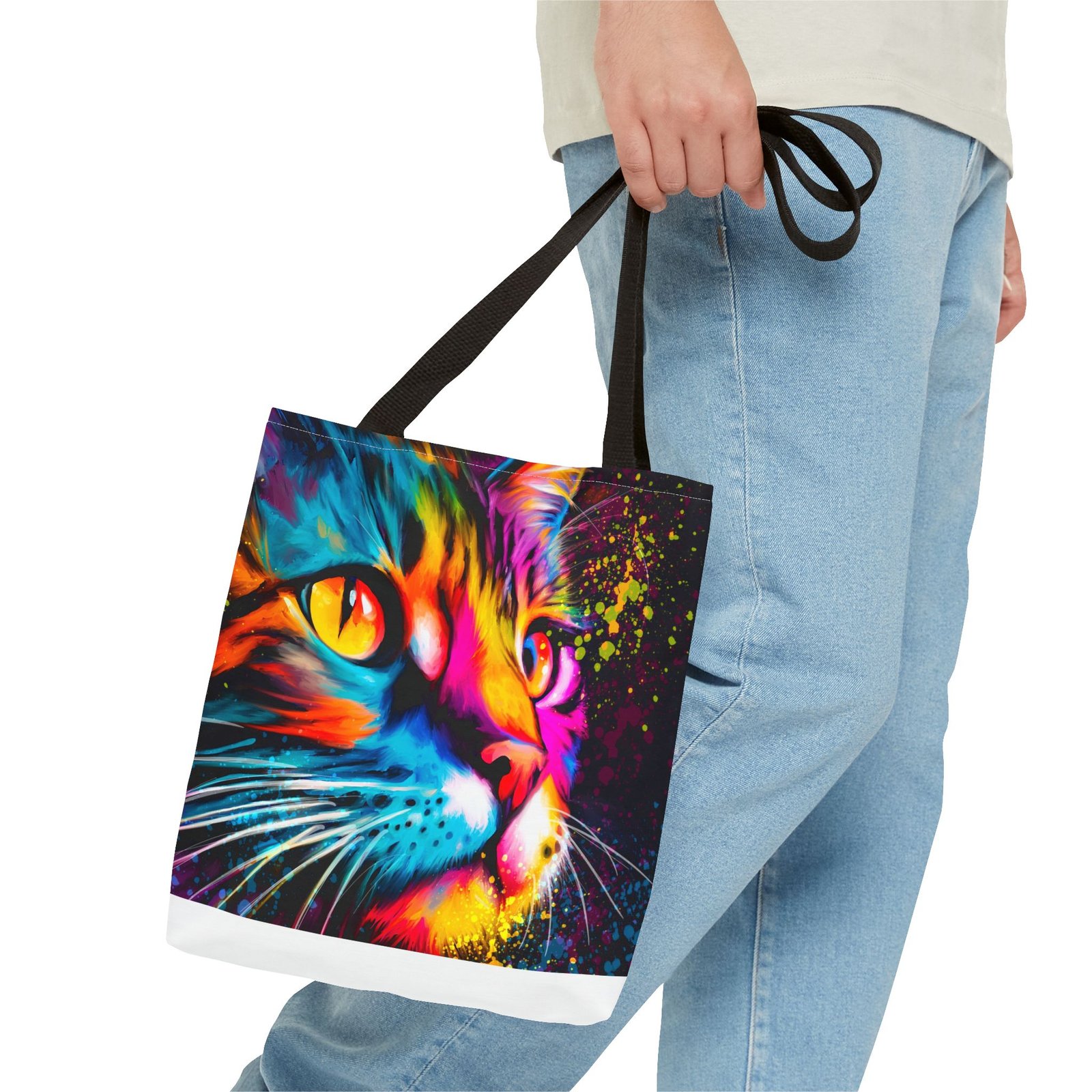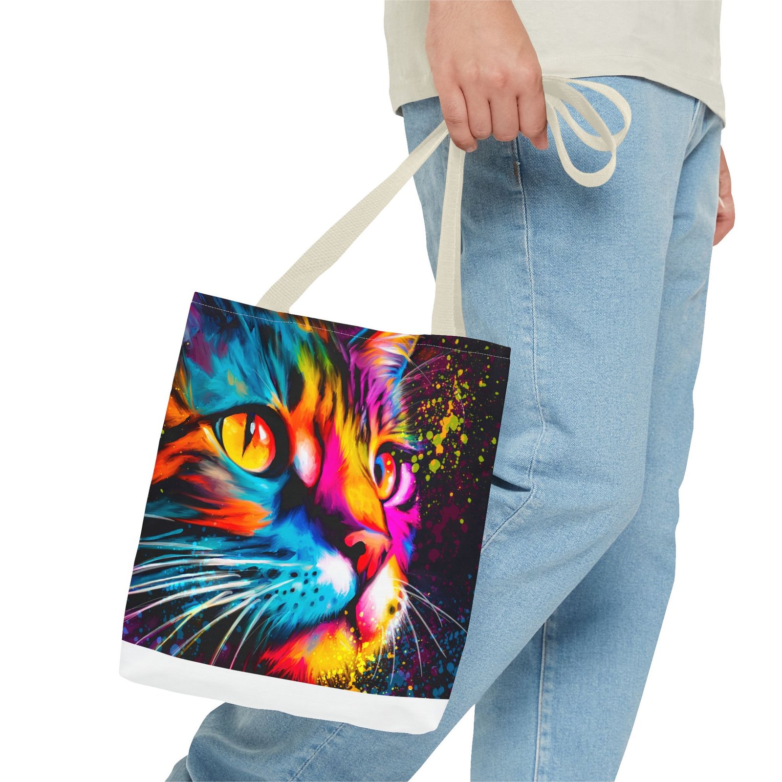 Introducing a vibrant tote bag that bursts with personality! This eye-catching accessory showcases a stunning, colorful cat design that adds a playful touch to any outfit. Perfect for cat lovers and those looking to make a statement, this tote bag is both functional and stylish. Whether you’re heading to the grocery store, a day at the beach, or simply out for coffee, it’s designed to be your daily companion. Its sturdy construction ensures it can handle your everyday essentials while keeping you in the spotlight. Ideal for gifting during holidays, birthdays, or just to brighten someone’s day!