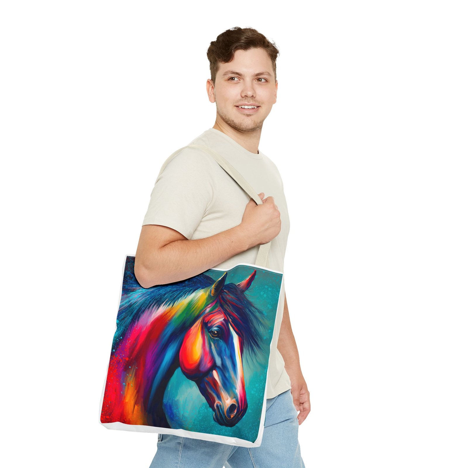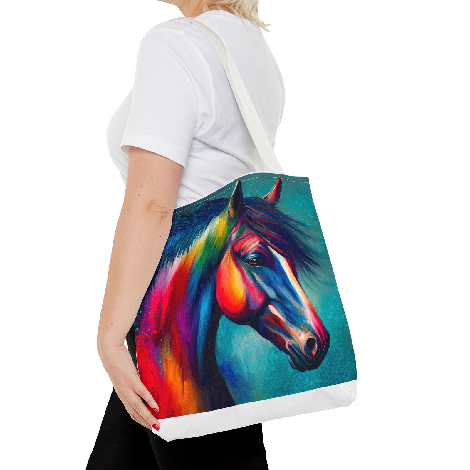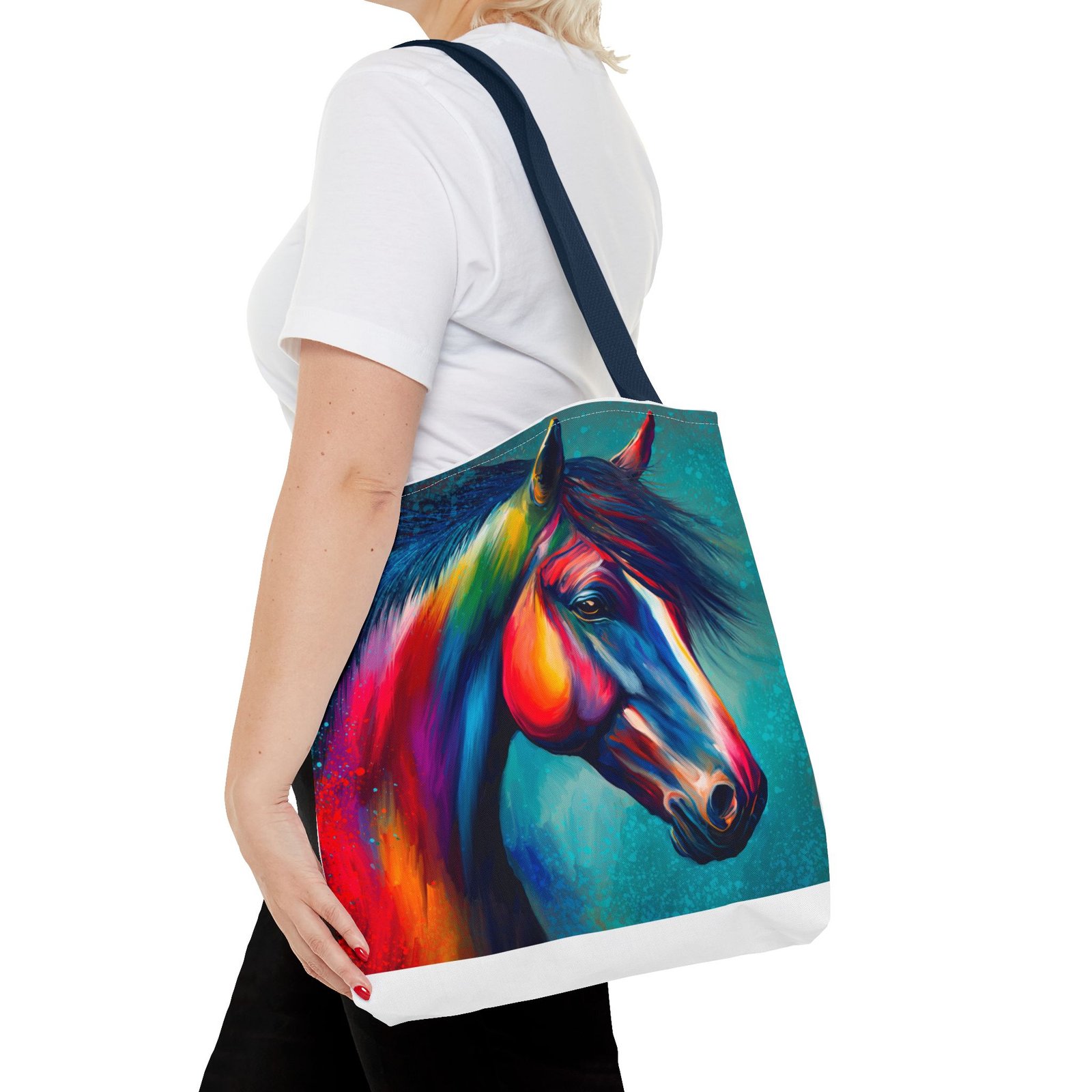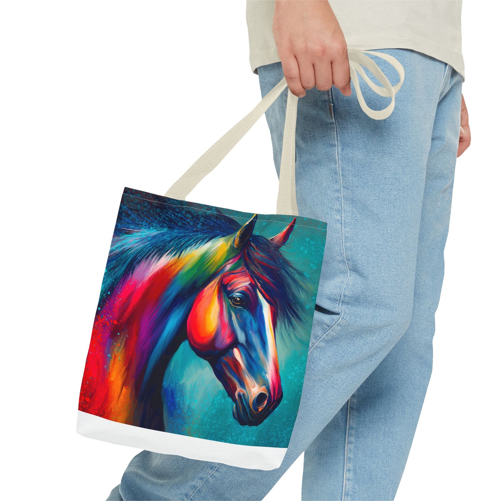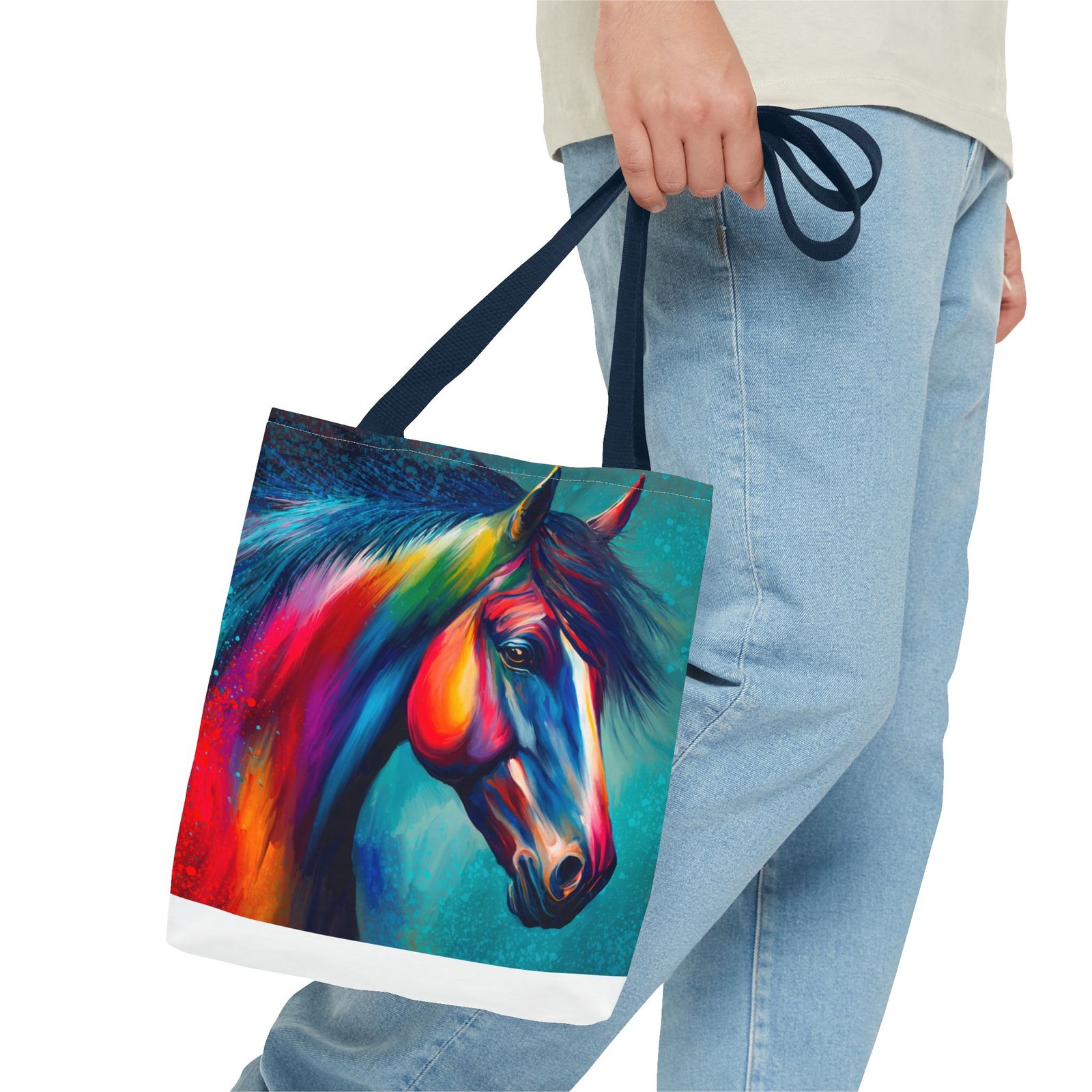 This vibrant tote bag is perfect for those who love to express their individuality and style. Featuring a stunning multi-colored horse design, it radiates a joyful and artistic vibe, making it an ideal accessory for everyday use. Whether you’re heading to the beach, running errands, or enjoying a picnic, this tote bag is both functional and fashionable. It’s especially relevant for animal lovers, artists, or anyone looking to add a pop of color to their life. Perfect for gifts during holidays, birthdays, or as a unique back-to-school item, this bag adds a personal touch to any occasion.