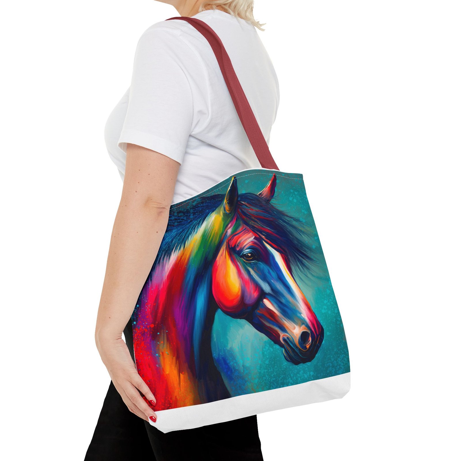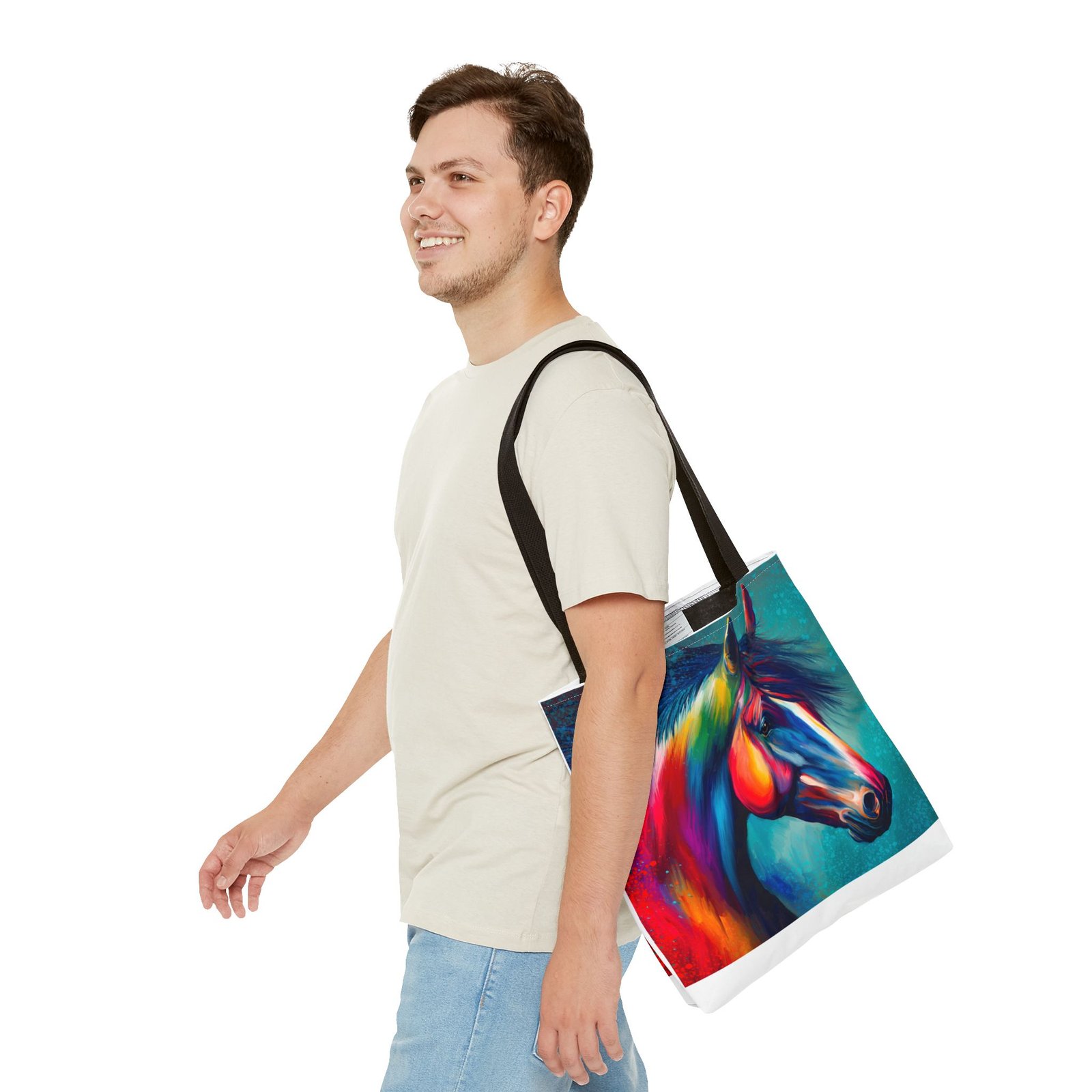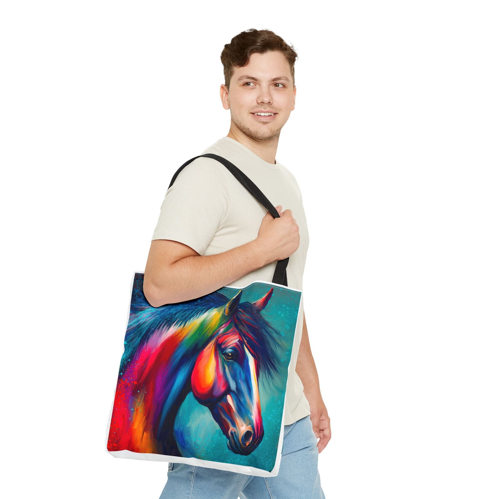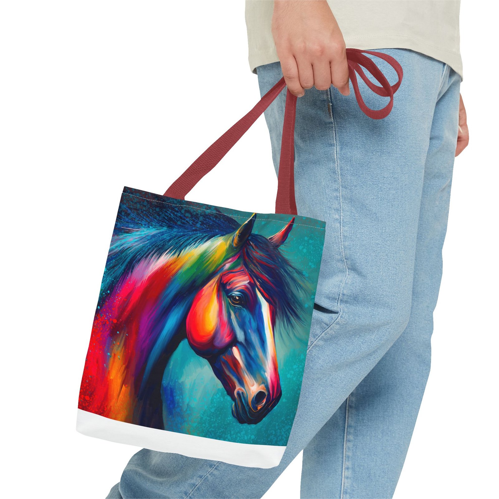 This vibrant tote bag is perfect for those who love to express their individuality and style. Featuring a stunning multi-colored horse design, it radiates a joyful and artistic vibe, making it an ideal accessory for everyday use. Whether you’re heading to the beach, running errands, or enjoying a picnic, this tote bag is both functional and fashionable. It’s especially relevant for animal lovers, artists, or anyone looking to add a pop of color to their life. Perfect for gifts during holidays, birthdays, or as a unique back-to-school item, this bag adds a personal touch to any occasion.