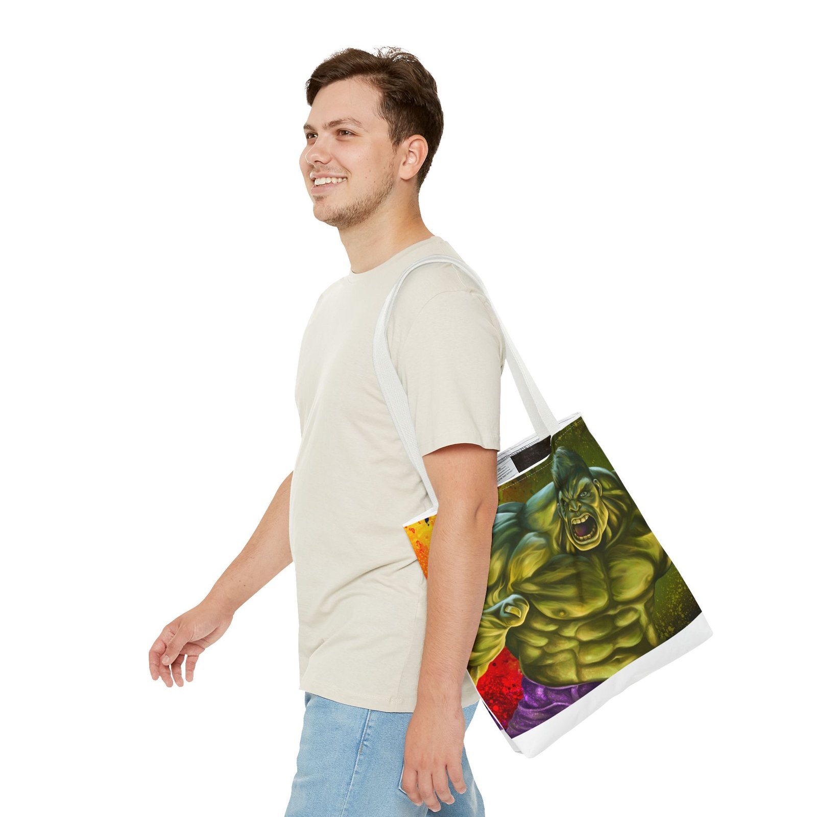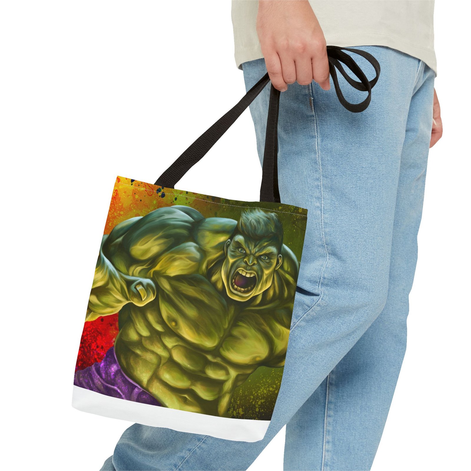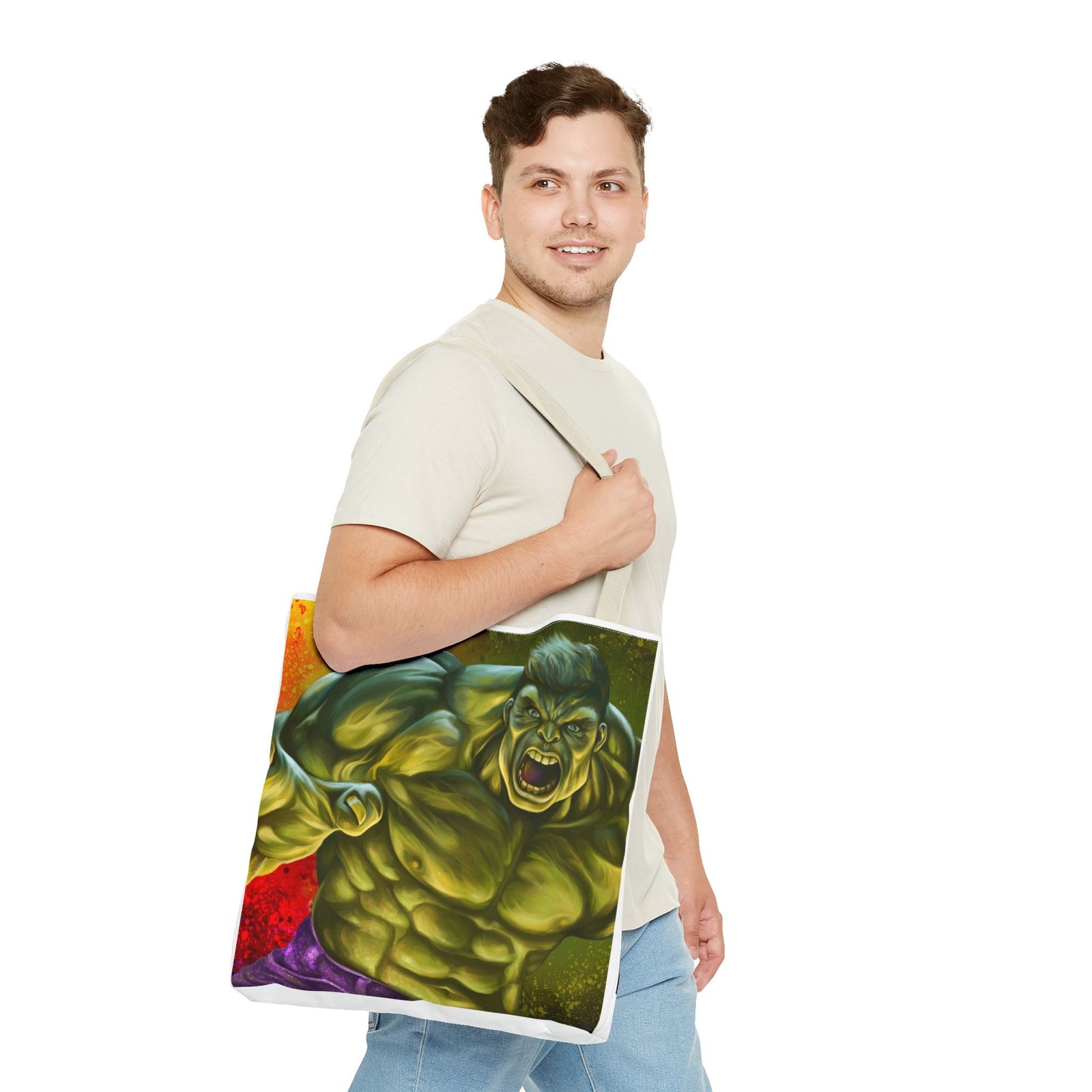Introducing a vibrant Tote Bag that perfectly blends style and utility. Made from a durable 100% polyester fabric, this bag is strong enough to withstand daily wear and tear while keeping its shape. The striking design featuring a dynamic character adds a lively touch to your outfit, making it ideal for those who love to express themselves creatively. This Tote Bag is a great choice for shoppers, students, or beachgoers, offering ample space for all your essentials with boxed corners for added capacity. Perfect for casual outings, holidays, or special occasions like birthdays and celebrations, it’s a fantastic gift for friends and family who appreciate bold and functional accessories. Elevate your everyday carry with a bag that makes a statement!