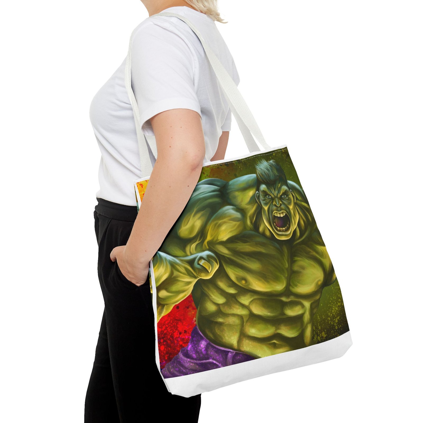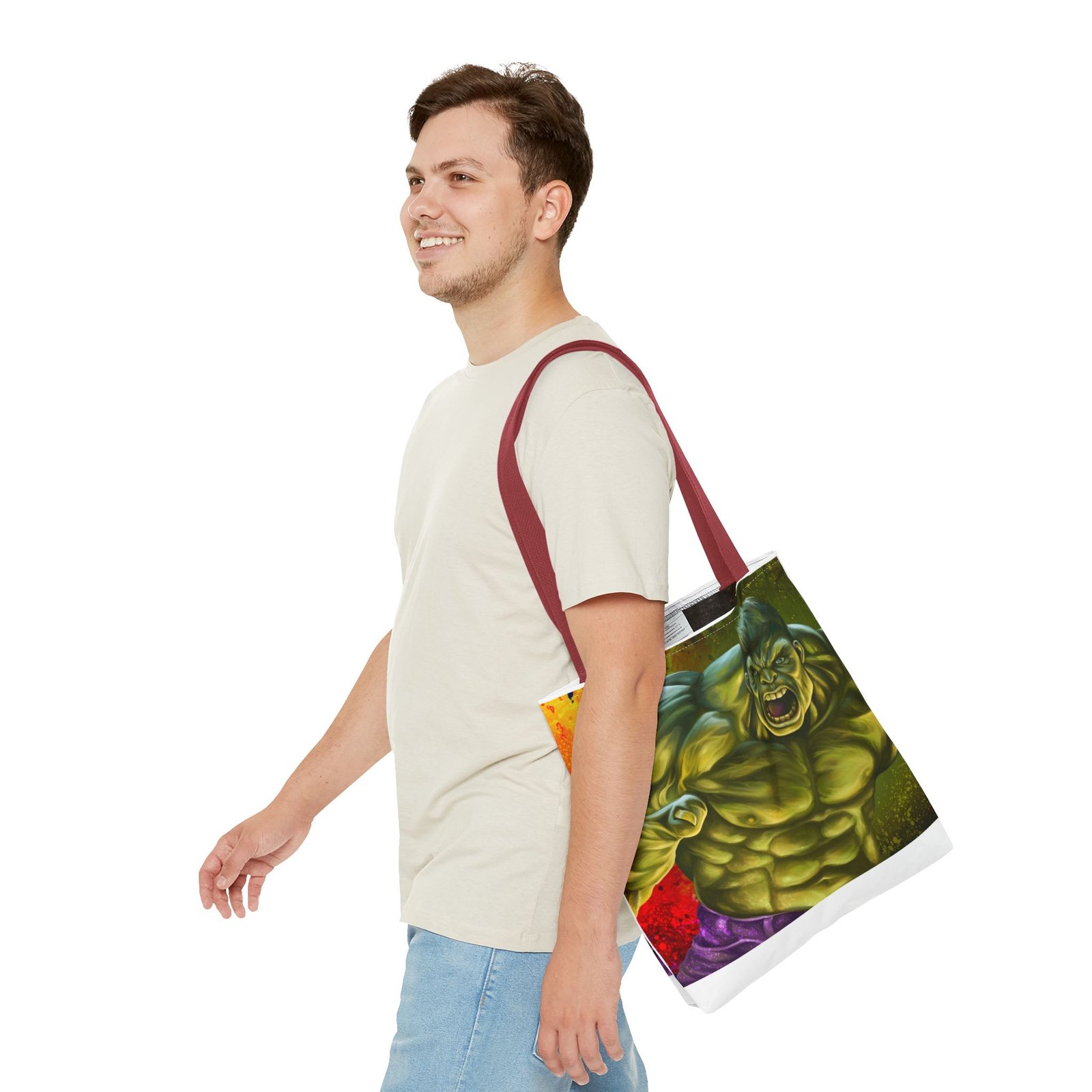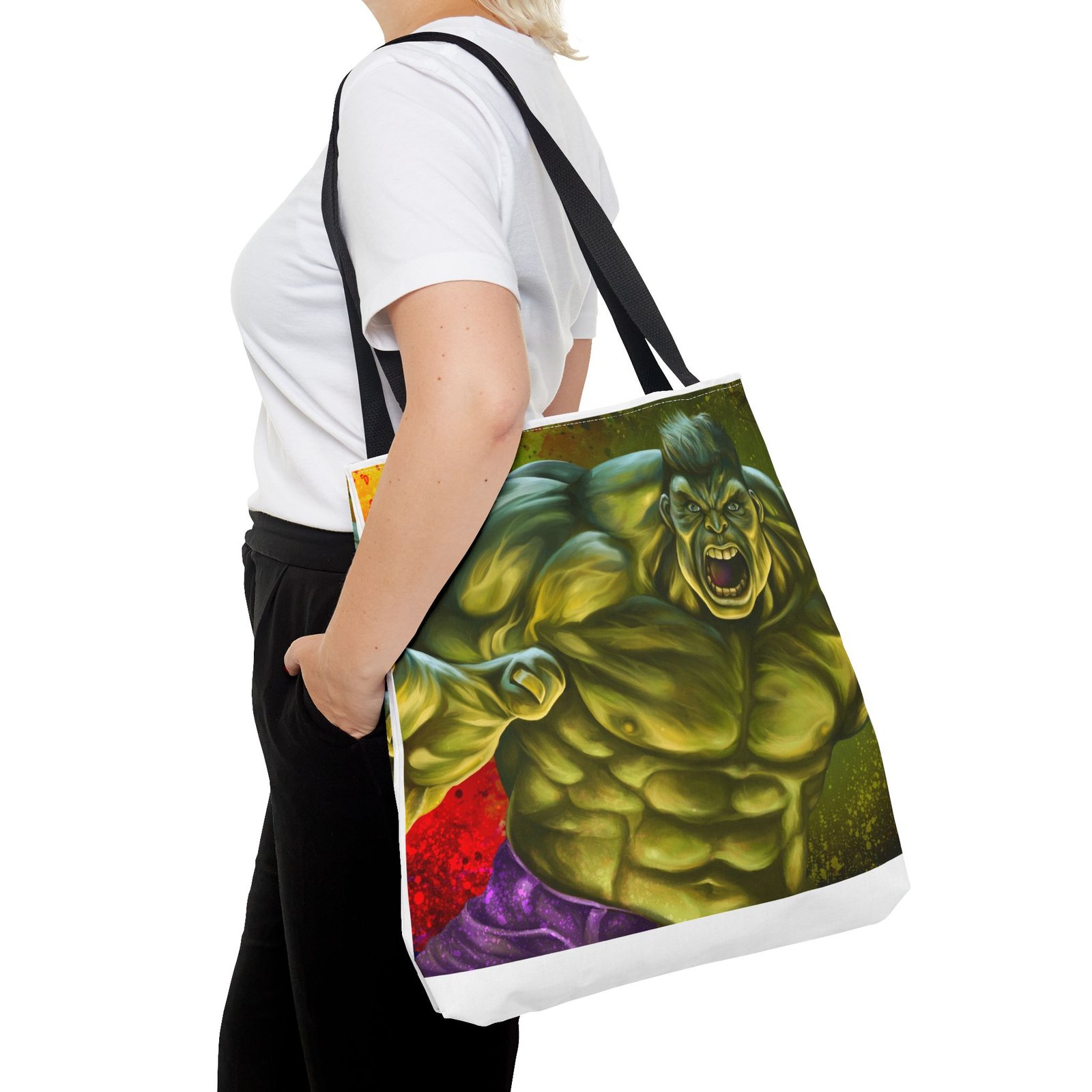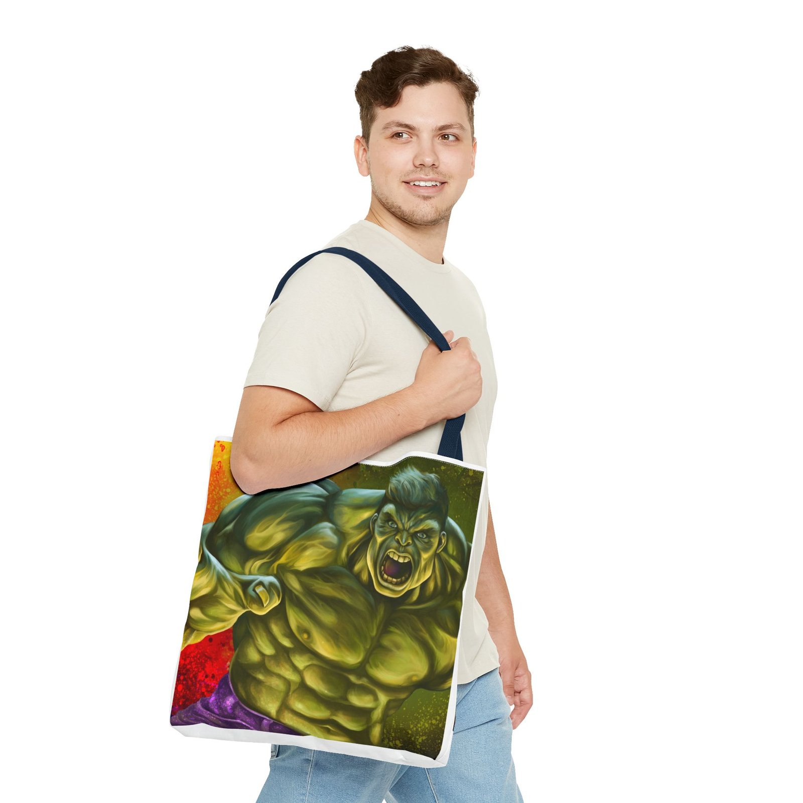 Introducing a vibrant Tote Bag that perfectly blends style and utility. Made from a durable 100% polyester fabric, this bag is strong enough to withstand daily wear and tear while keeping its shape. The striking design featuring a dynamic character adds a lively touch to your outfit, making it ideal for those who love to express themselves creatively. This Tote Bag is a great choice for shoppers, students, or beachgoers, offering ample space for all your essentials with boxed corners for added capacity. Perfect for casual outings, holidays, or special occasions like birthdays and celebrations, it’s a fantastic gift for friends and family who appreciate bold and functional accessories. Elevate your everyday carry with a bag that makes a statement!