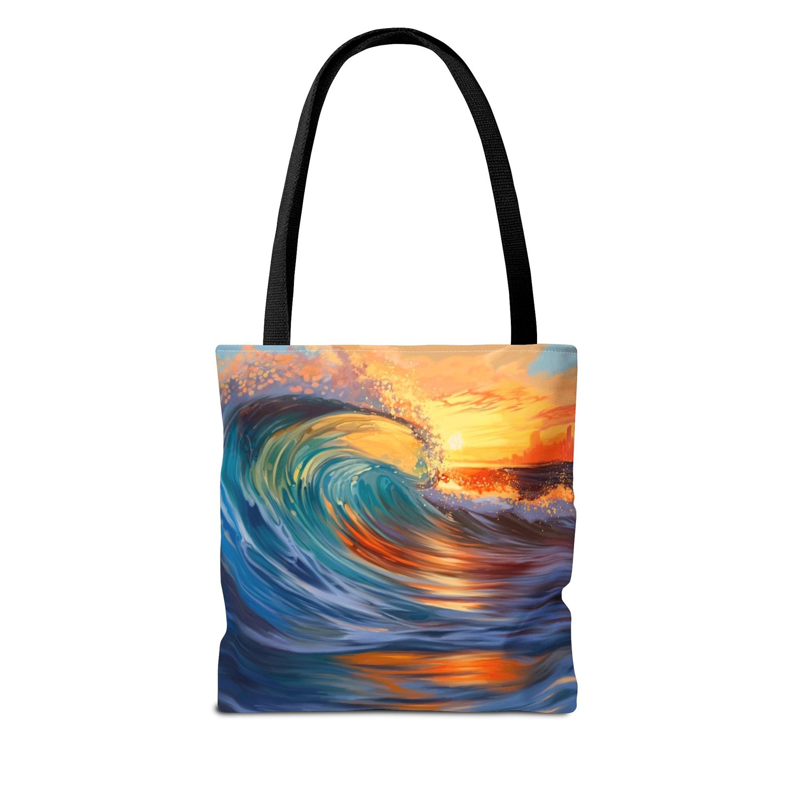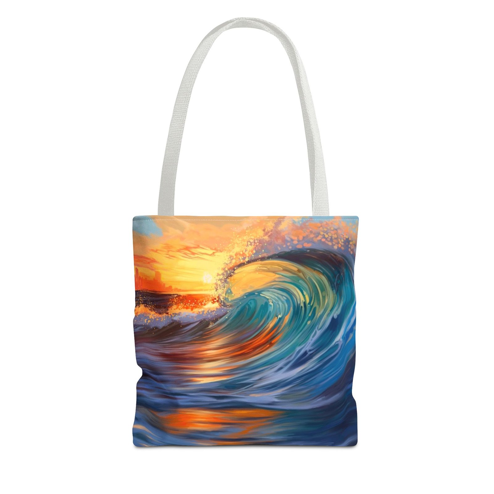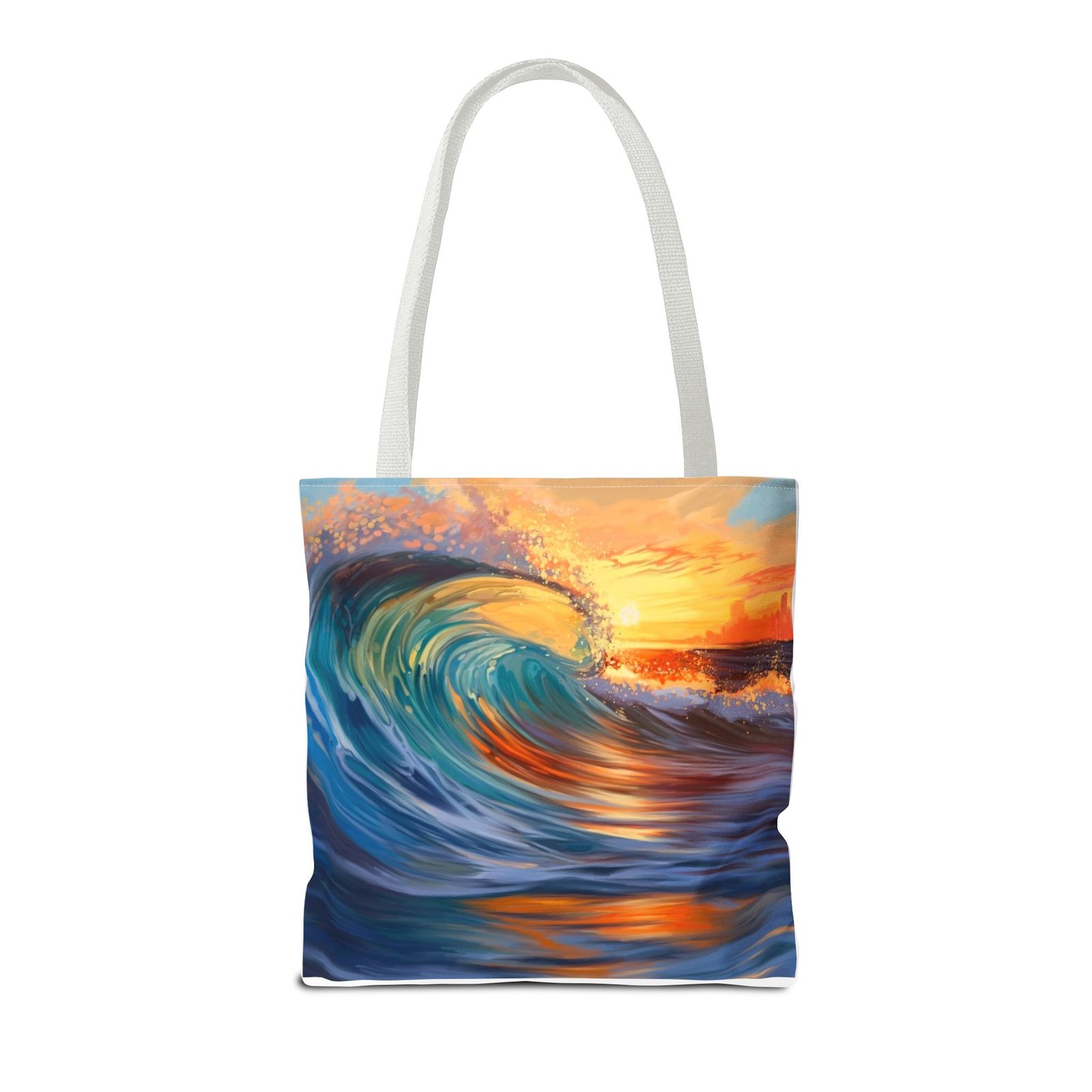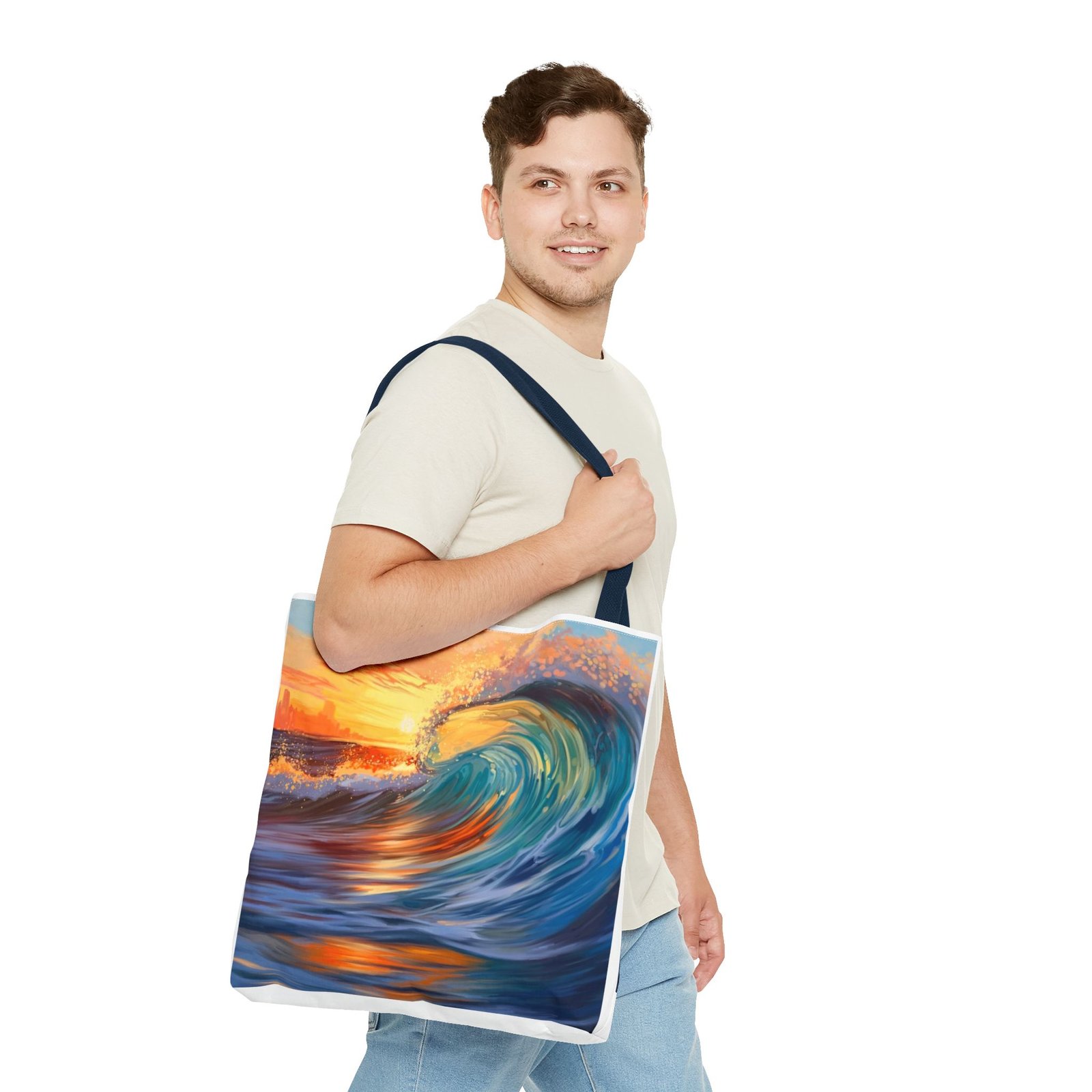 Introducing our stunning Tote Bag, designed for those who appreciate both style and functionality. This eye-catching bag features a vibrant wave design, inspired by the beauty of the ocean at sunset. Perfect for beach outings, shopping trips, or daily errands, it brings a touch of tranquility and adventure to your day. Ideal for environmentally conscious individuals, this tote is great for anyone who enjoys expressing their love for nature. It makes for a thoughtful gift during holidays like Earth Day, summer vacations, or just as a special treat for oneself! Whether you’re heading to the gym or the farmer’s market, this tote bag complements your lifestyle effortlessly.