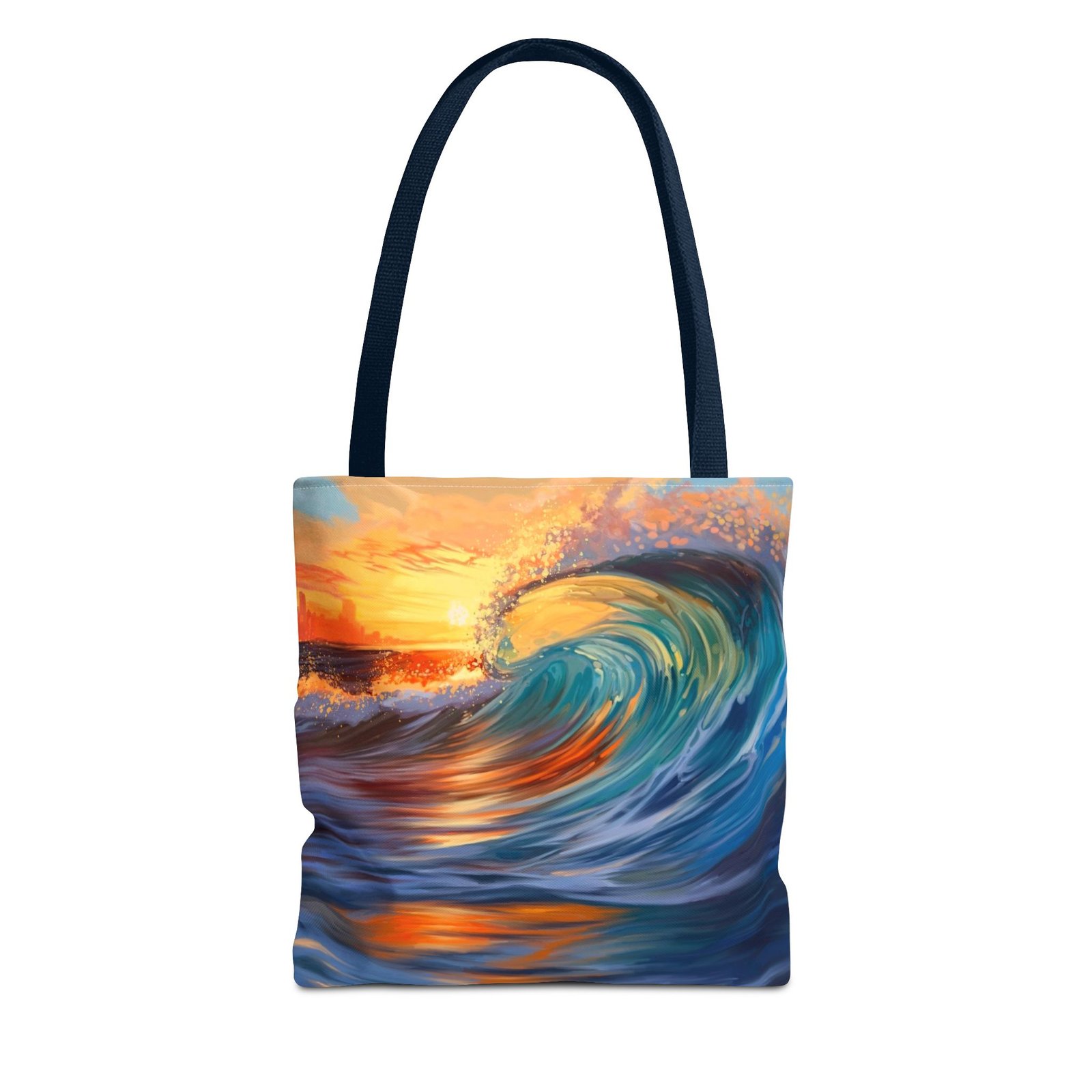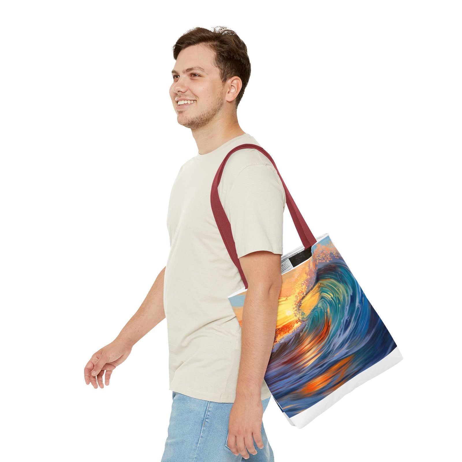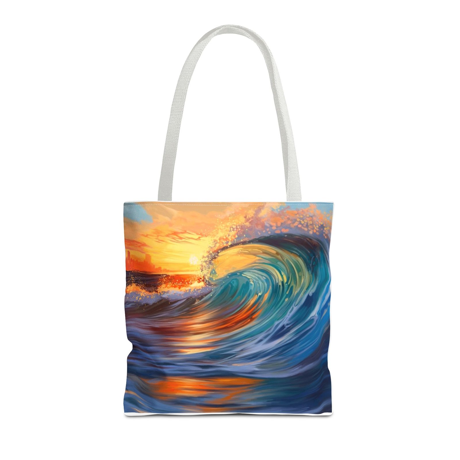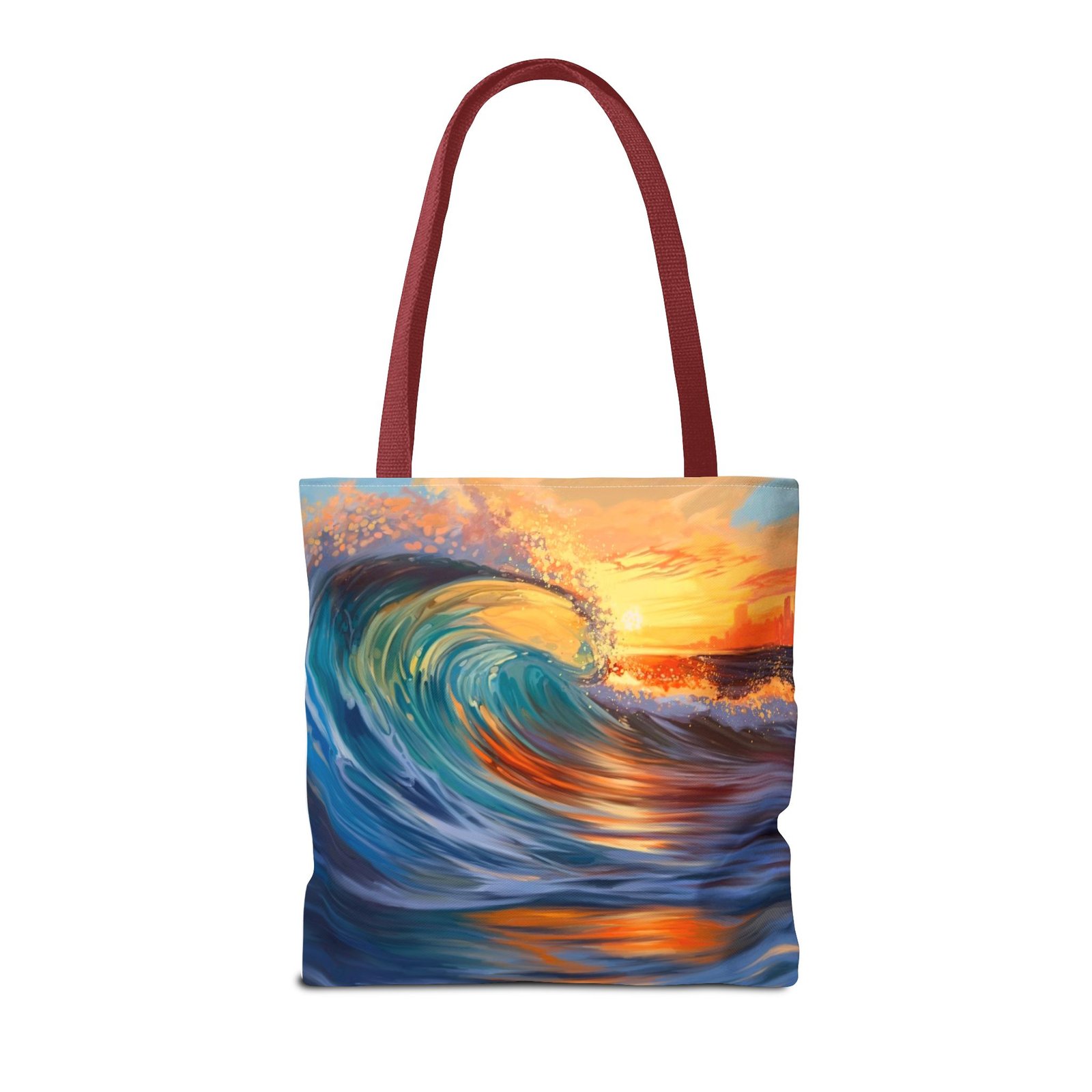 Introducing our stunning Tote Bag, designed for those who appreciate both style and functionality. This eye-catching bag features a vibrant wave design, inspired by the beauty of the ocean at sunset. Perfect for beach outings, shopping trips, or daily errands, it brings a touch of tranquility and adventure to your day. Ideal for environmentally conscious individuals, this tote is great for anyone who enjoys expressing their love for nature. It makes for a thoughtful gift during holidays like Earth Day, summer vacations, or just as a special treat for oneself! Whether you’re heading to the gym or the farmer’s market, this tote bag complements your lifestyle effortlessly.