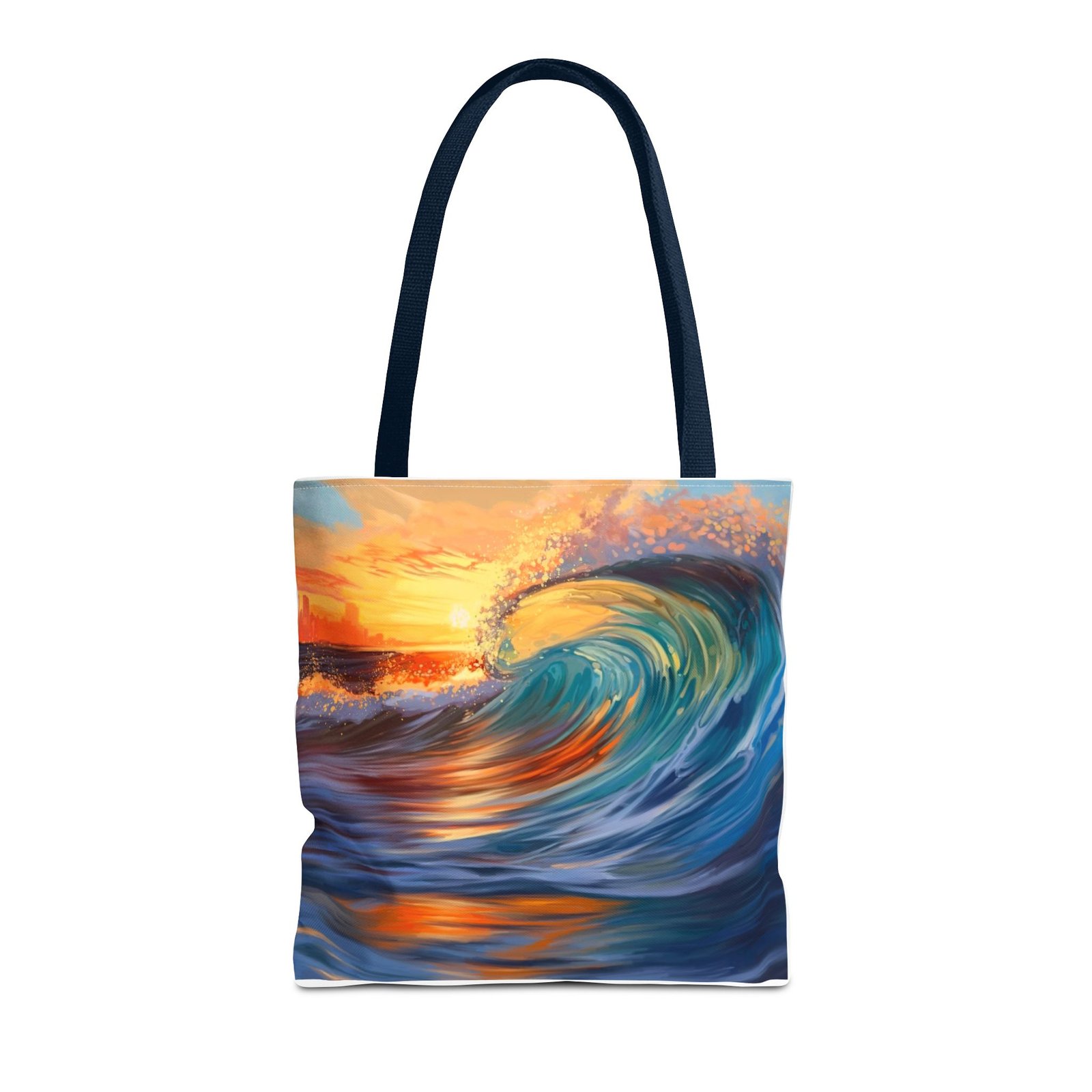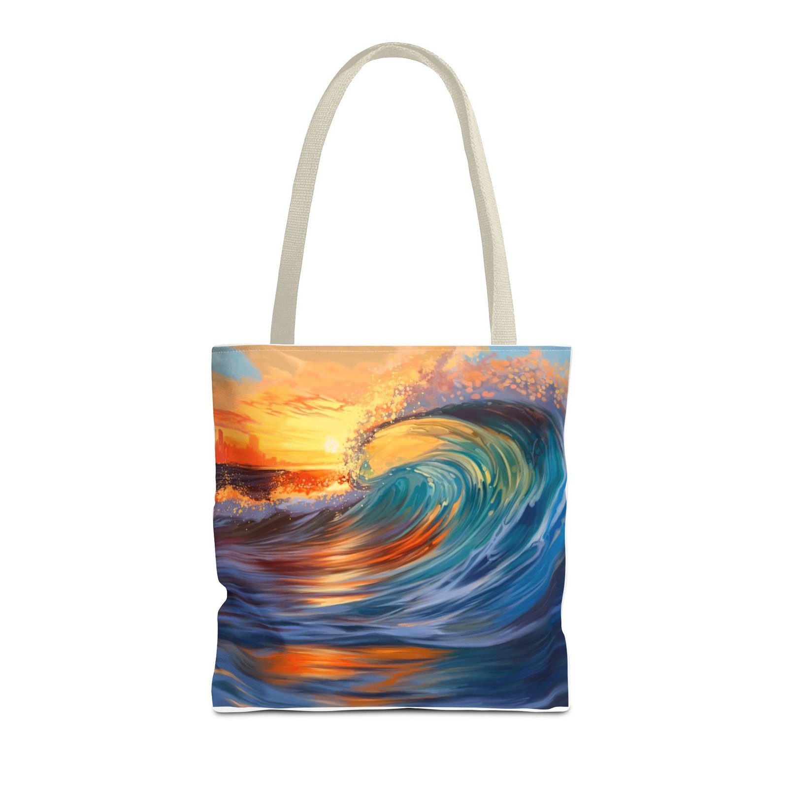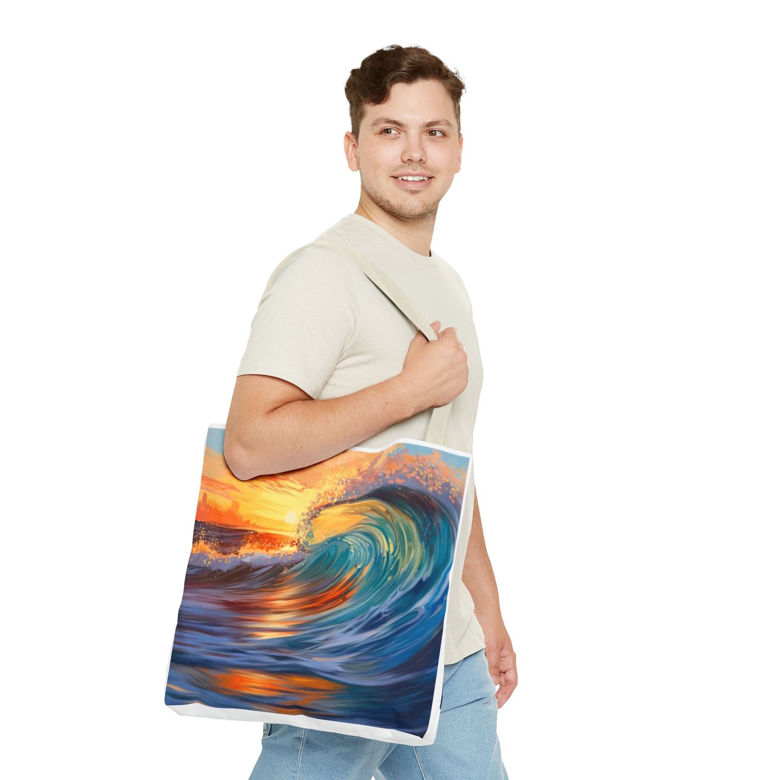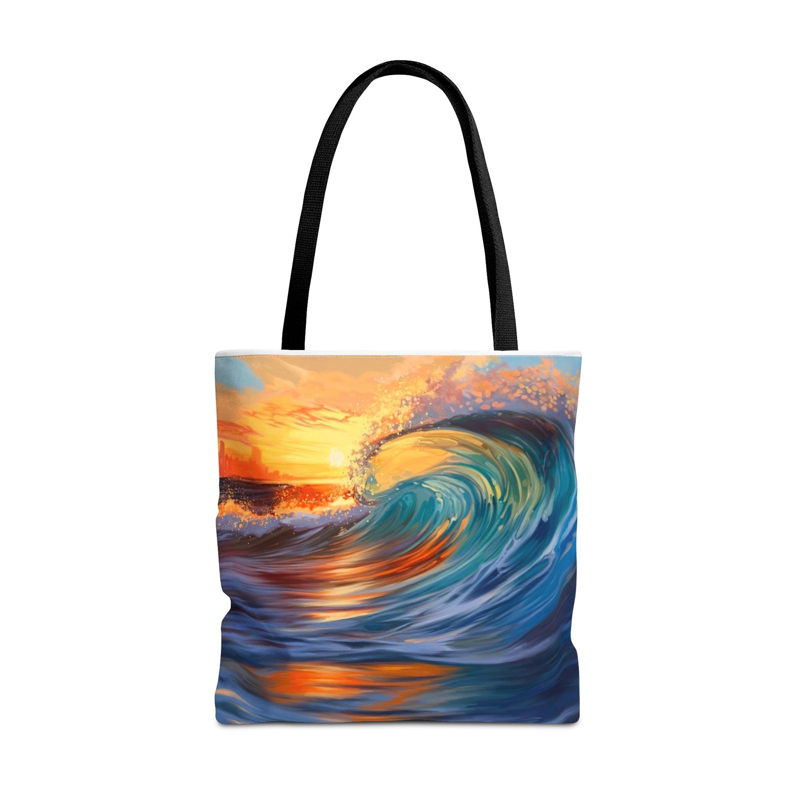Introducing our stunning Tote Bag, designed for those who appreciate both style and functionality. This eye-catching bag features a vibrant wave design, inspired by the beauty of the ocean at sunset. Perfect for beach outings, shopping trips, or daily errands, it brings a touch of tranquility and adventure to your day. Ideal for environmentally conscious individuals, this tote is great for anyone who enjoys expressing their love for nature. It makes for a thoughtful gift during holidays like Earth Day, summer vacations, or just as a special treat for oneself! Whether you’re heading to the gym or the farmer’s market, this tote bag complements your lifestyle effortlessly.