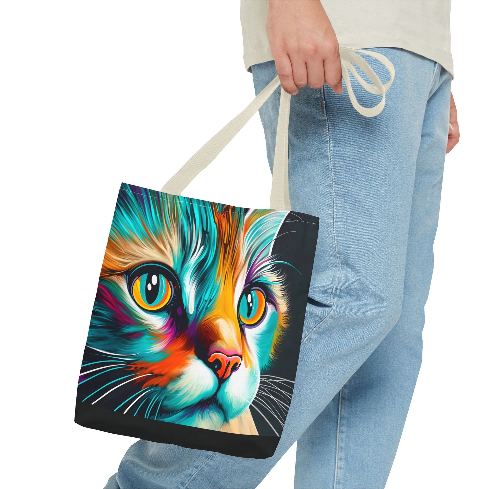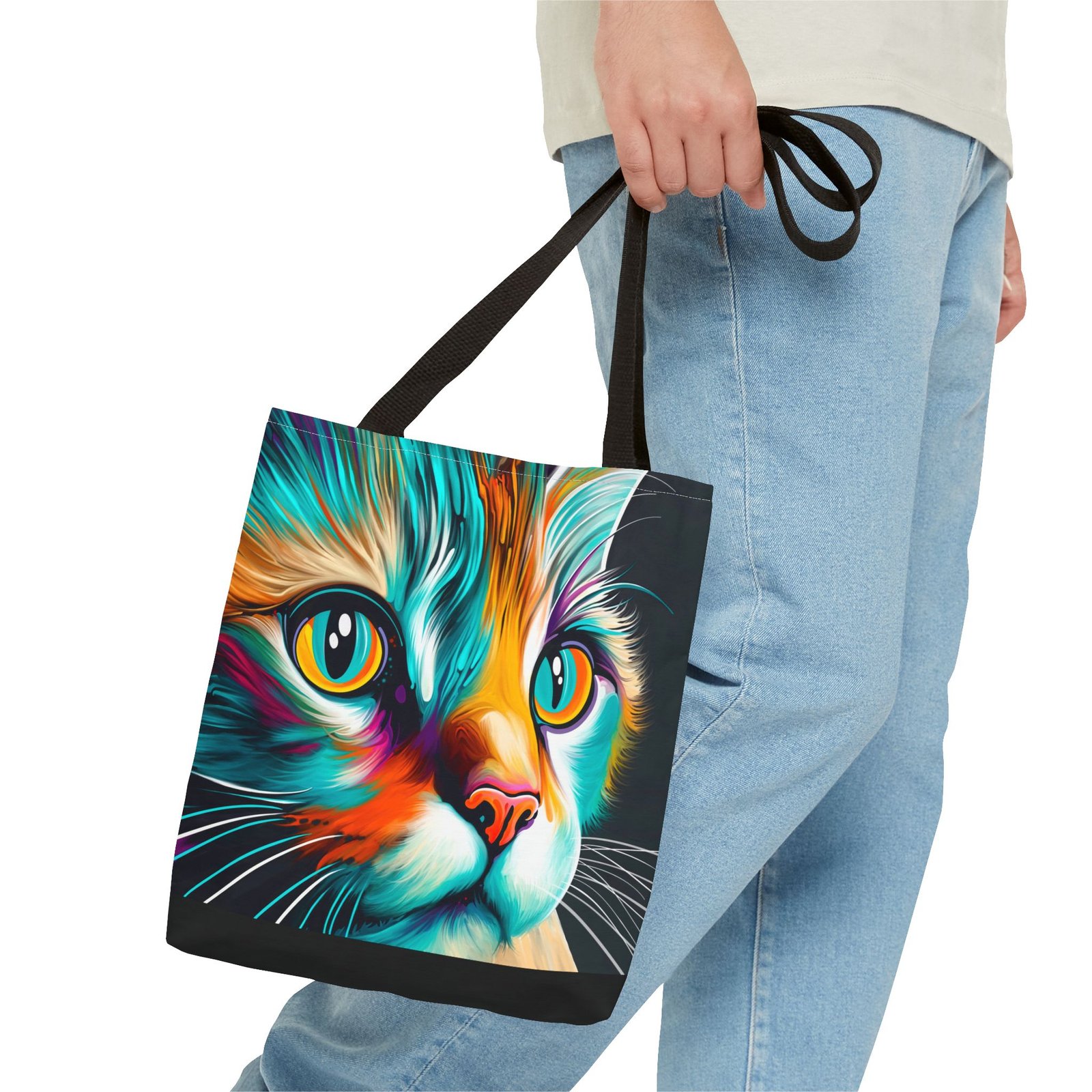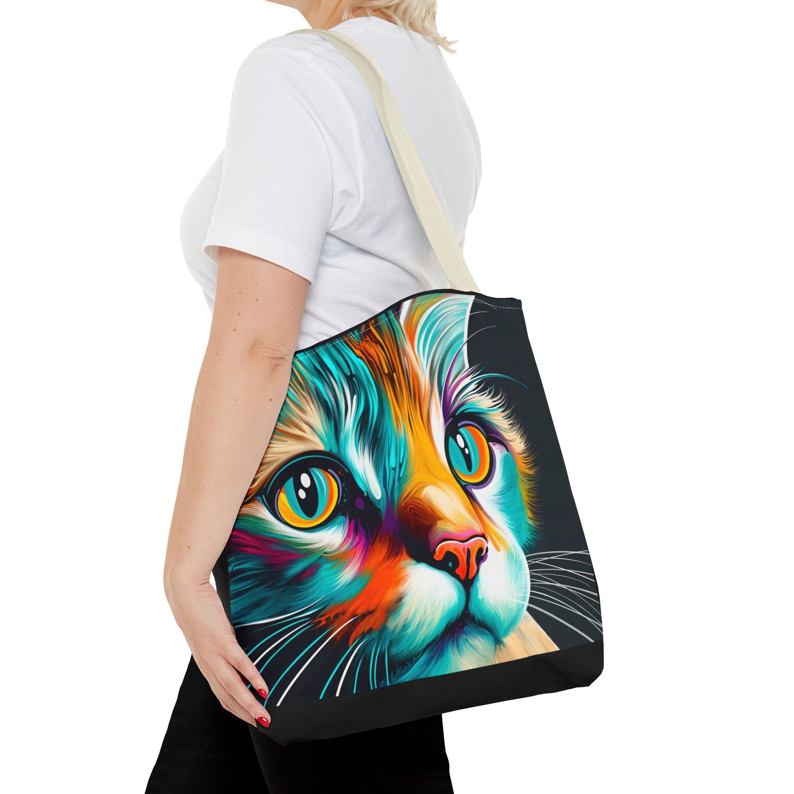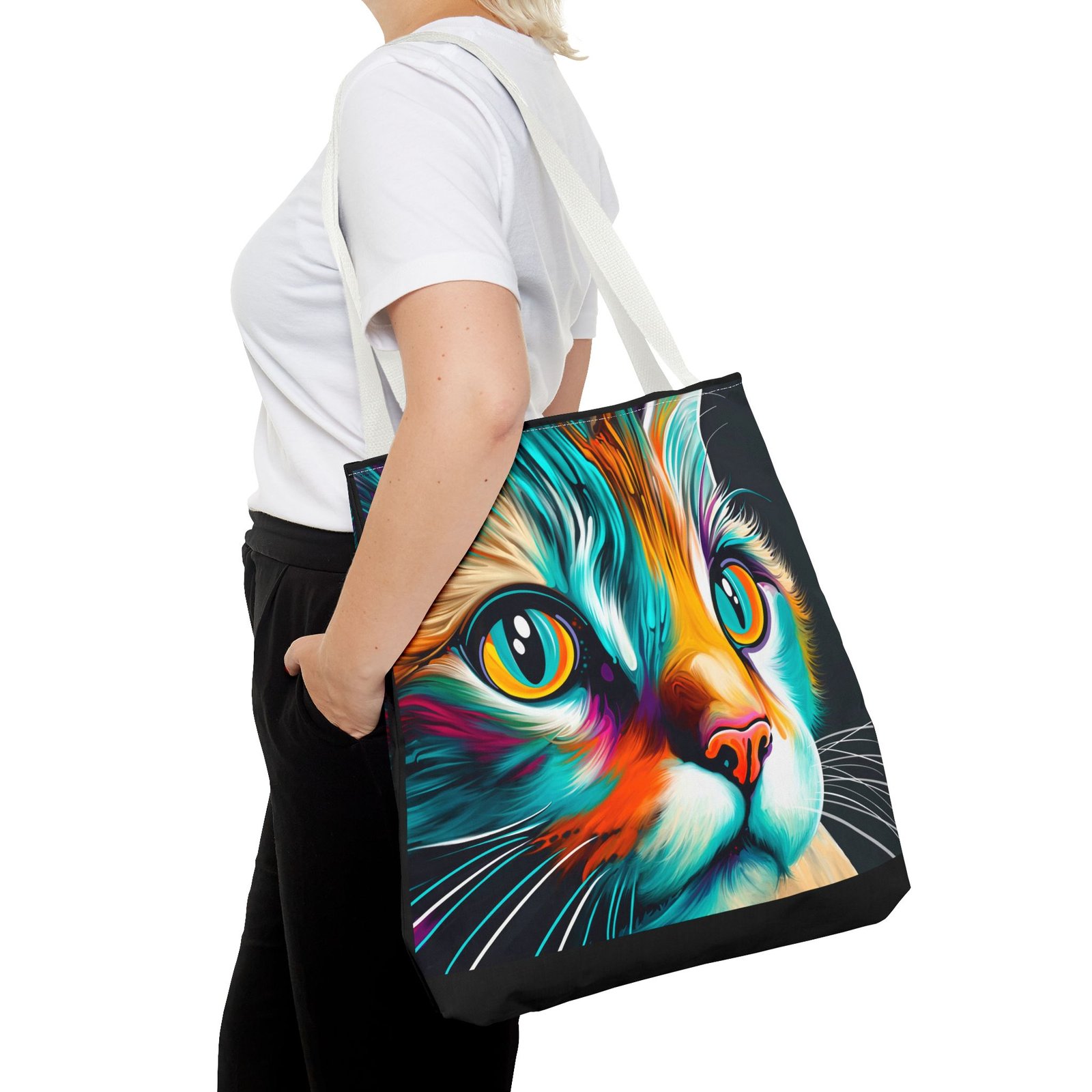 Introducing a vibrant and eye-catching Tote Bag, perfect for cat lovers and art enthusiasts alike! This striking bag features a colorful design that brings a playful yet stylish vibe to any outfit. Whether you’re headed to the farmers’ market, a day at the beach, or simply out on a shopping spree, this tote adds flair to your everyday adventures. Its spacious design ensures you have plenty of room for all your essentials. Ideal for birthdays, holidays, or even as a thoughtful gift for a friend, this Tote Bag is sure to brighten anyone’s day! Embrace your love for cats and make a statement with this unique accessory.