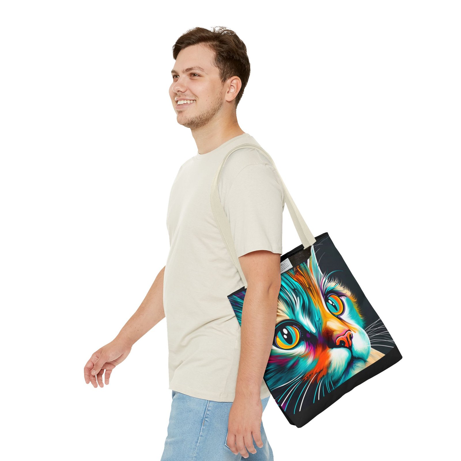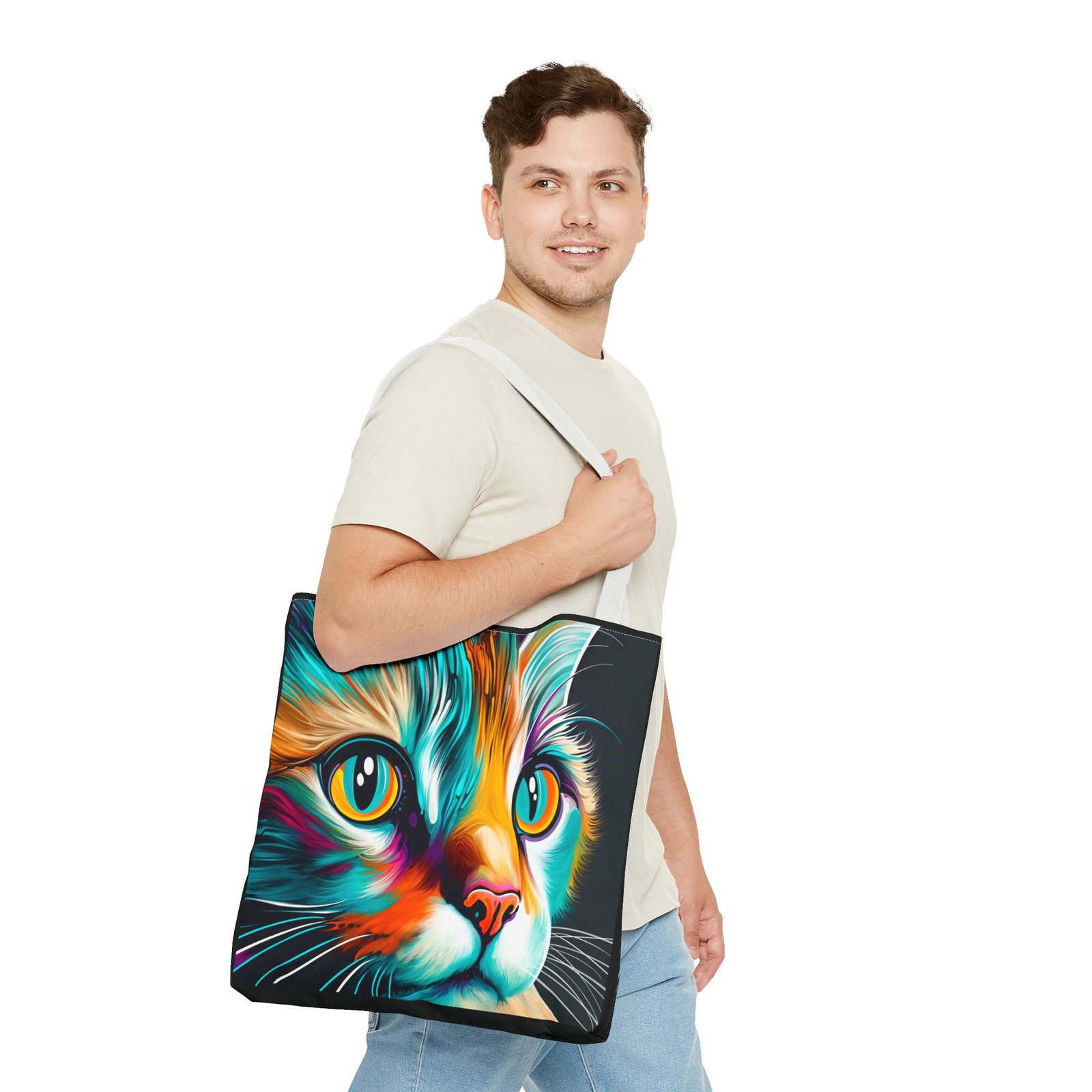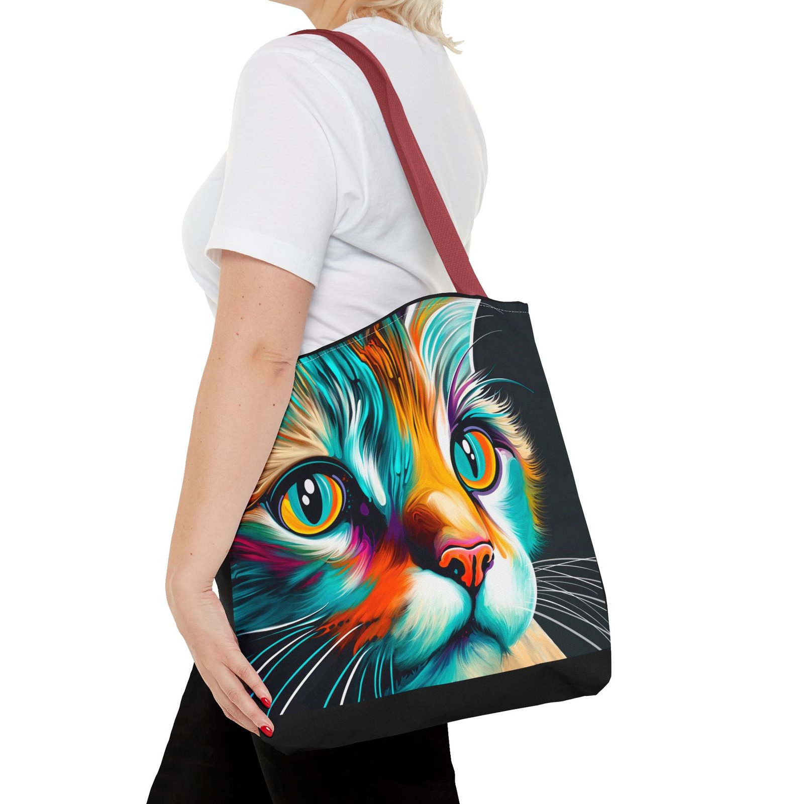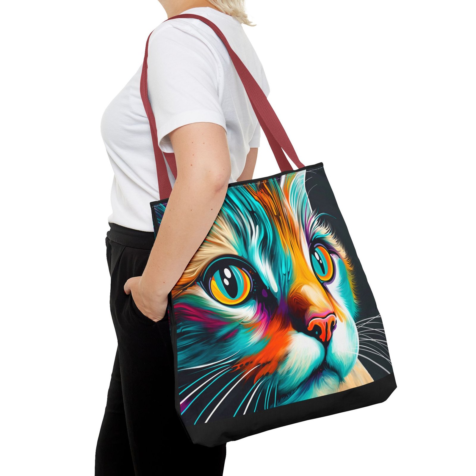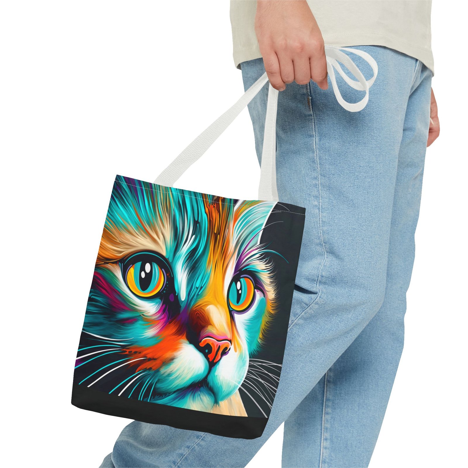 Introducing a vibrant and eye-catching Tote Bag, perfect for cat lovers and art enthusiasts alike! This striking bag features a colorful design that brings a playful yet stylish vibe to any outfit. Whether you’re headed to the farmers’ market, a day at the beach, or simply out on a shopping spree, this tote adds flair to your everyday adventures. Its spacious design ensures you have plenty of room for all your essentials. Ideal for birthdays, holidays, or even as a thoughtful gift for a friend, this Tote Bag is sure to brighten anyone’s day! Embrace your love for cats and make a statement with this unique accessory.