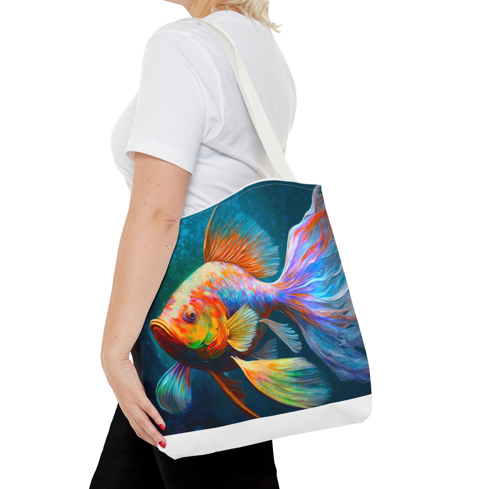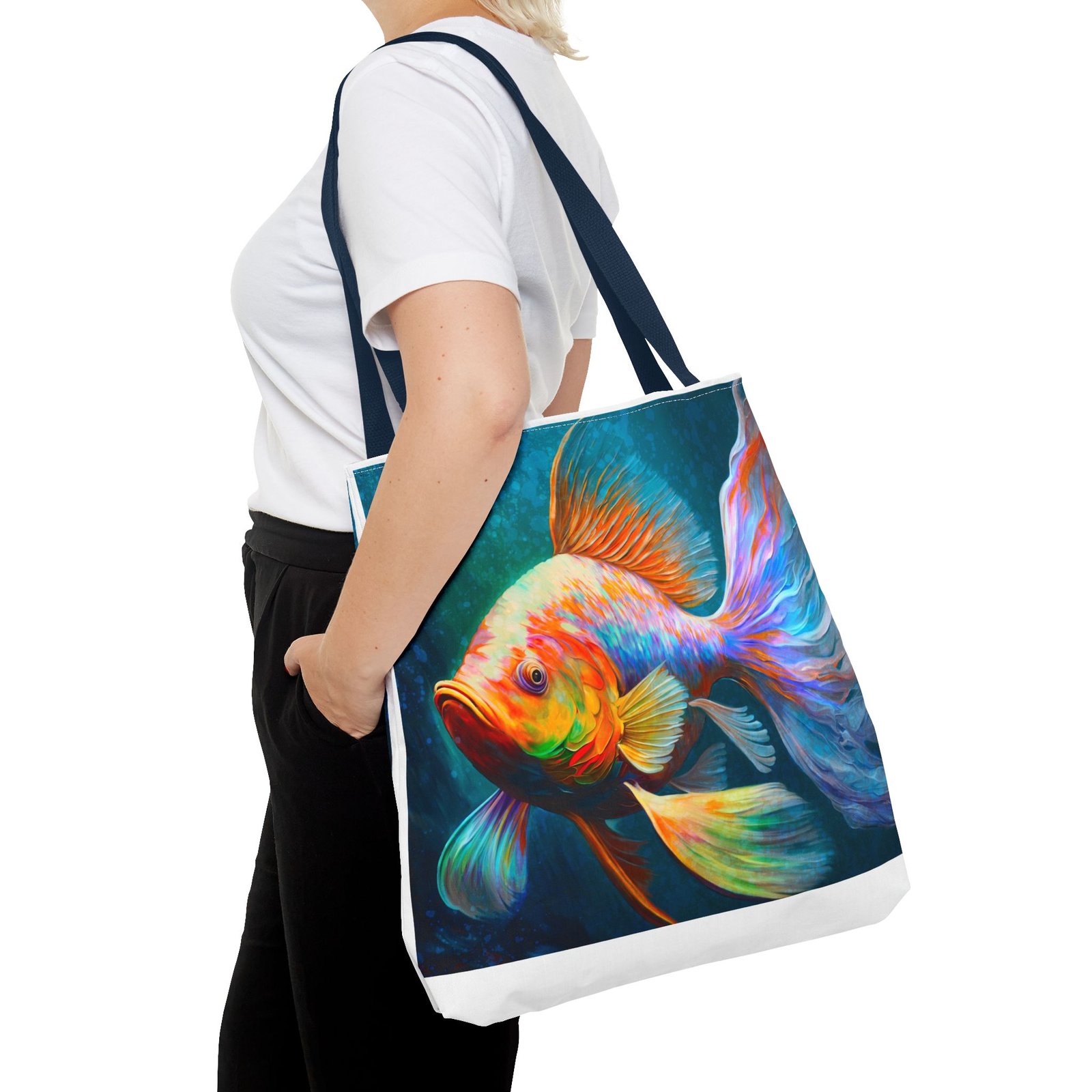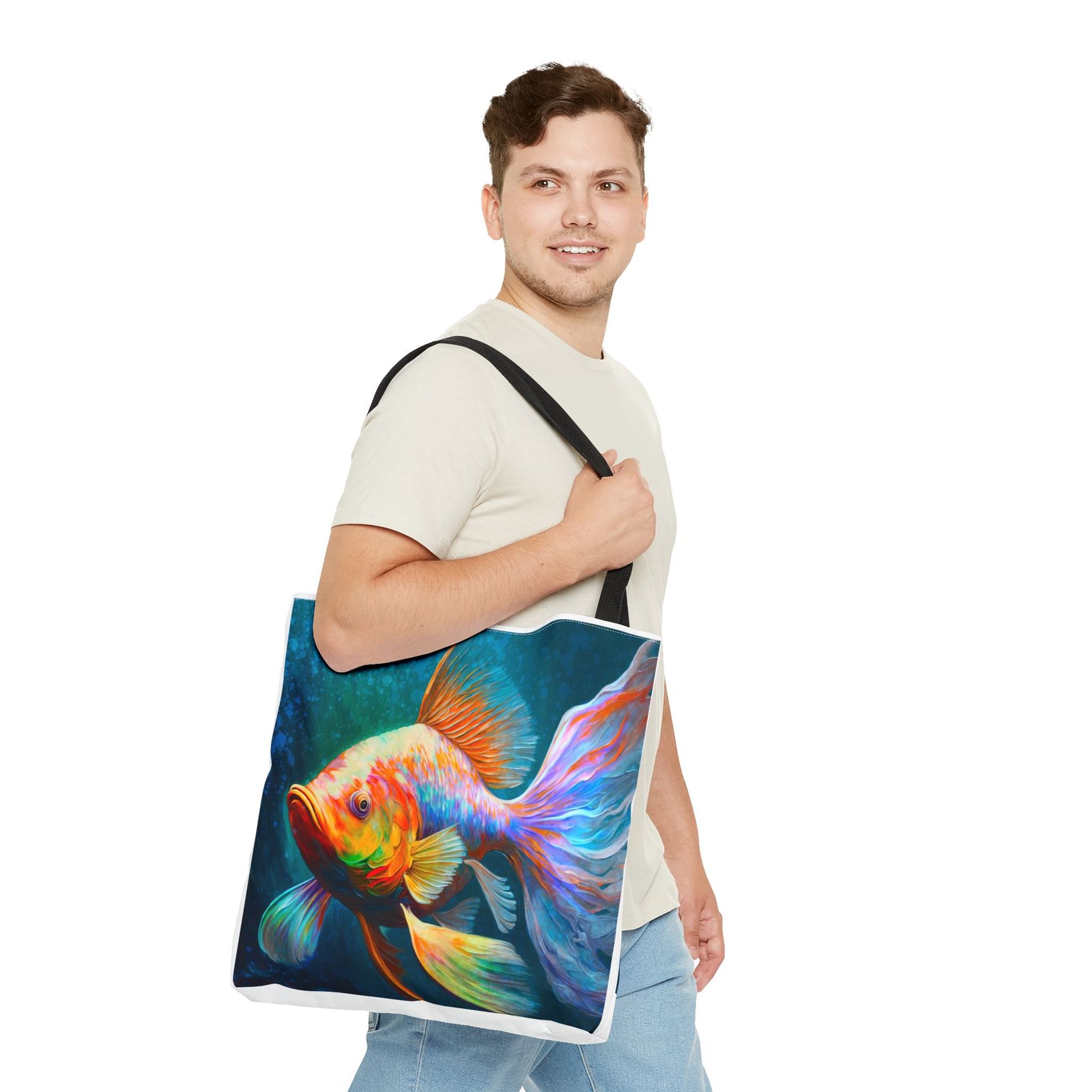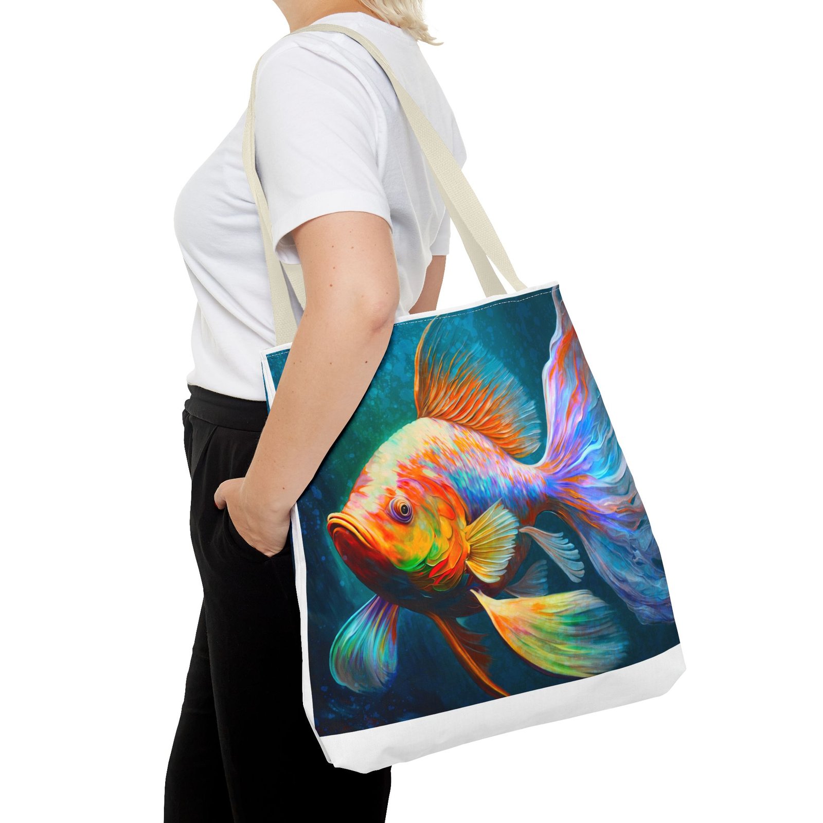 Elevate your everyday style with this vibrant Tote Bag, featuring a stunning, colorful fish design that brings a splash of personality to any outfit. Perfect for both casual outings and special occasions, this tote seamlessly blends practicality with artistry. Whether you’re heading to the beach, running errands around town, or gifting it for birthdays and holidays, this bag is designed for those who appreciate uniqueness and functionality. Ideal for art lovers, eco-conscious shoppers, or anyone needing a versatile accessory, this tote stands out while offering plenty of space for your essentials. Its durable material ensures that it can handle daily use, making it a reliable choice for all your adventures.