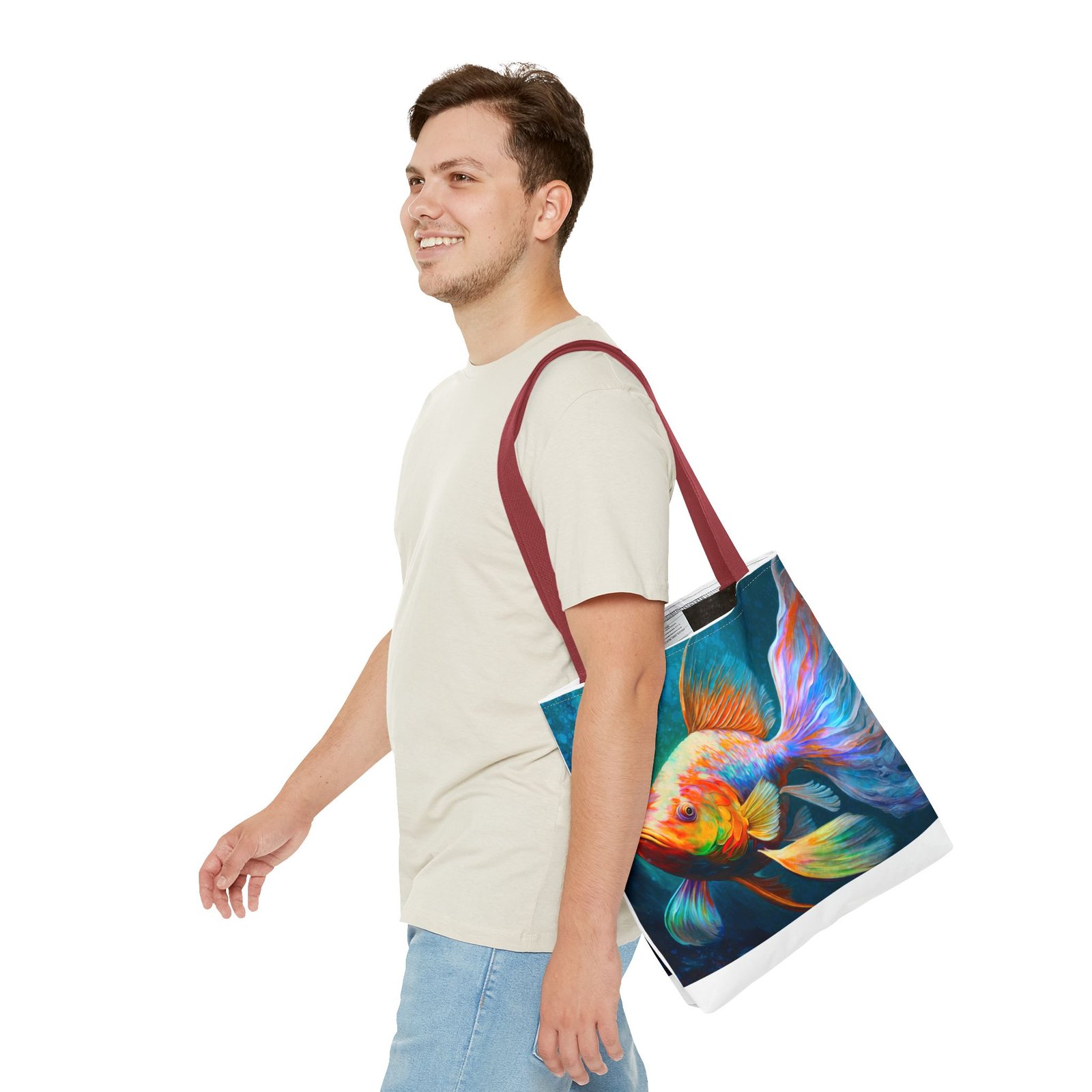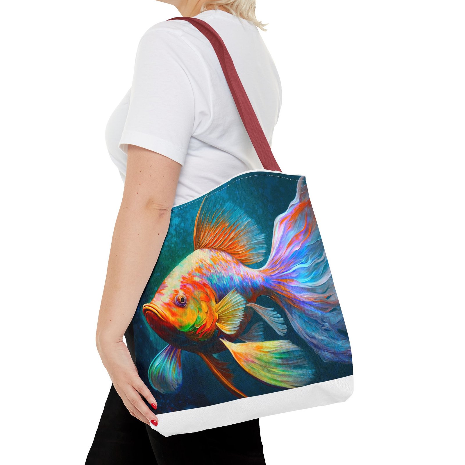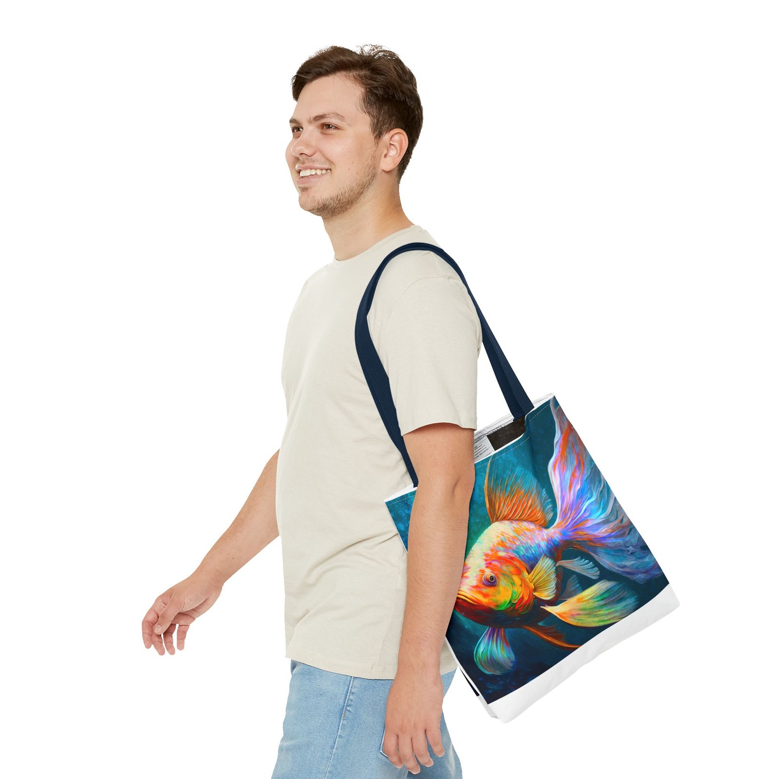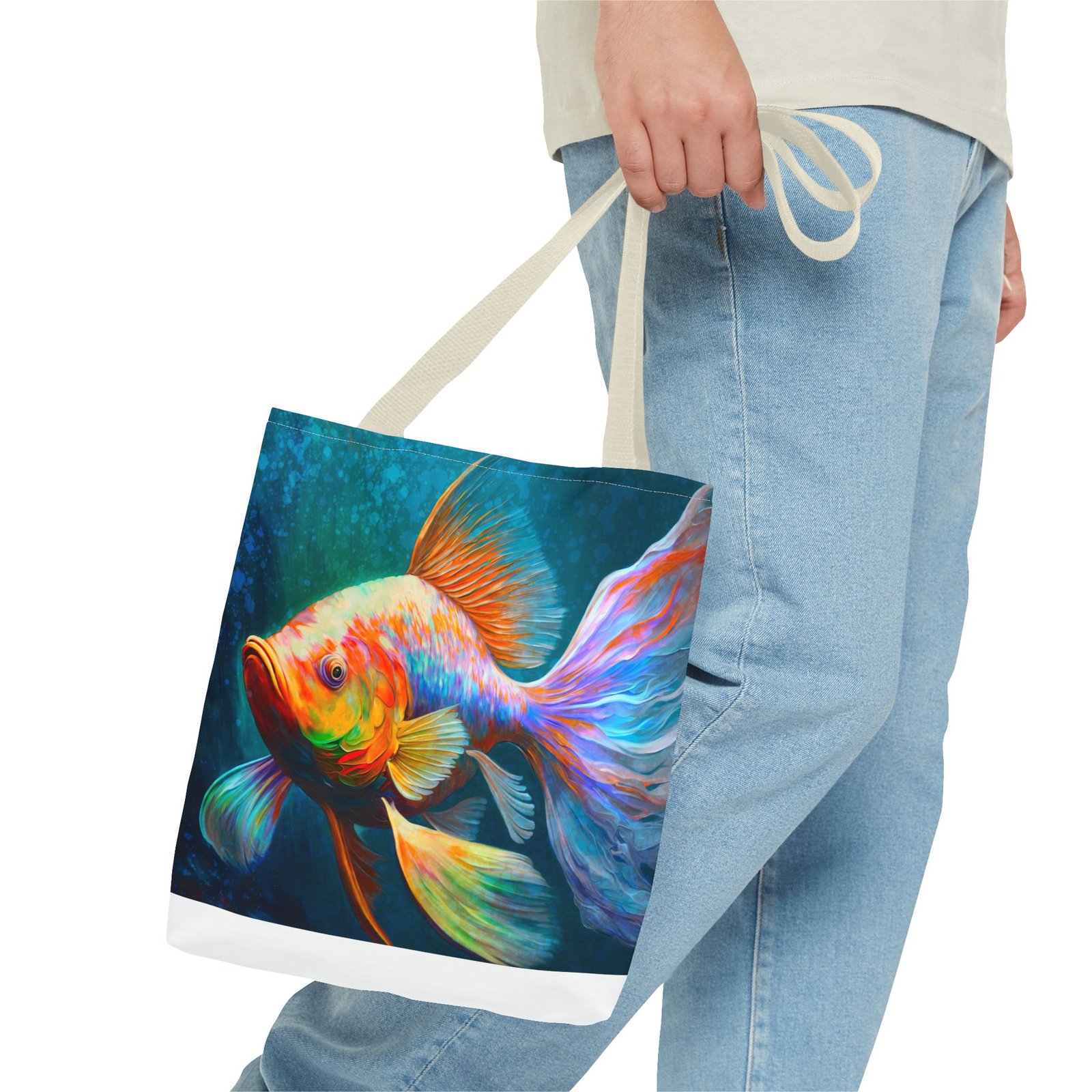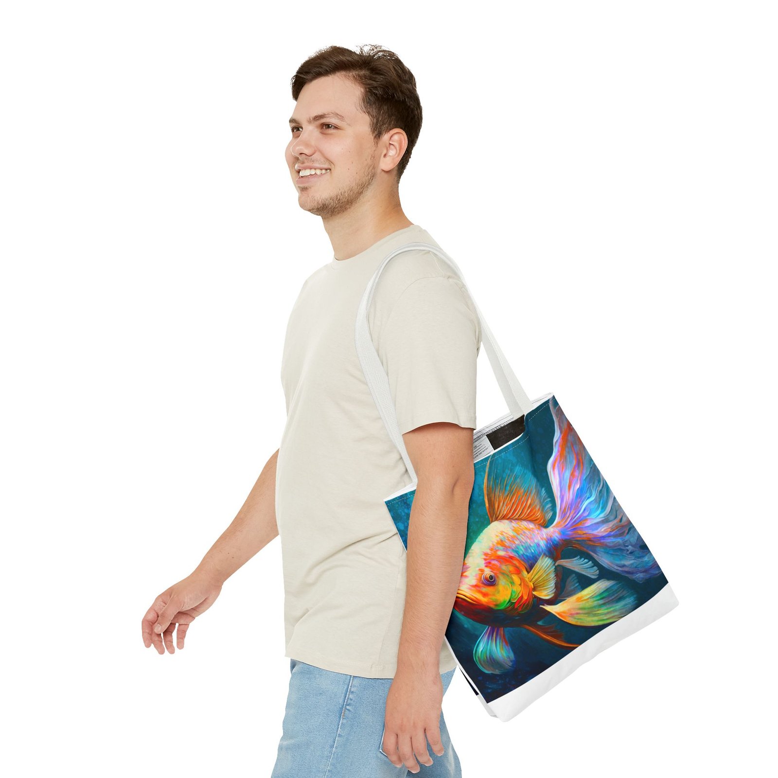Elevate your everyday style with this vibrant Tote Bag, featuring a stunning, colorful fish design that brings a splash of personality to any outfit. Perfect for both casual outings and special occasions, this tote seamlessly blends practicality with artistry. Whether you’re heading to the beach, running errands around town, or gifting it for birthdays and holidays, this bag is designed for those who appreciate uniqueness and functionality. Ideal for art lovers, eco-conscious shoppers, or anyone needing a versatile accessory, this tote stands out while offering plenty of space for your essentials. Its durable material ensures that it can handle daily use, making it a reliable choice for all your adventures.