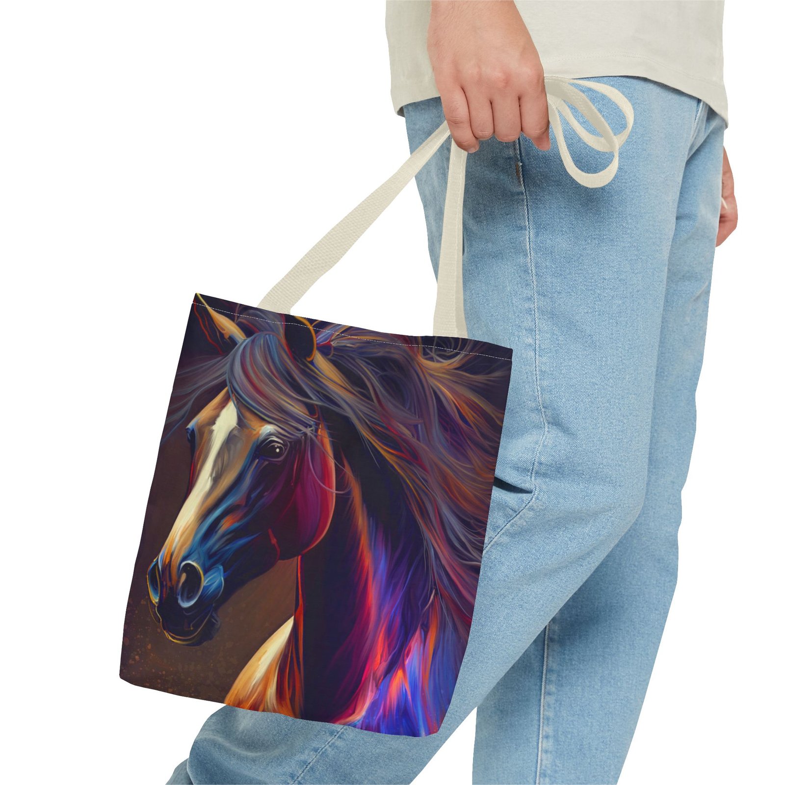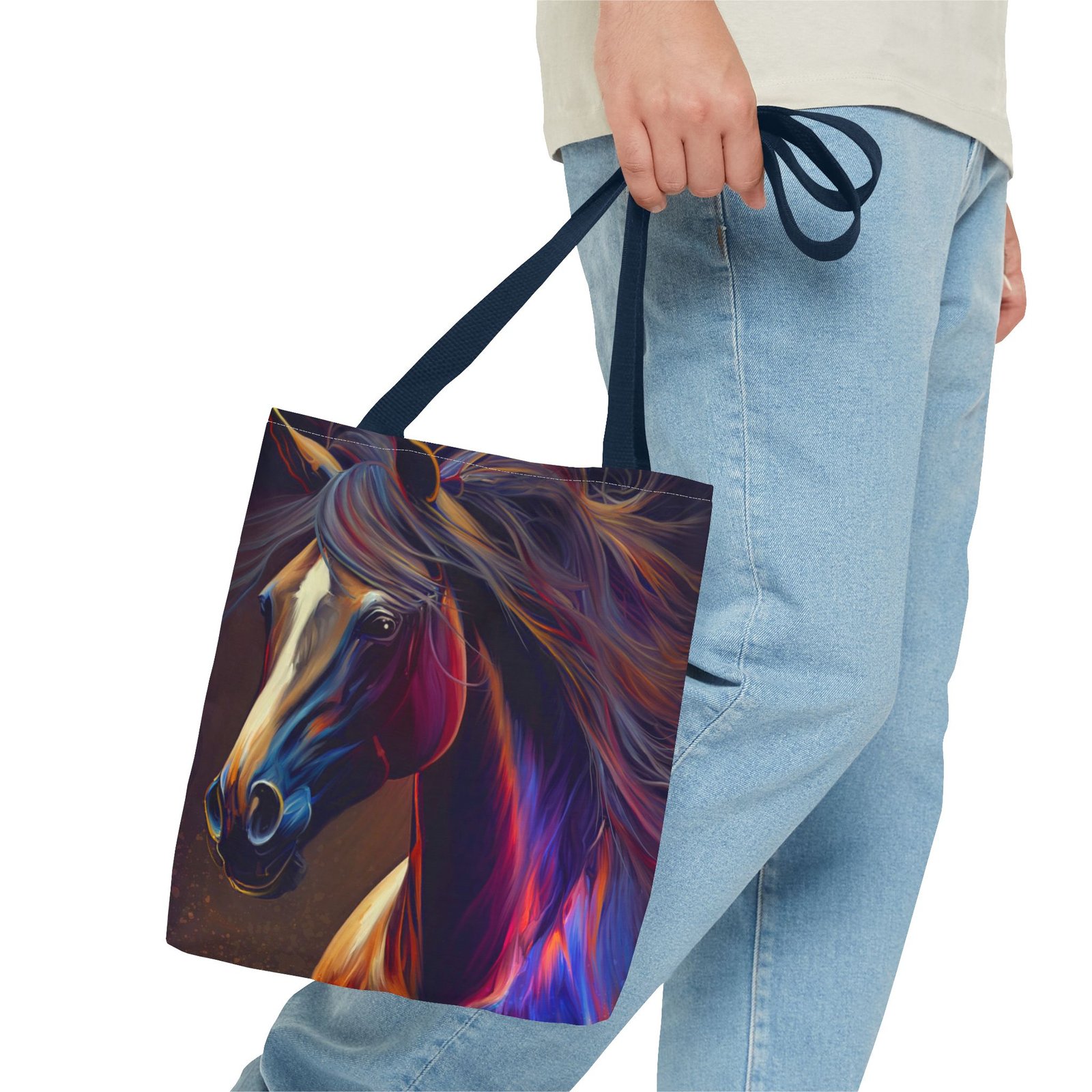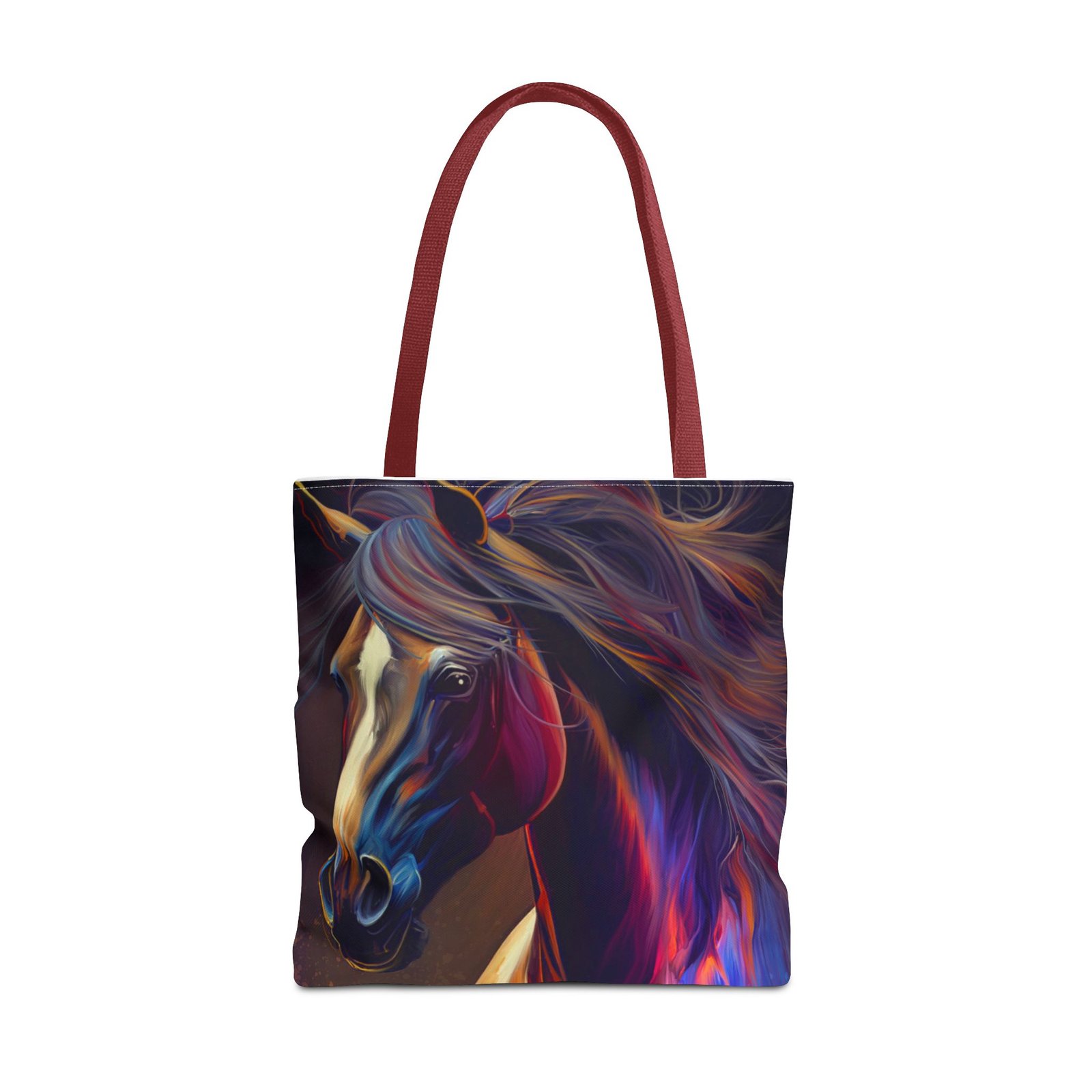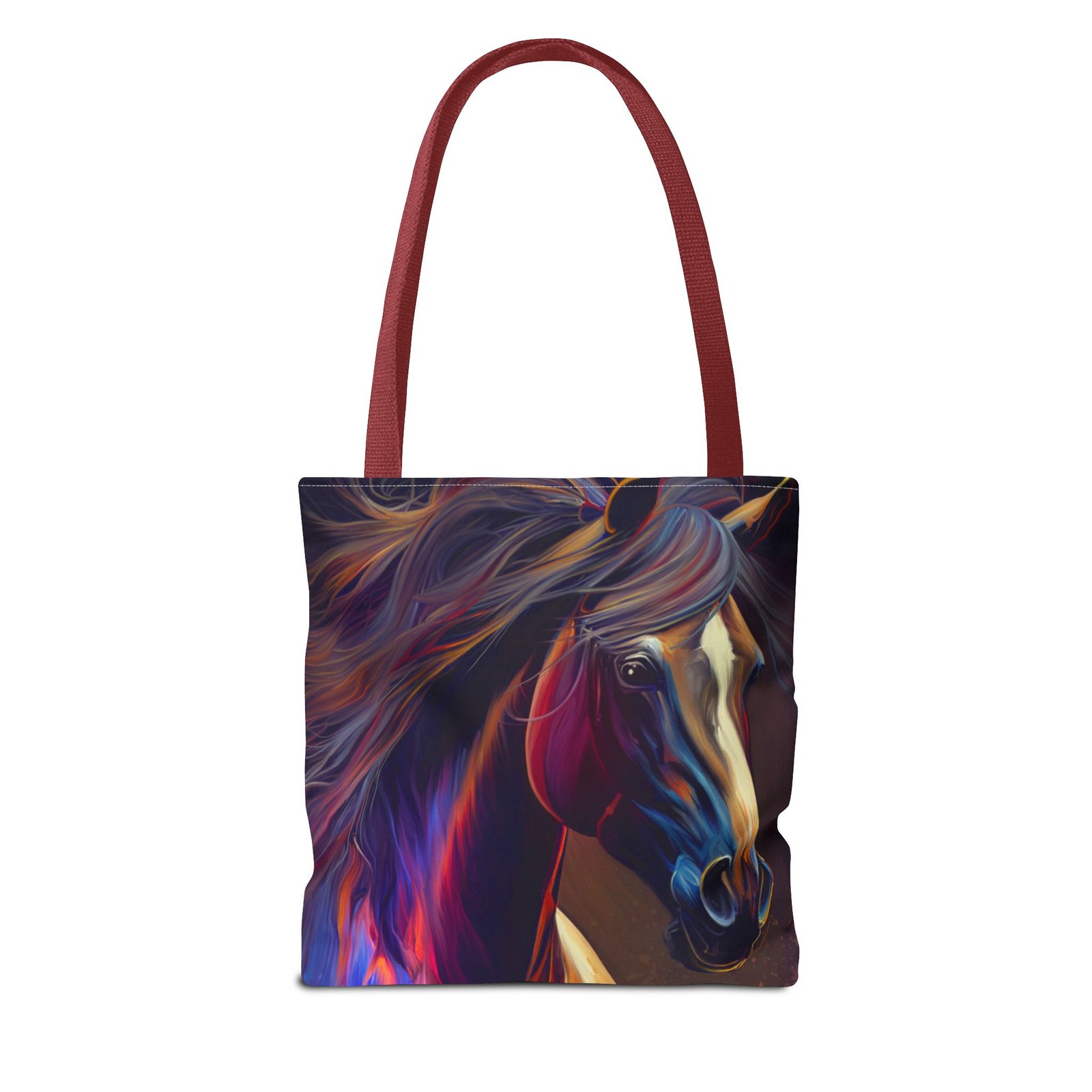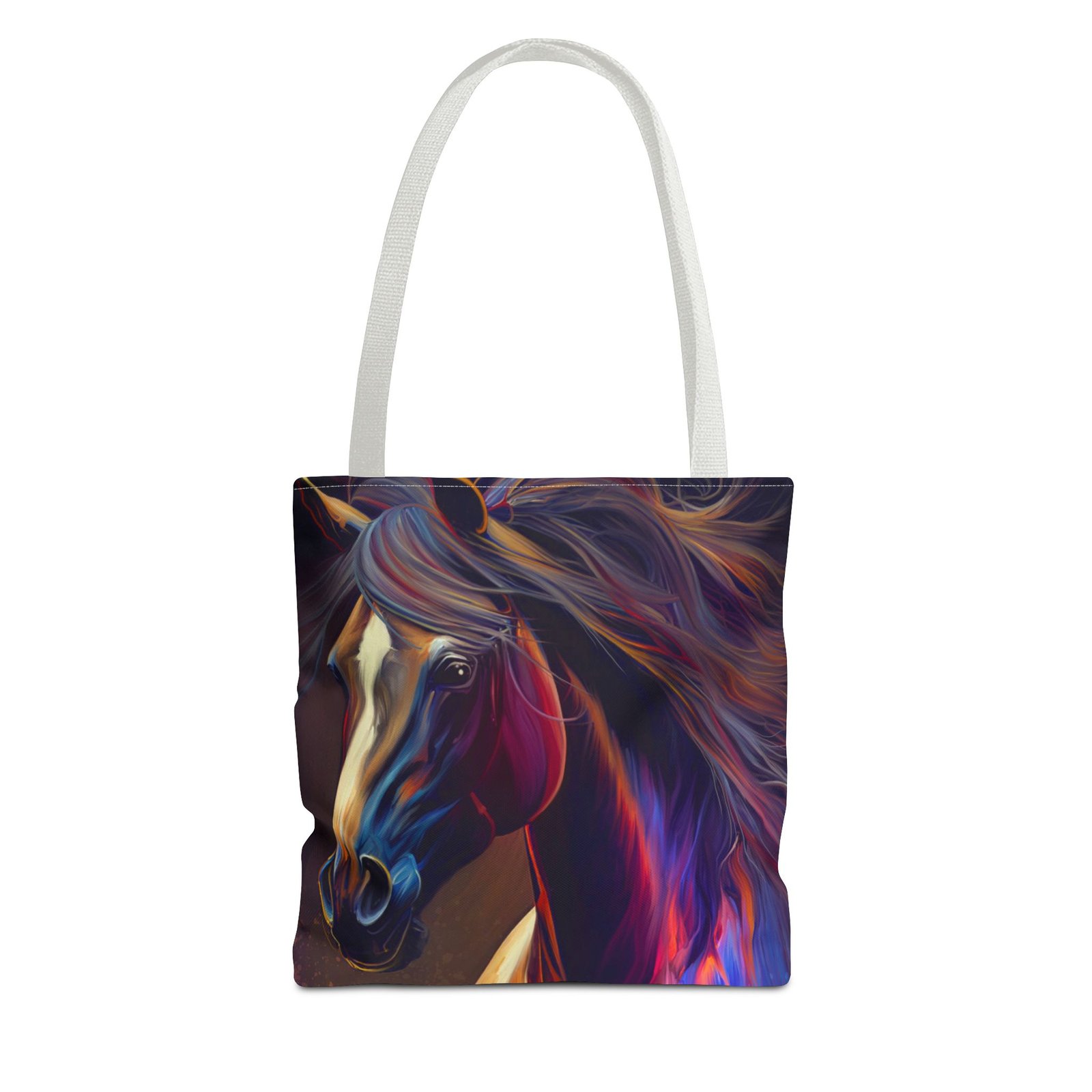 This vibrant Tote Bag is a perfect blend of style and functionality. Featuring an eye-catching design, it effortlessly adds a splash of color to any outfit, making it the ideal accessory for art lovers and horse enthusiasts alike. The spacious interior accommodates all your essentials, whether you’re heading to the market, a picnic, or running errands. With its durable polyester body, this bag is built for daily use, ensuring it will be a reliable companion in your journey. Perfect for birthdays, holidays, or as a thoughtful gift for someone special, this tote radiates creativity and flair, making it a must-have for those who cherish unique, artistic pieces.