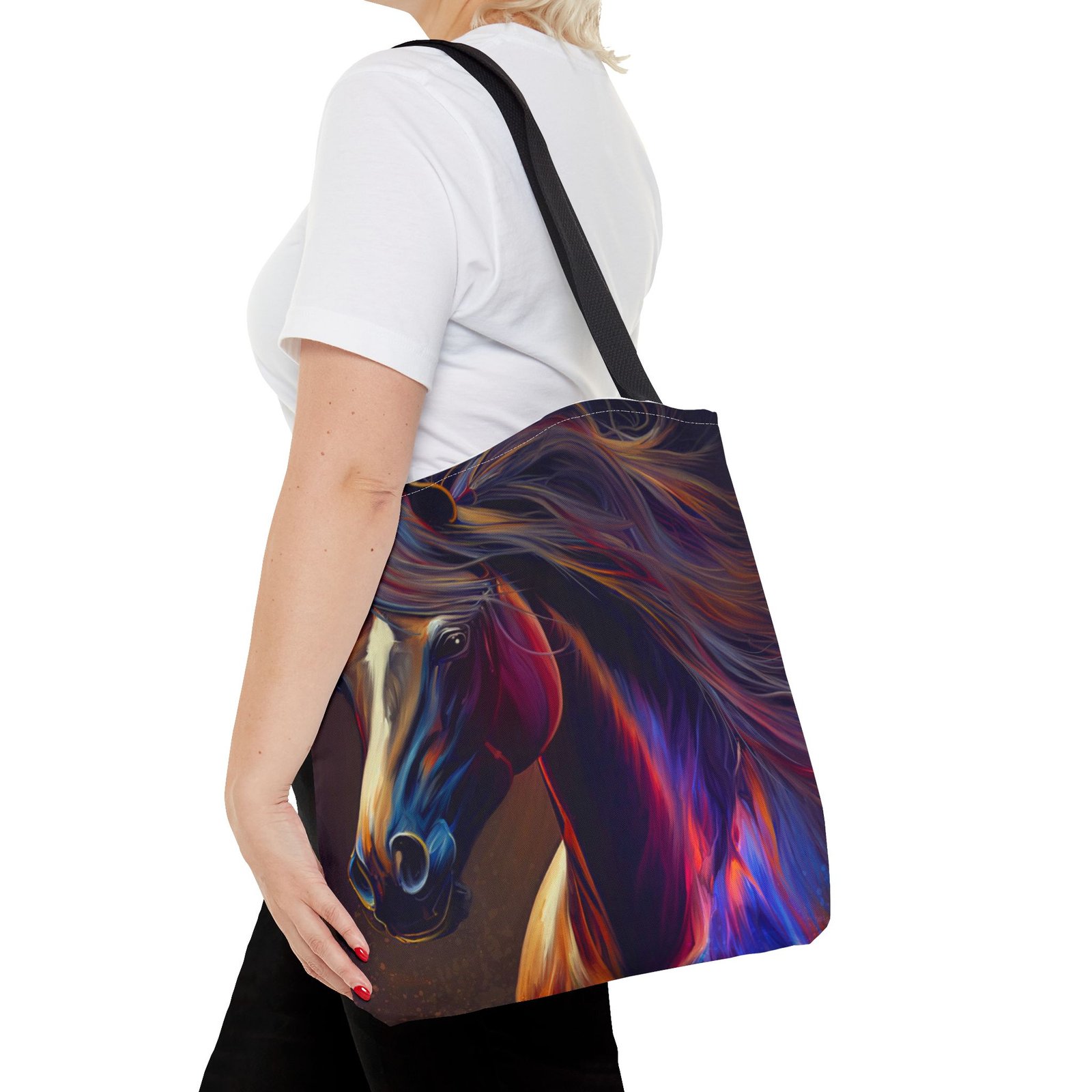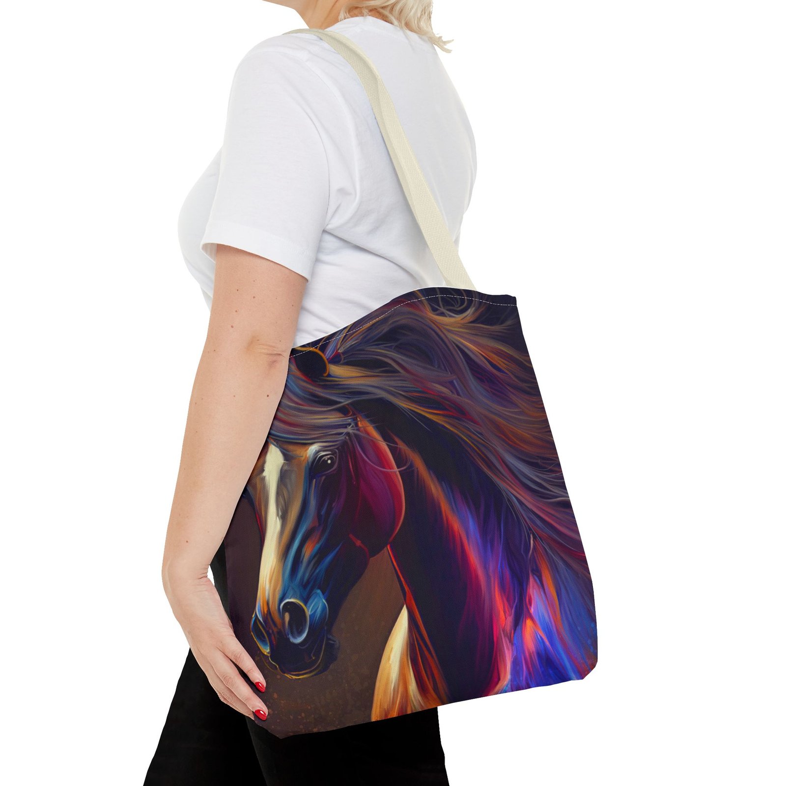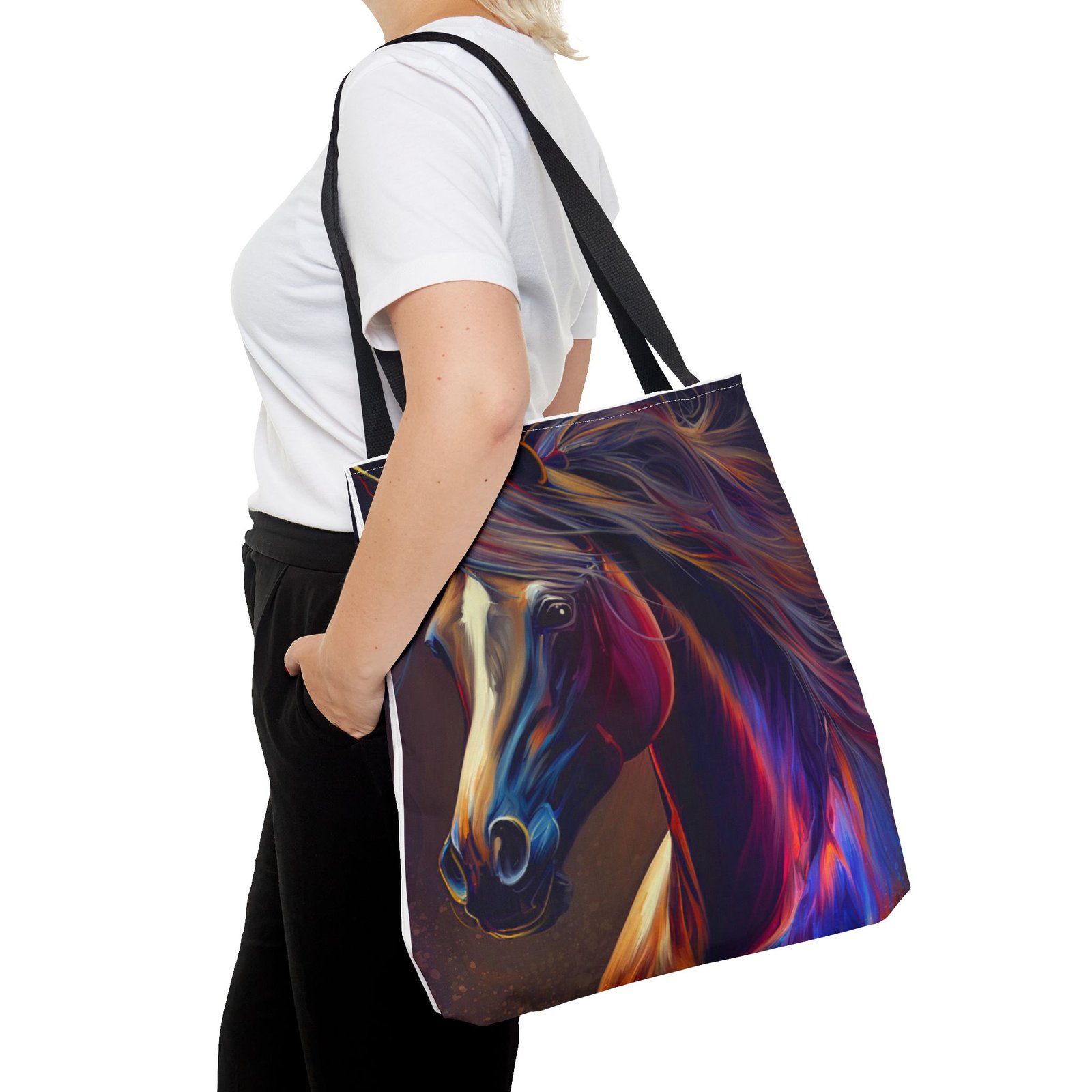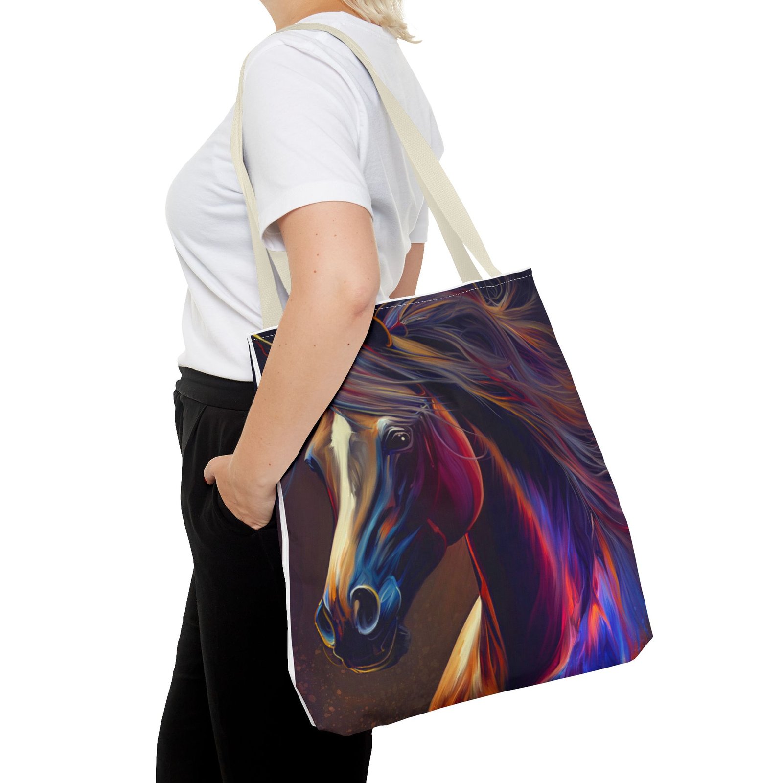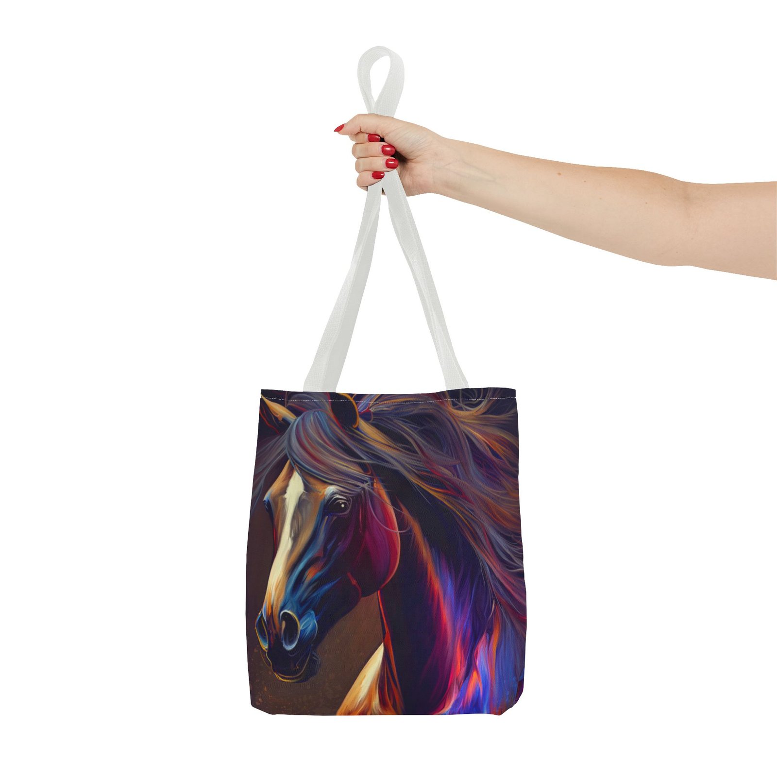 This vibrant Tote Bag is a perfect blend of style and functionality. Featuring an eye-catching design, it effortlessly adds a splash of color to any outfit, making it the ideal accessory for art lovers and horse enthusiasts alike. The spacious interior accommodates all your essentials, whether you’re heading to the market, a picnic, or running errands. With its durable polyester body, this bag is built for daily use, ensuring it will be a reliable companion in your journey. Perfect for birthdays, holidays, or as a thoughtful gift for someone special, this tote radiates creativity and flair, making it a must-have for those who cherish unique, artistic pieces.