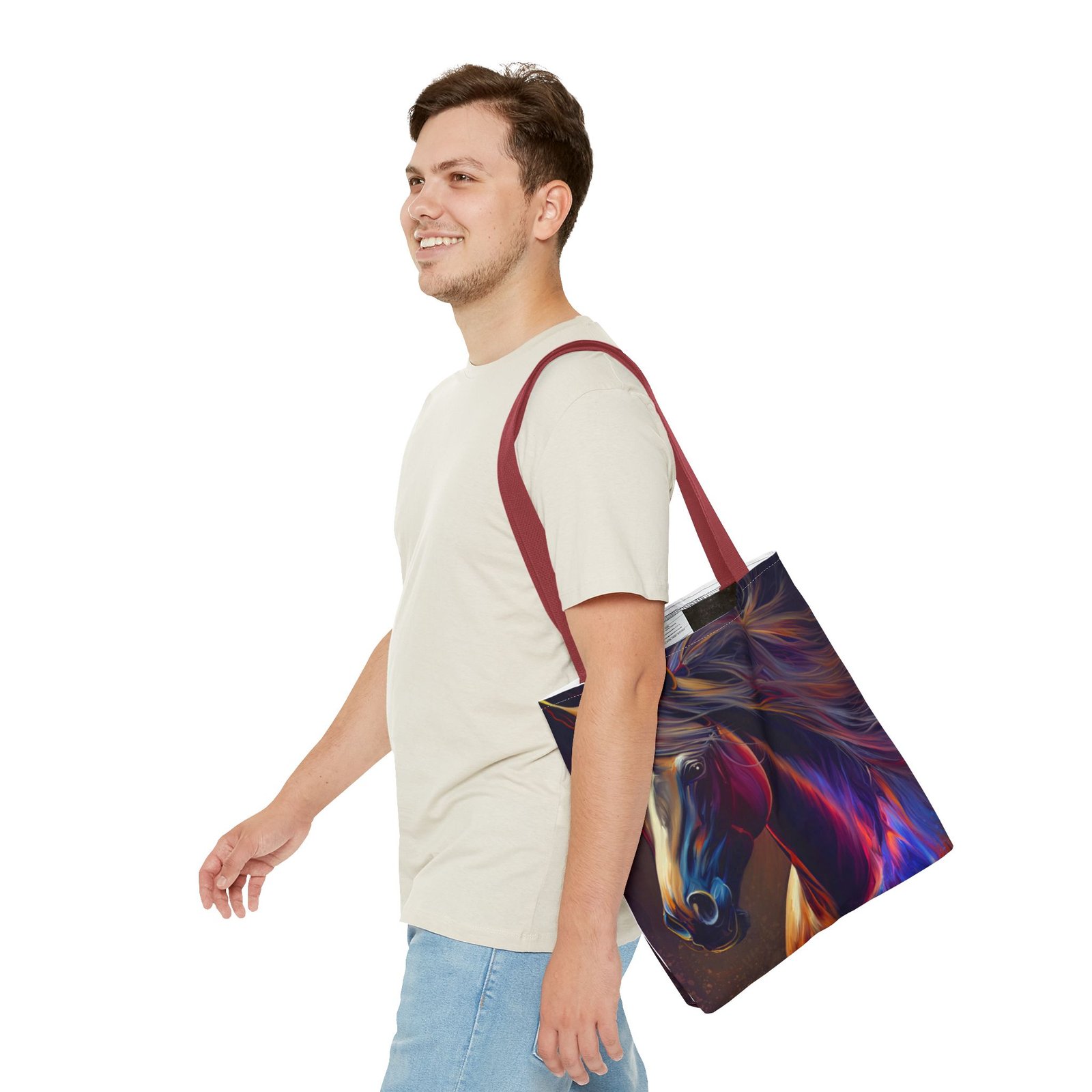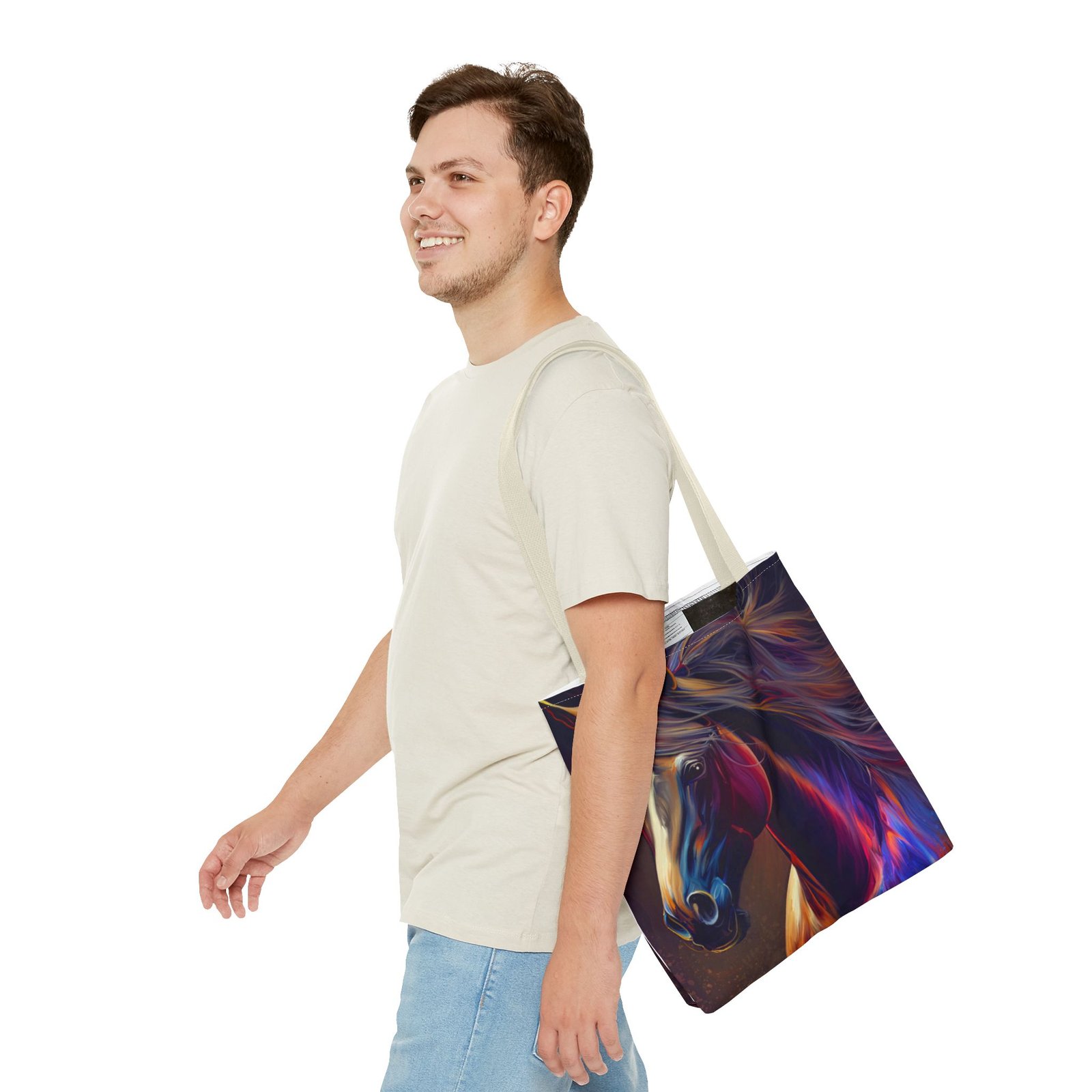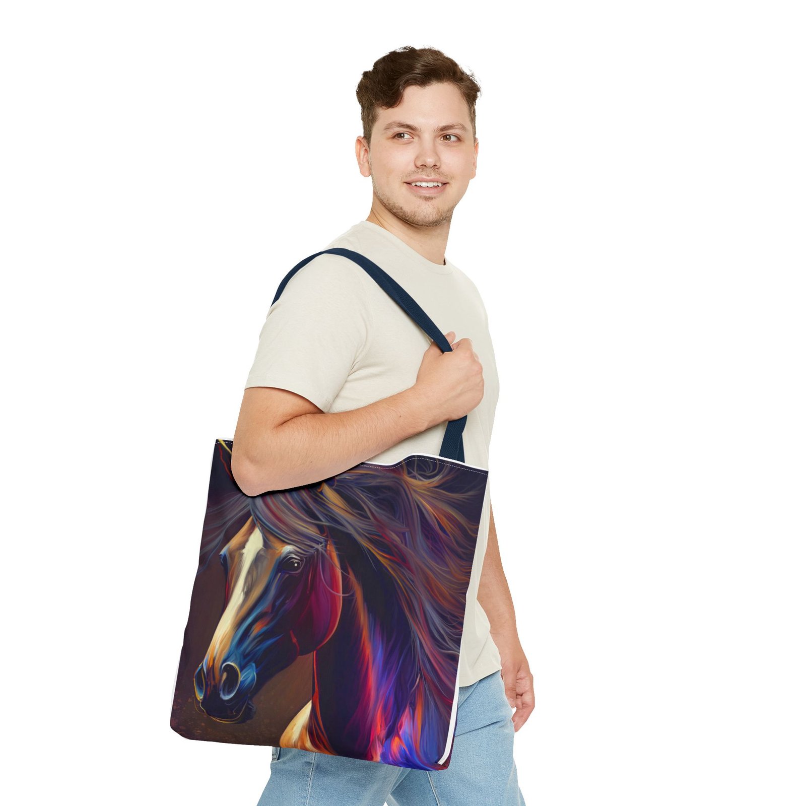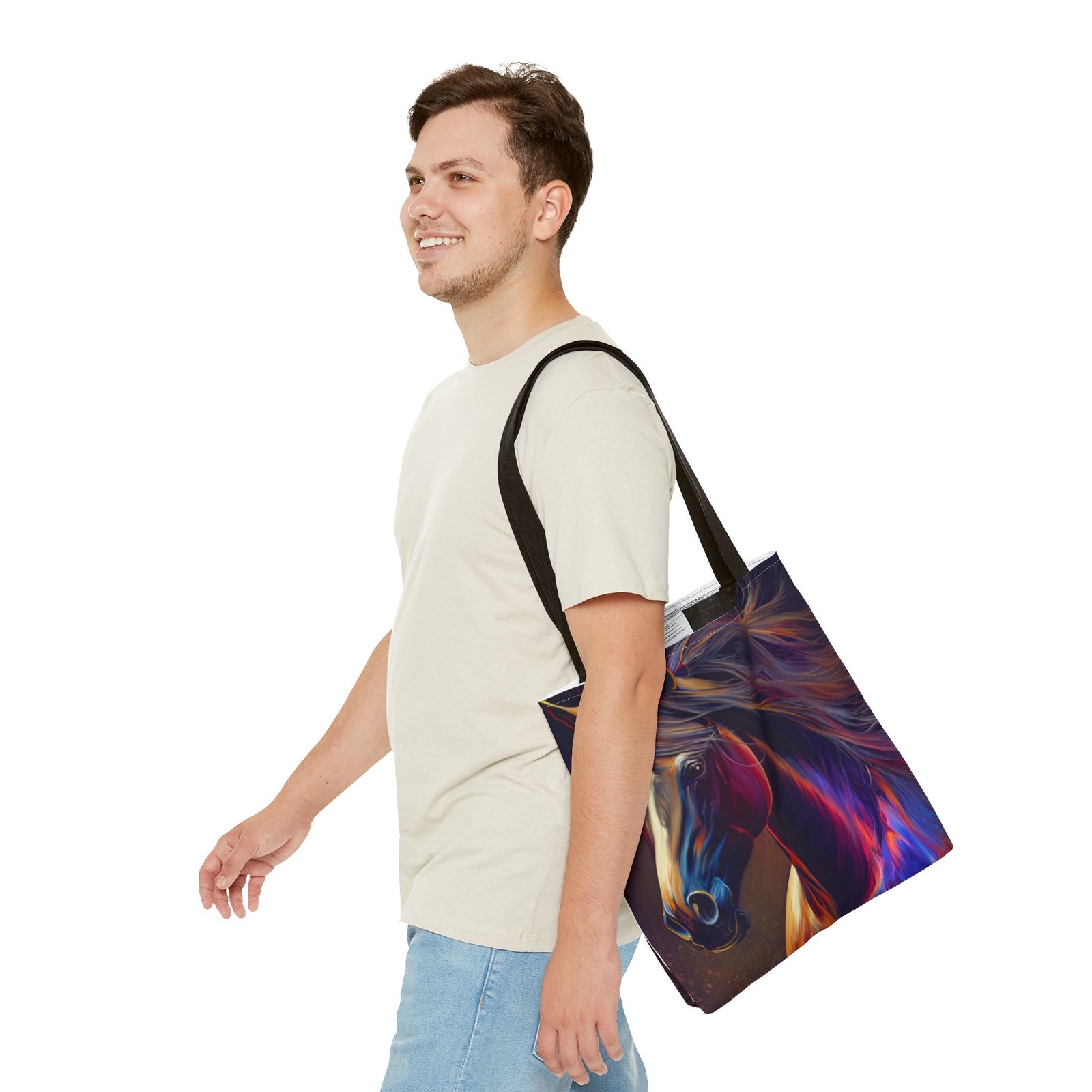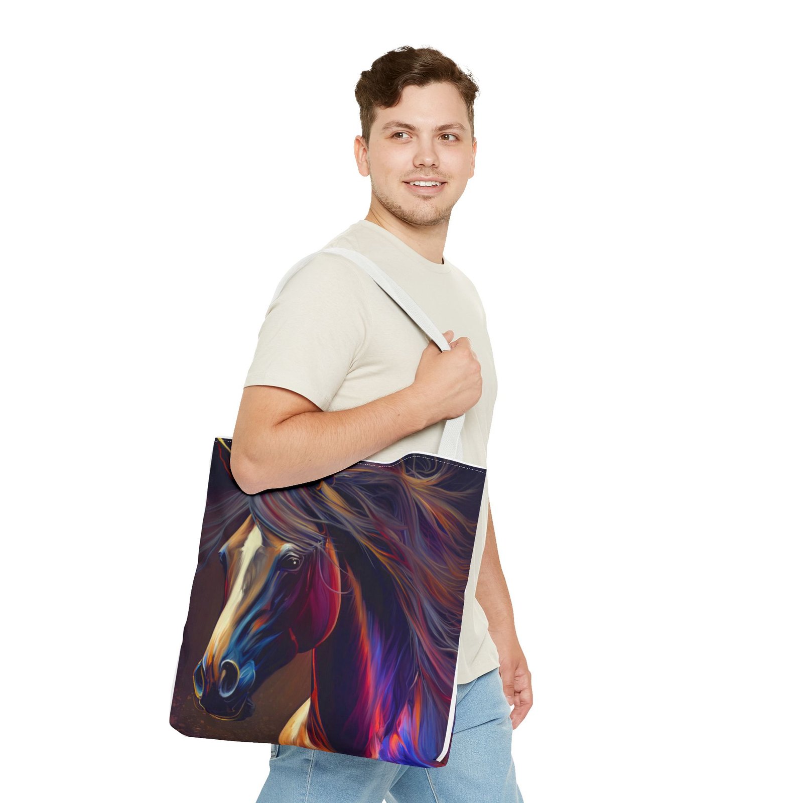 This vibrant Tote Bag is a perfect blend of style and functionality. Featuring an eye-catching design, it effortlessly adds a splash of color to any outfit, making it the ideal accessory for art lovers and horse enthusiasts alike. The spacious interior accommodates all your essentials, whether you’re heading to the market, a picnic, or running errands. With its durable polyester body, this bag is built for daily use, ensuring it will be a reliable companion in your journey. Perfect for birthdays, holidays, or as a thoughtful gift for someone special, this tote radiates creativity and flair, making it a must-have for those who cherish unique, artistic pieces.