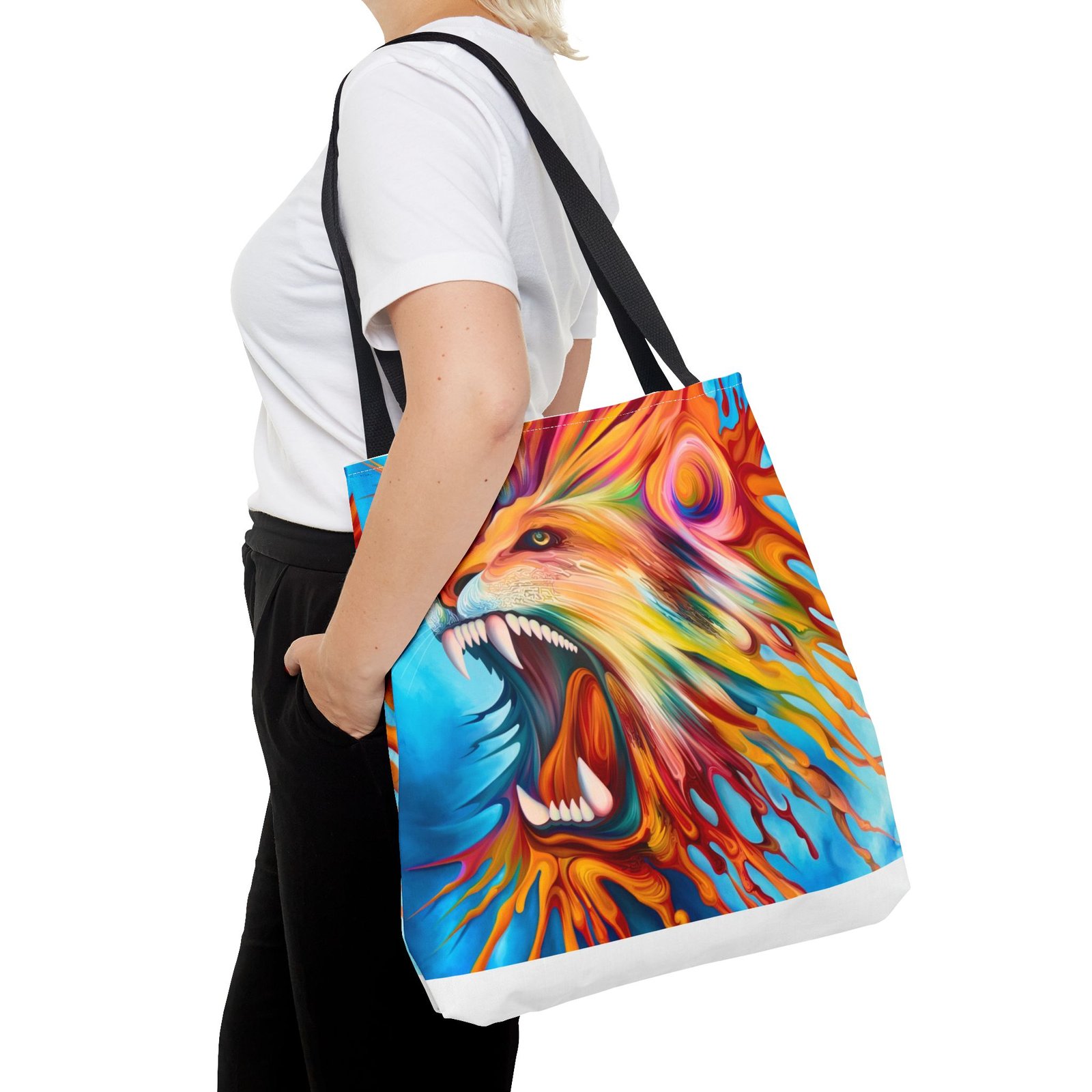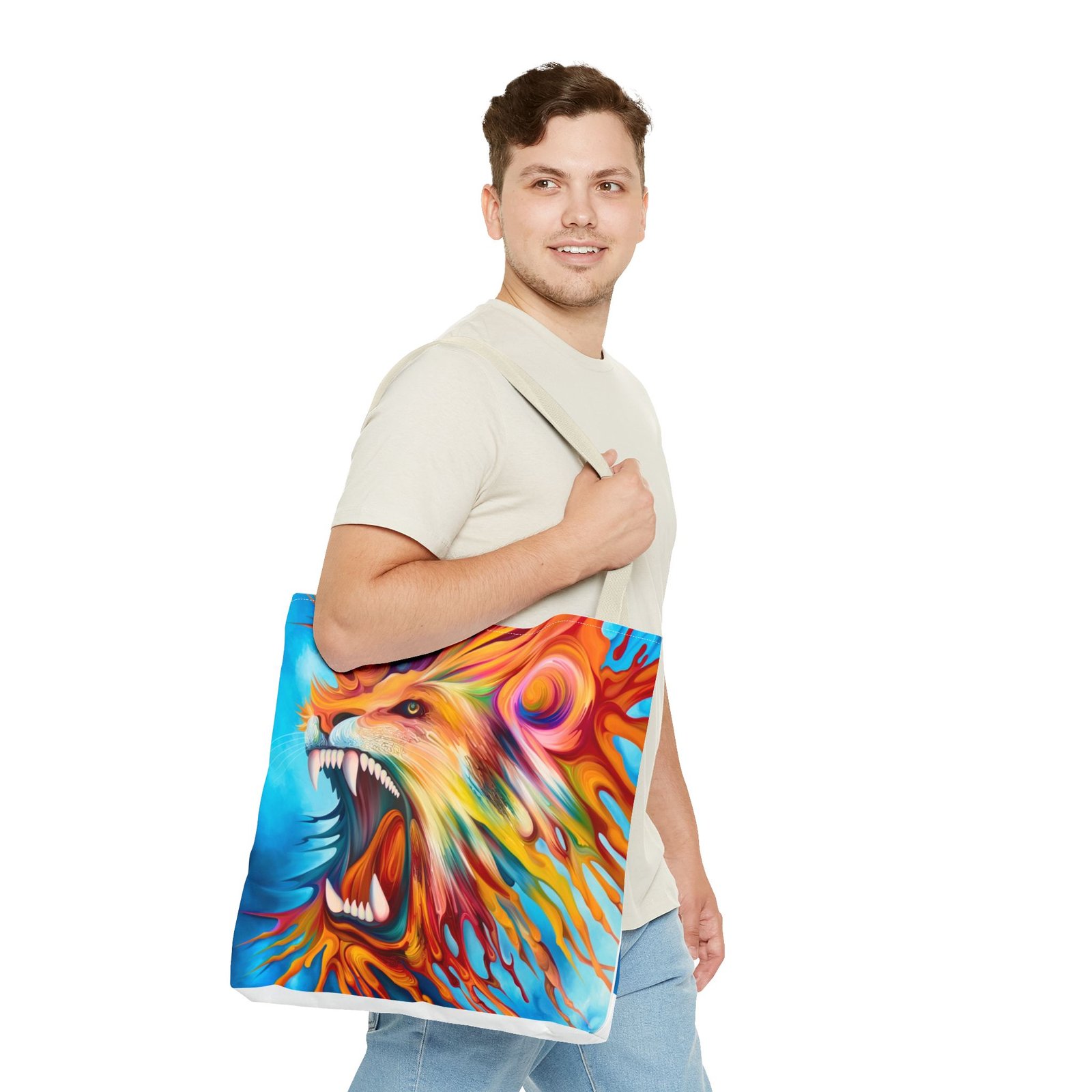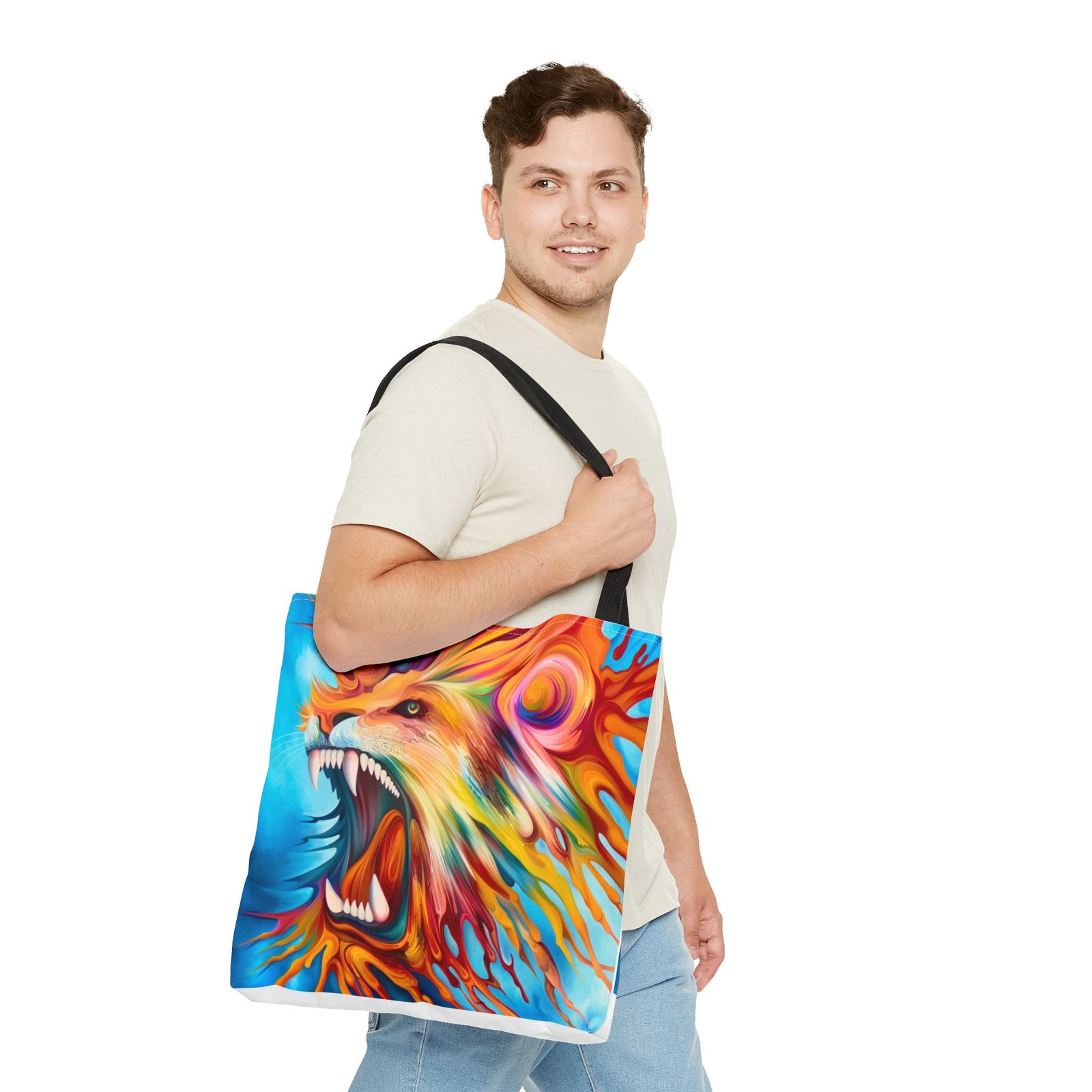Introducing a vibrant Tote Bag that brings an energetic and artistic flair to your everyday style. This stunning accessory showcases a dynamic lion design, perfect for making a bold statement. Its lightweight yet durable polyester fabric makes it ideal for daily use, whether you’re heading to the farmers market, gym, or out on a casual day. Designed for art lovers and nature enthusiasts, this tote effortlessly blends functionality with style. It’s perfect for gifting on occasions like birthdays, back-to-school season, or as a thoughtful surprise for friends. Celebrate your passion for creativity and nature with this eye-catching bag that’s versatile for any adventure!